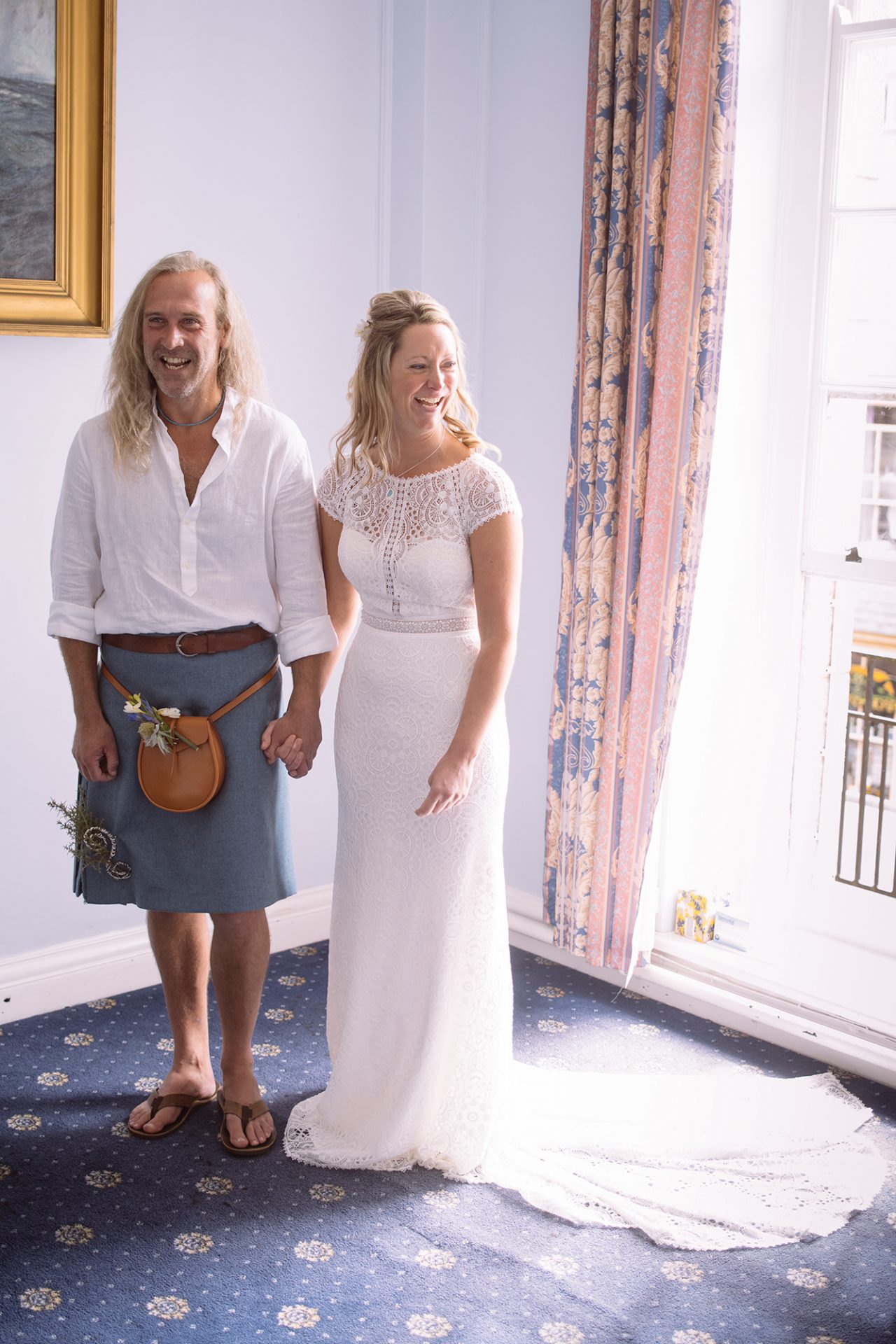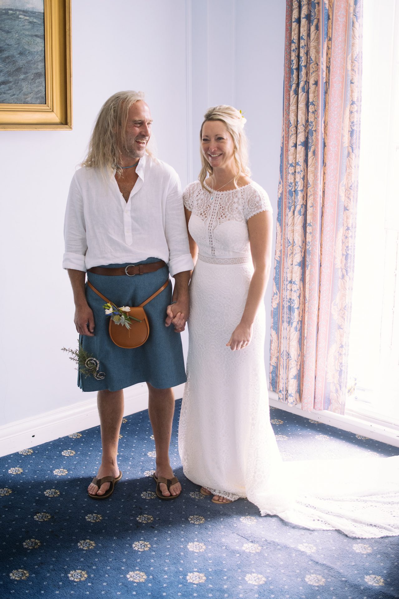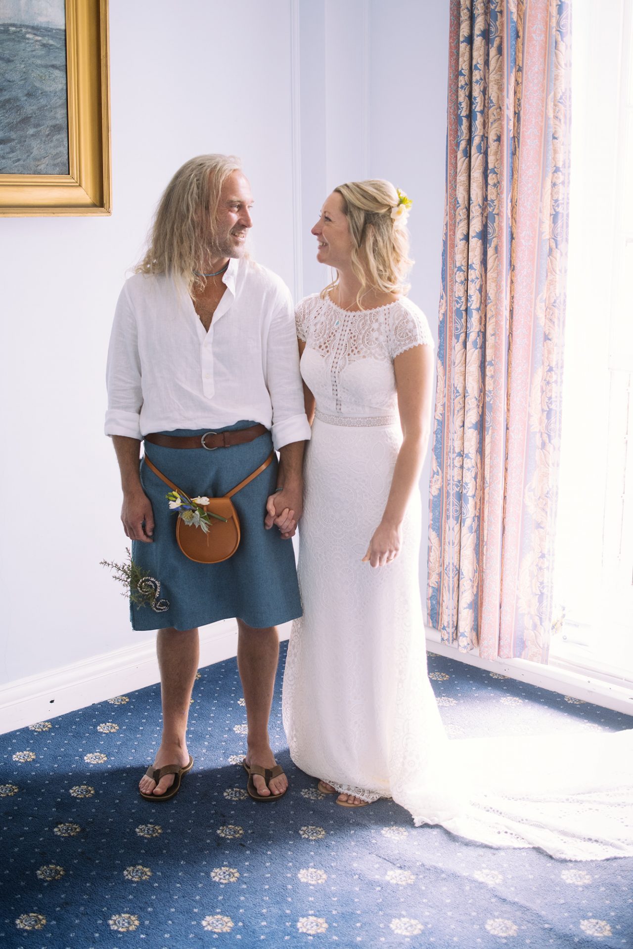 Both Amy and James are from Cornwall and live/work there. Therefore it was only natural that they should get married there to. Above all, St Ives Guildhall had to be favourite. St Ives is the town where Amy works and where James’ artwork sits in many galleries. James and I worked together as part of an artists collective at the Lorient Festival Interceltique in Brittany, France. Enough about James though! Amy looked stunning in her beautiful dress! With her best friend as maid of honour and stylist we couldn’t go wrong on the photo front! *