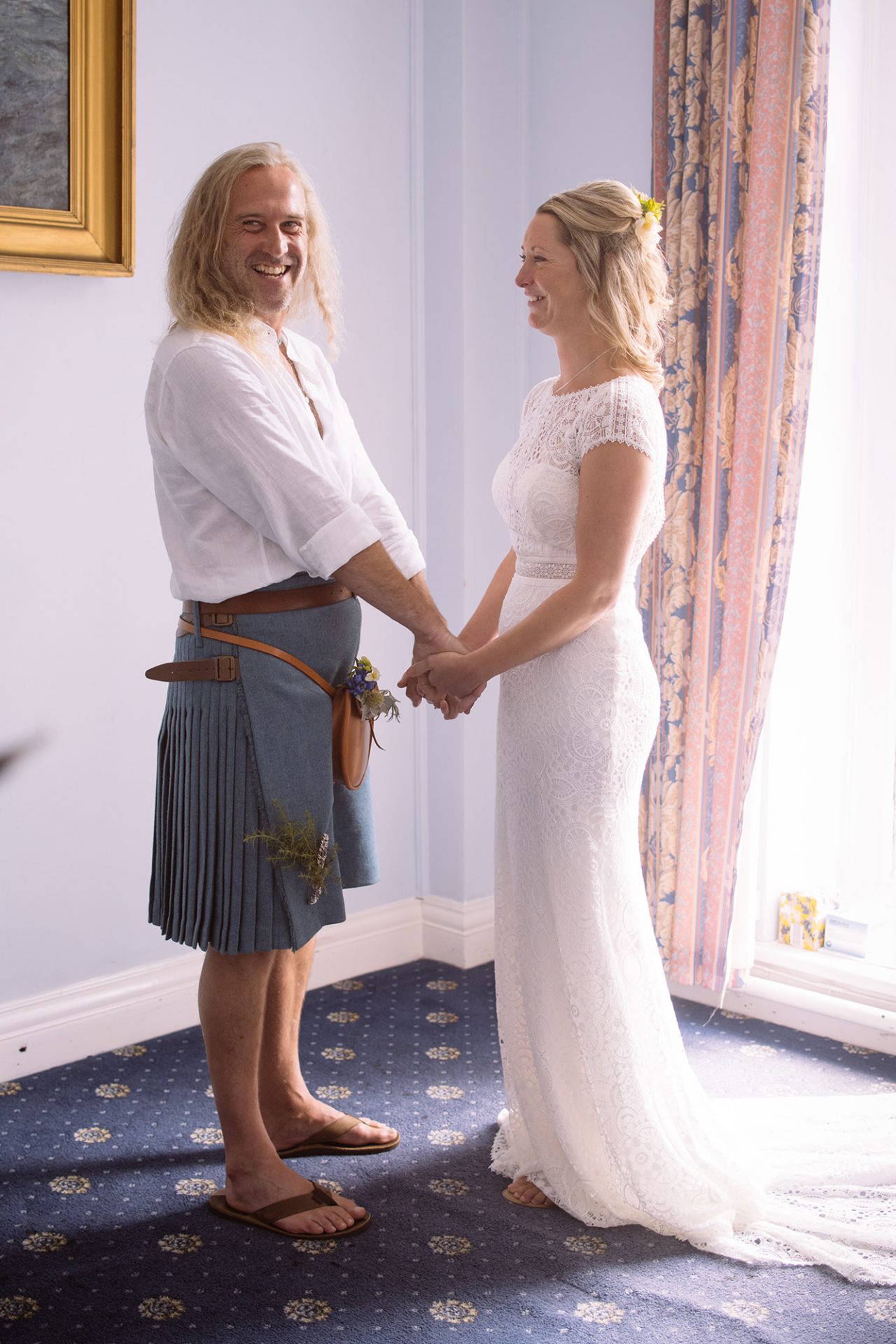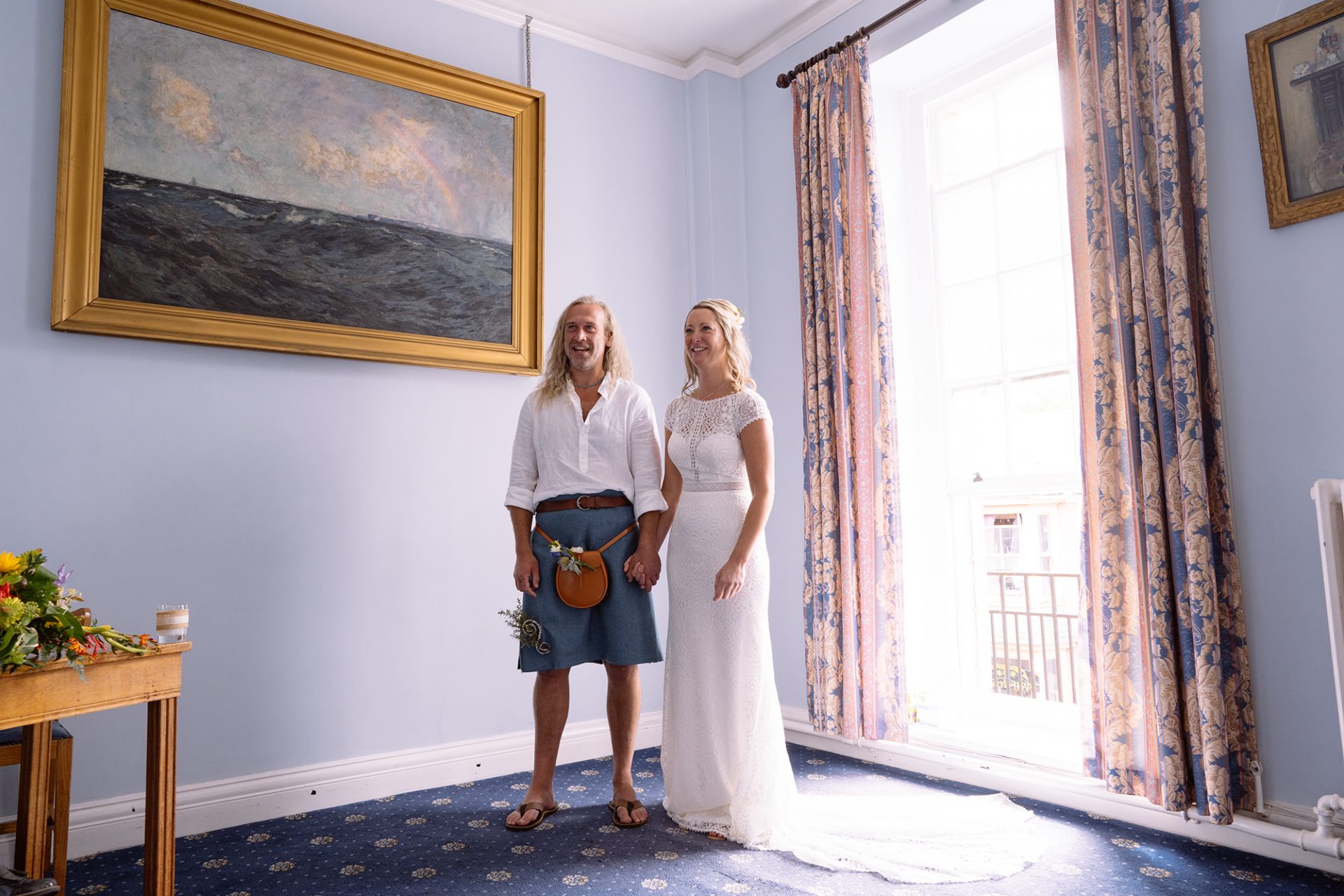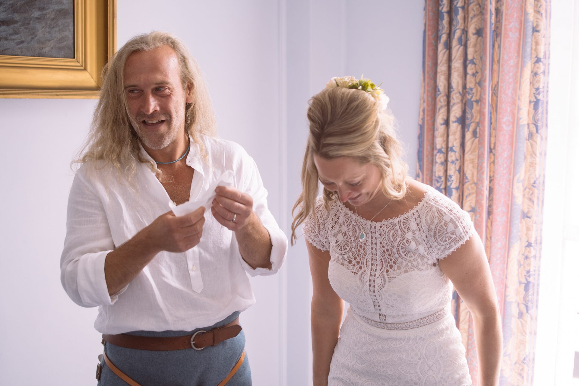 Both Amy and James are from Cornwall and live/work there. Therefore it was only natural that they should get married there to. Above all, St Ives Guildhall had to be favourite. St Ives is the town where Amy works and where James’ artwork sits in many galleries. James and I worked together as part of an artists collective at the Lorient Festival Interceltique in Brittany, France. Enough about James though! Amy looked stunning in her beautiful dress! With her best friend as maid of honour and stylist we couldn’t go wrong on the photo front! *