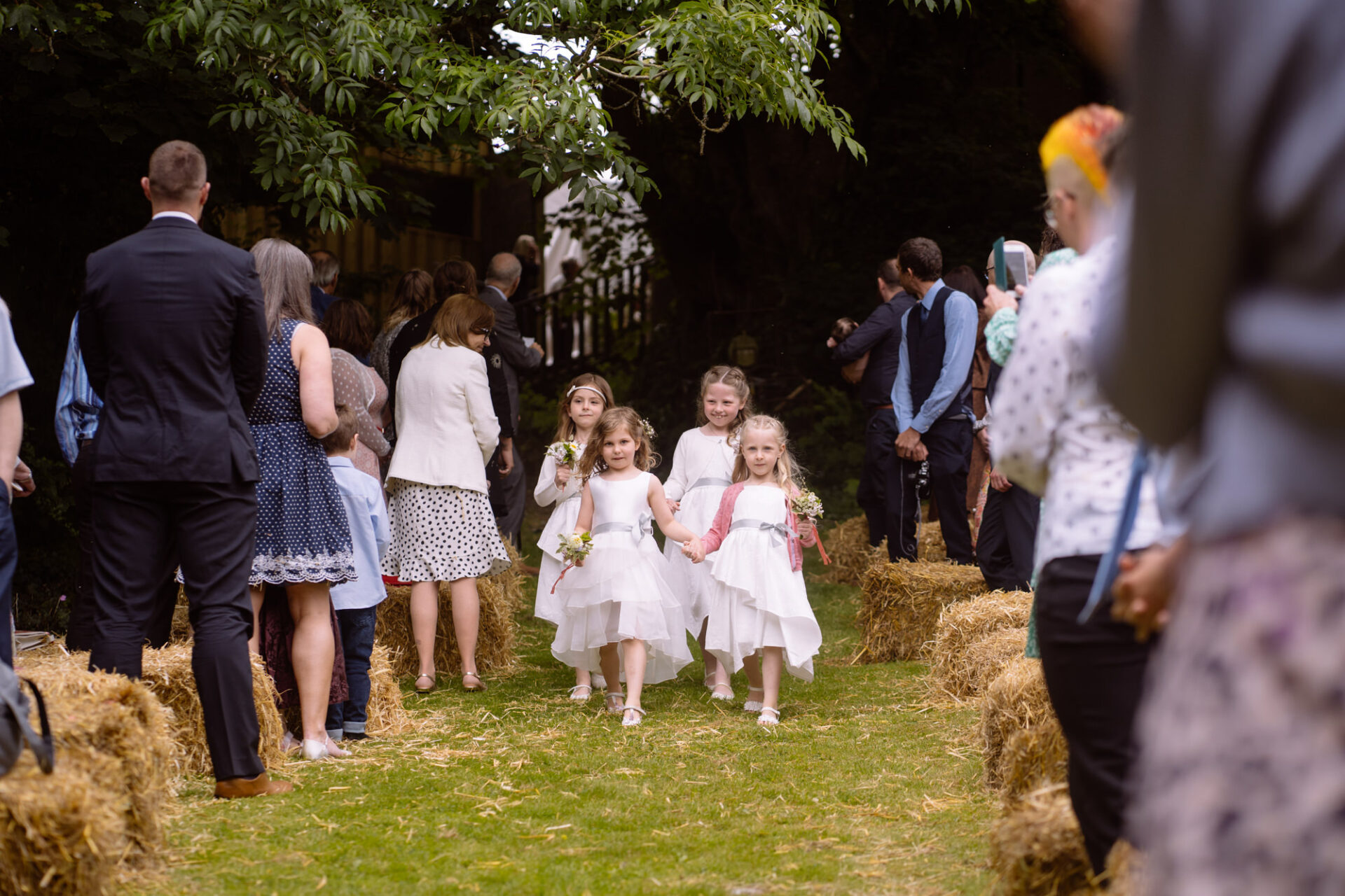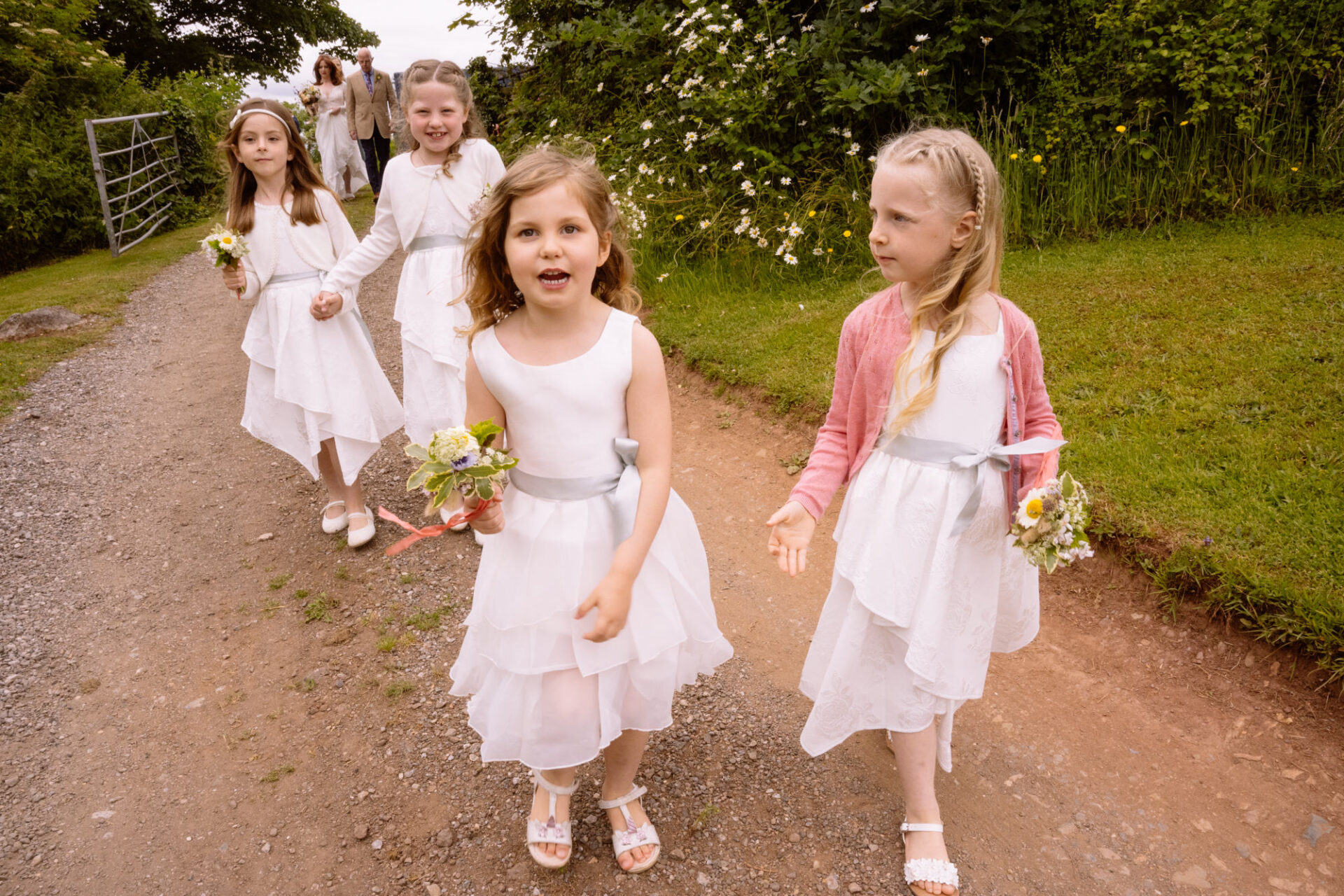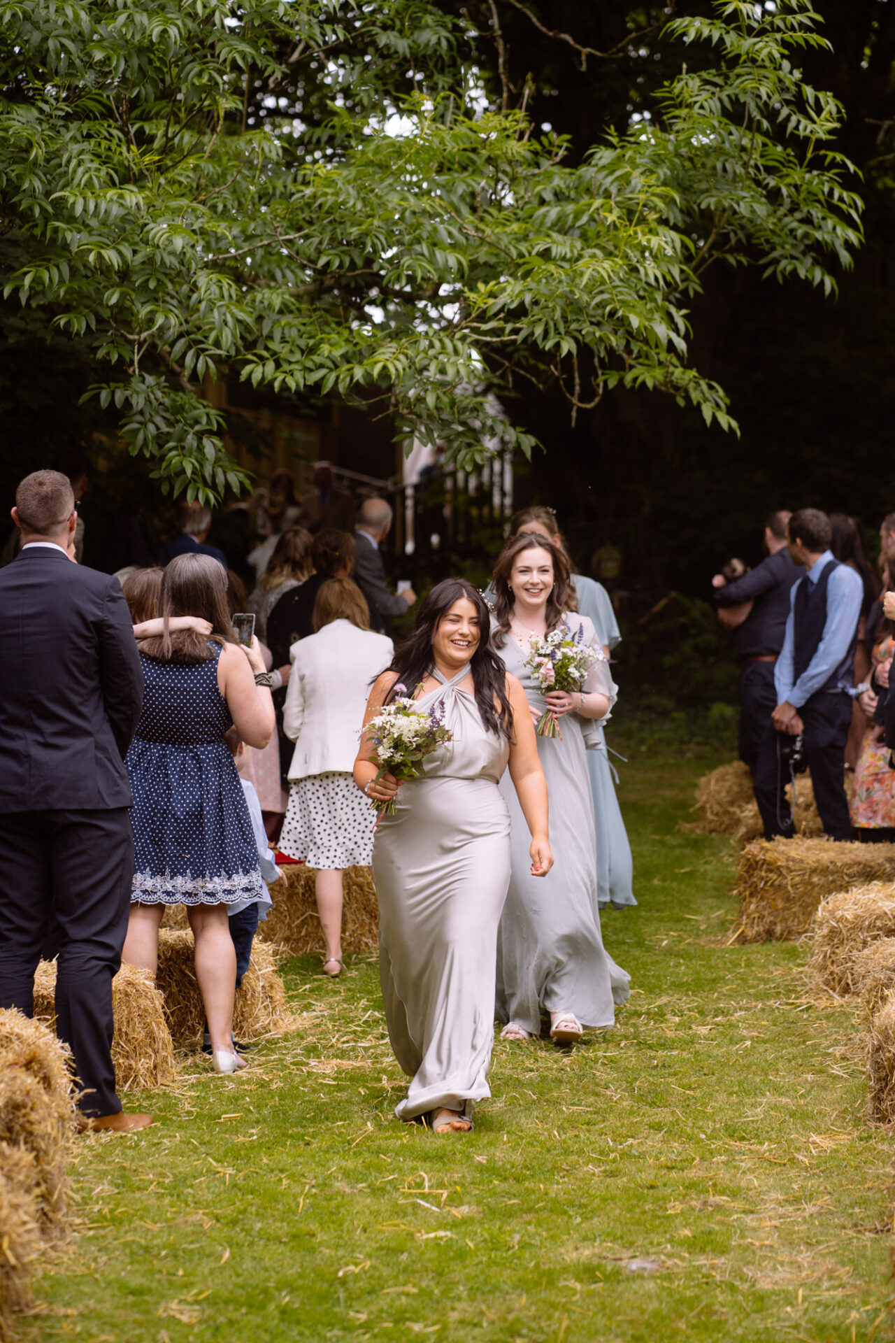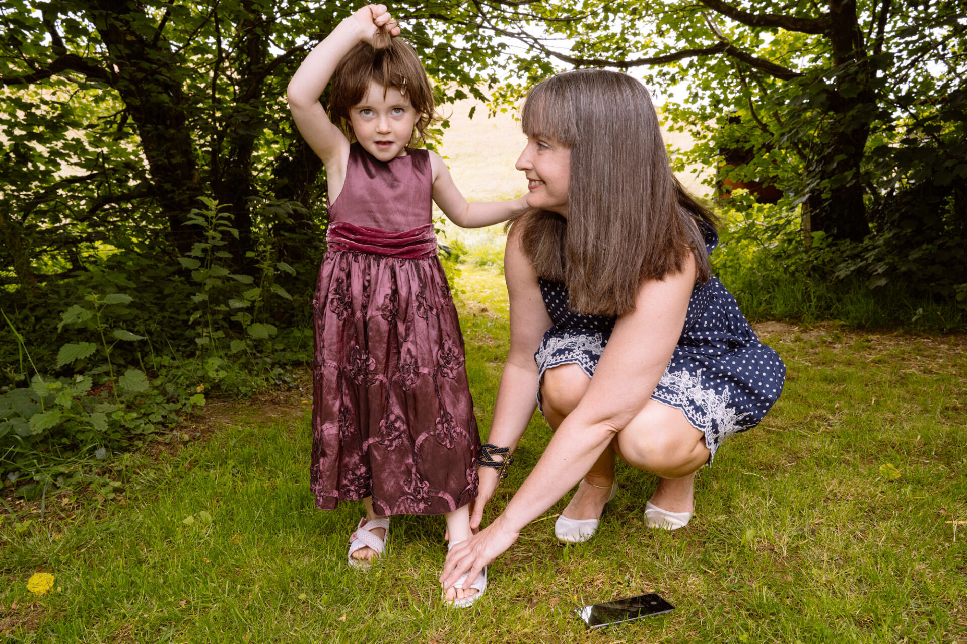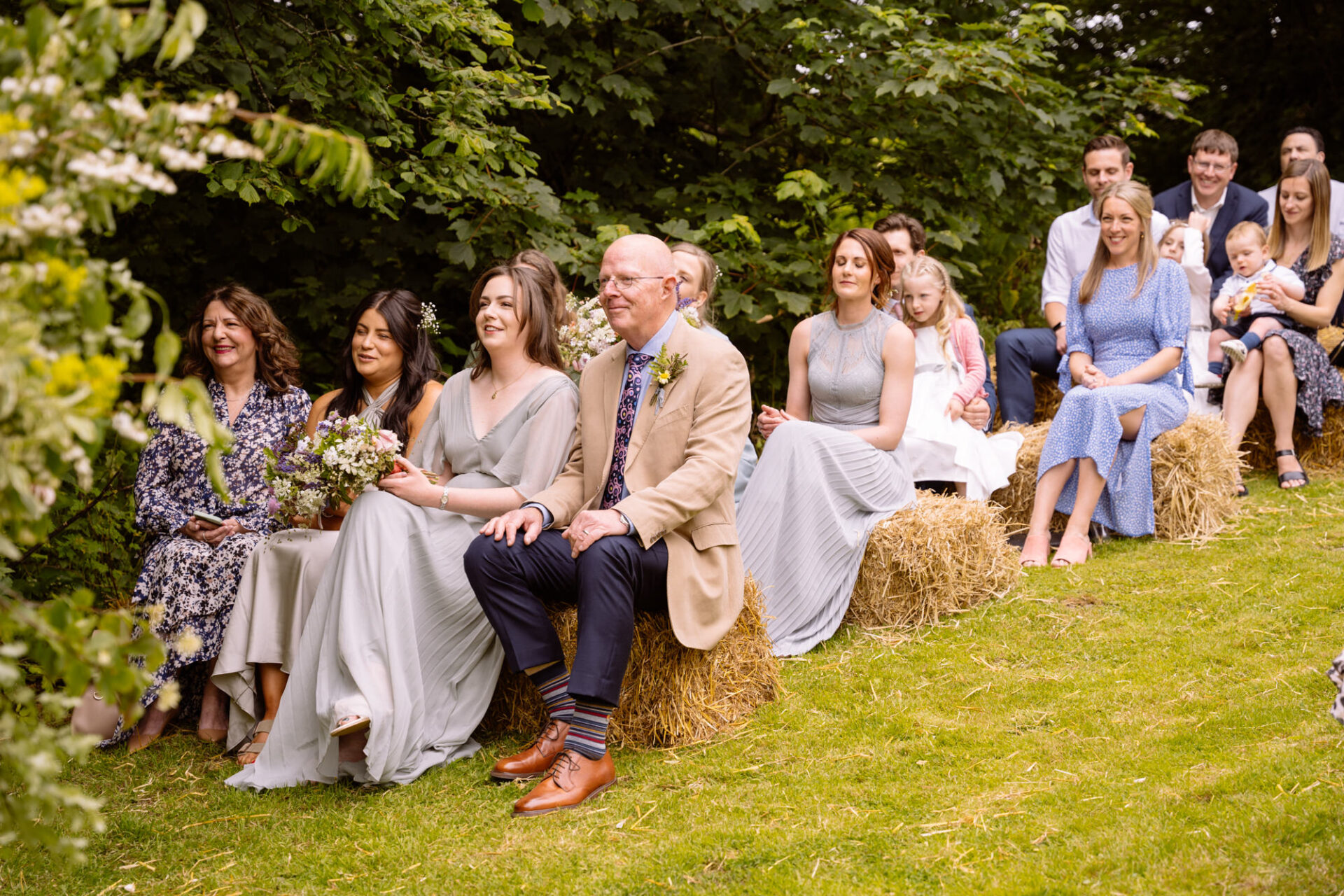 The beautiful area reserved for the ceremony at Barons Hill Farm is on a fairly steep hill. On the morning of Harriet and Mike’s wedding, the dew was taking a while to lift. Therefore the slightly damp grass was a more than a little greasy. This could have proved disasterous for anyone wearing any kind of high-heeled footwear. Namely, the entire bridal party! A phone call to one of the bridesmaids’ partners later and we had a pair of Birkenstock sandals for everyone!