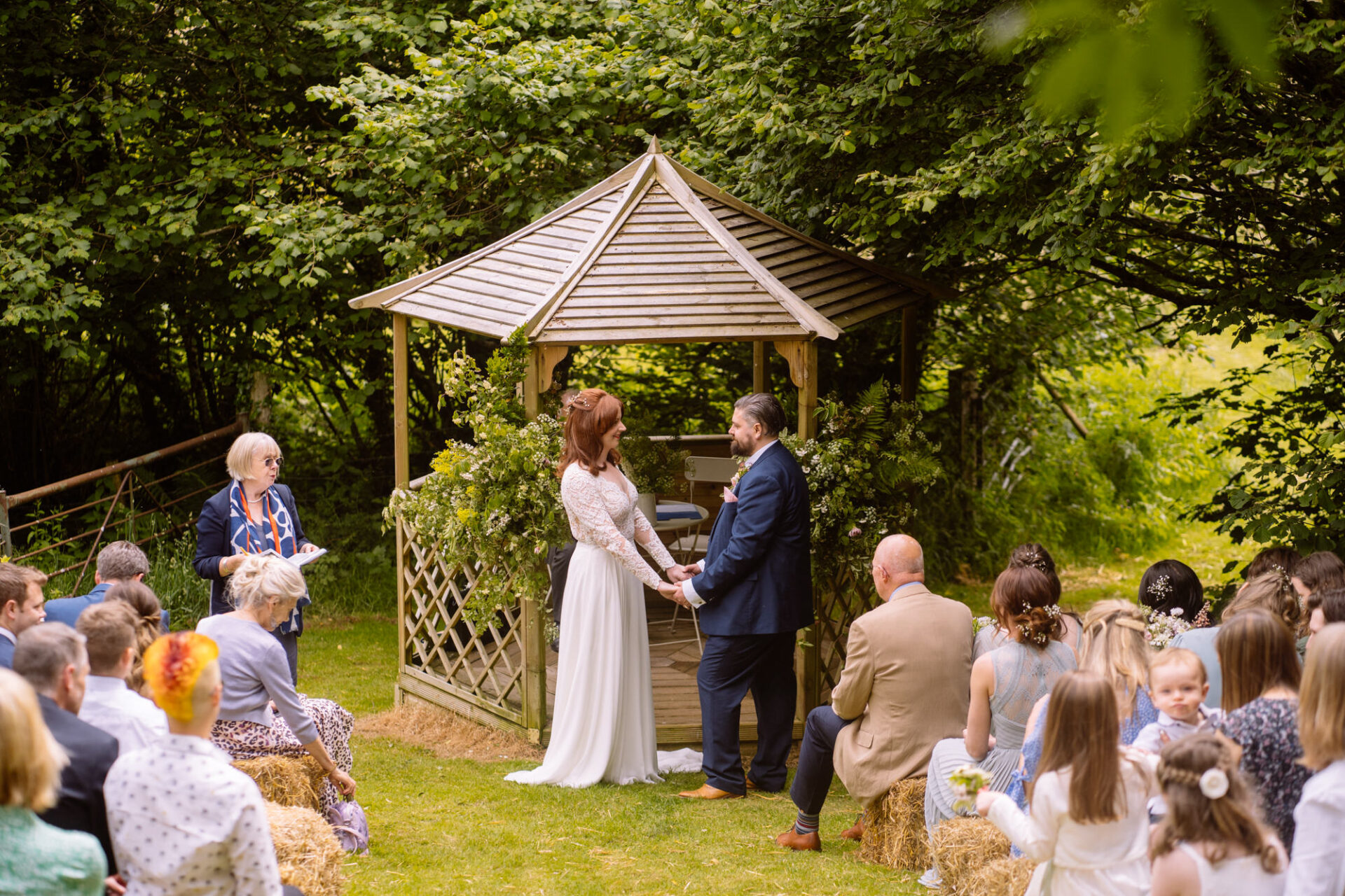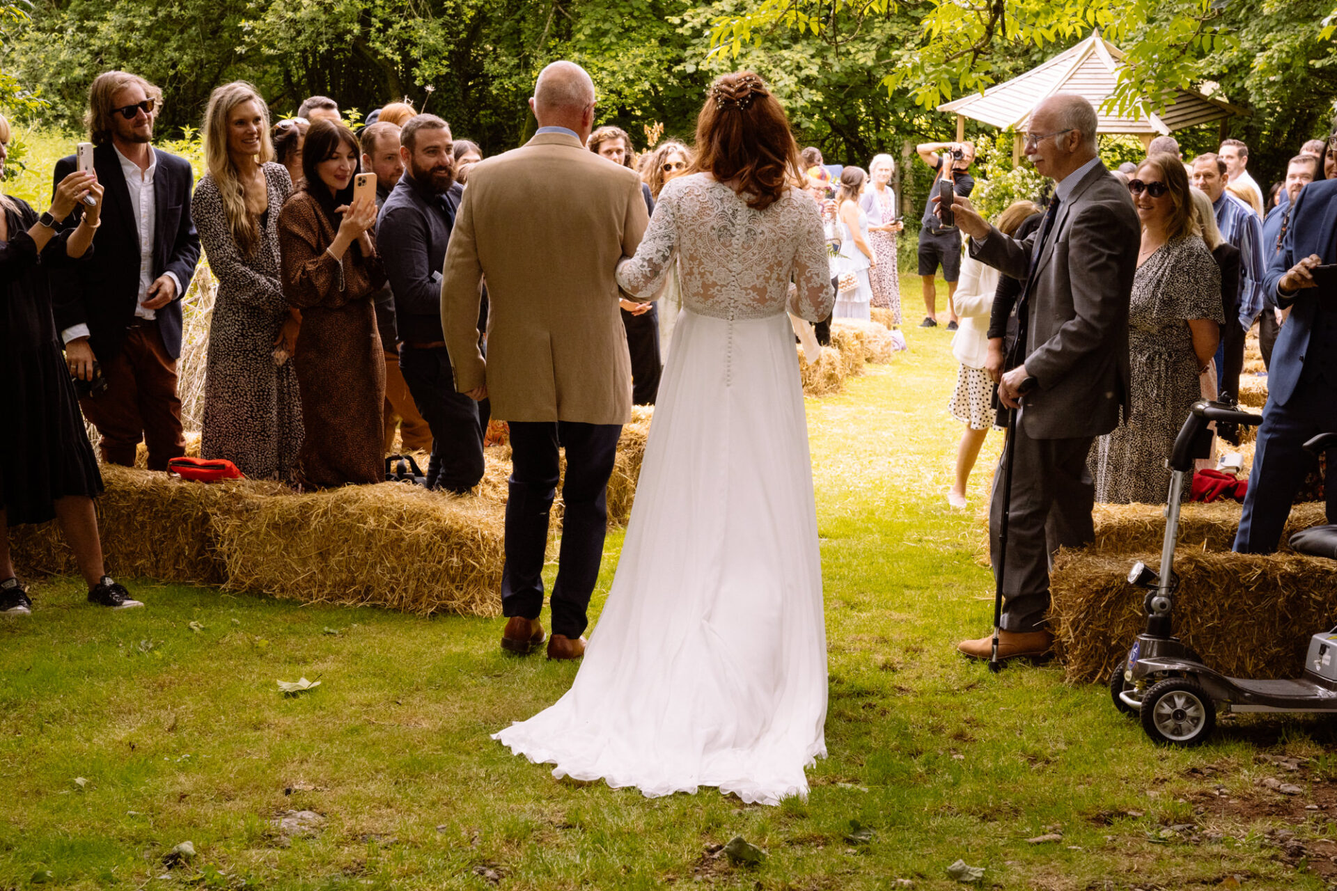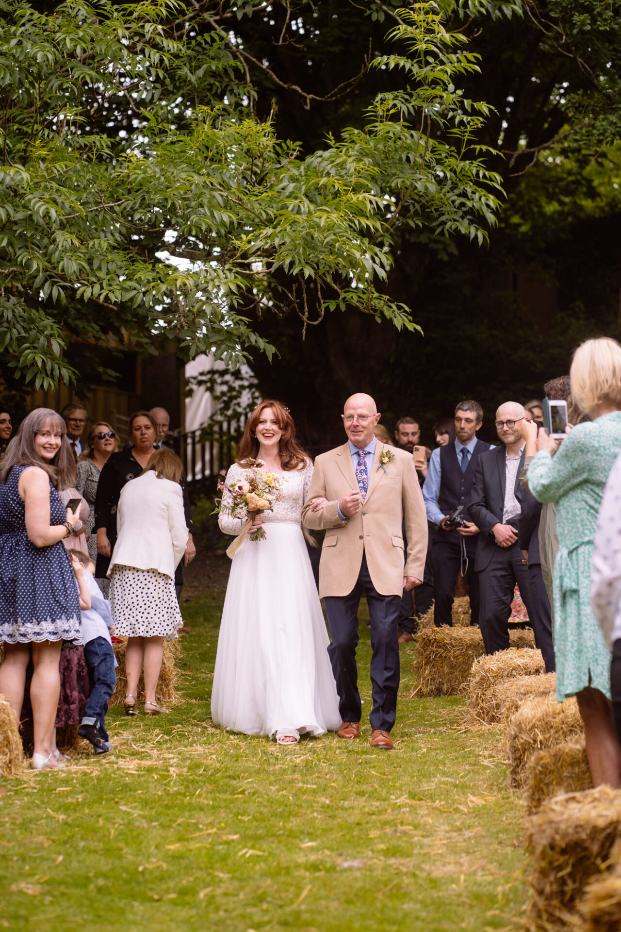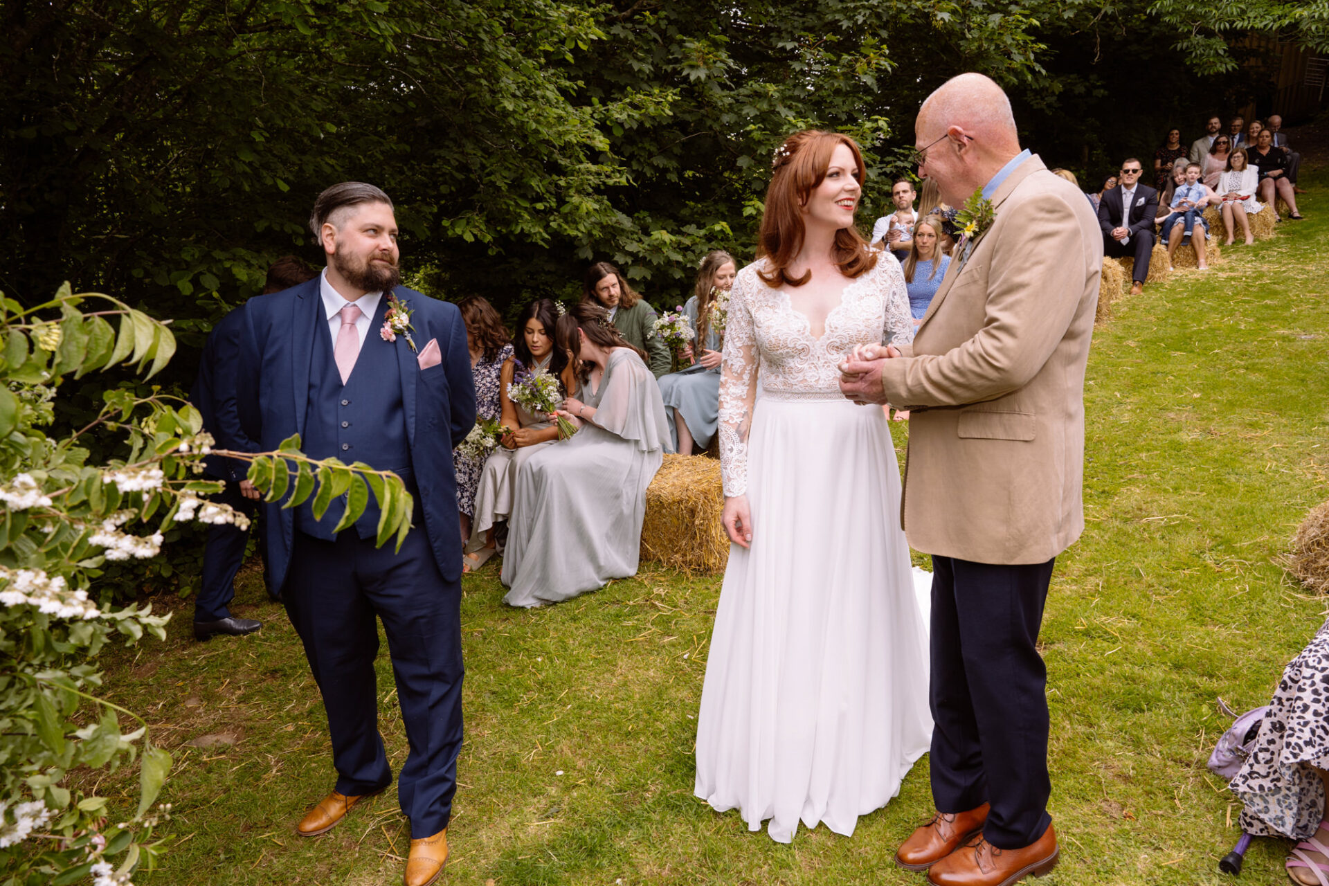 The beautiful area reserved for the ceremony at Barons Hill Farm is on a fairly steep hill. On the morning of Harriet and Mike’s wedding, the dew was taking a while to lift. Therefore the slightly damp grass was a more than a little greasy. This could have proved disasterous for anyone wearing any kind of high-heeled footwear. Namely, the entire bridal party! A phone call to one of the bridesmaids’ partners later and we had a pair of Birkenstock sandals for everyone!