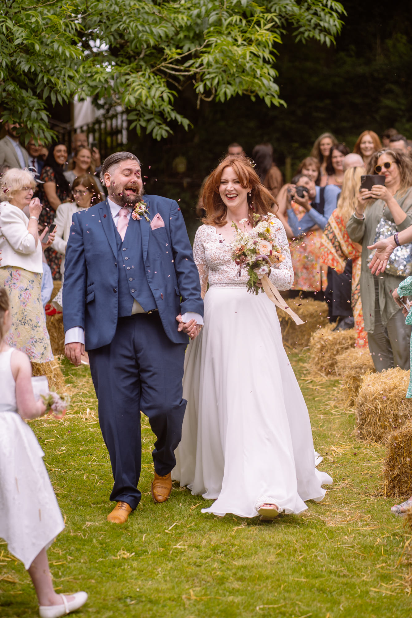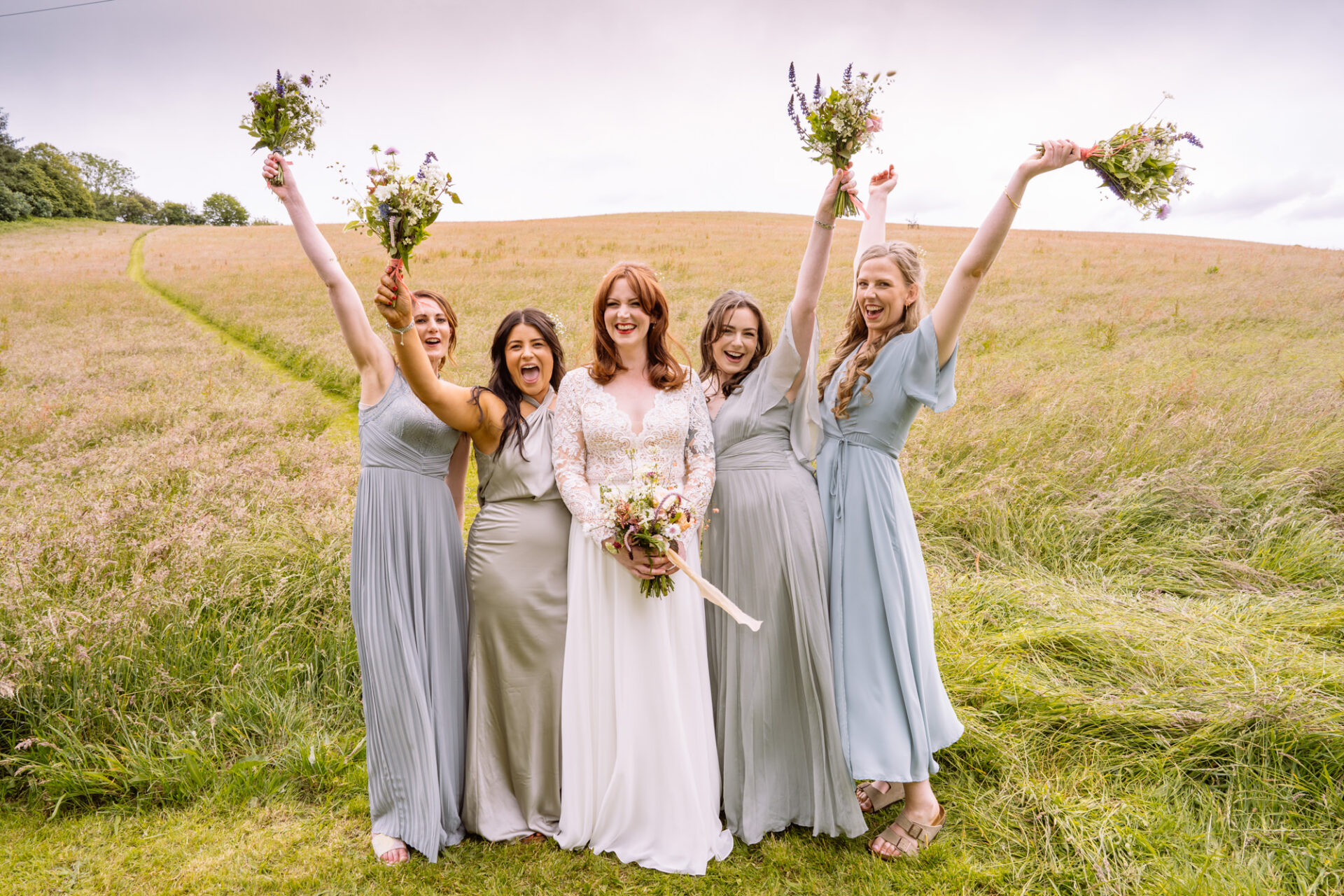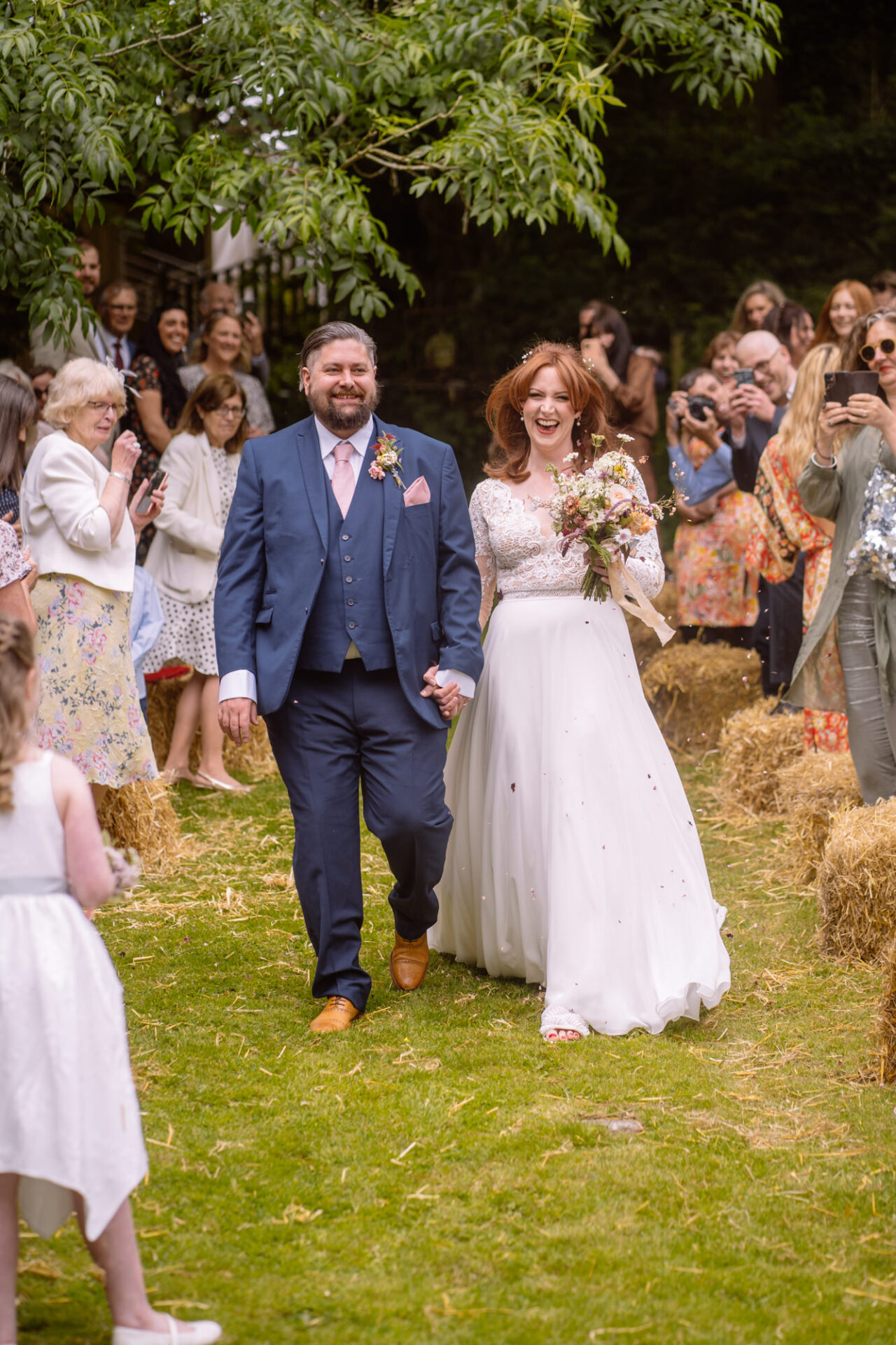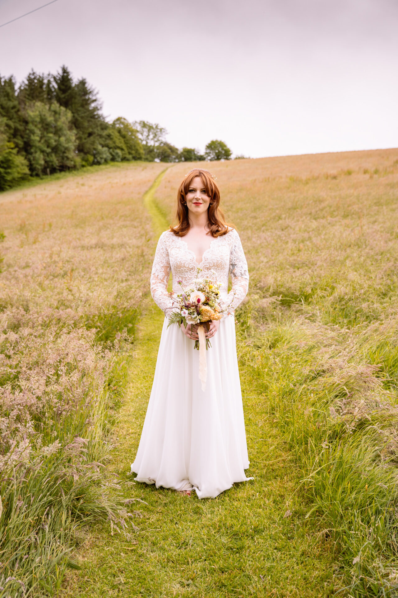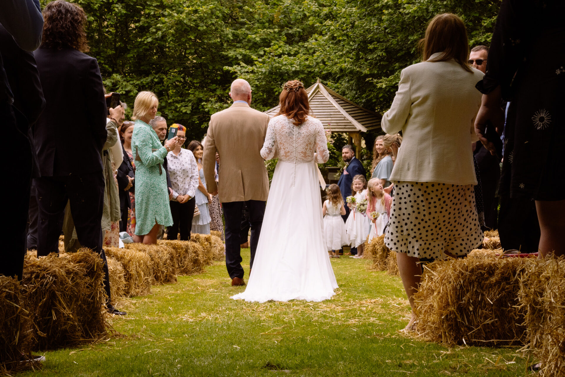 The beautiful area reserved for the ceremony at Barons Hill Farm is on a fairly steep hill. On the morning of Harriet and Mike’s wedding, the dew was taking a while to lift. Therefore the slightly damp grass was a more than a little greasy. This could have proved disasterous for anyone wearing any kind of high-heeled footwear. Namely, the entire bridal party! A phone call to one of the bridesmaids’ partners later and we had a pair of Birkenstock sandals for everyone!