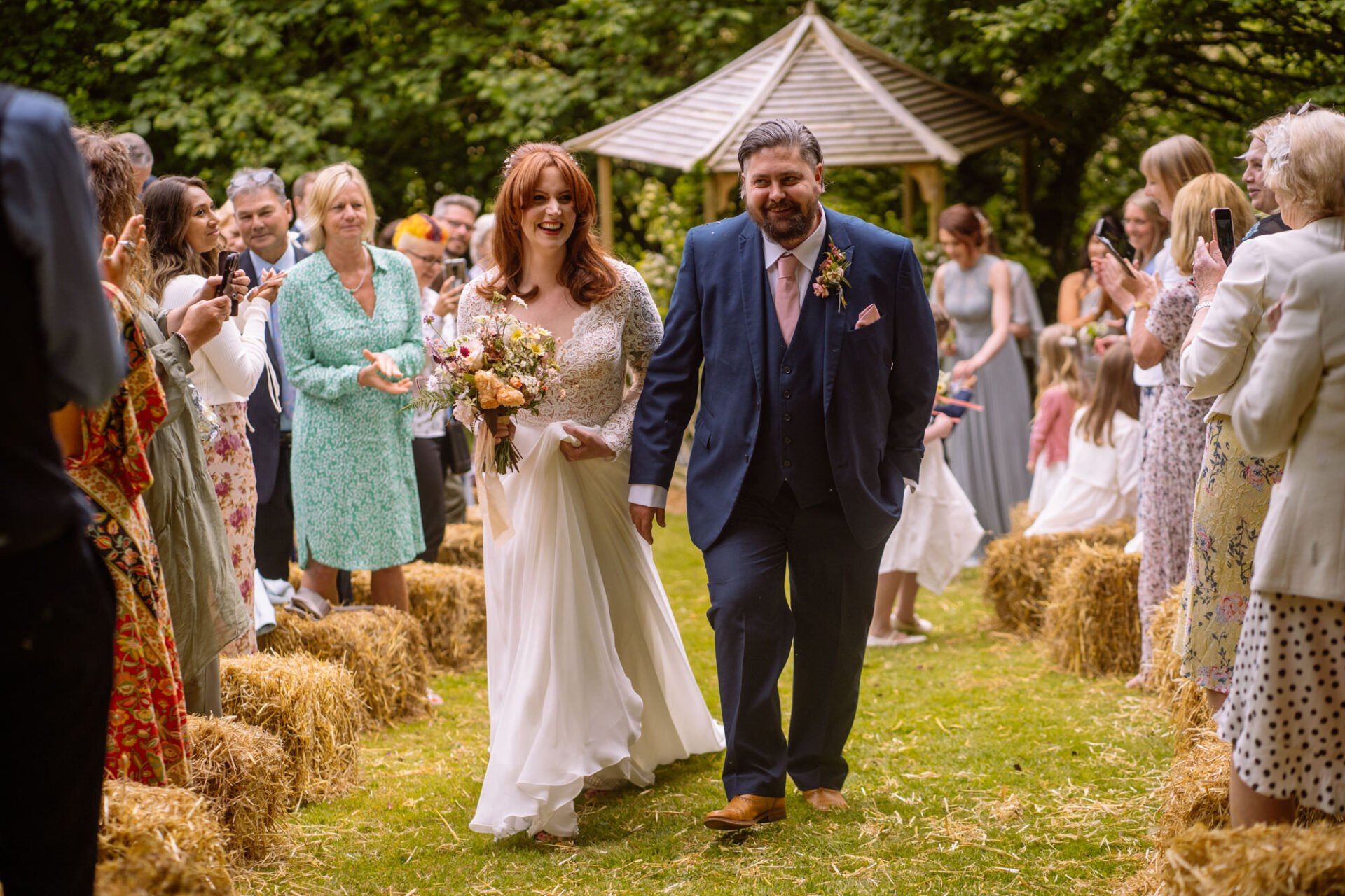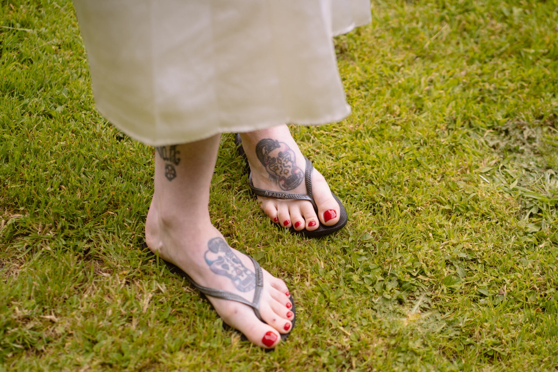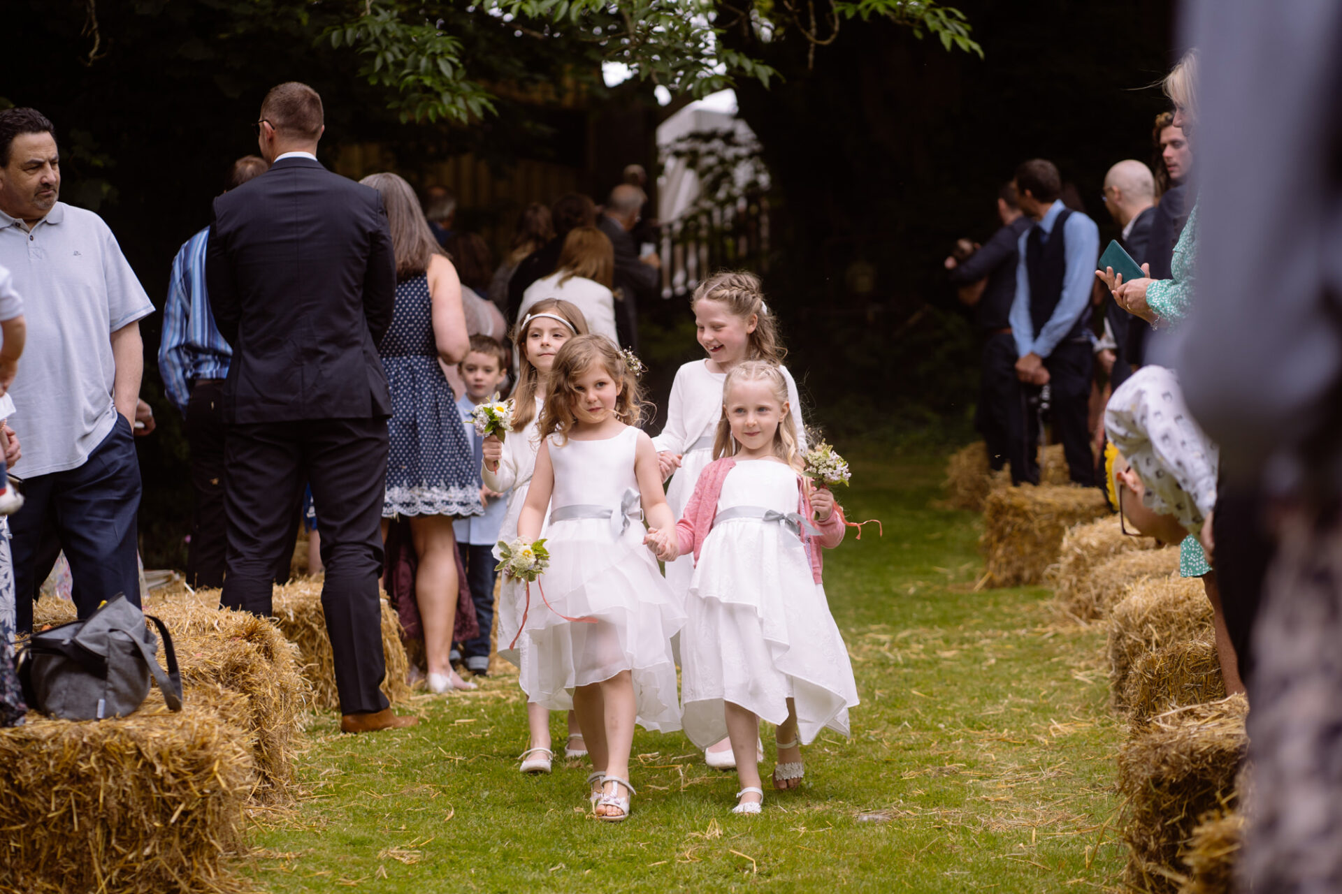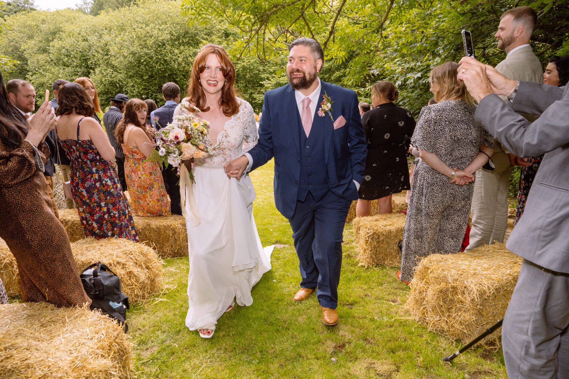 The beautiful area reserved for the ceremony at Barons Hill Farm is on a fairly steep hill. On the morning of Harriet and Mike’s wedding, the dew was taking a while to lift. Therefore the slightly damp grass was a more than a little greasy. This could have proved disasterous for anyone wearing any kind of high-heeled footwear. Namely, the entire bridal party! A phone call to one of the bridesmaids’ partners later and we had a pair of Birkenstock sandals for everyone!