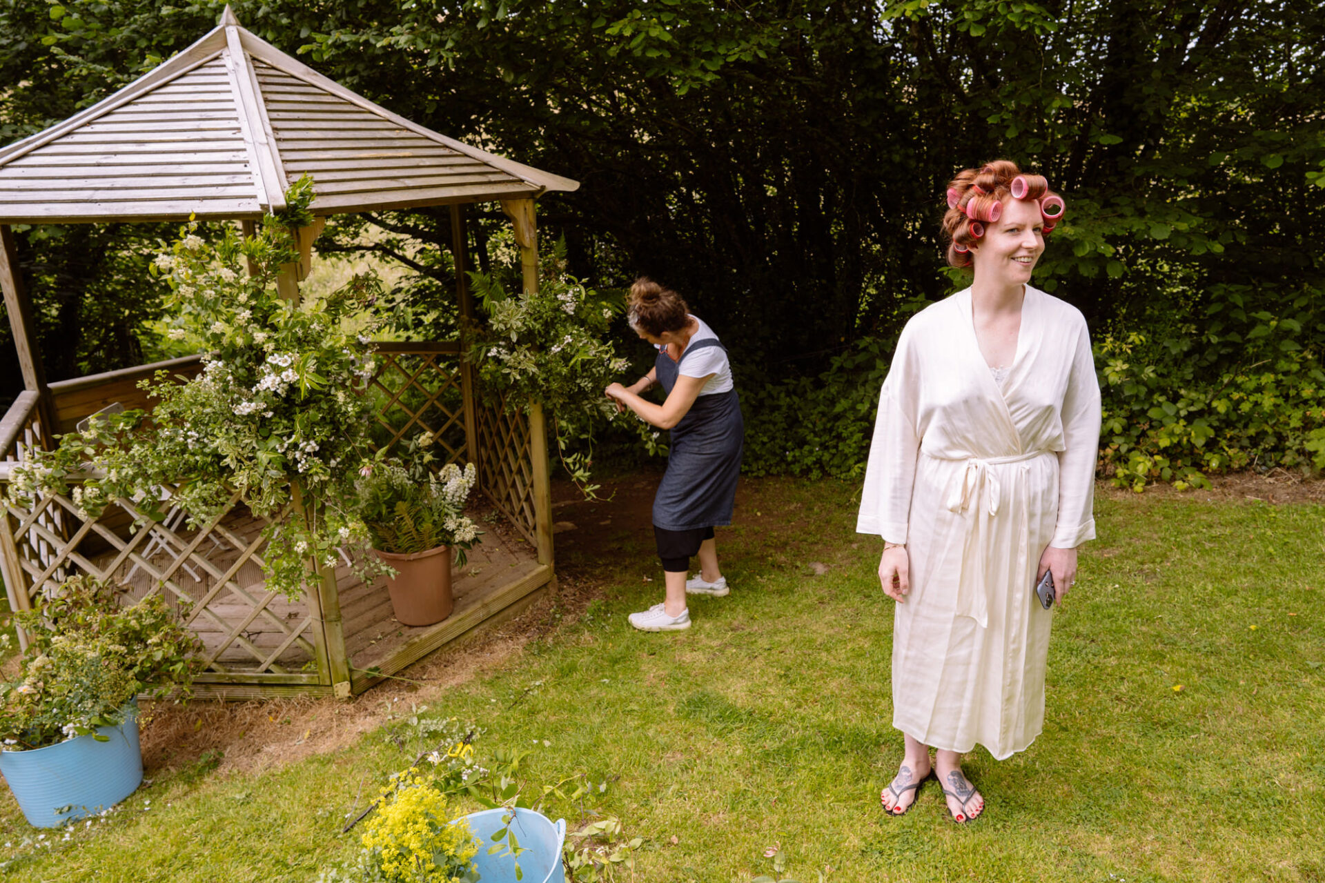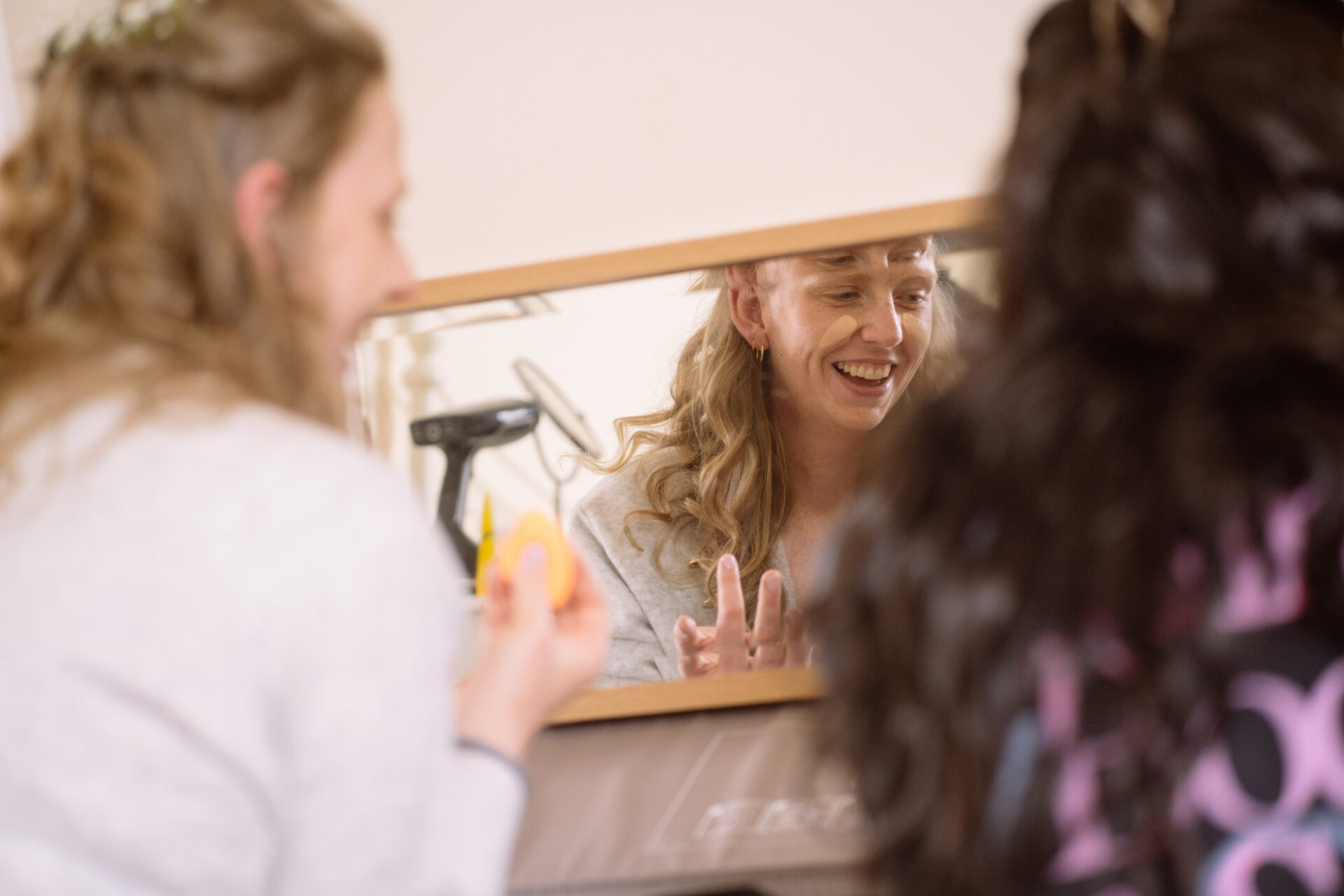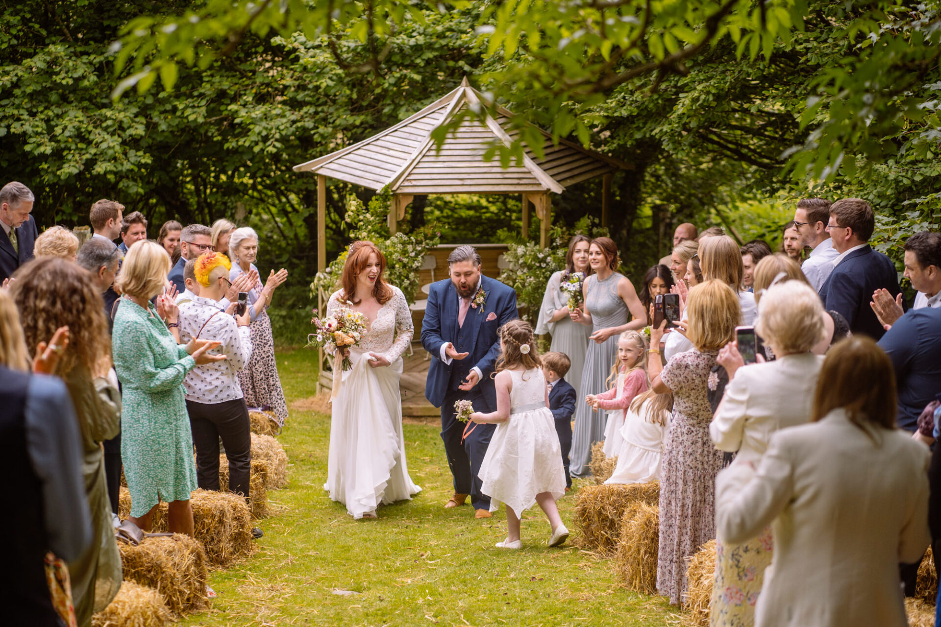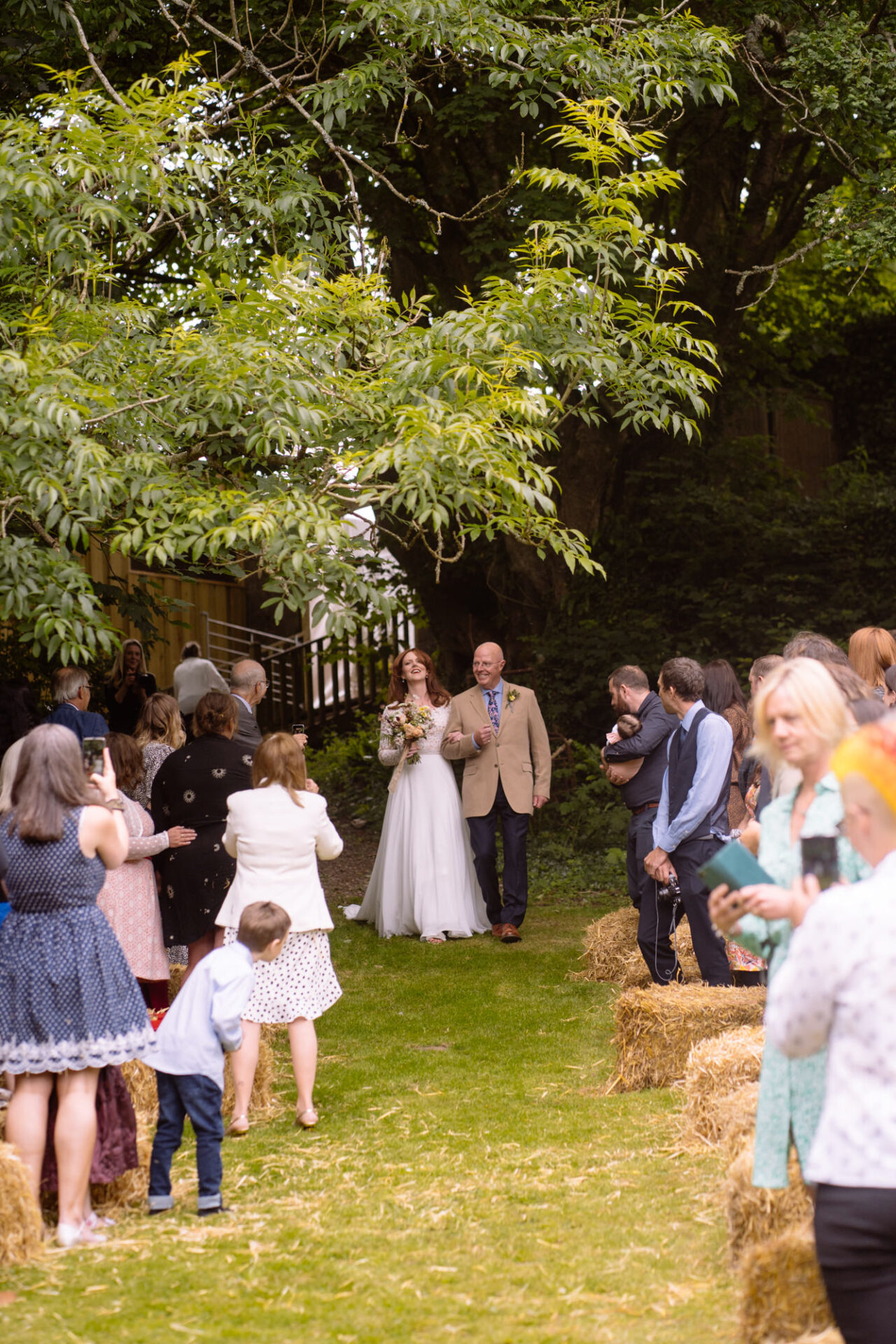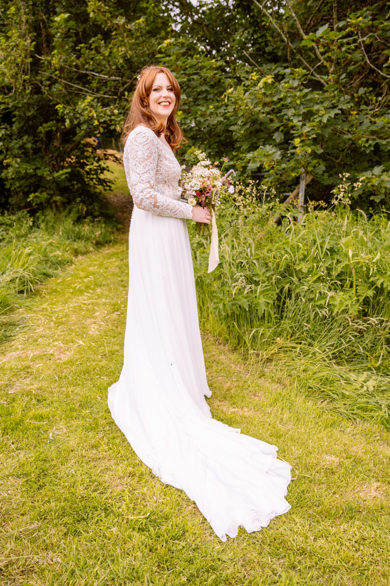 The beautiful area reserved for the ceremony at Barons Hill Farm is on a fairly steep hill. On the morning of Harriet and Mike’s wedding, the dew was taking a while to lift. Therefore the slightly damp grass was a more than a little greasy. This could have proved disasterous for anyone wearing any kind of high-heeled footwear. Namely, the entire bridal party! A phone call to one of the bridesmaids’ partners later and we had a pair of Birkenstock sandals for everyone!