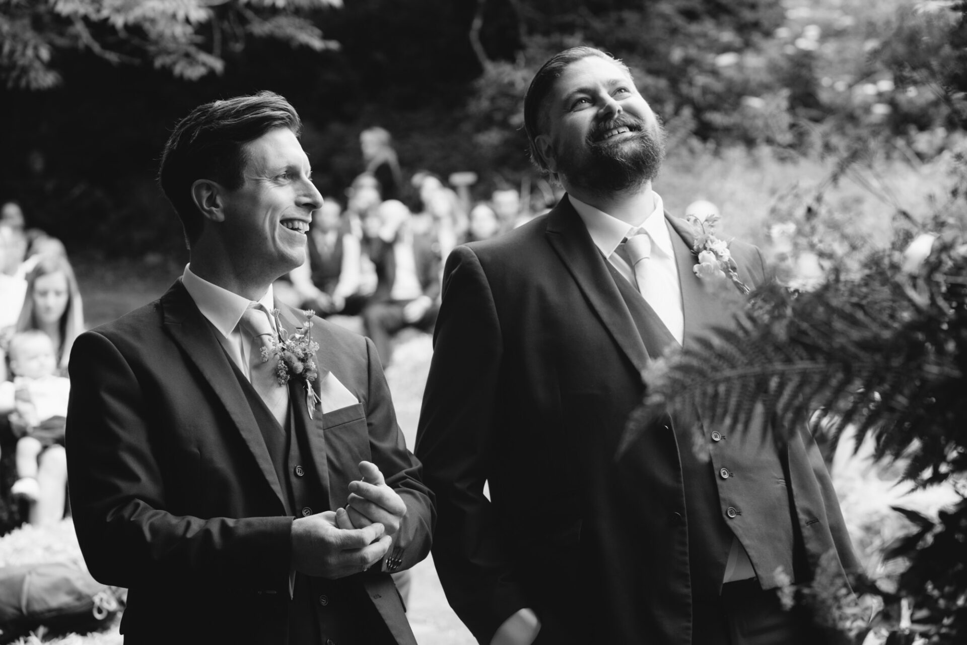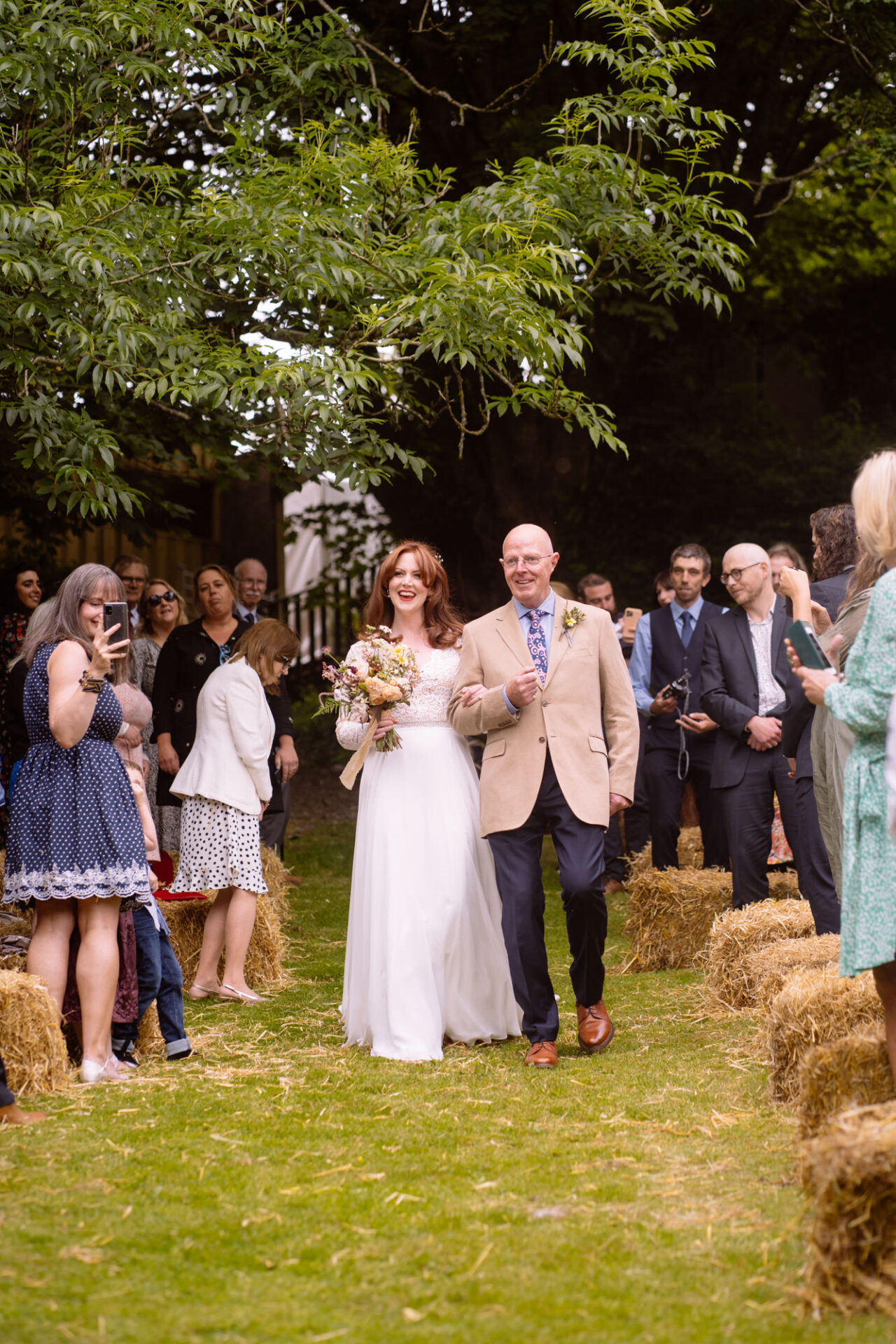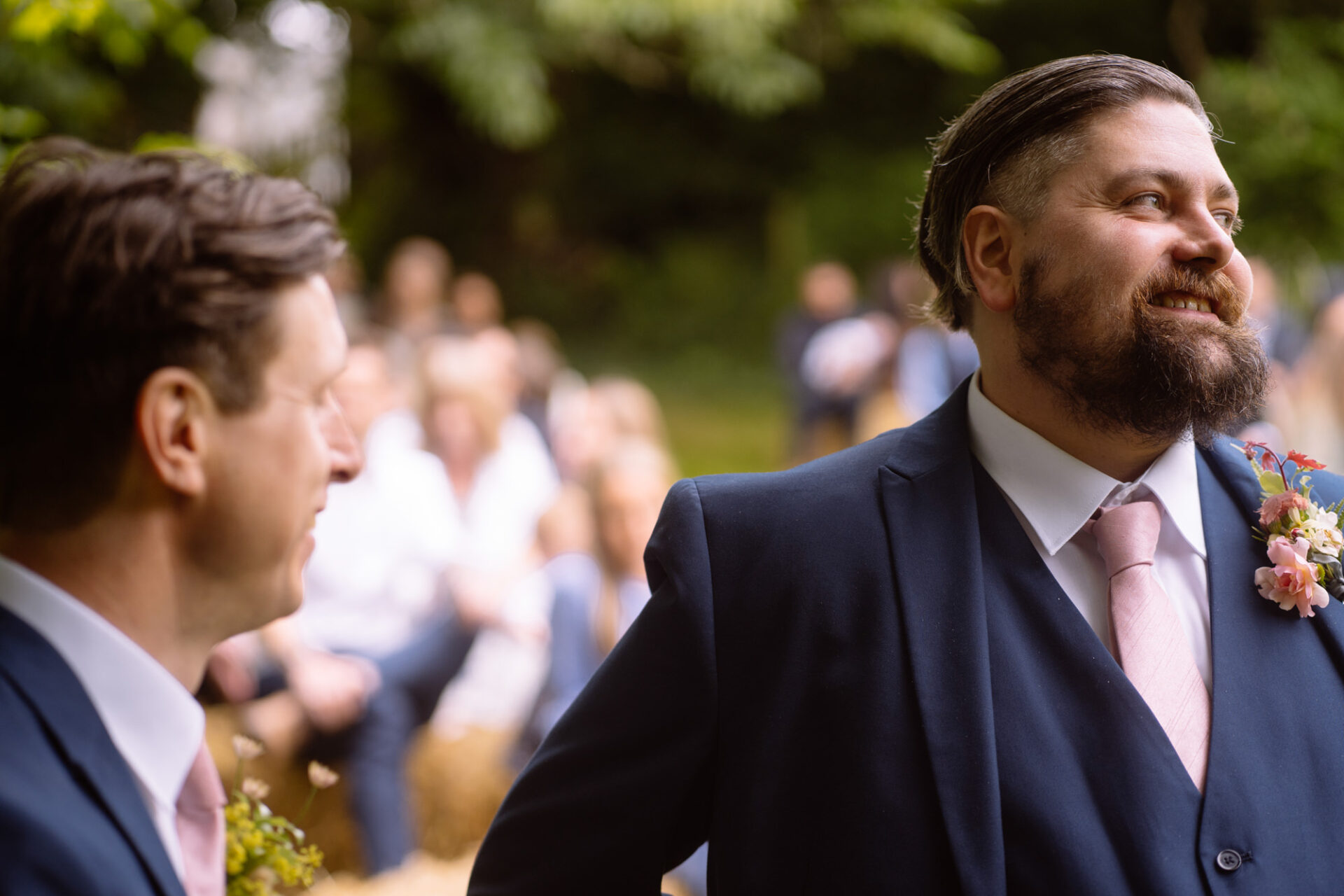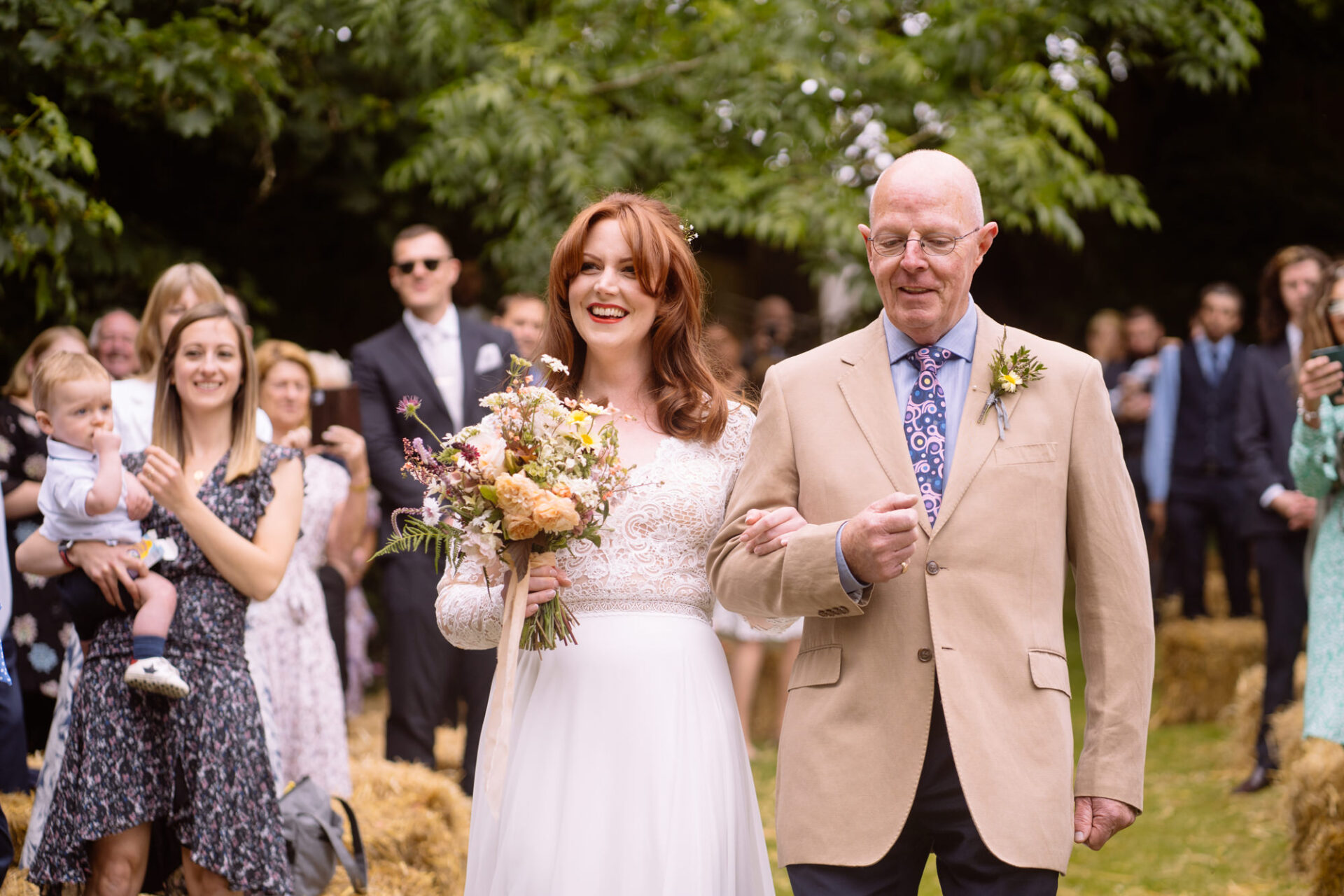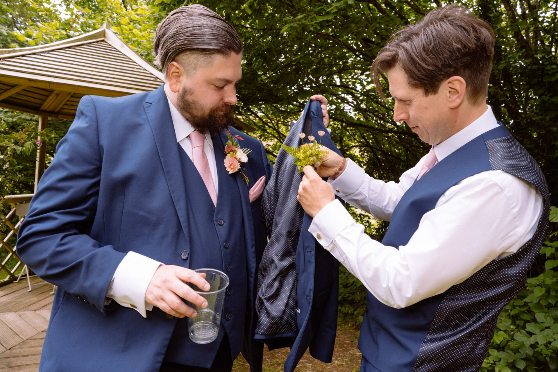 The beautiful area reserved for the ceremony at Barons Hill Farm is on a fairly steep hill. On the morning of Harriet and Mike’s wedding, the dew was taking a while to lift. Therefore the slightly damp grass was a more than a little greasy. This could have proved disasterous for anyone wearing any kind of high-heeled footwear. Namely, the entire bridal party! A phone call to one of the bridesmaids’ partners later and we had a pair of Birkenstock sandals for everyone!