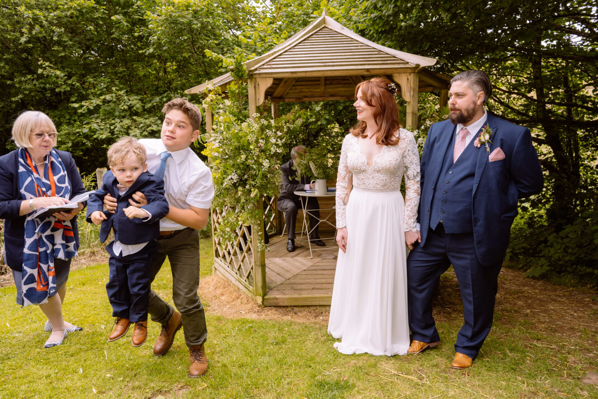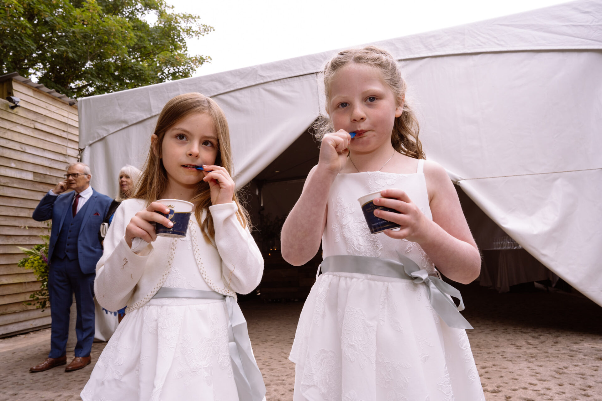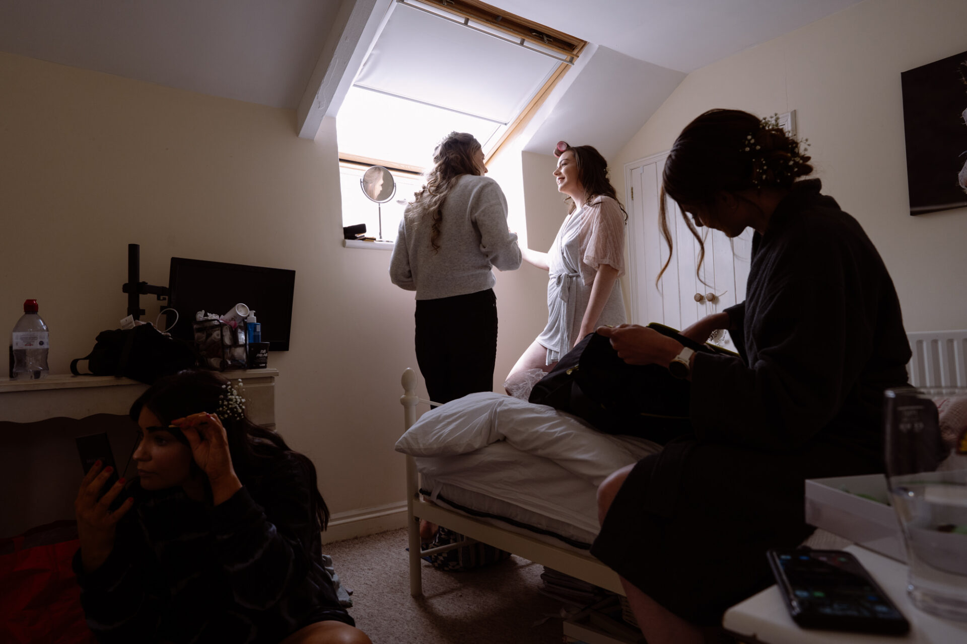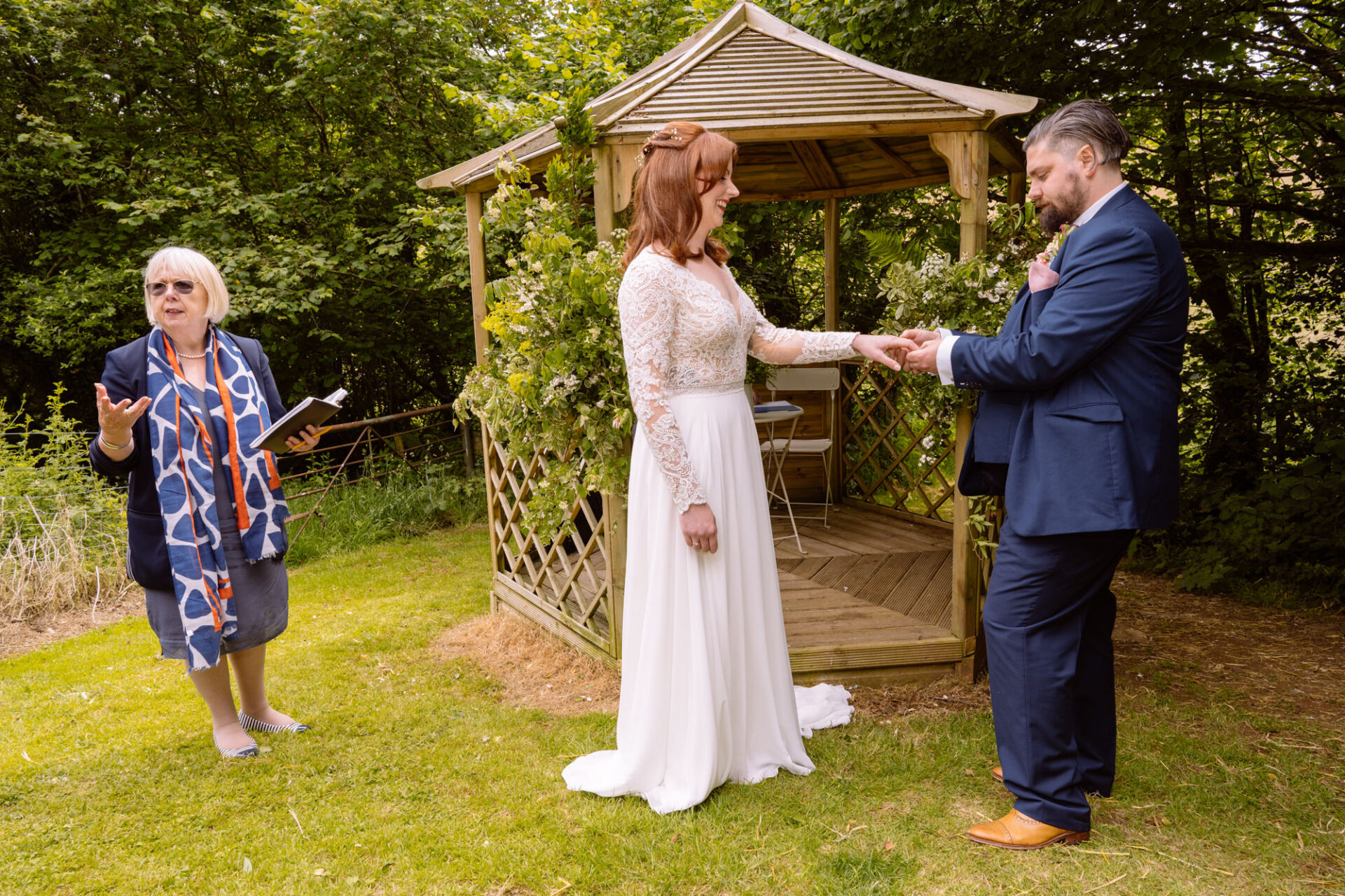 The beautiful area reserved for the ceremony at Barons Hill Farm is on a fairly steep hill. On the morning of Harriet and Mike’s wedding, the dew was taking a while to lift. Therefore the slightly damp grass was a more than a little greasy. This could have proved disasterous for anyone wearing any kind of high-heeled footwear. Namely, the entire bridal party! A phone call to one of the bridesmaids’ partners later and we had a pair of Birkenstock sandals for everyone!