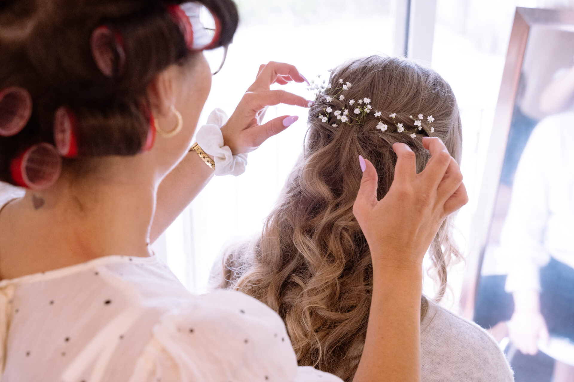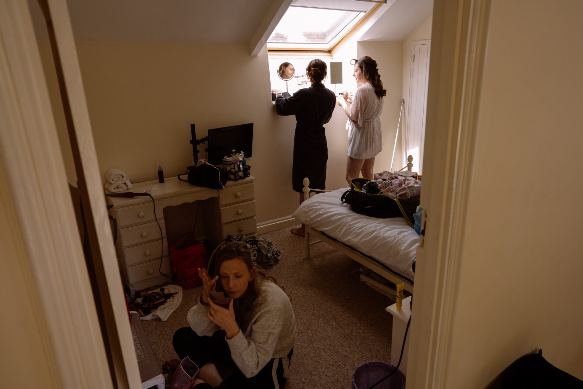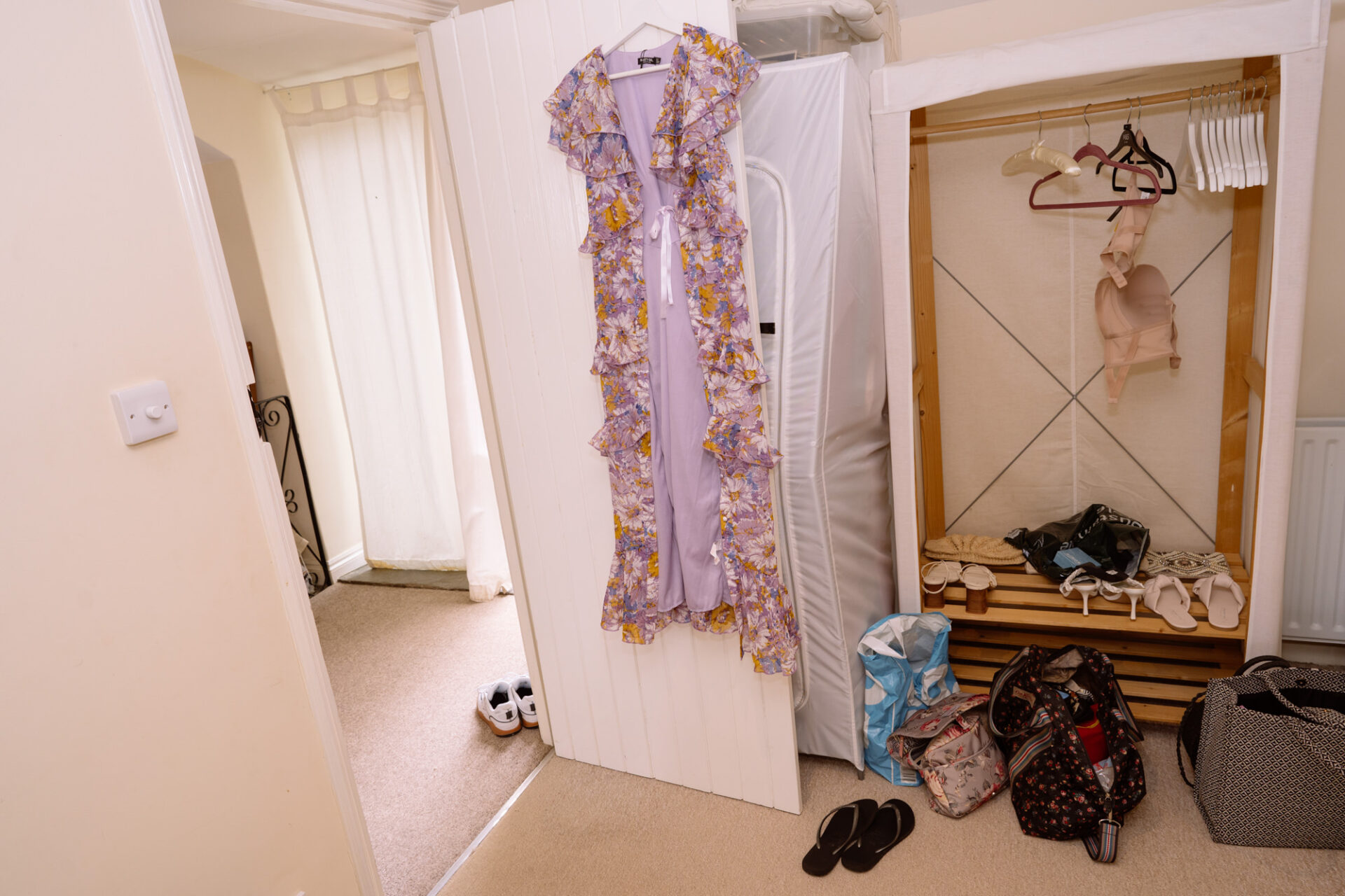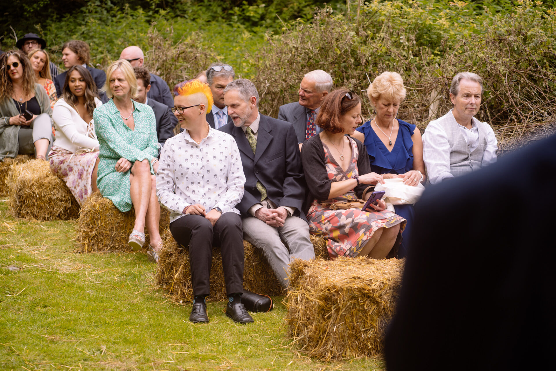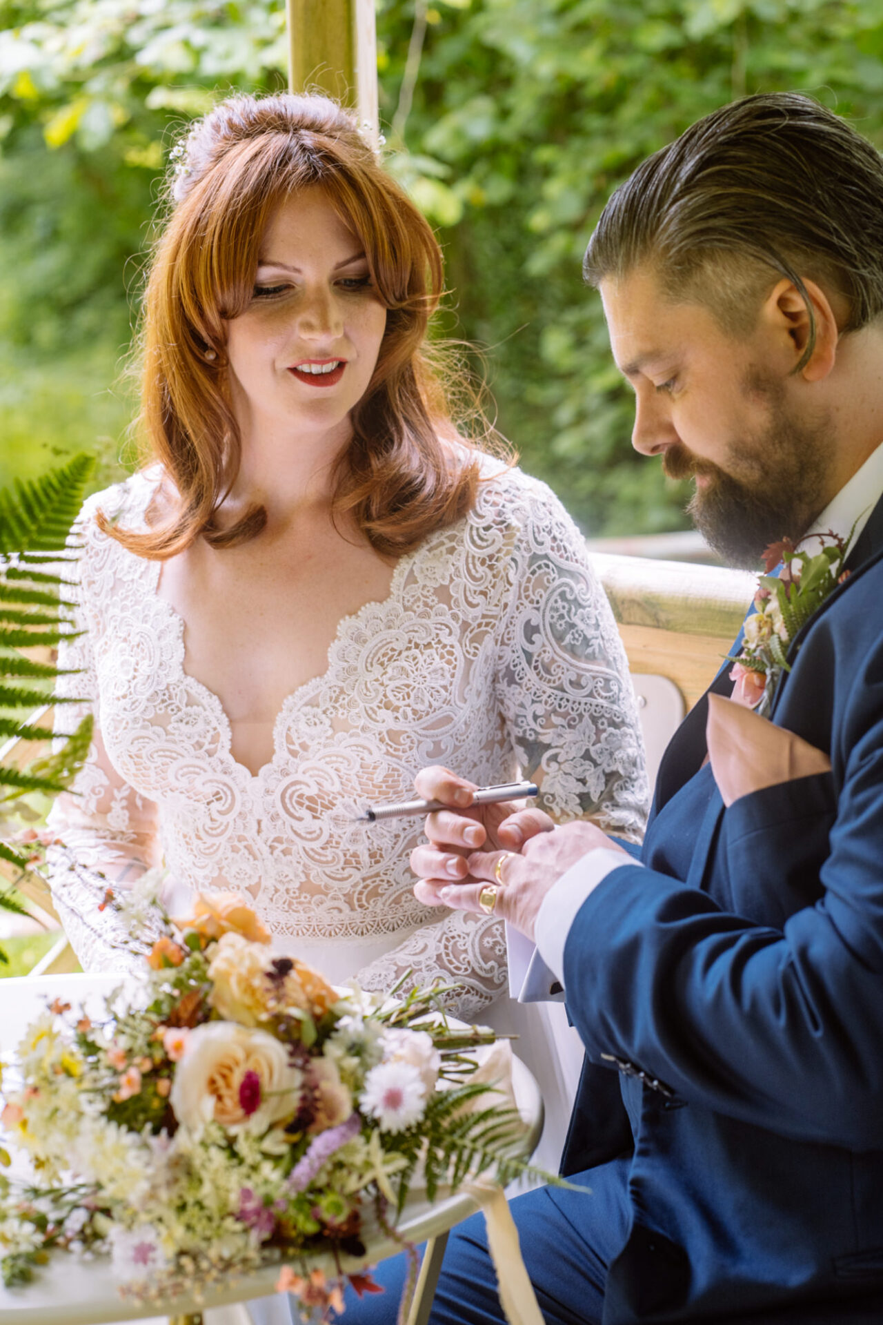 The beautiful area reserved for the ceremony at Barons Hill Farm is on a fairly steep hill. On the morning of Harriet and Mike’s wedding, the dew was taking a while to lift. Therefore the slightly damp grass was a more than a little greasy. This could have proved disasterous for anyone wearing any kind of high-heeled footwear. Namely, the entire bridal party! A phone call to one of the bridesmaids’ partners later and we had a pair of Birkenstock sandals for everyone!