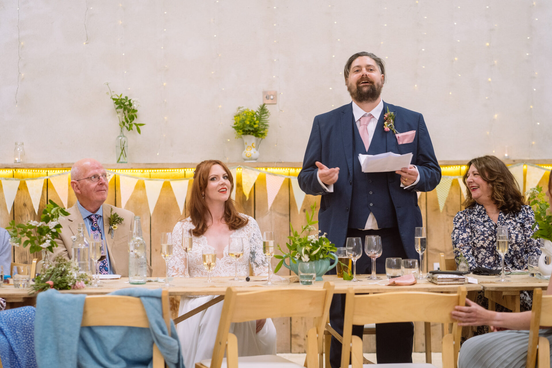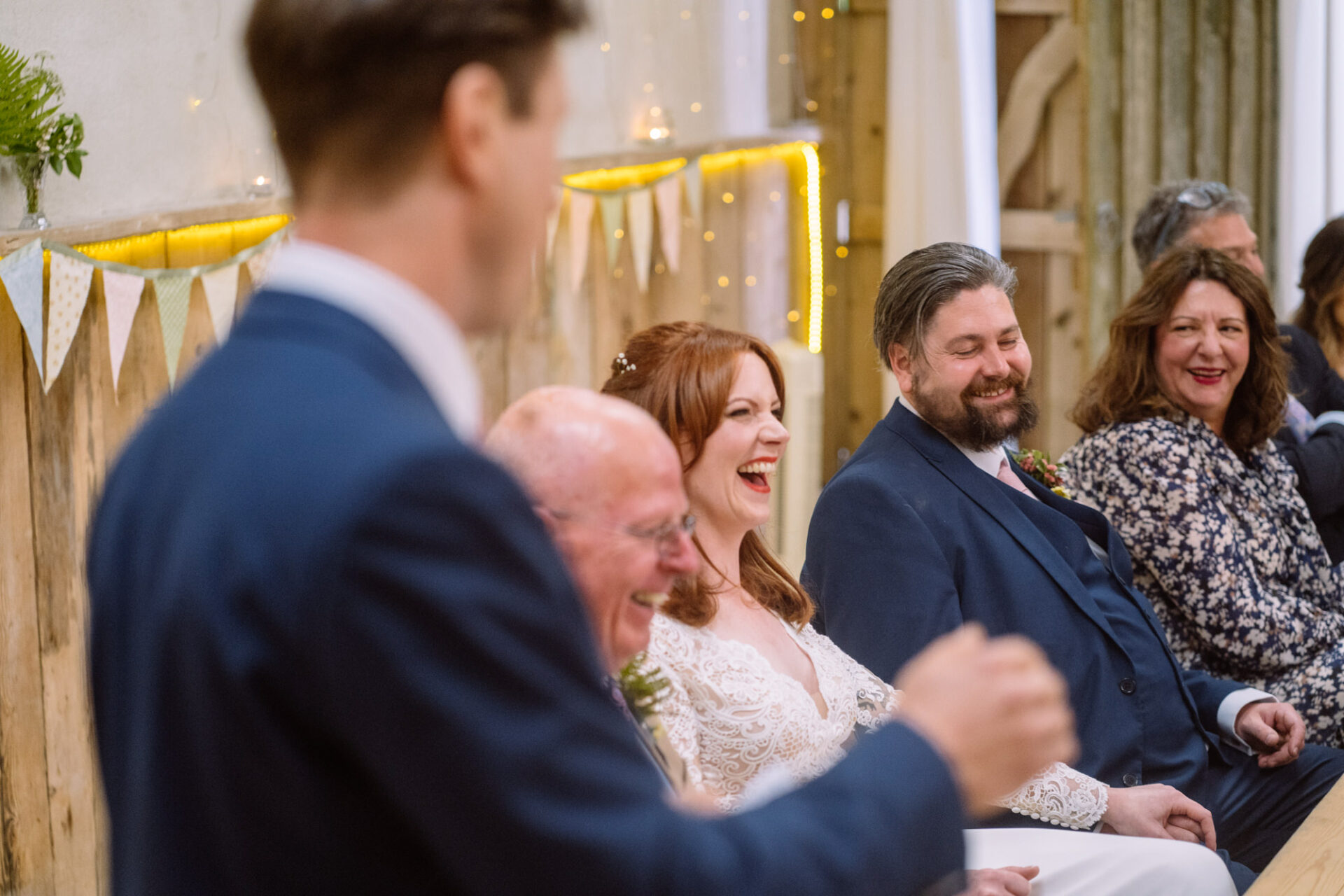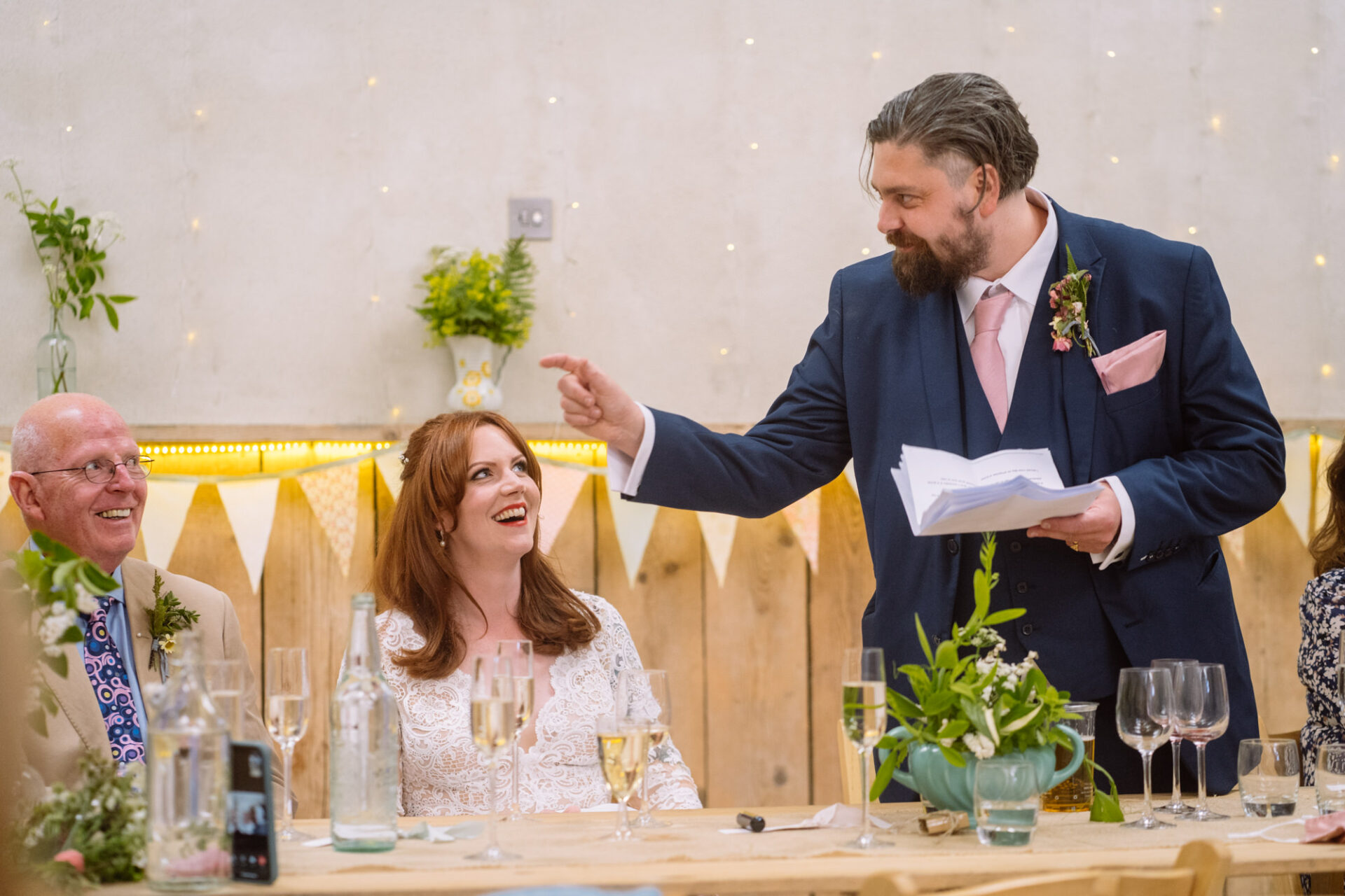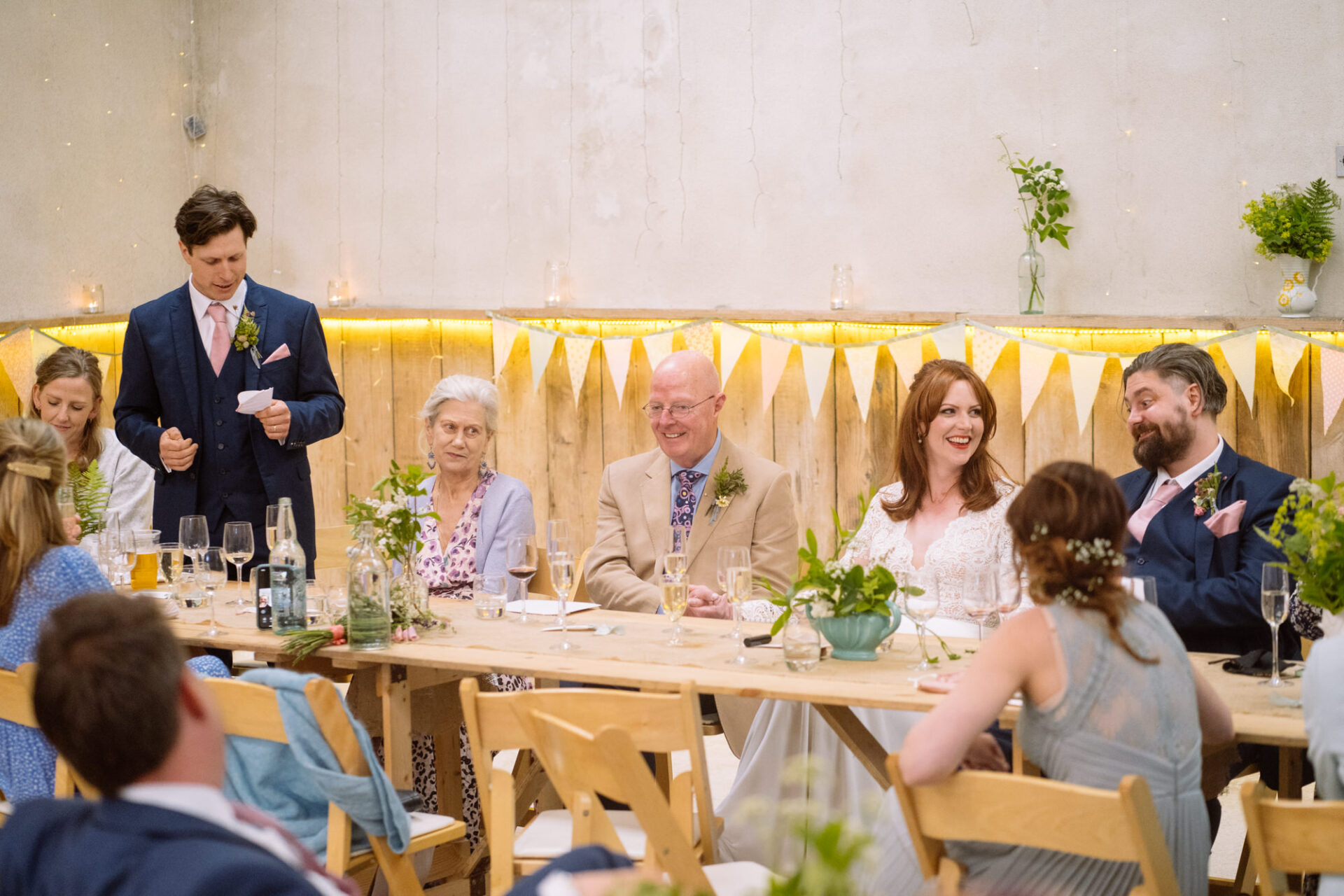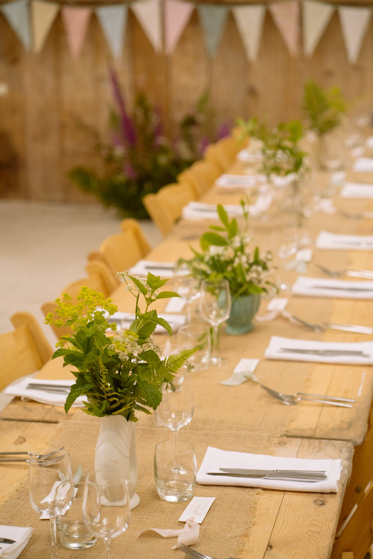 Flowers are always a big part of weddings. Indeed I have worked with many amazing florists. The flowers at this wedding were provided by one of Harriet and Mike’s good friends, Emma Vowles. I have to say that Emma’s designs were nothing short of stunning! The ceremony arbour at Barons Hill Farm was decorated in an incredible array of foliage that almost made it camoflage! Moreover, the barn and the entire rest of the venue was adorned with Emma’s creations that complimented the colour scheme and overall feel of the wedding.