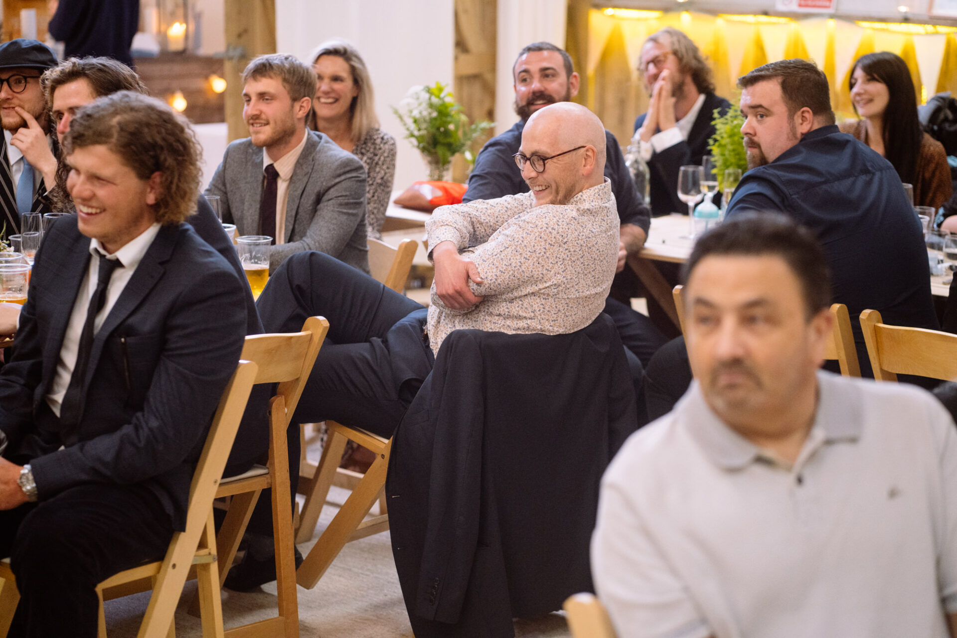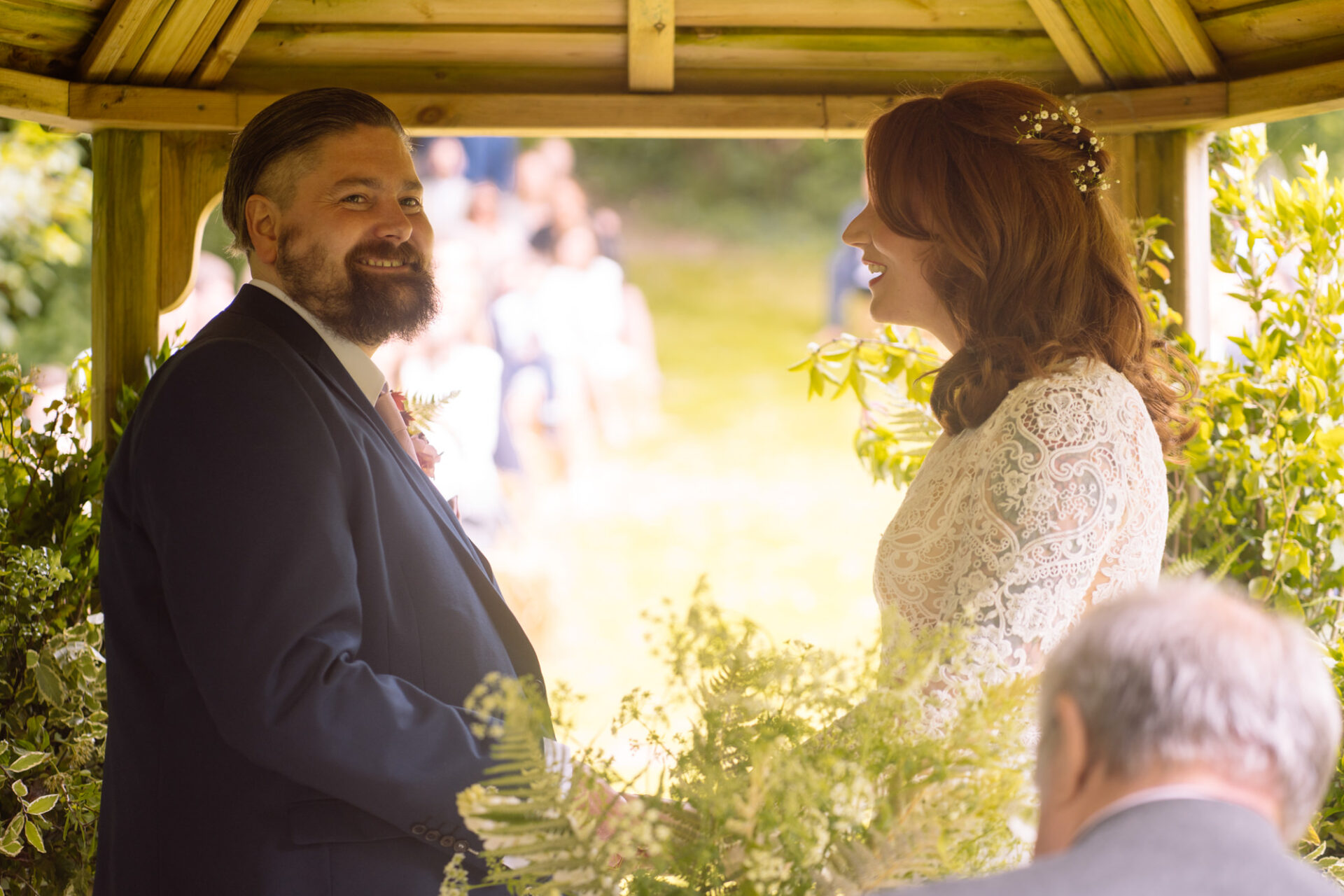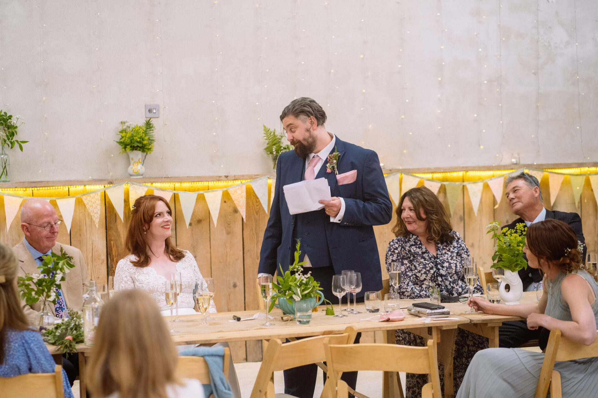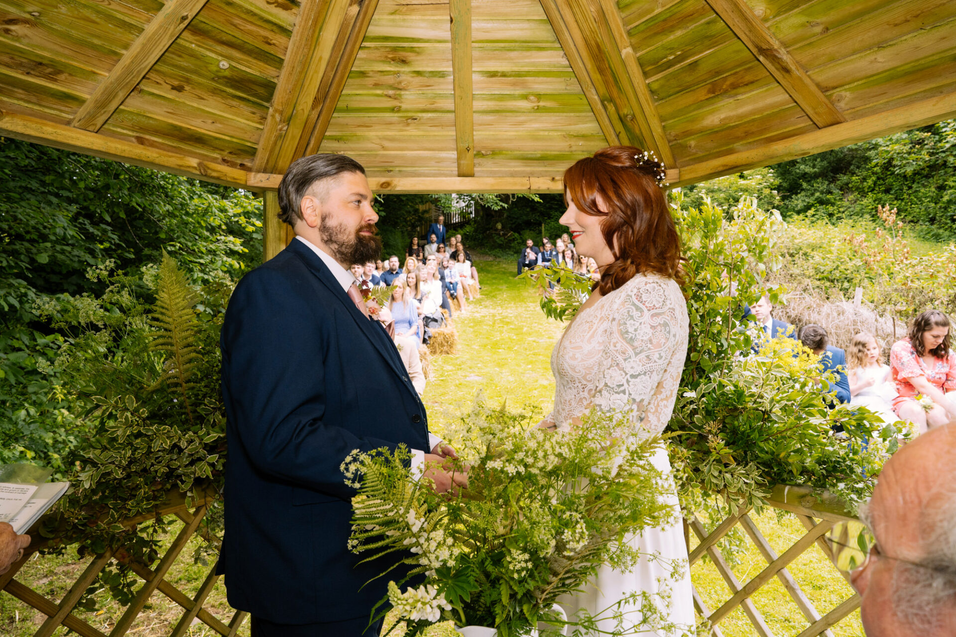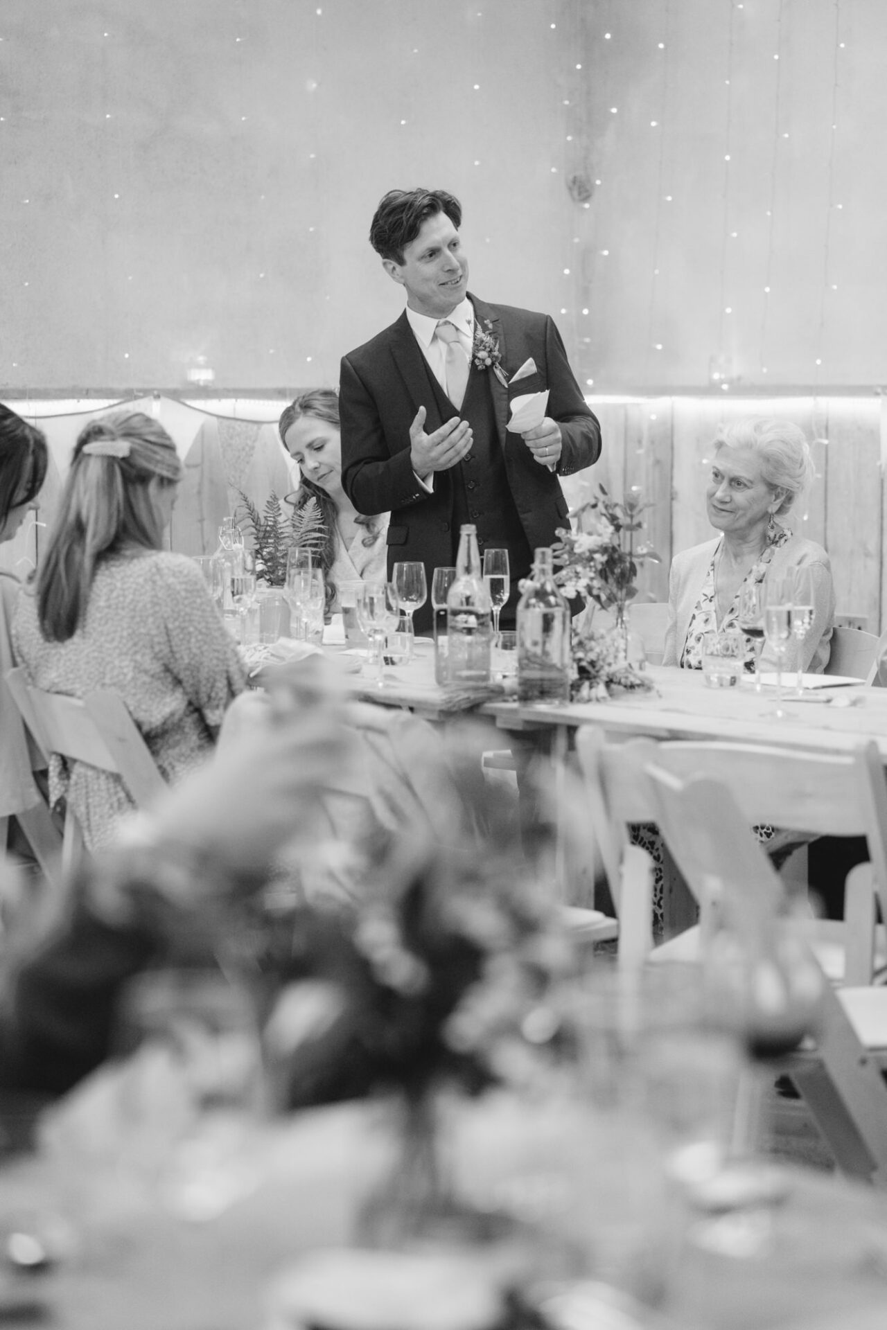 Flowers are always a big part of weddings. Indeed I have worked with many amazing florists. The flowers at this wedding were provided by one of Harriet and Mike’s good friends, Emma Vowles. I have to say that Emma’s designs were nothing short of stunning! The ceremony arbour at Barons Hill Farm was decorated in an incredible array of foliage that almost made it camoflage! Moreover, the barn and the entire rest of the venue was adorned with Emma’s creations that complimented the colour scheme and overall feel of the wedding.