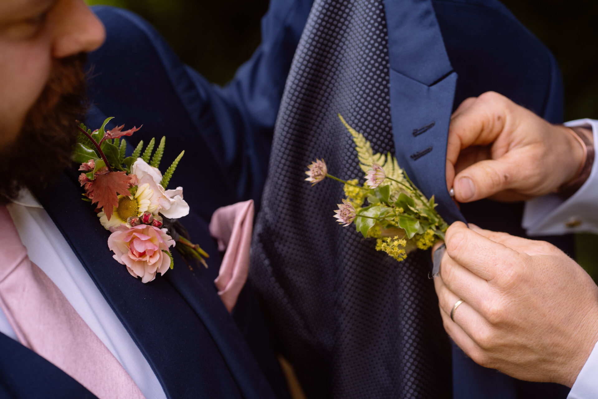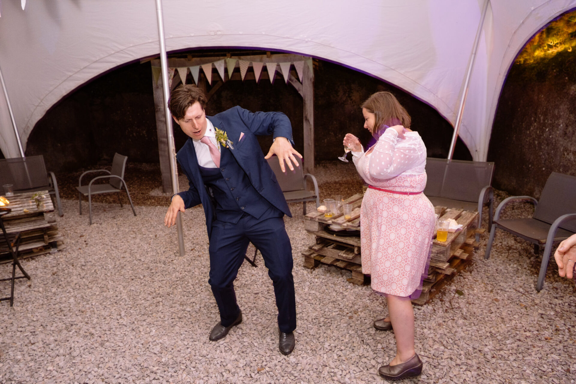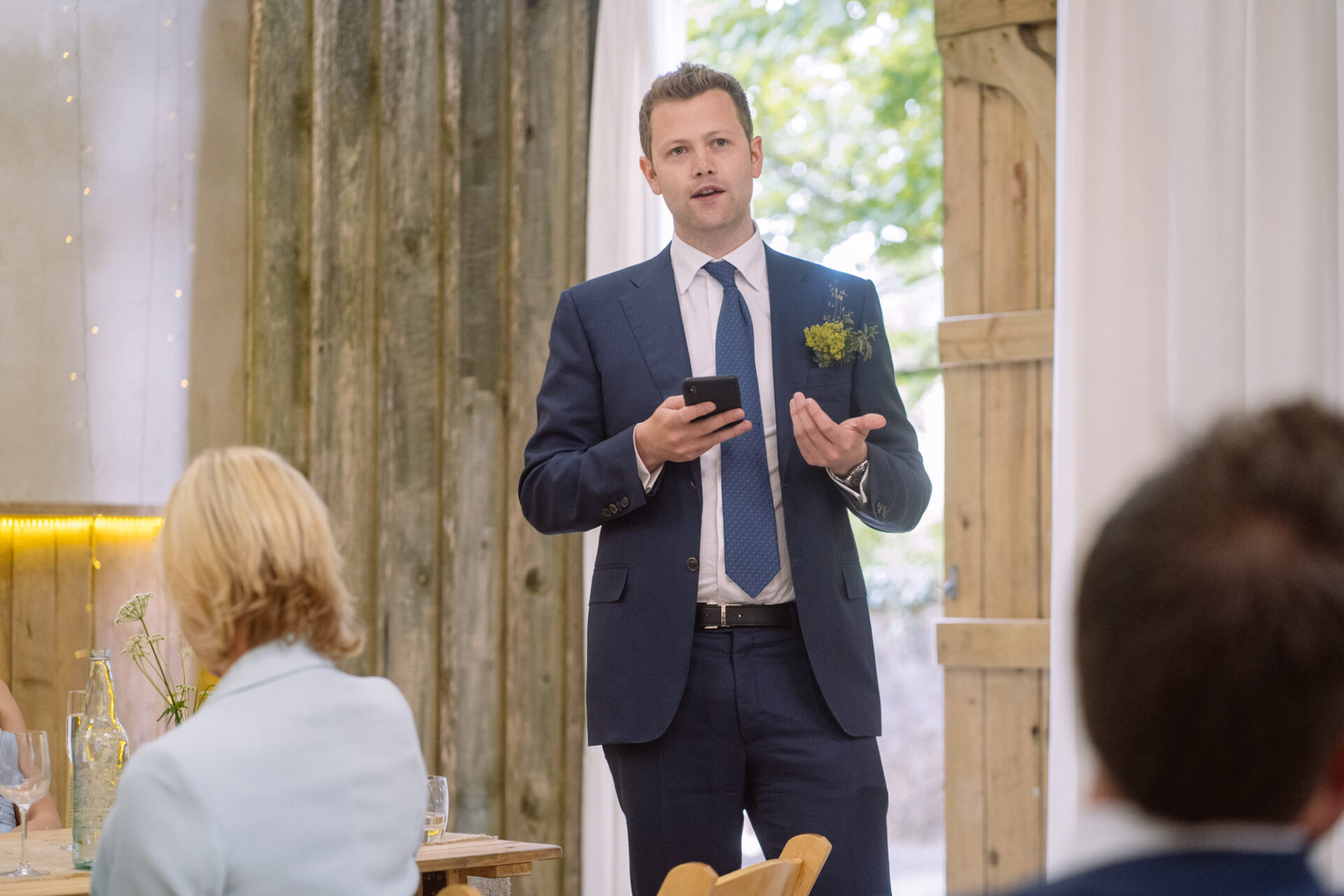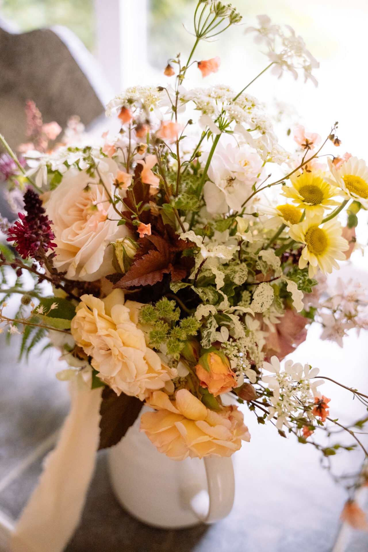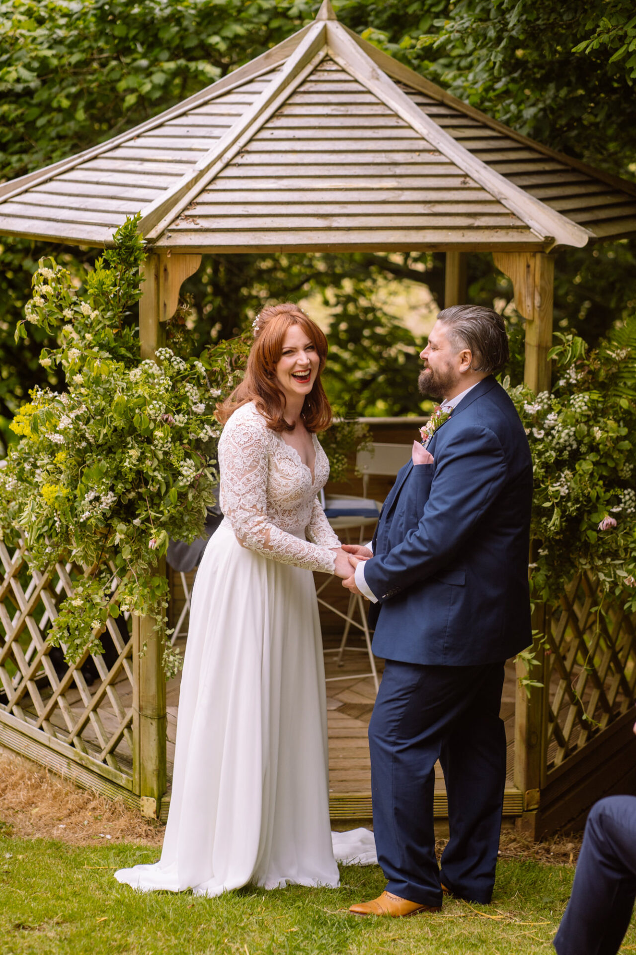 Flowers are always a big part of weddings. Indeed I have worked with many amazing florists. The flowers at this wedding were provided by one of Harriet and Mike’s good friends, Emma Vowles. I have to say that Emma’s designs were nothing short of stunning! The ceremony arbour at Barons Hill Farm was decorated in an incredible array of foliage that almost made it camoflage! Moreover, the barn and the entire rest of the venue was adorned with Emma’s creations that complimented the colour scheme and overall feel of the wedding.