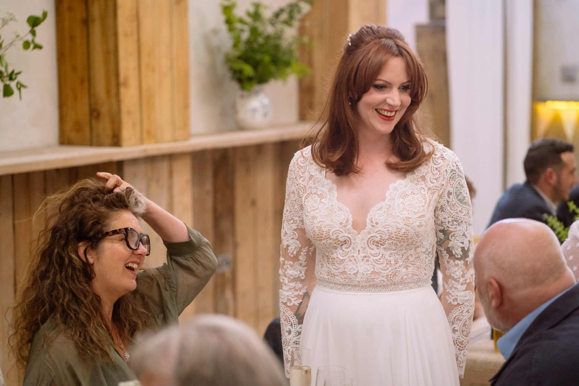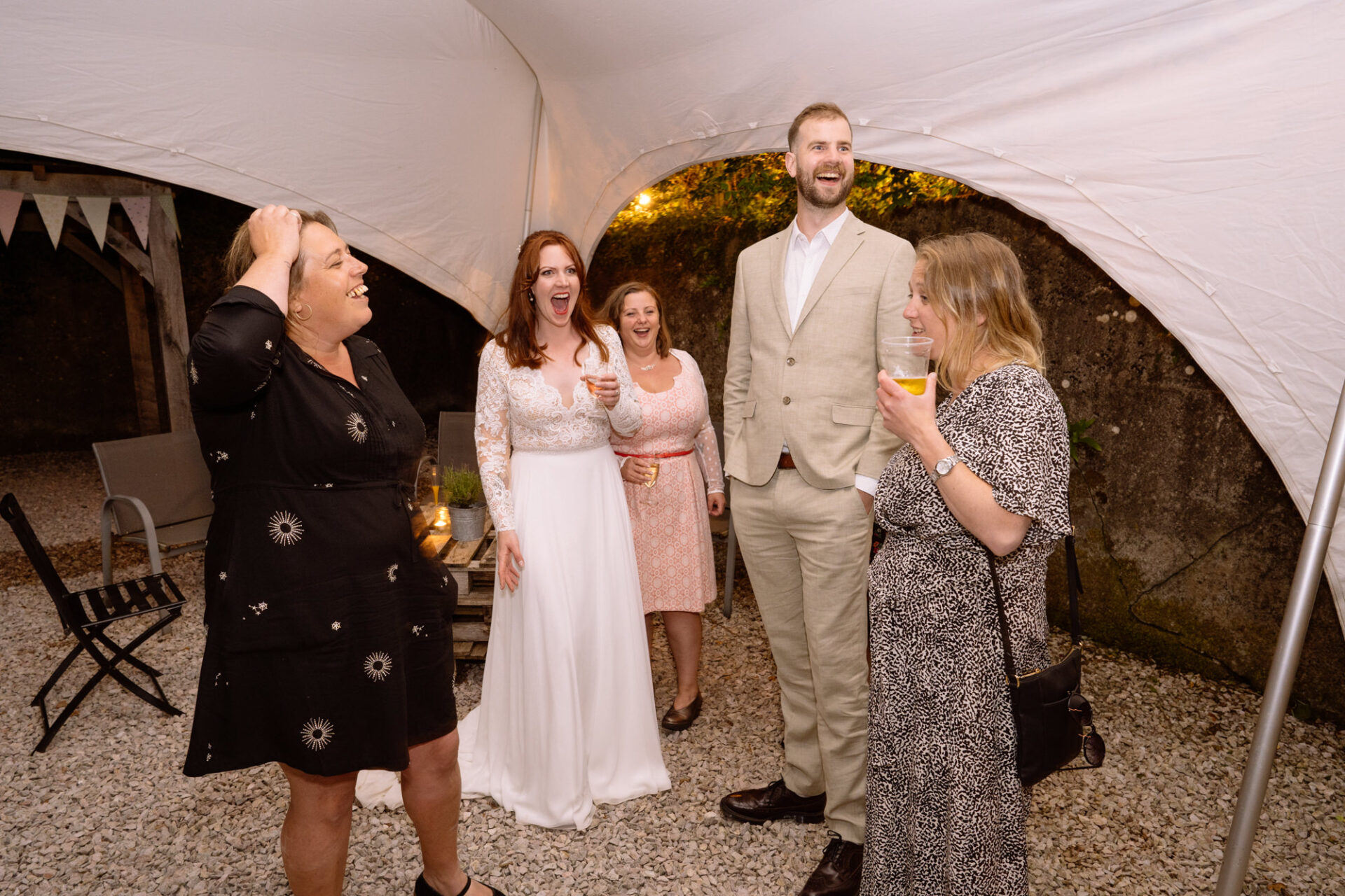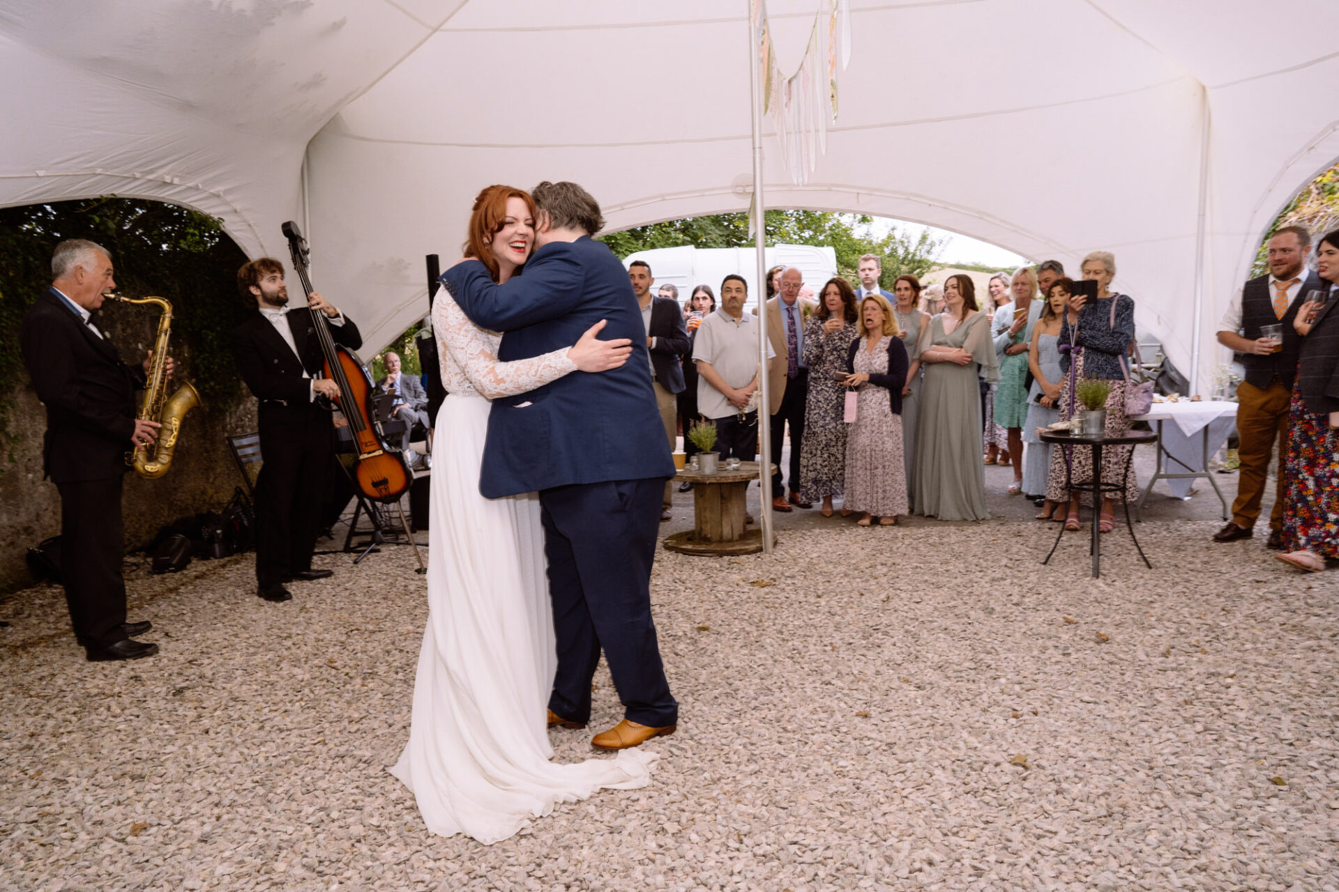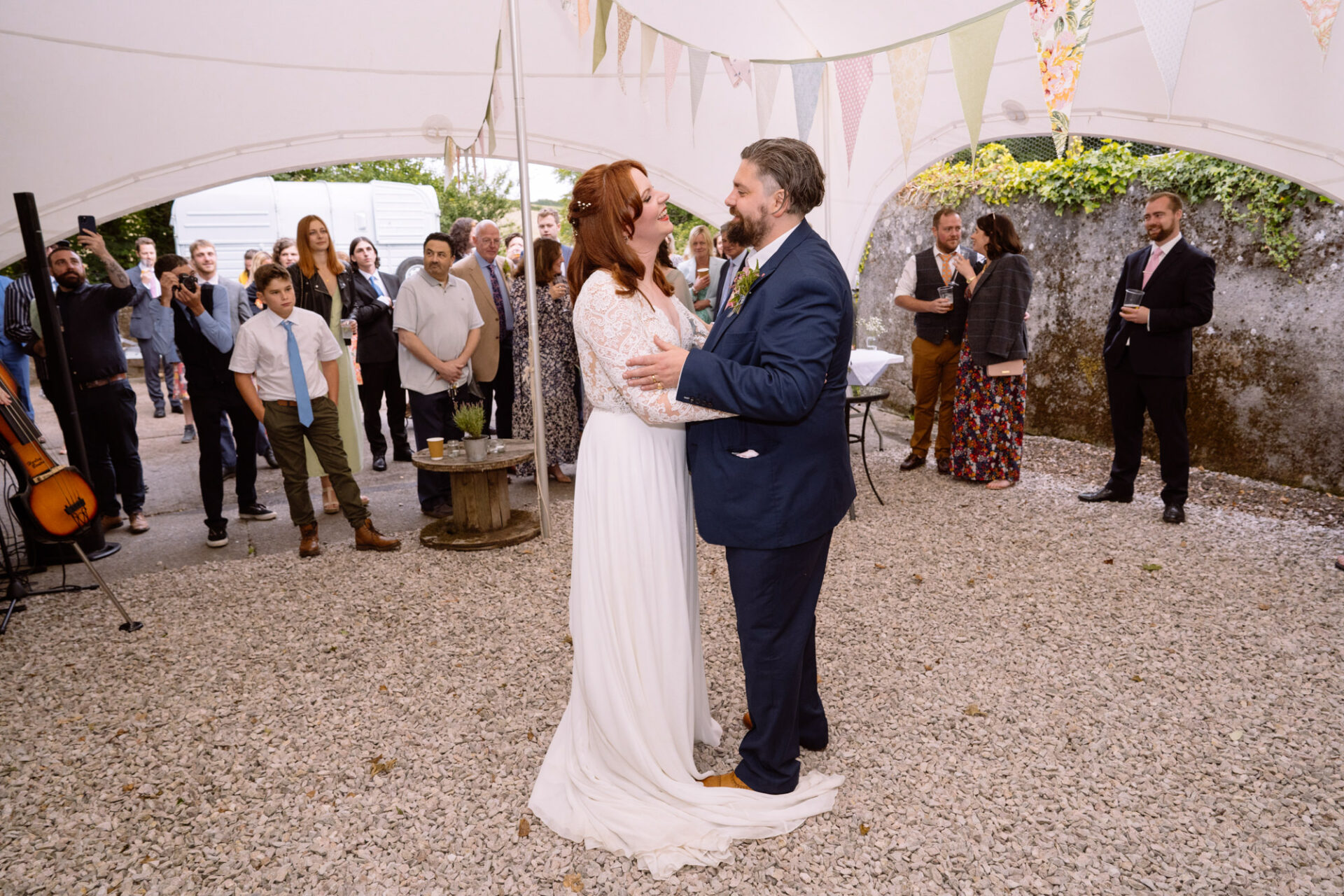 Harriet and Mike got married at The Barn at Barons Hill Farm. This is an intimate venue tucked away amongst the rolling Devonshire hills. Indeed, the farm’s ancient 60 acres are quietly situated in the heart of the beautiful South Hams countryside. Their horses, chickens, alpacas, geese, sheep, a meandering stream and duck pond add to the nuance of Barons Hill Farm. The Barn at Barons Hill Farm is a beautifully restored agricultural barn in keeping with its original rustic use. For instance, it has high ceilings and a large private courtyard with views over the farm and beautiful countryside beyond. Likewise, the quietly rural setting was perfect for Harriet and Mike and their families.