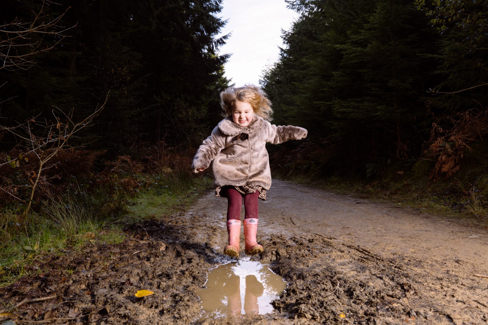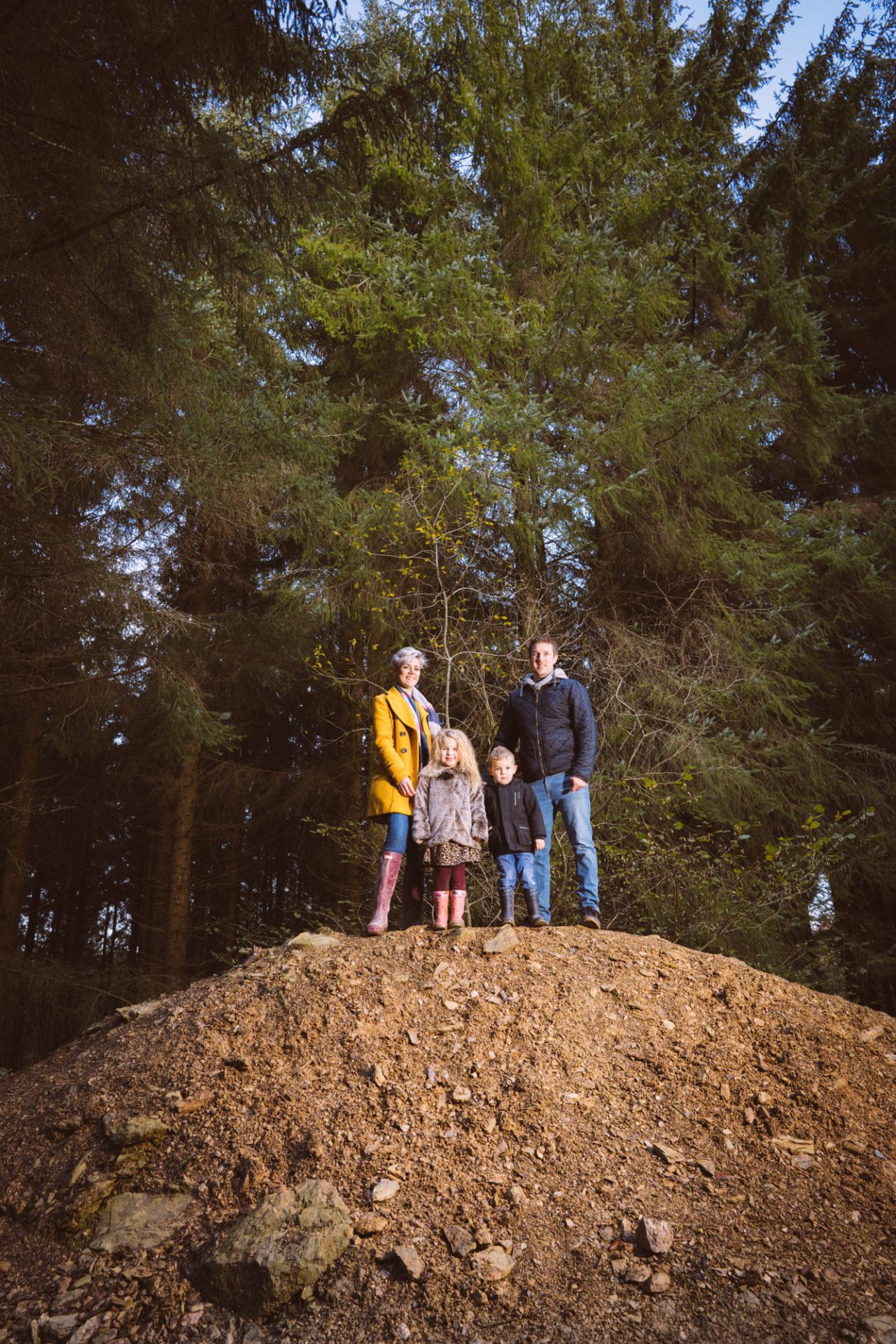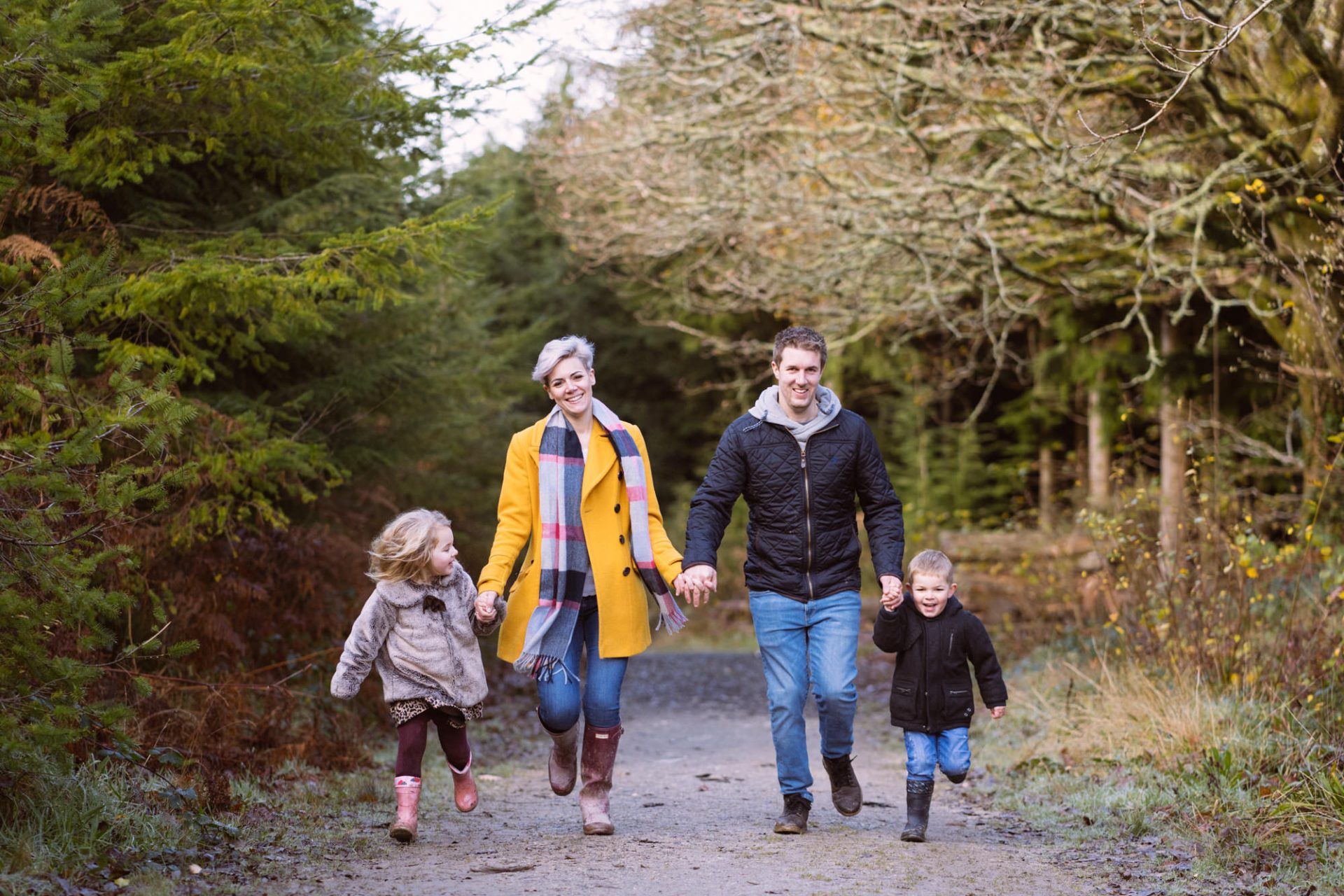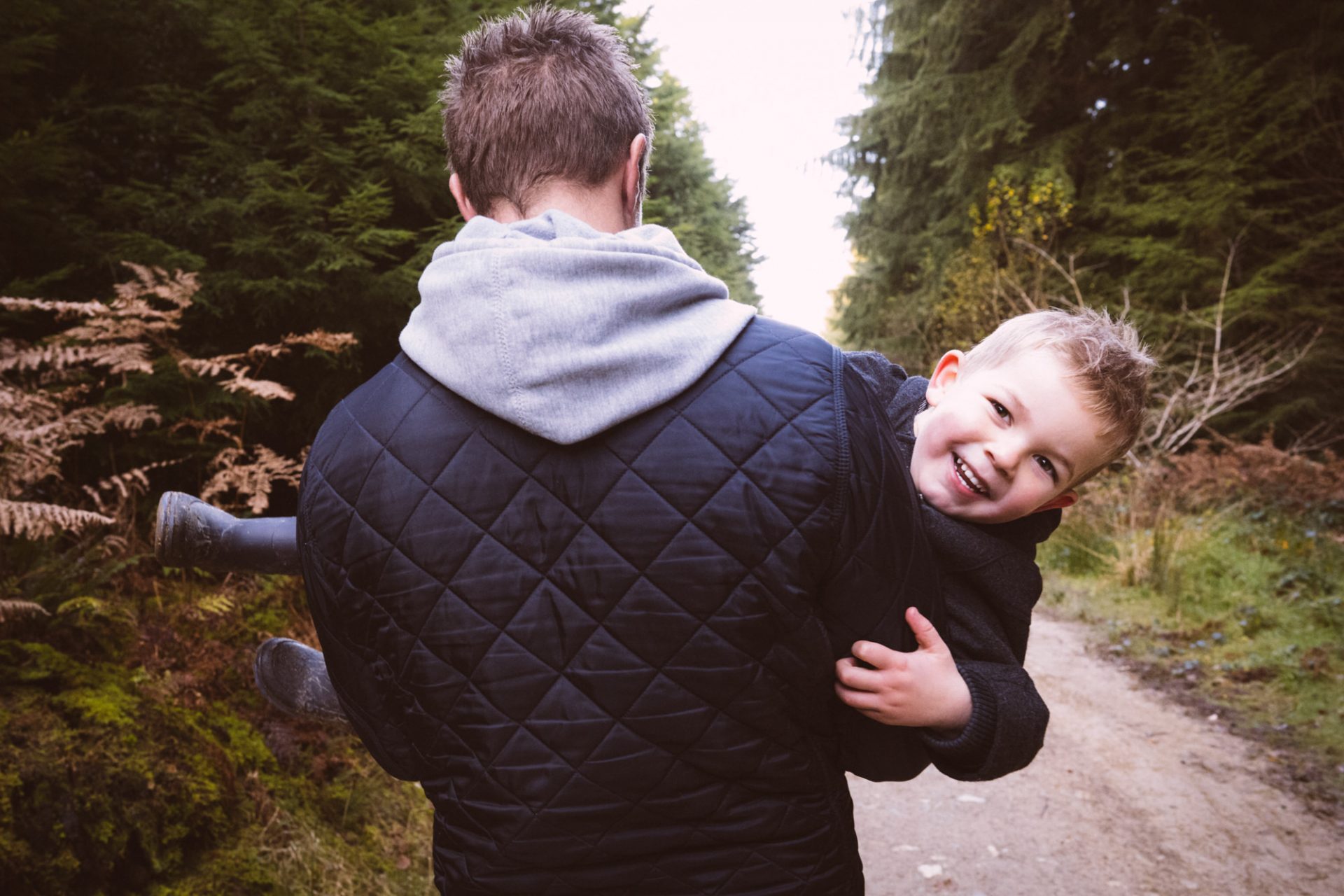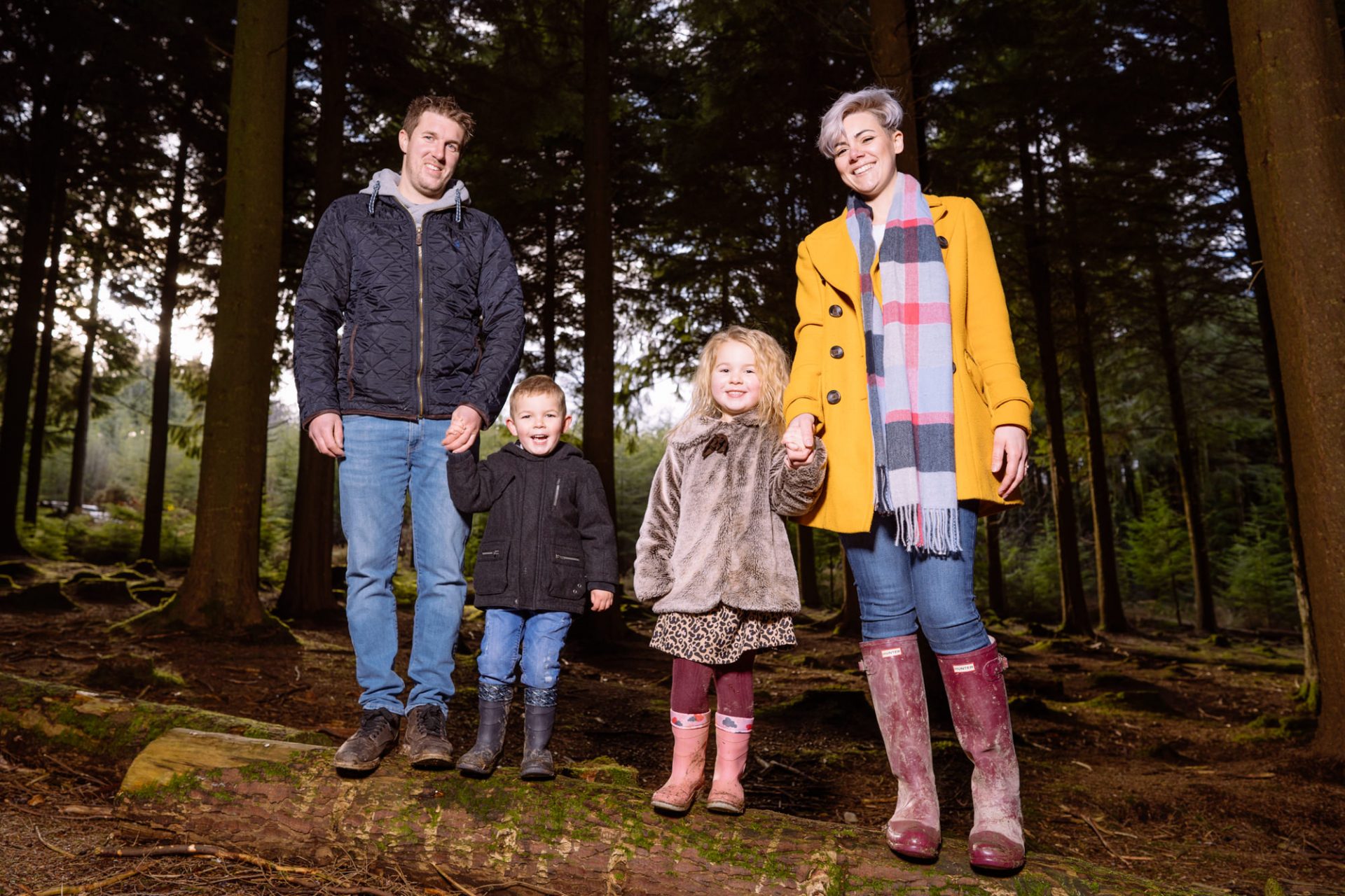 After these escapades, we continued onwards for some more sedate portraits amongst the backlit pine trees. Certainly, the autumnal sunshine flitered through the forest canopy wreathing our joyful protagnists in soft light. Now, it’s no secret that I like a bit of action and movement in my photos! This Ladock Woods family shoot was no different. For instance, Katie and Nathan and their clan enjoyed a little running around the woodland paths for the camera!