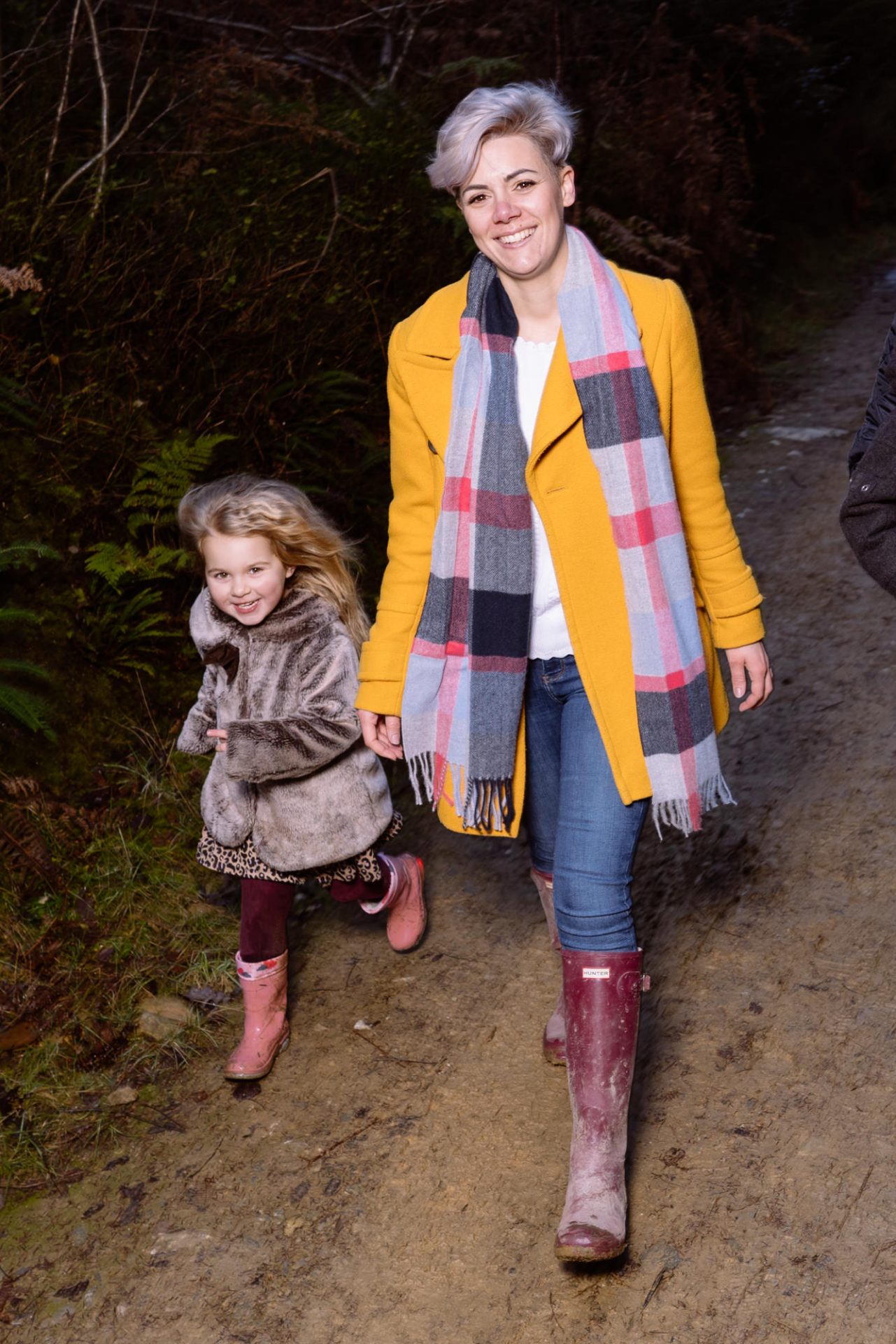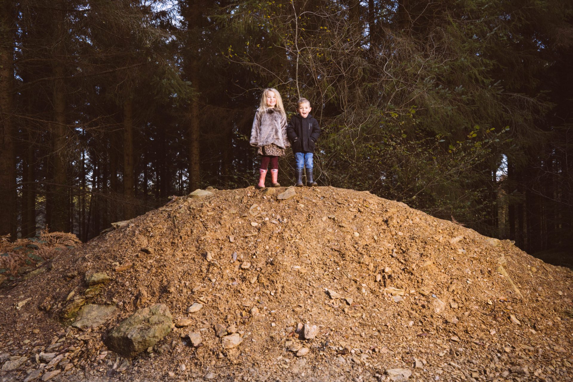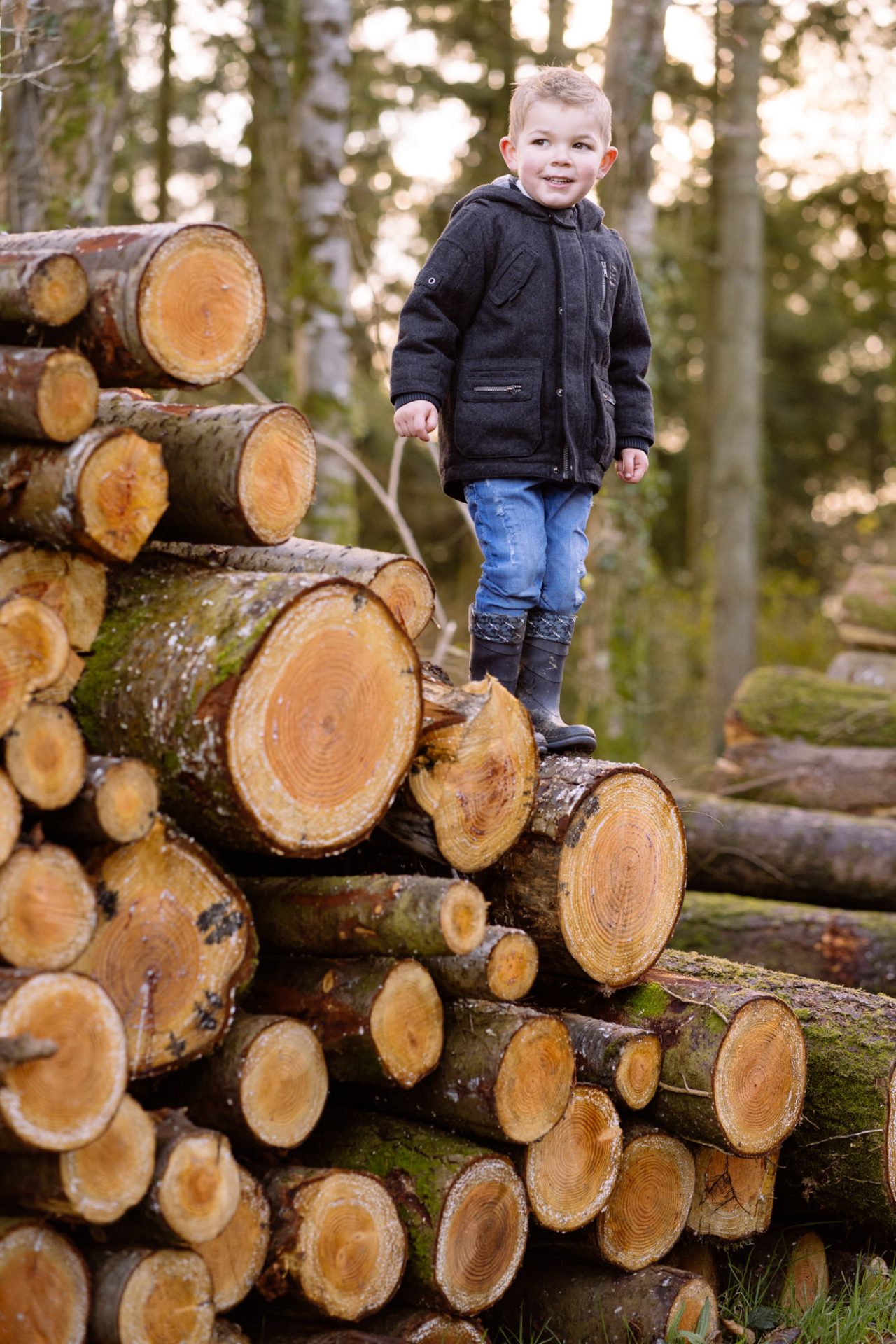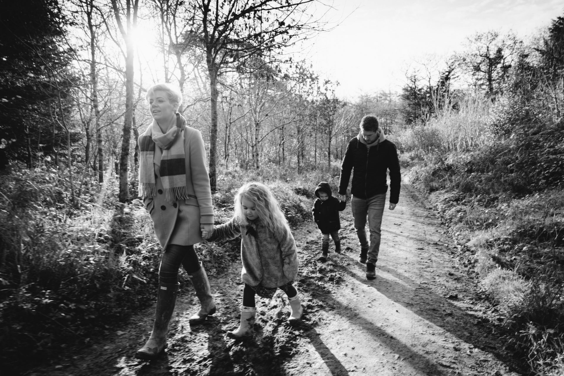 After these escapades, we continued onwards for some more sedate portraits amongst the backlit pine trees. Certainly, the autumnal sunshine flitered through the forest canopy wreathing our joyful protagnists in soft light. Now, it’s no secret that I like a bit of action and movement in my photos! This Ladock Woods family shoot was no different. For instance, Katie and Nathan and their clan enjoyed a little running around the woodland paths for the camera!