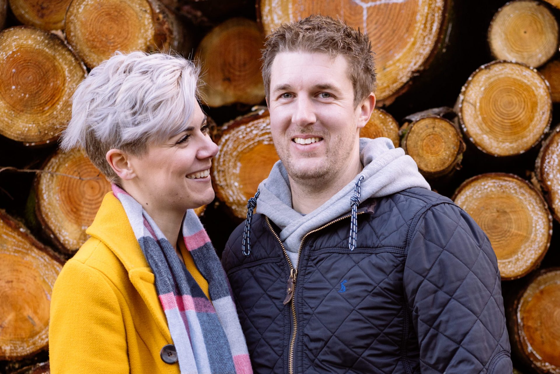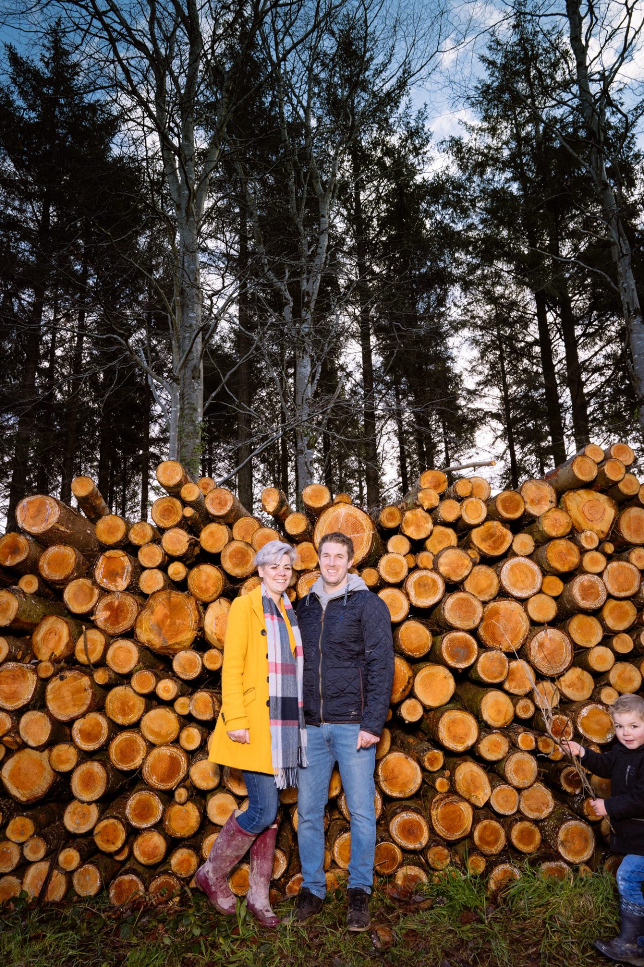 Katie and Nathan opted for a Ladock Woods family shoot instead of the tradtional pre-wedding couple shoot. The weather was bright and breezy for our brisk stroll through the trees. Katie and Nathan brought along their two adorable youngsters for some photos of the family all together. However, I had not expected these two to be quite so energetic! Indeed, after numerous times splashing through puddles, balancing on logs and swinging from trees, I was exhausted!