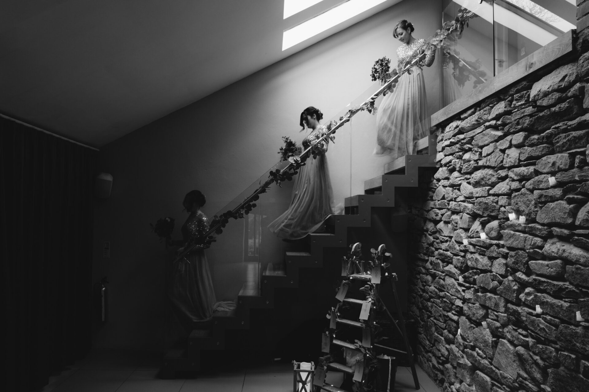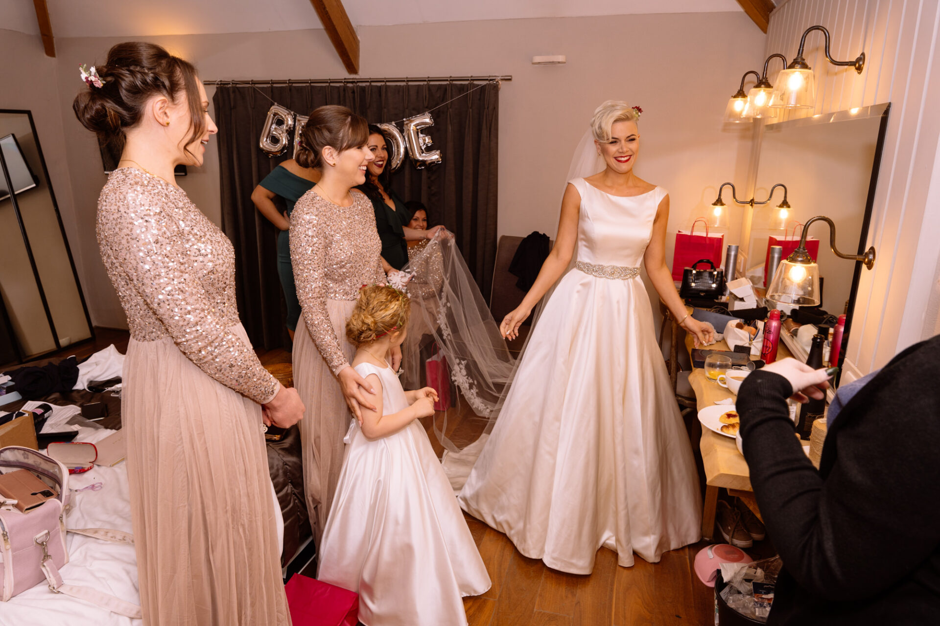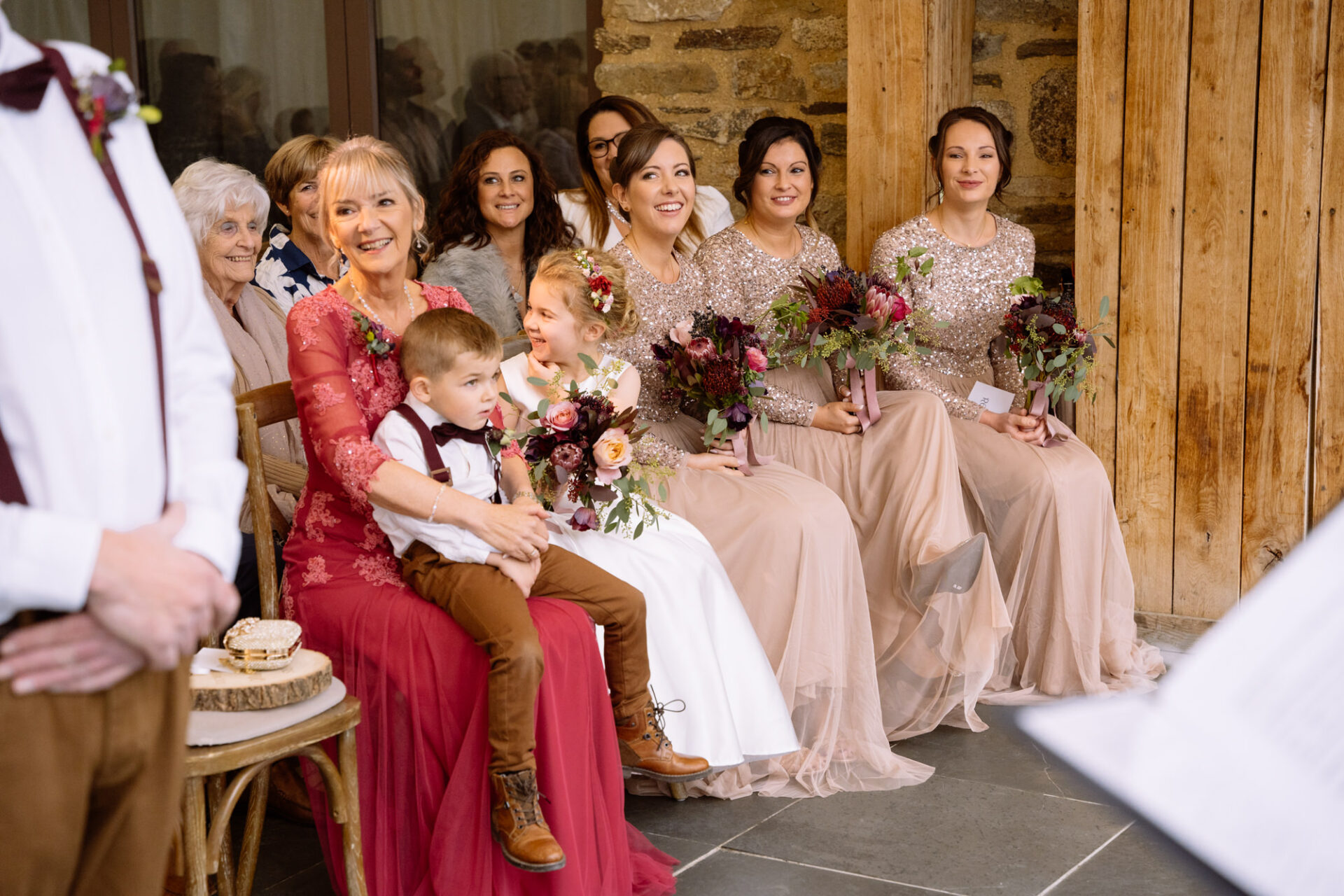 Katie and Nathan’s Wedding at Trevenna Barns was a lot of fun! Aside from being long awaited as so many of the post Covid weddings were, these two REALLY wanted to do it! Katie’s assembled Bridesmaids and children really wanted her to do it too. Located in an idyllic and secluded setting within 142 acres of Cornish countryside, Trevenna is a gorgeous cluster of elegant barns. The unique sense of place surrounds you, with the land having been in the family for 100s of years. Approaching down the farm lane, everyone visiting Trevenna is greeted with a view that encompasses the changing of the seasons, from the trees, seasonal crops, farming action, sheep & cows, deer & buzzards, valleys and imposing shape Berry Tor.