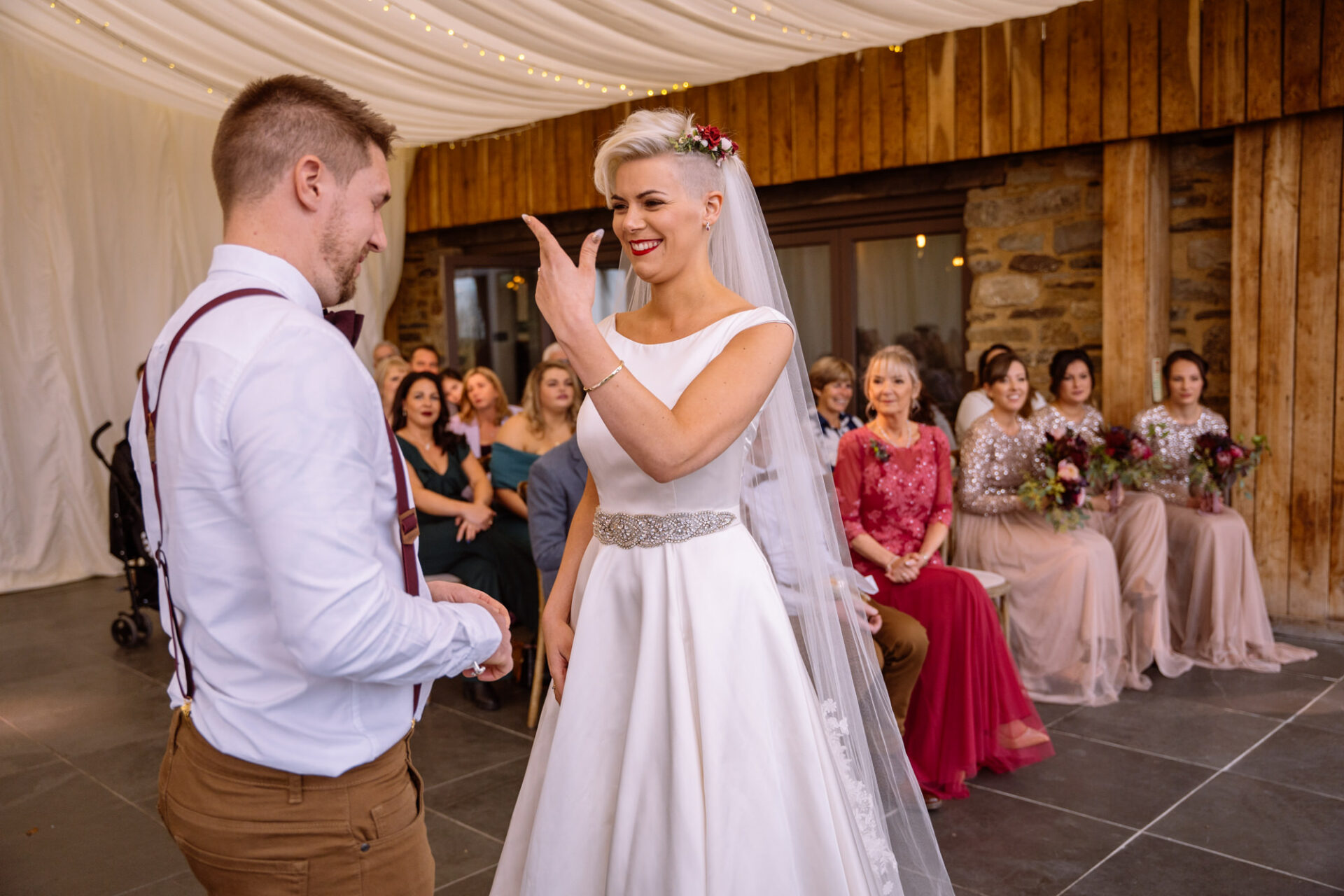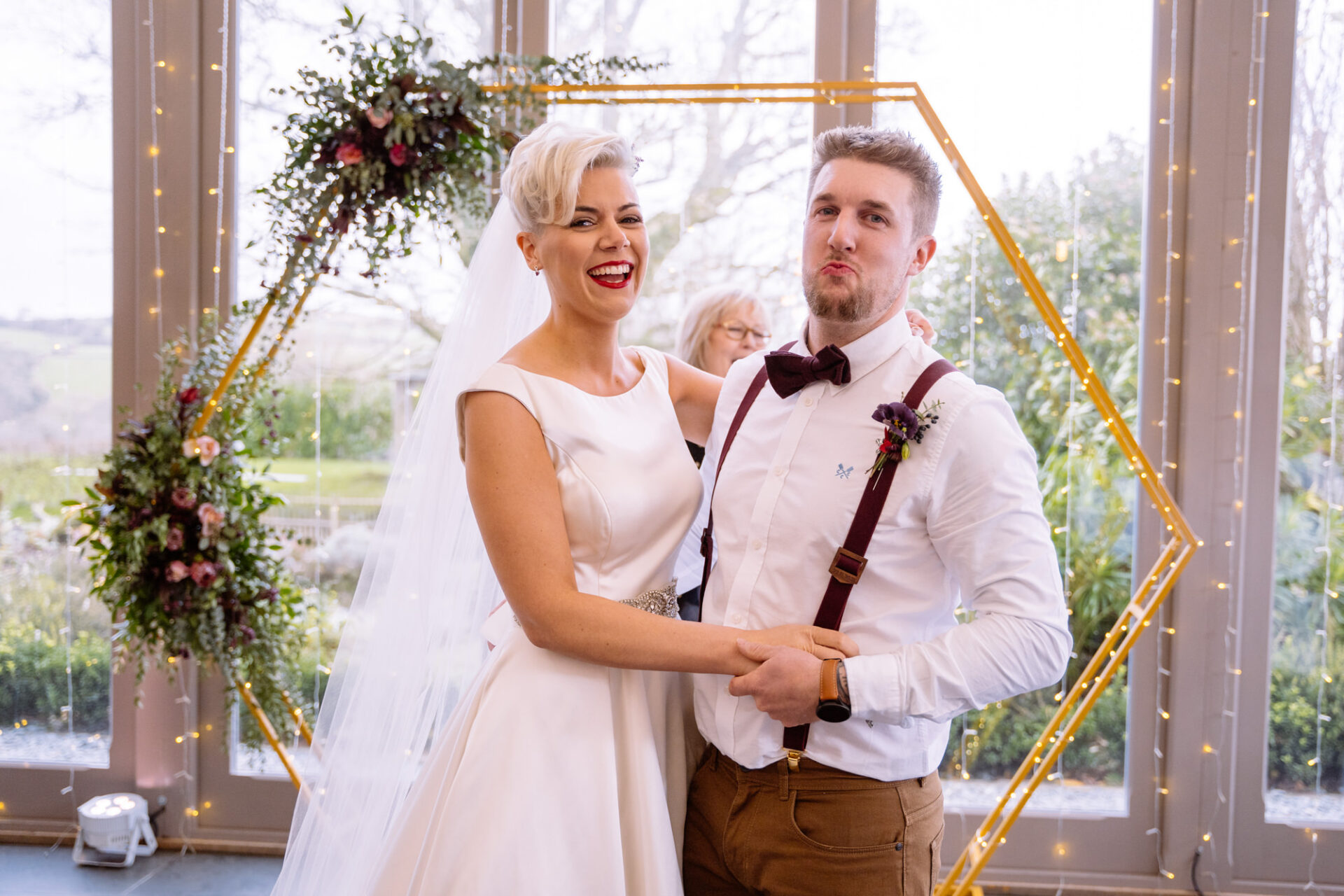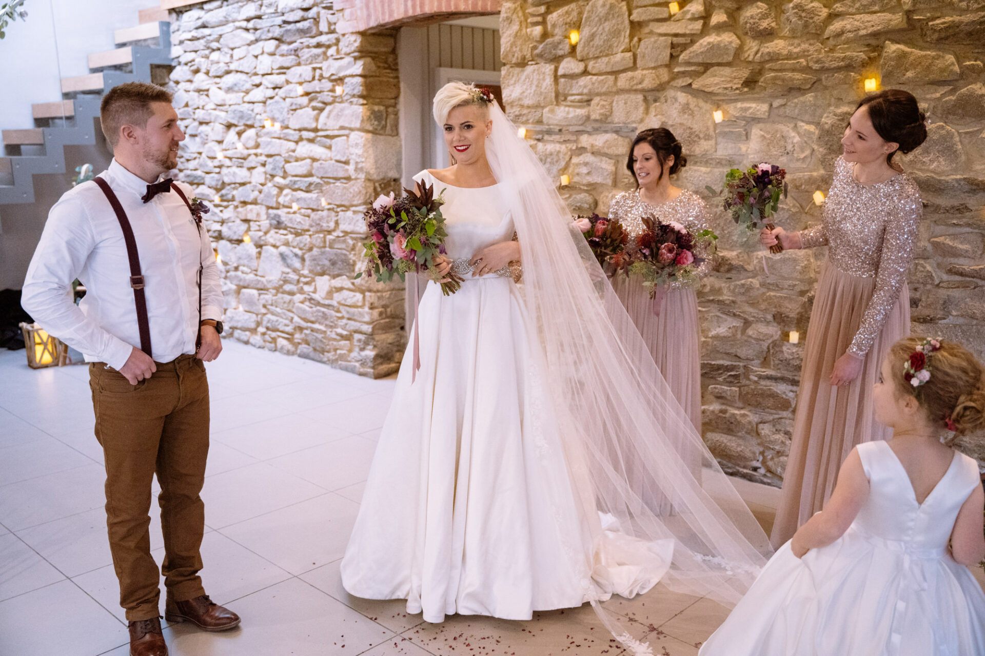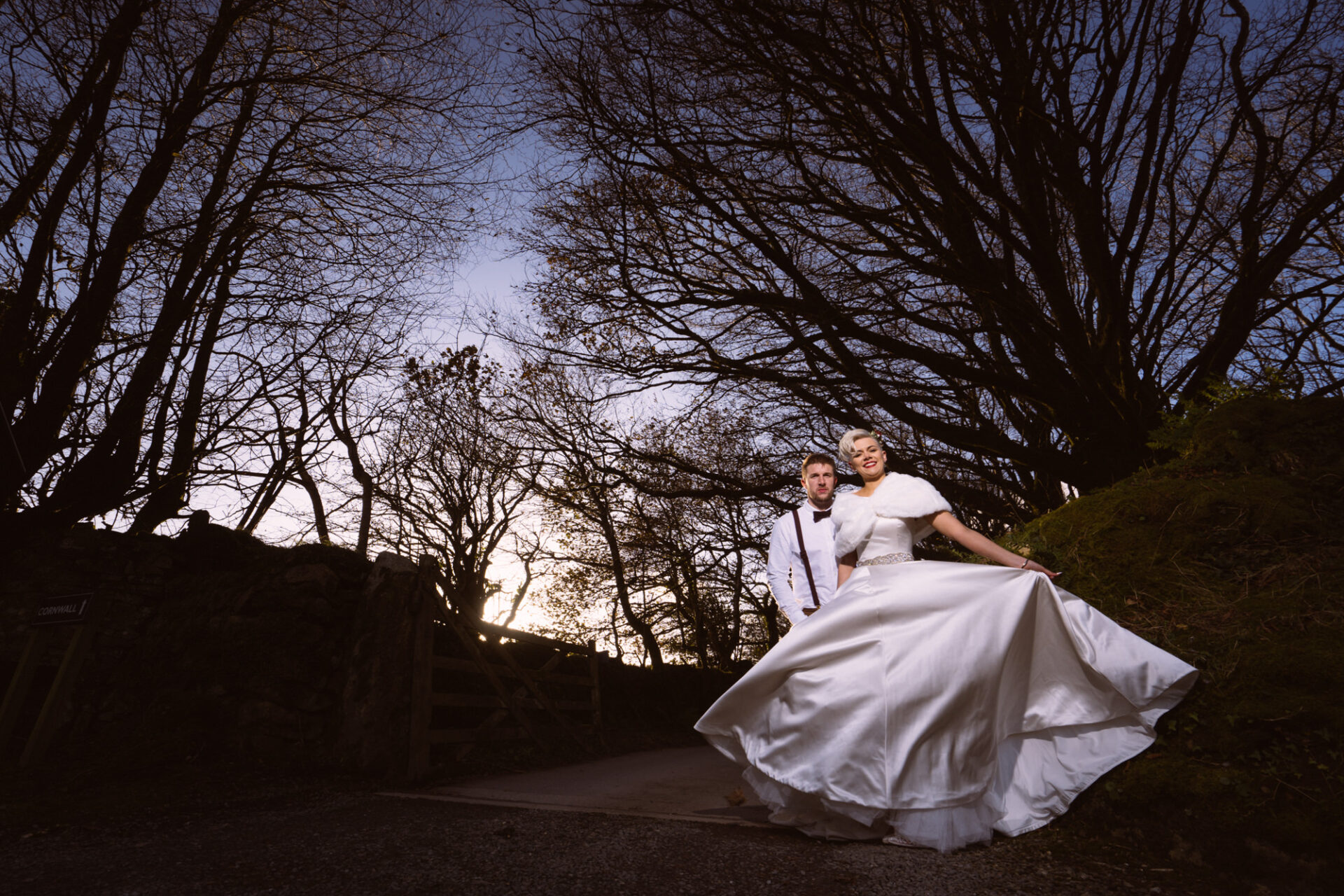 Katie and Nathan were lucky in the respect that they had bright sunshine on their Trevenna Barns wedding day. In fact, I couldn’t wait to get them outside to get some couple shots in the beautiful surroundings. Unfortunately the arctic winds of November had begun to blow and temperatures were less than desirable! But Kate and Nath are made of tougher stuff than most! I was plesantly surprised as they posed for lots of photos without a care for the cold.