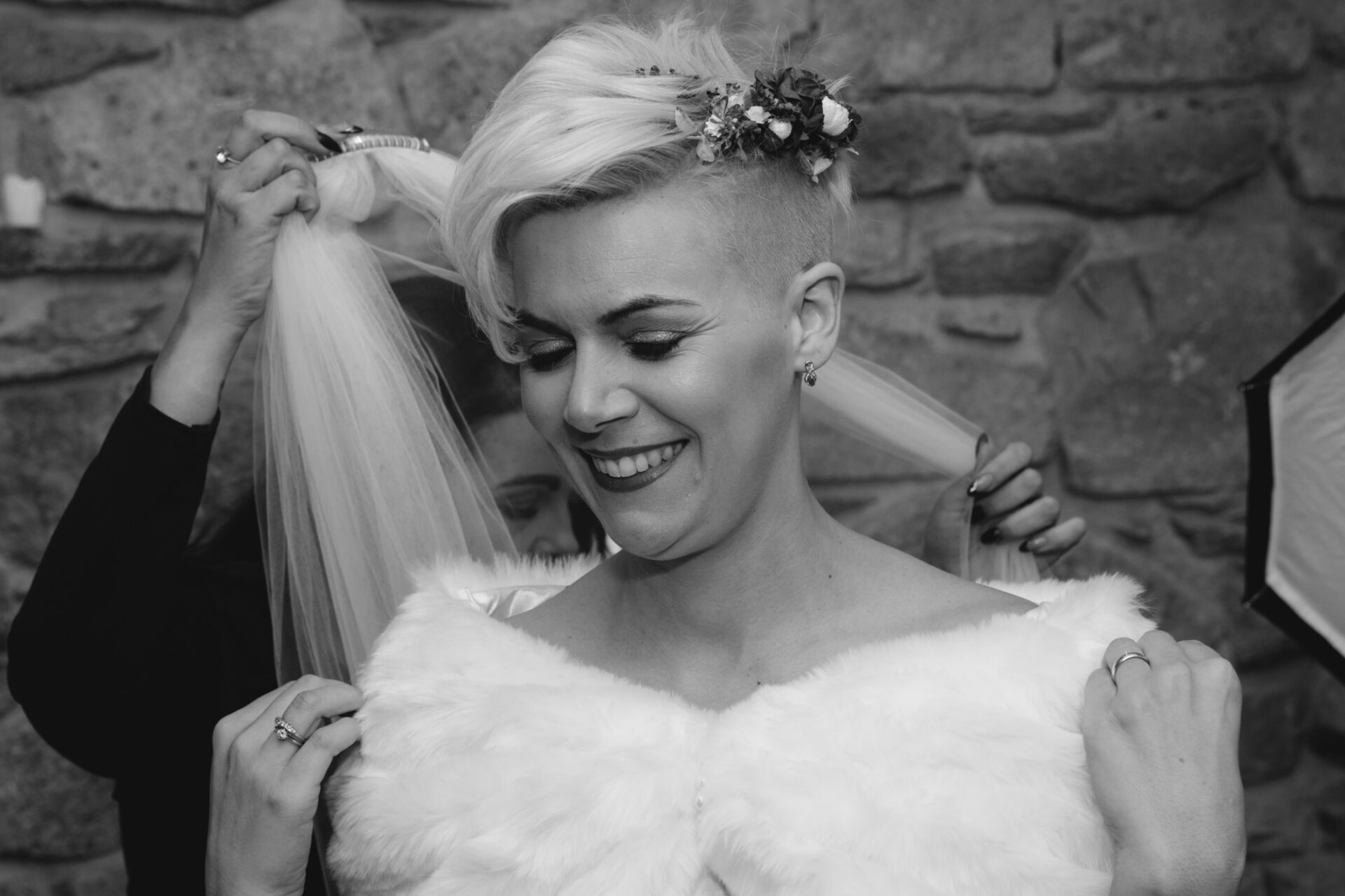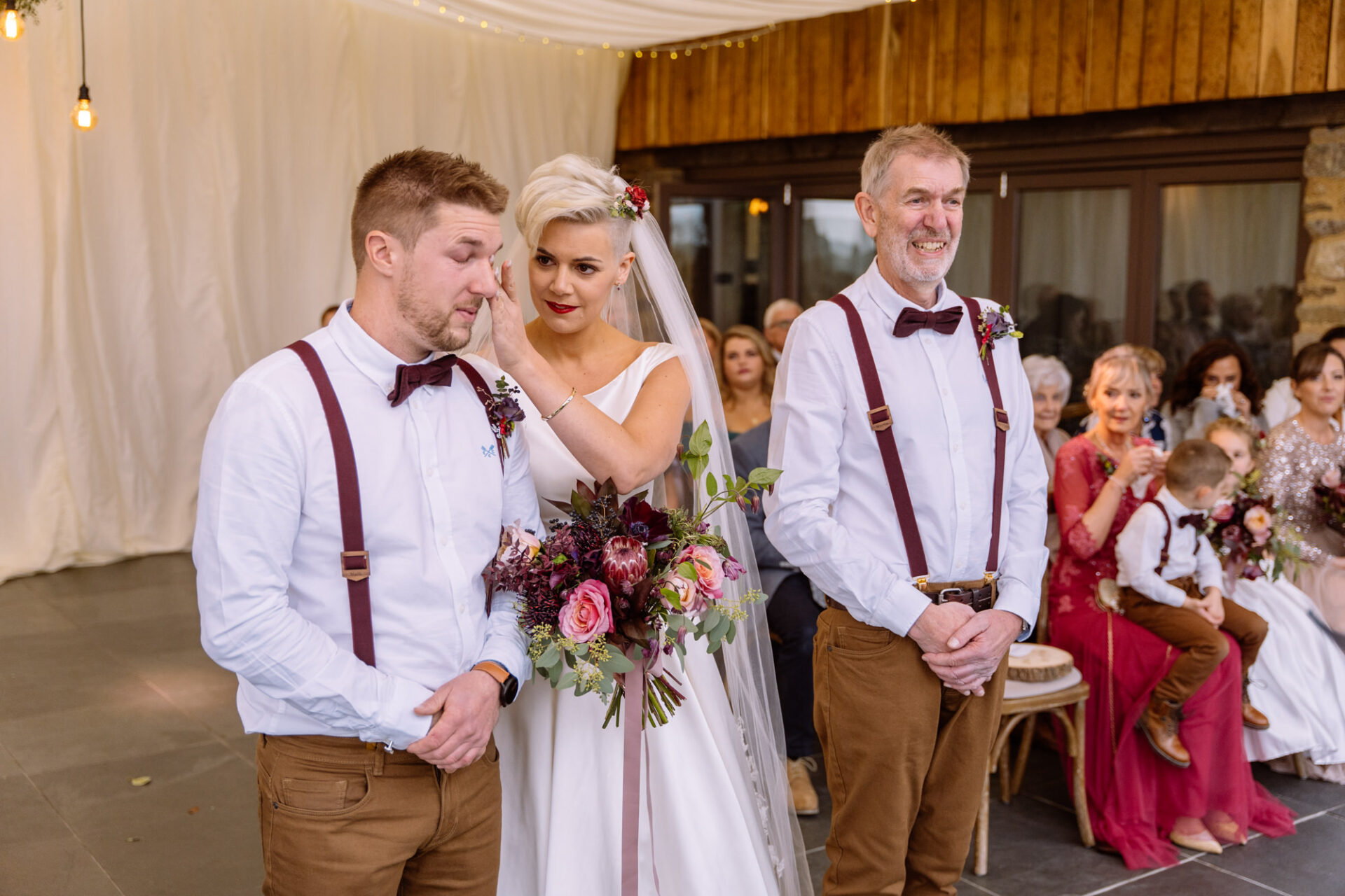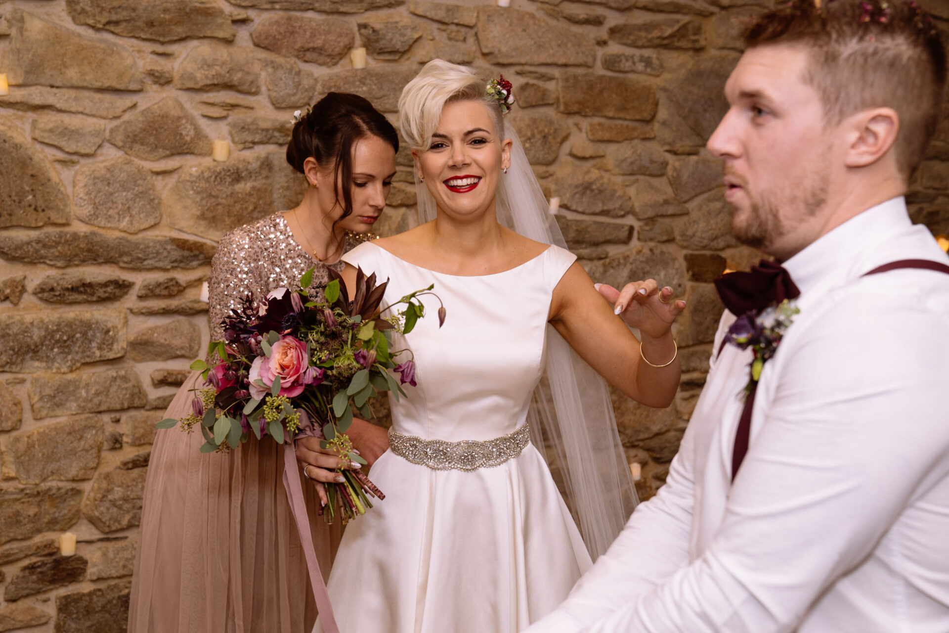 Katie and Nathan were lucky in the respect that they had bright sunshine on their Trevenna Barns wedding day. In fact, I couldn’t wait to get them outside to get some couple shots in the beautiful surroundings. Unfortunately the arctic winds of November had begun to blow and temperatures were less than desirable! But Kate and Nath are made of tougher stuff than most! I was plesantly surprised as they posed for lots of photos without a care for the cold.
