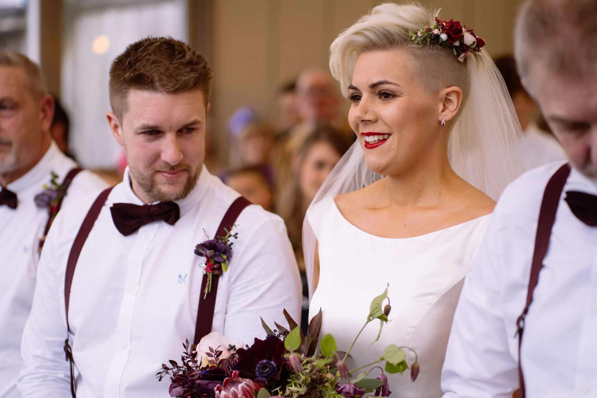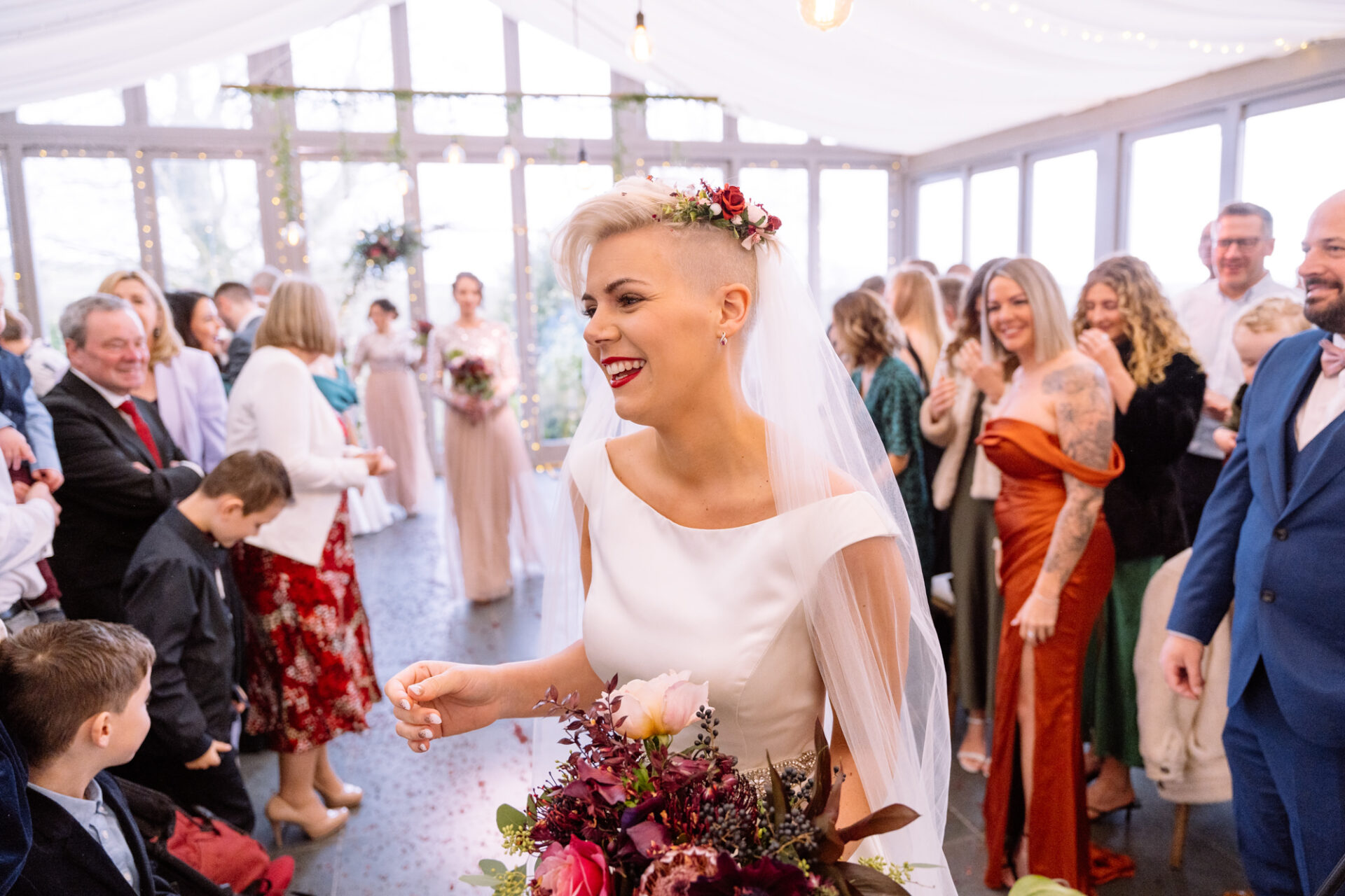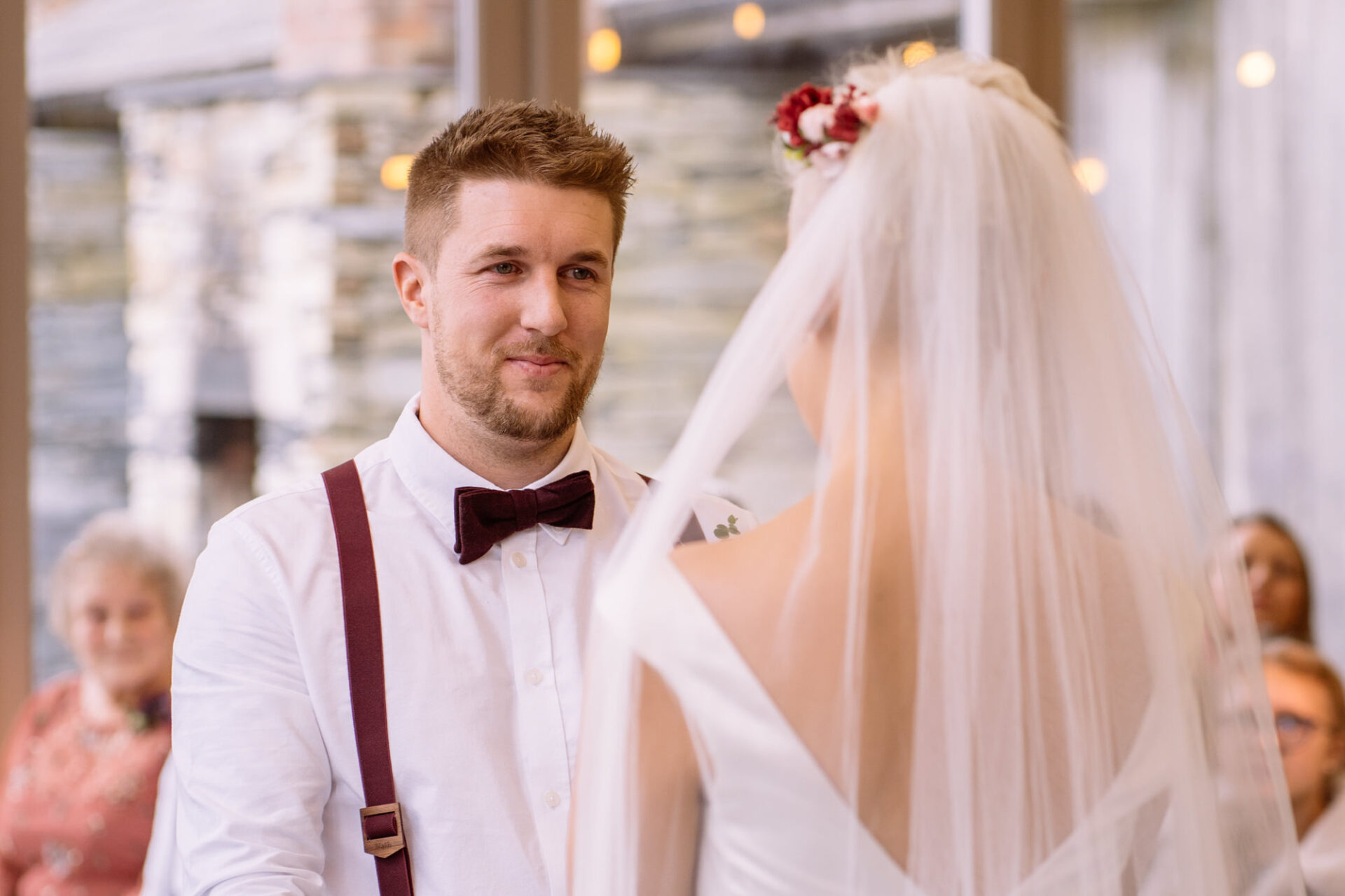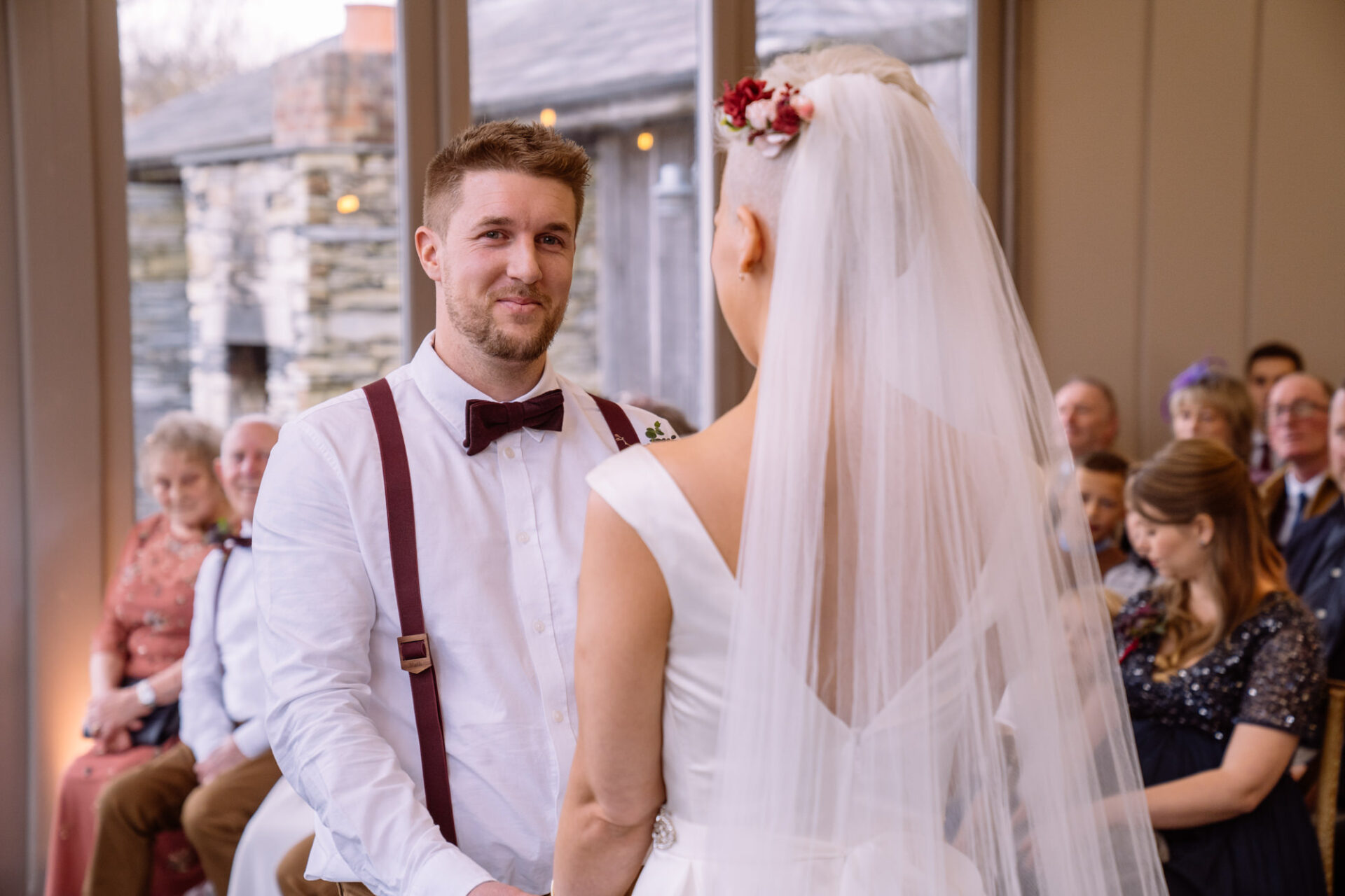 Katie and Nathan were lucky in the respect that they had bright sunshine on their Trevenna Barns wedding day. In fact, I couldn’t wait to get them outside to get some couple shots in the beautiful surroundings. Unfortunately the arctic winds of November had begun to blow and temperatures were less than desirable! But Kate and Nath are made of tougher stuff than most! I was plesantly surprised as they posed for lots of photos without a care for the cold.