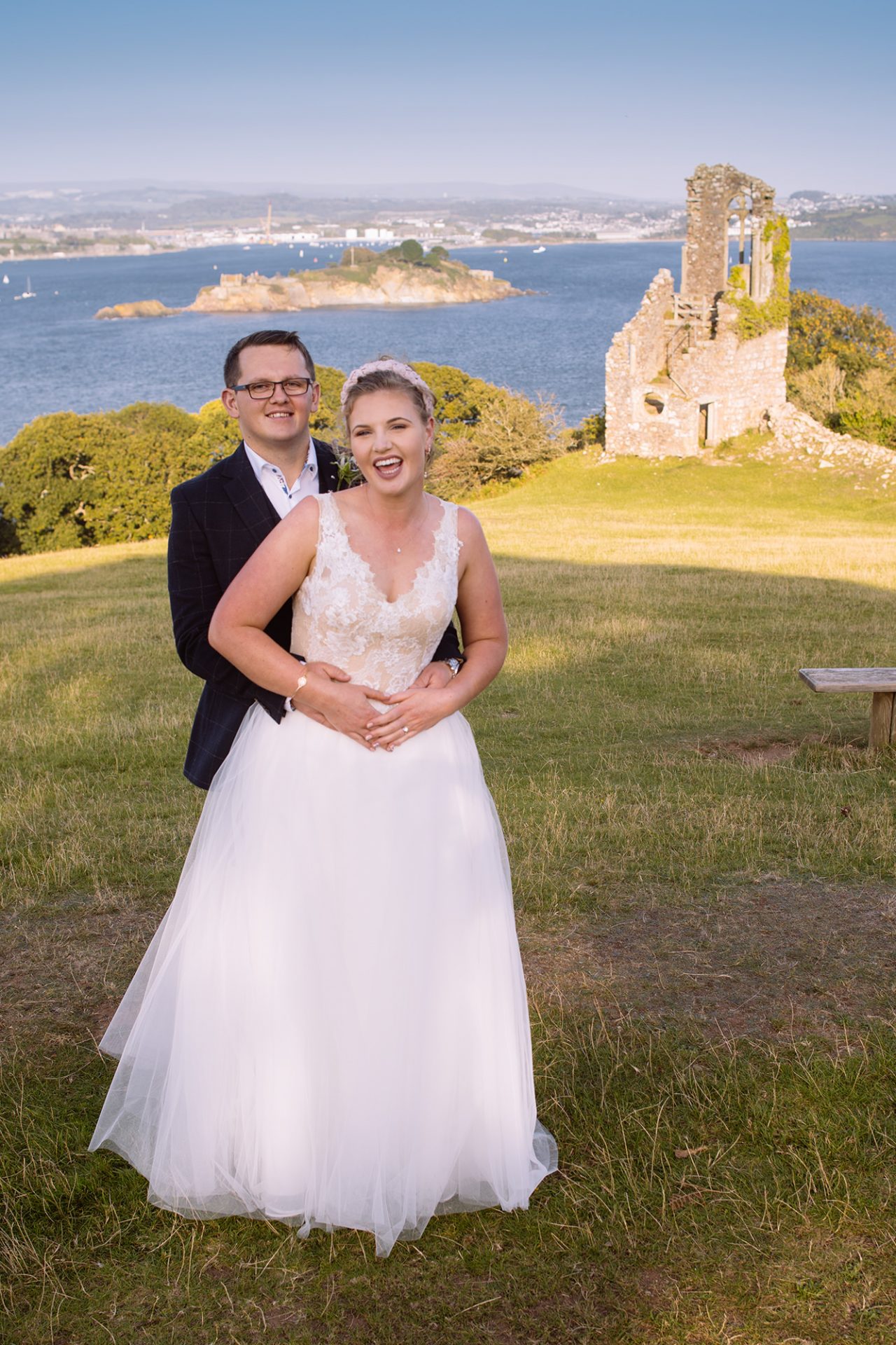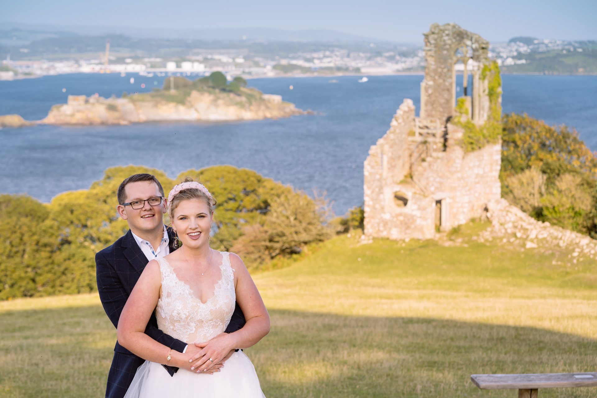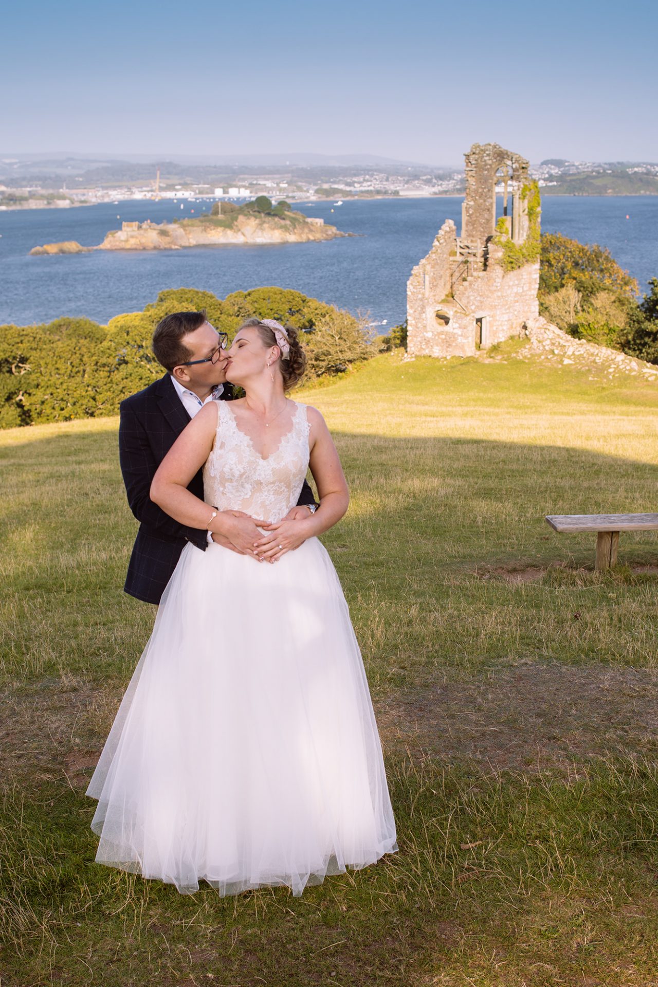 Kristina and Alex held their wedding reception at The Farriers Cafe nestling in the grounds of the magnificent Mount Edgcumbe House. Indeed, the happy couple must have put their wedding weather on pre-order! The stunning September evening could not have been better. That is to say, the balmy East Cornwall coastline was wrapped in golden evening light!