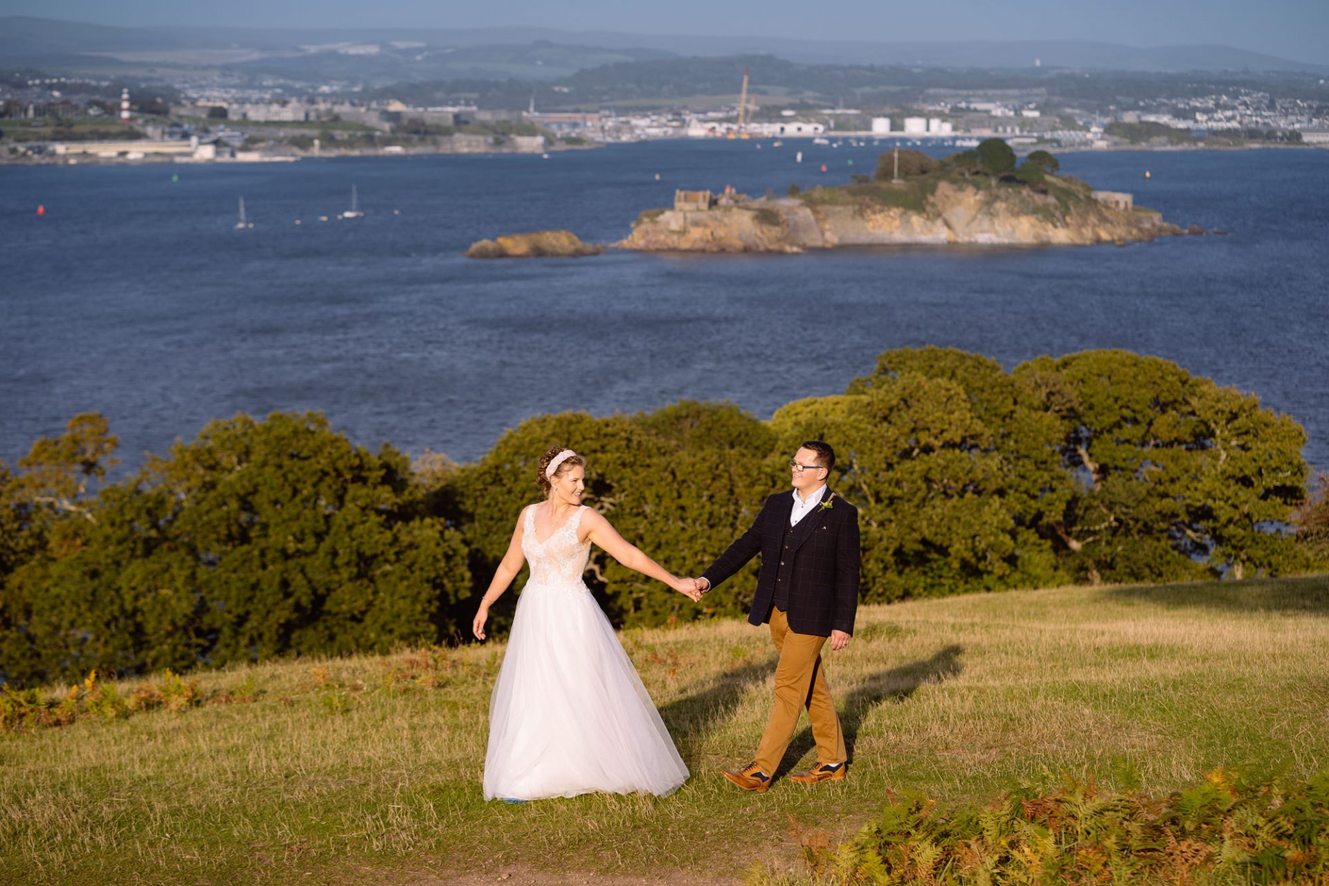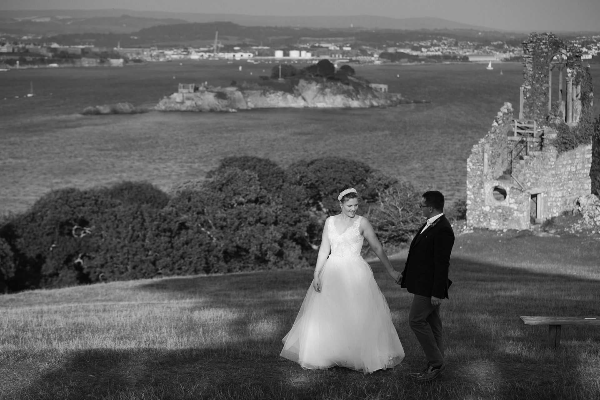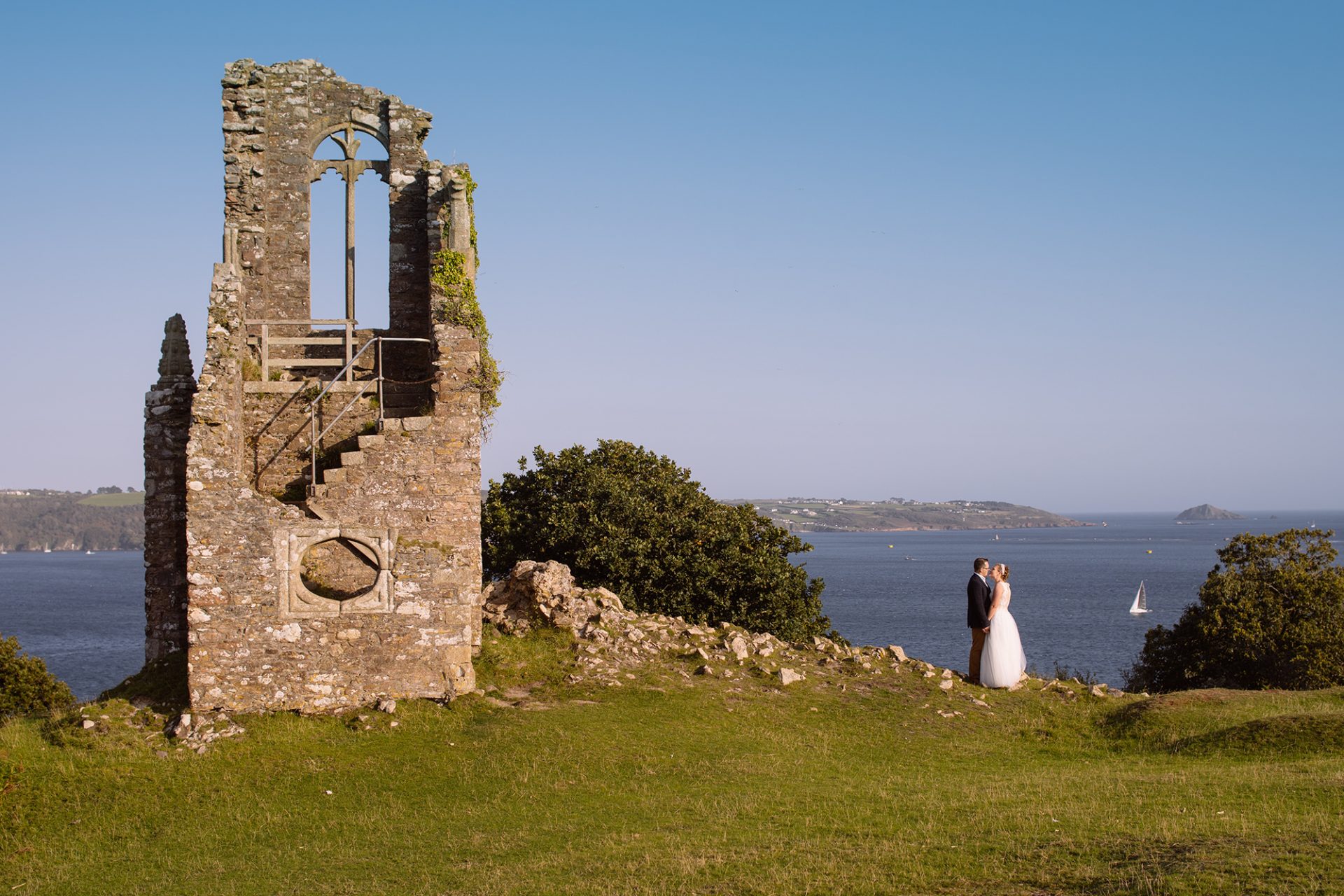 Kristina and Alex held their wedding reception at The Farriers Cafe nestling in the grounds of the magnificent Mount Edgcumbe House. Indeed, the happy couple must have put their wedding weather on pre-order! The stunning September evening could not have been better. That is to say, the balmy East Cornwall coastline was wrapped in golden evening light!