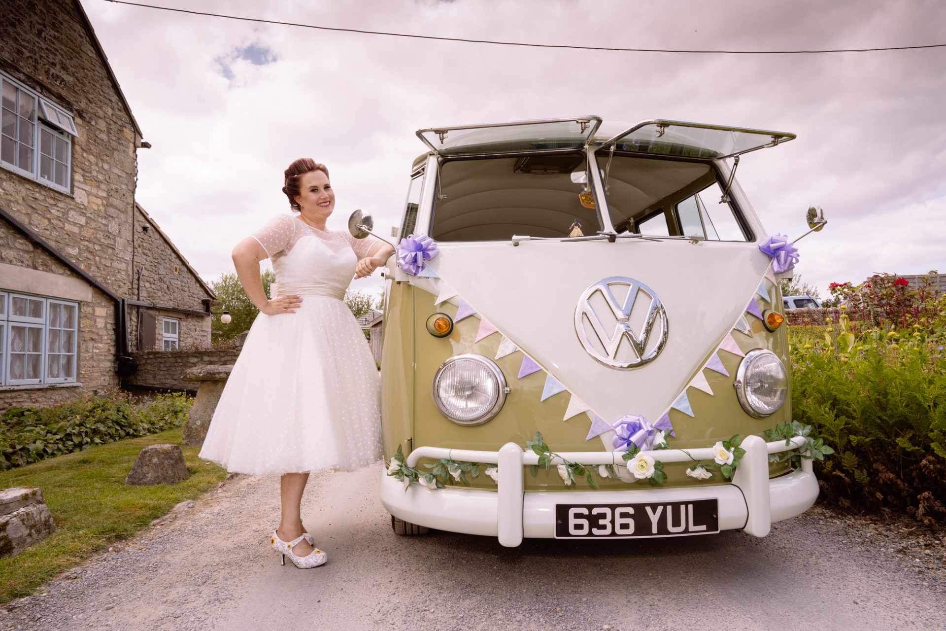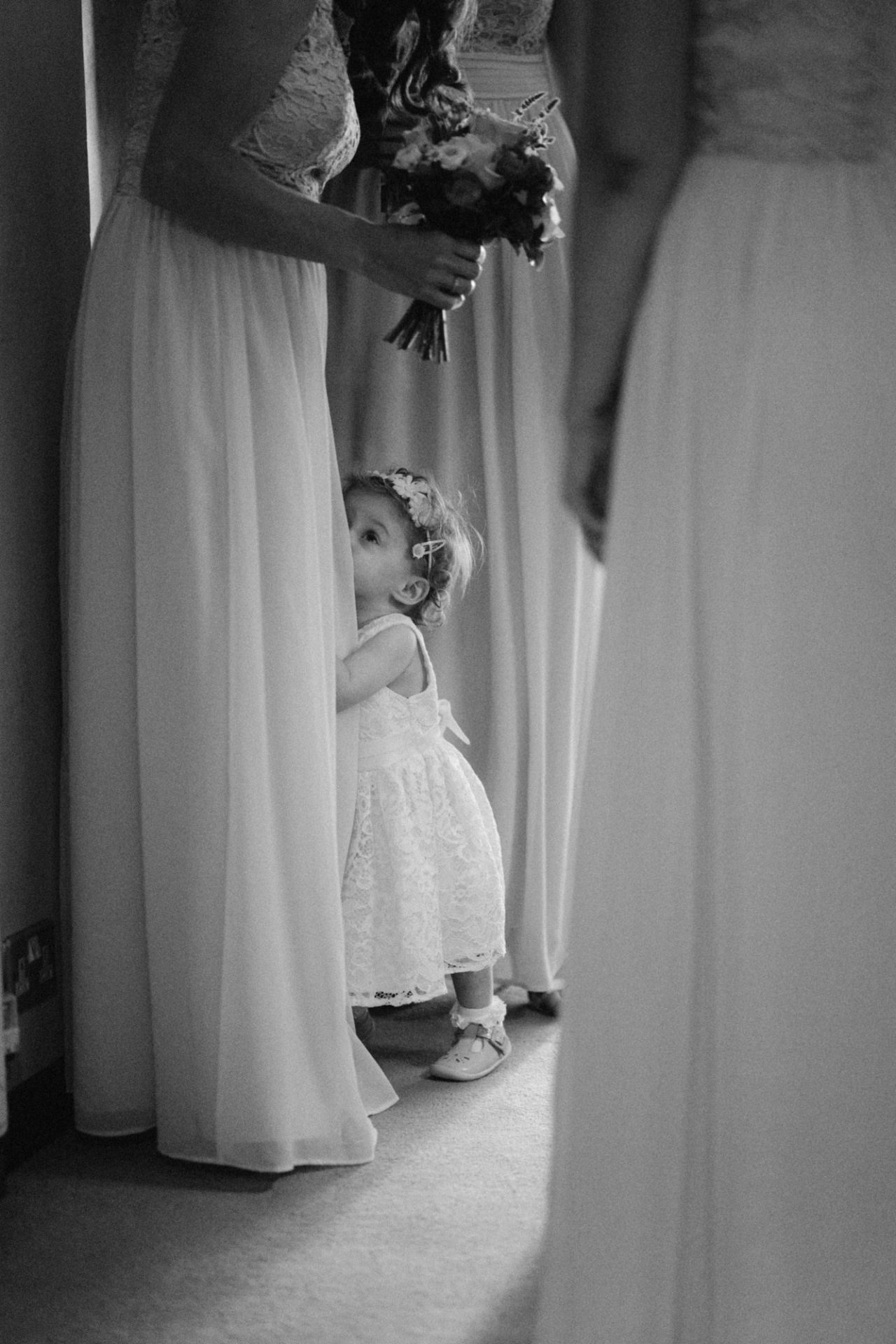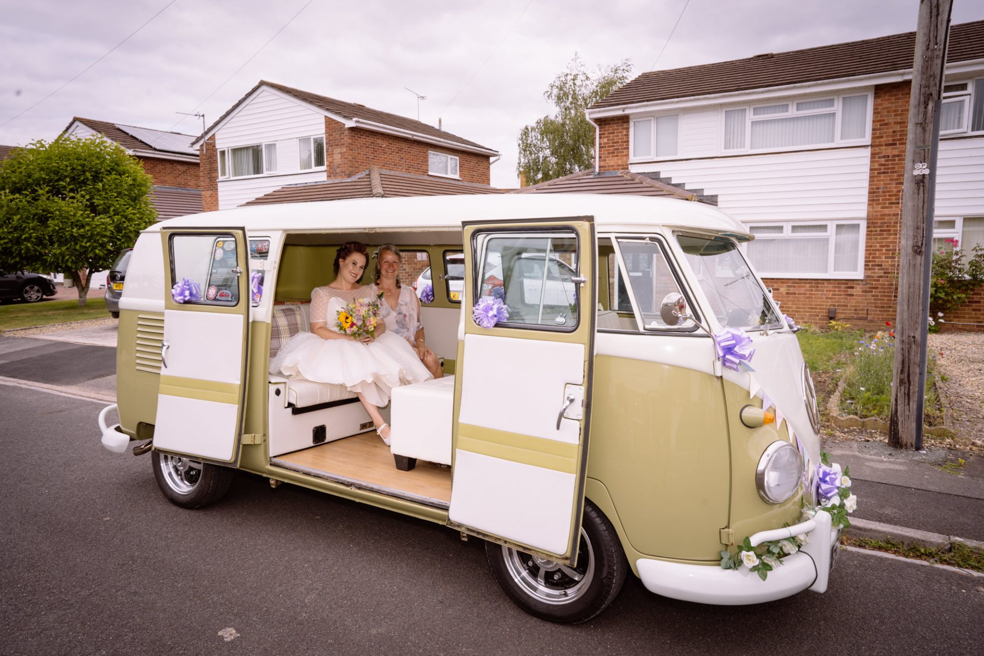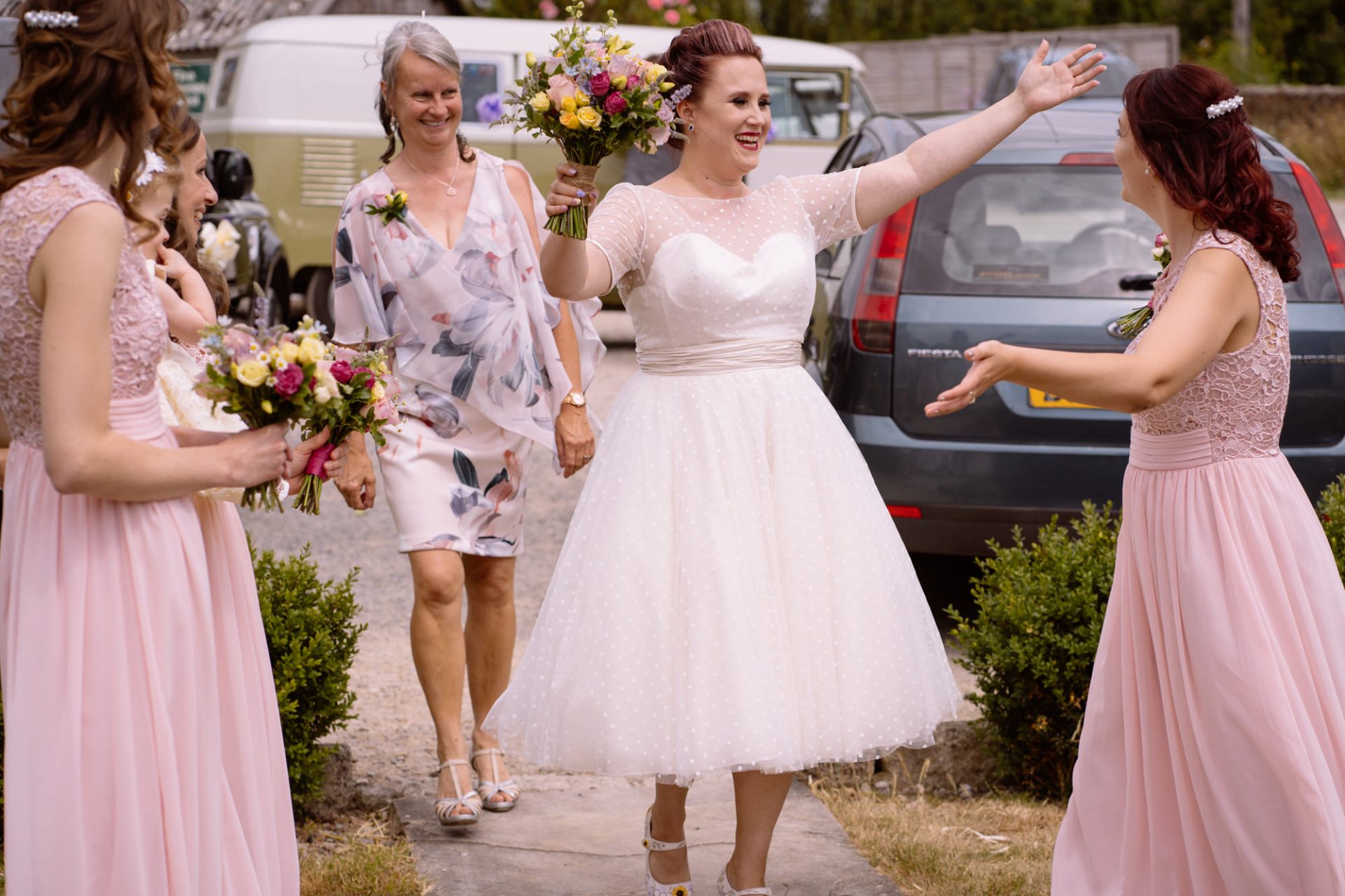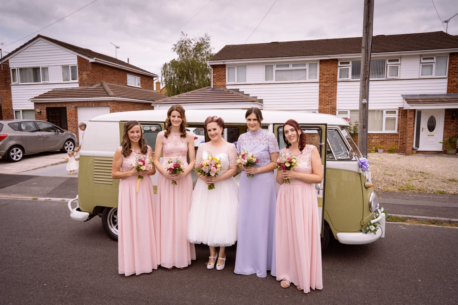 Whilst Tracey (I mean Lisa) was getting ready, the people on her street were congregating outside. Once Lisa came out of the house to wait for her bespoke VW campervan transport, they crowded round. There were some tears and plenty of neighbourly advice to be had. I love photographing the contrast between the normality of a street scene versus the pomp and circumstance of a family wedding. Lisa, her bridesmaids and the shiny campervan looked as though they’d been beamed straight from another part of history.