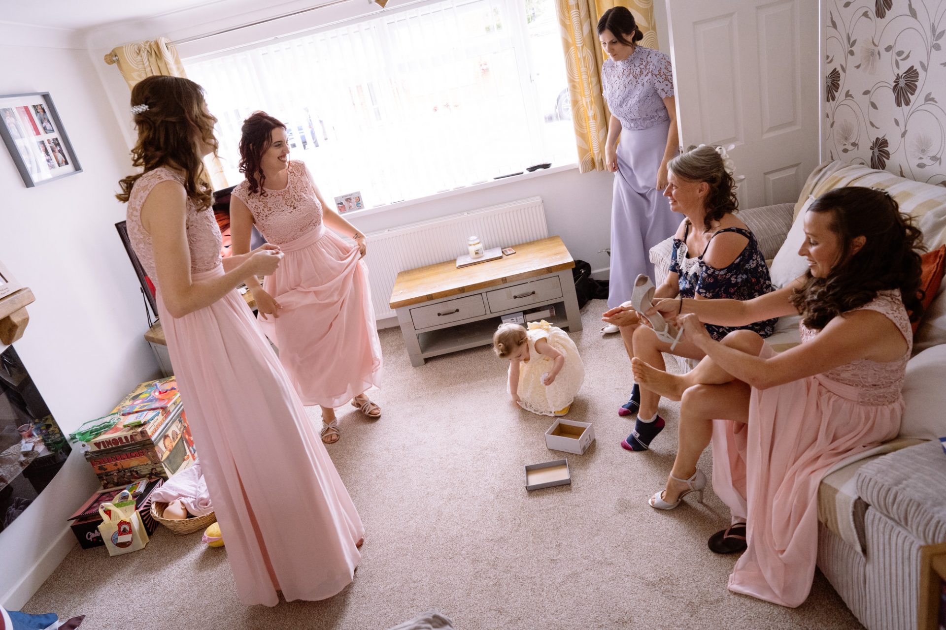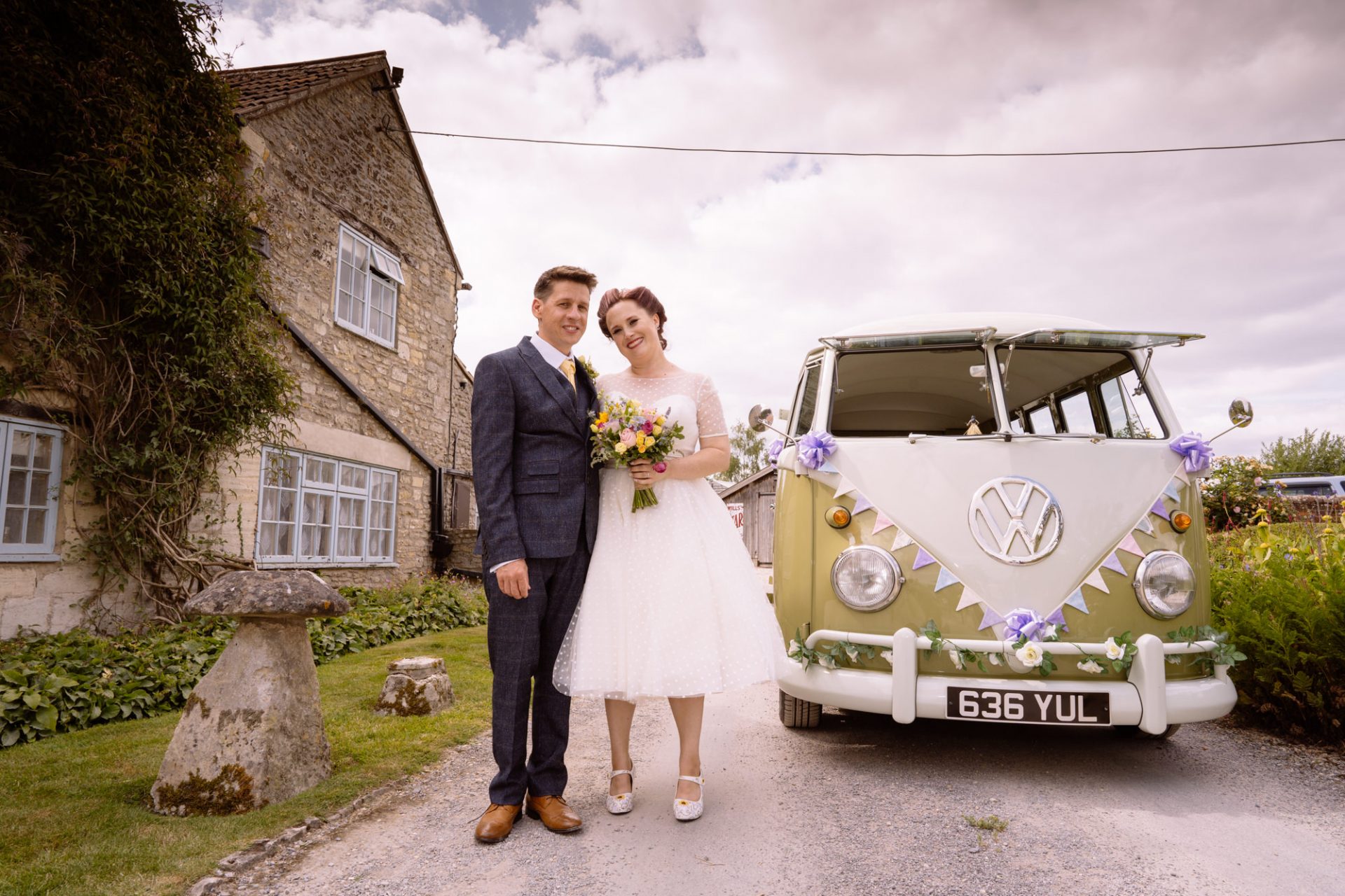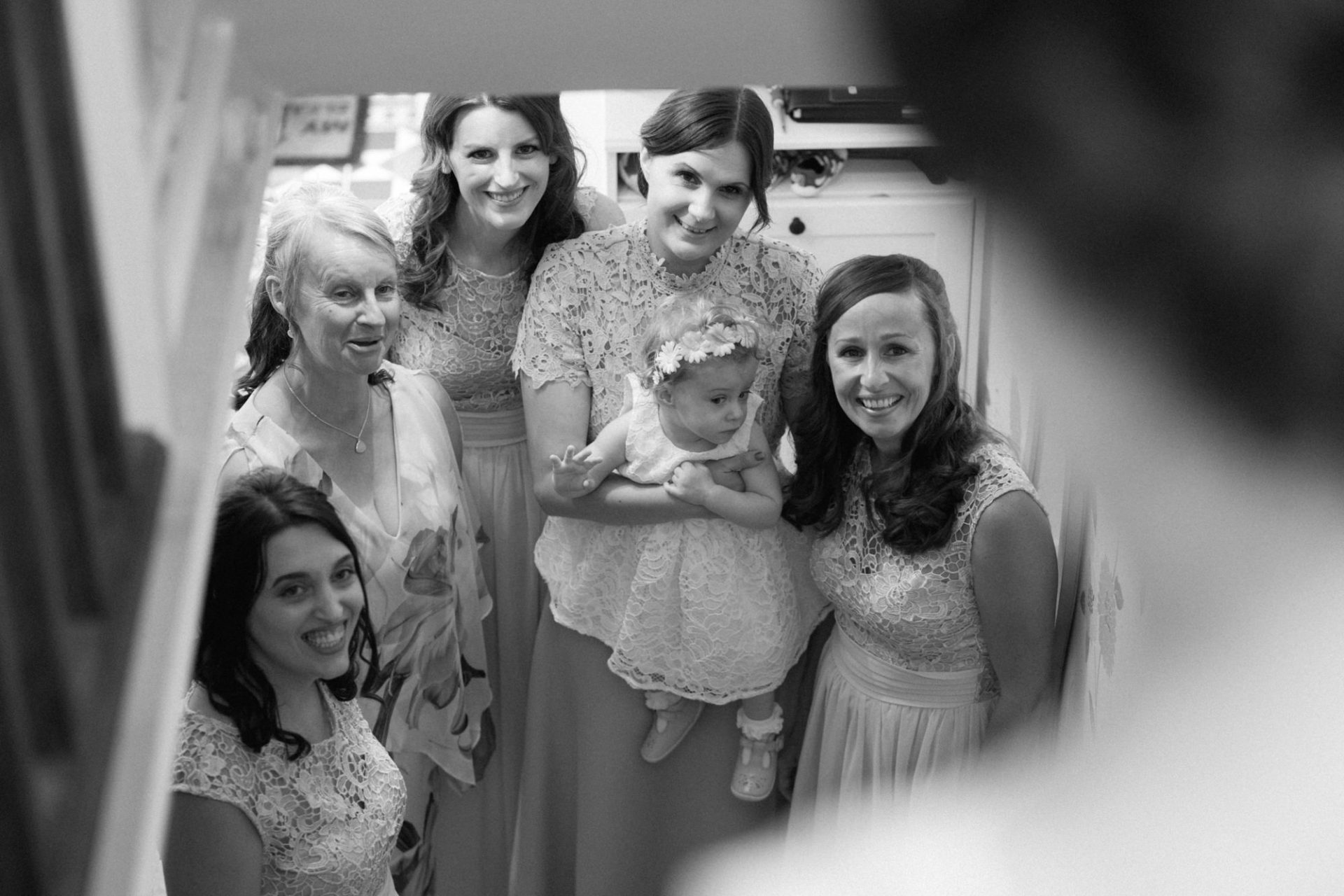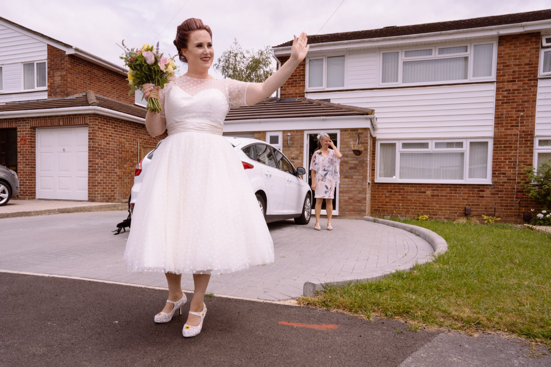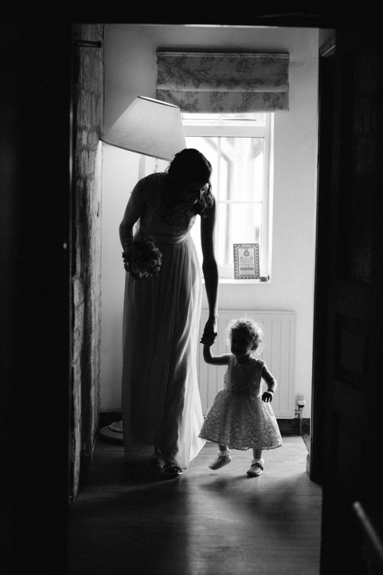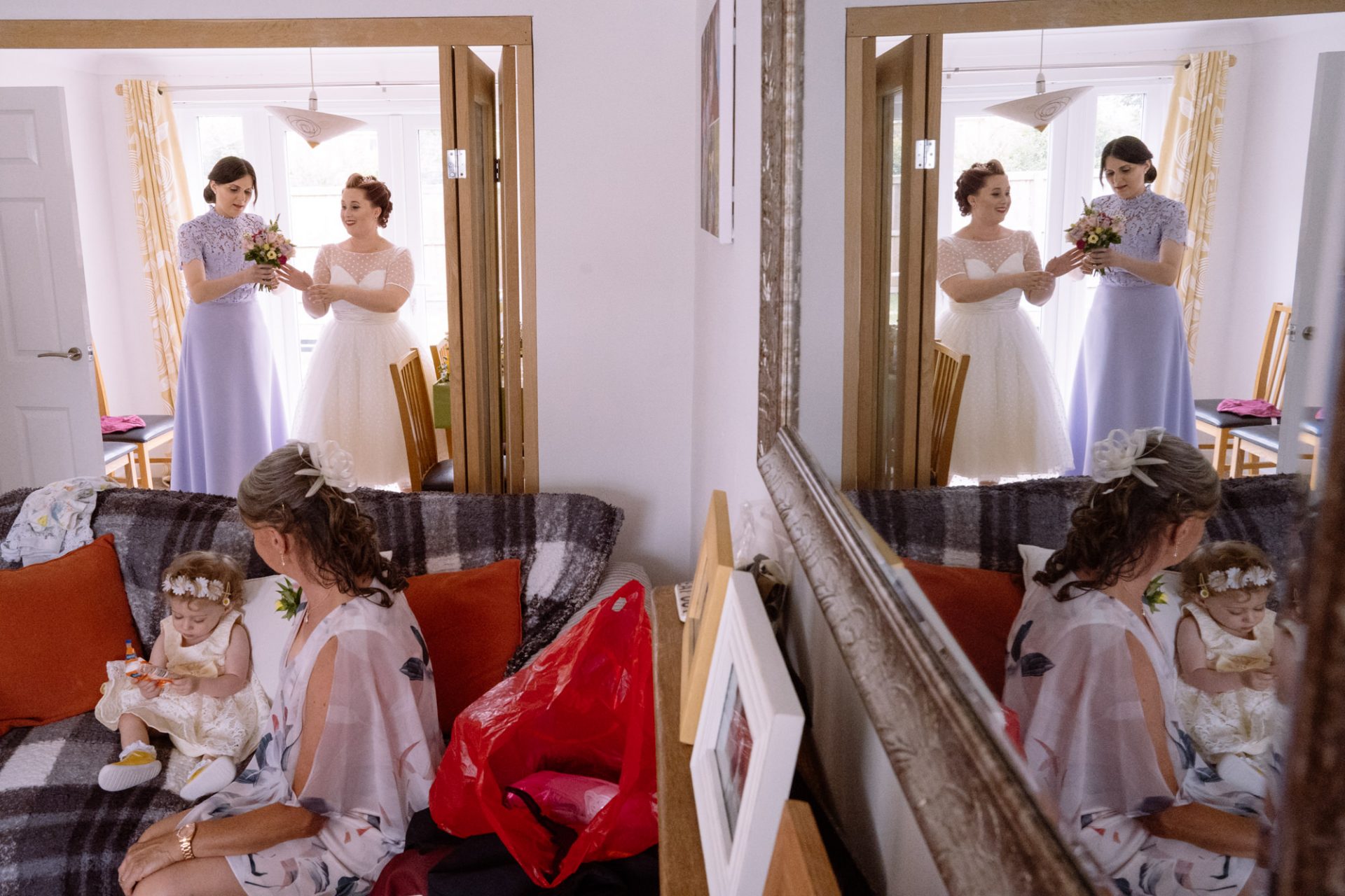 Whilst Tracey (I mean Lisa) was getting ready, the people on her street were congregating outside. Once Lisa came out of the house to wait for her bespoke VW campervan transport, they crowded round. There were some tears and plenty of neighbourly advice to be had. I love photographing the contrast between the normality of a street scene versus the pomp and circumstance of a family wedding. Lisa, her bridesmaids and the shiny campervan looked as though they’d been beamed straight from another part of history.