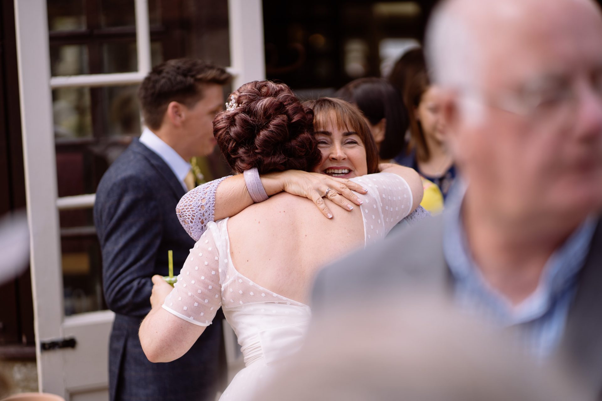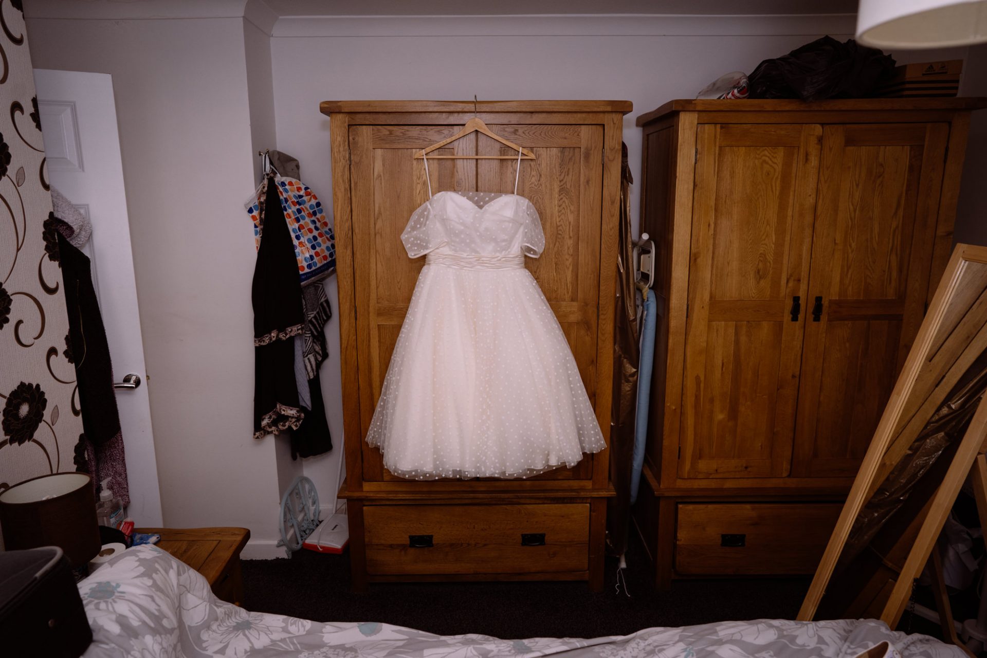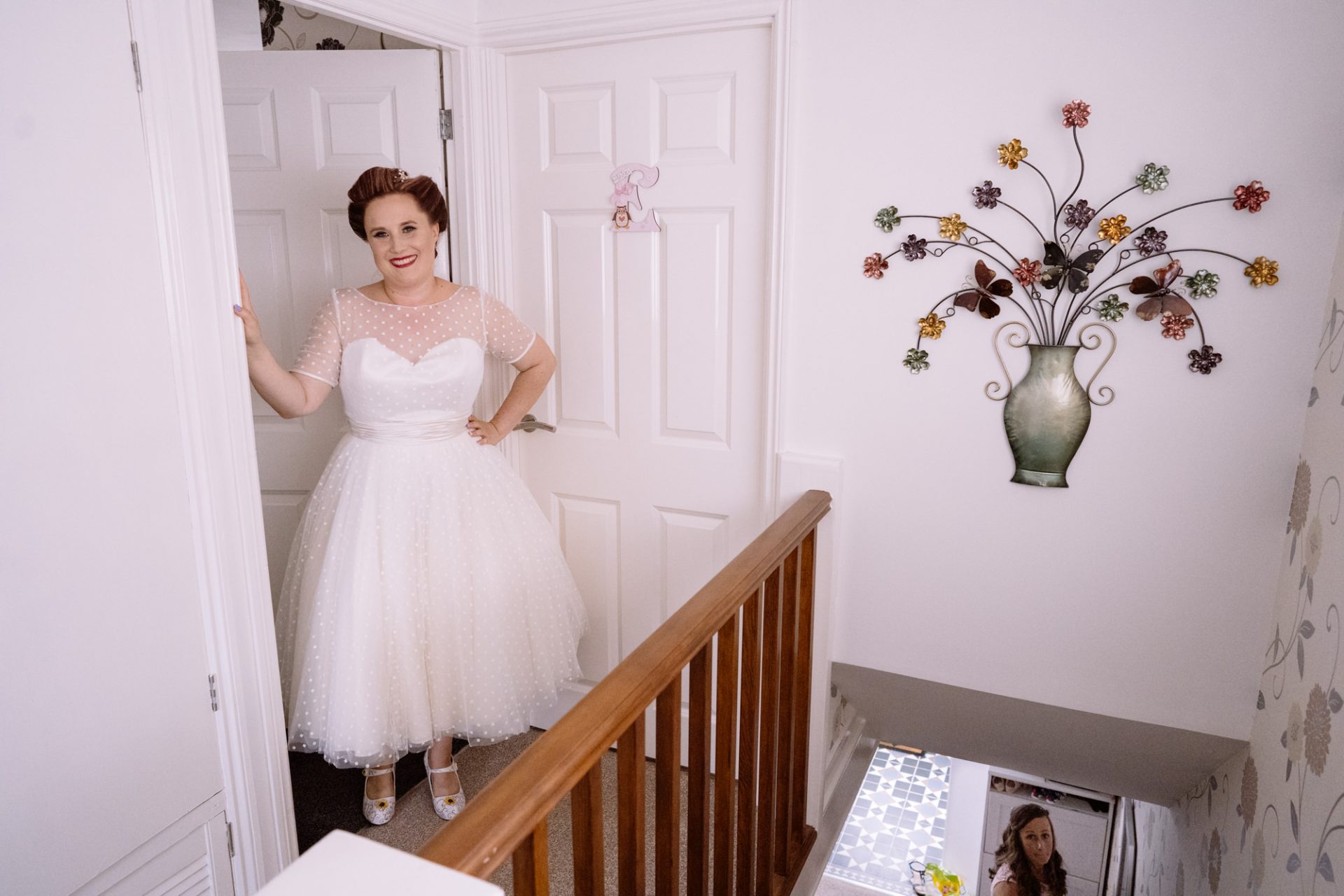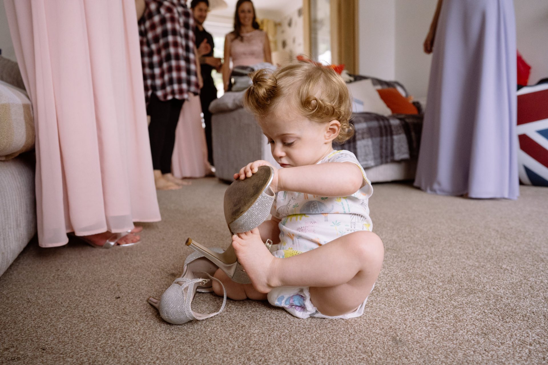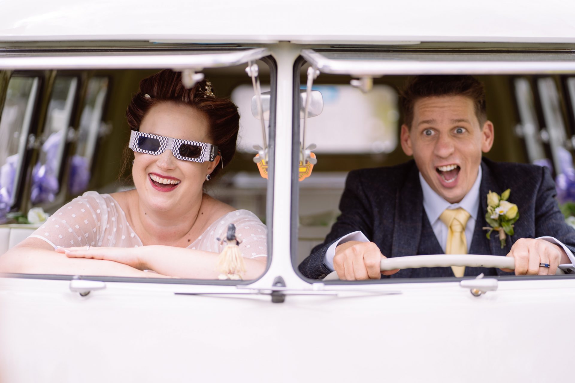 Whilst Tracey (I mean Lisa) was getting ready, the people on her street were congregating outside. Once Lisa came out of the house to wait for her bespoke VW campervan transport, they crowded round. There were some tears and plenty of neighbourly advice to be had. I love photographing the contrast between the normality of a street scene versus the pomp and circumstance of a family wedding. Lisa, her bridesmaids and the shiny campervan looked as though they’d been beamed straight from another part of history.