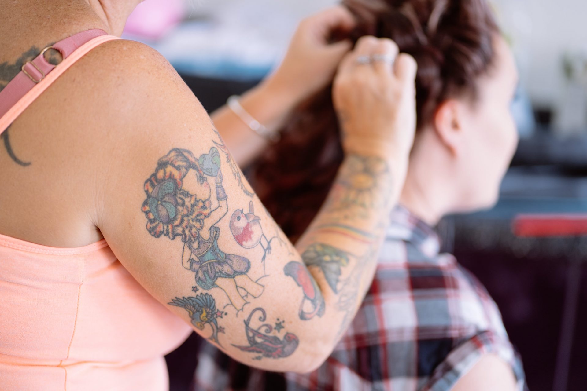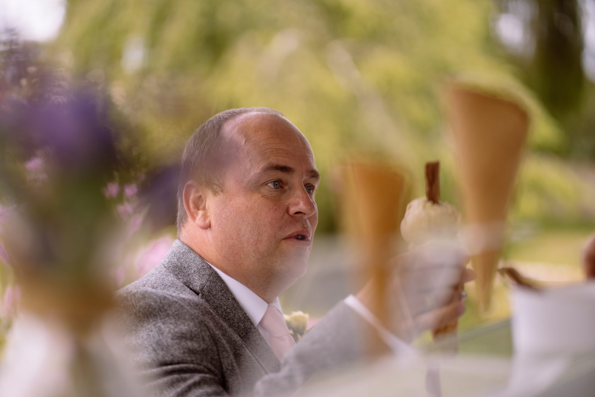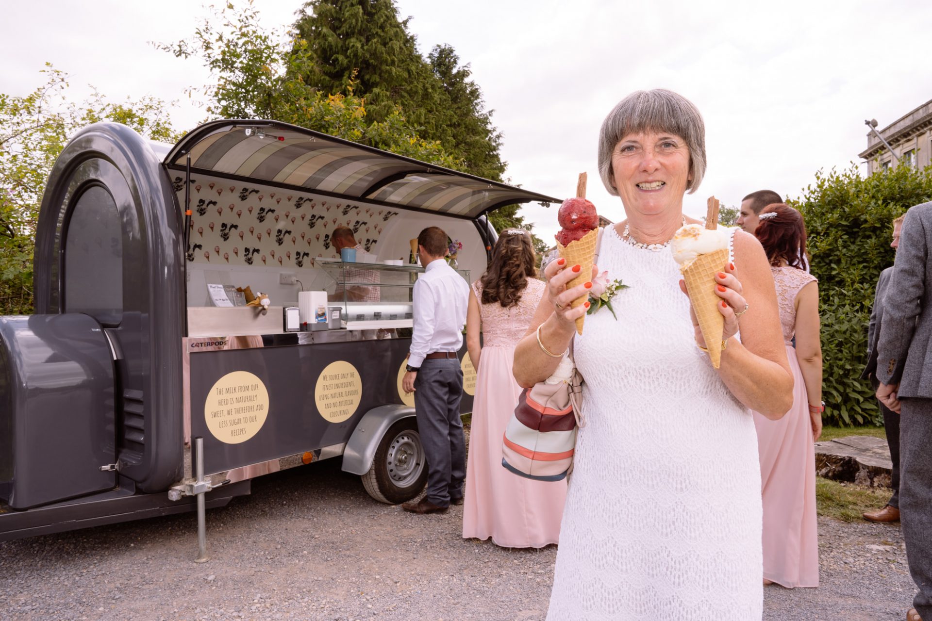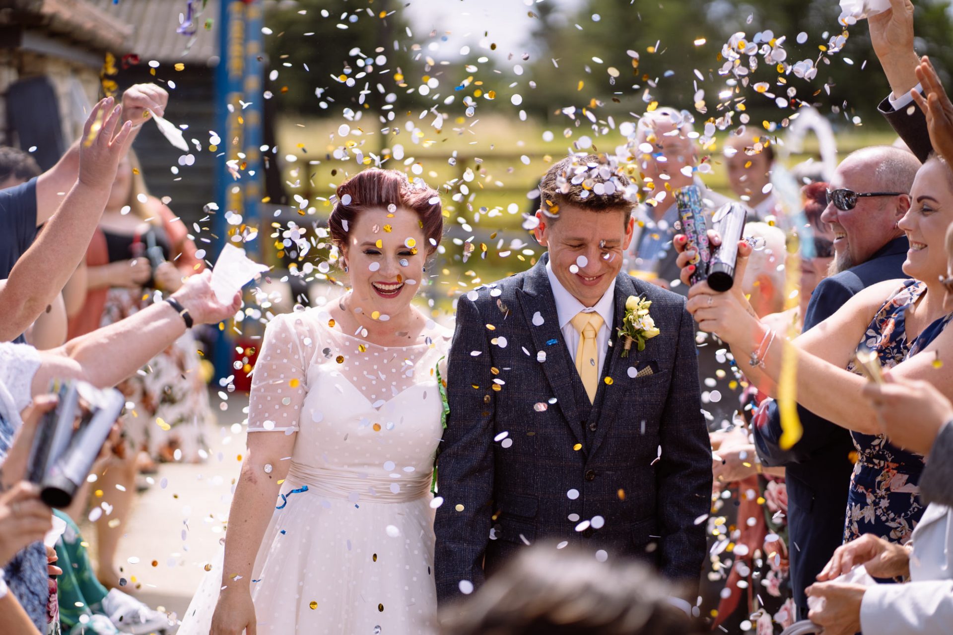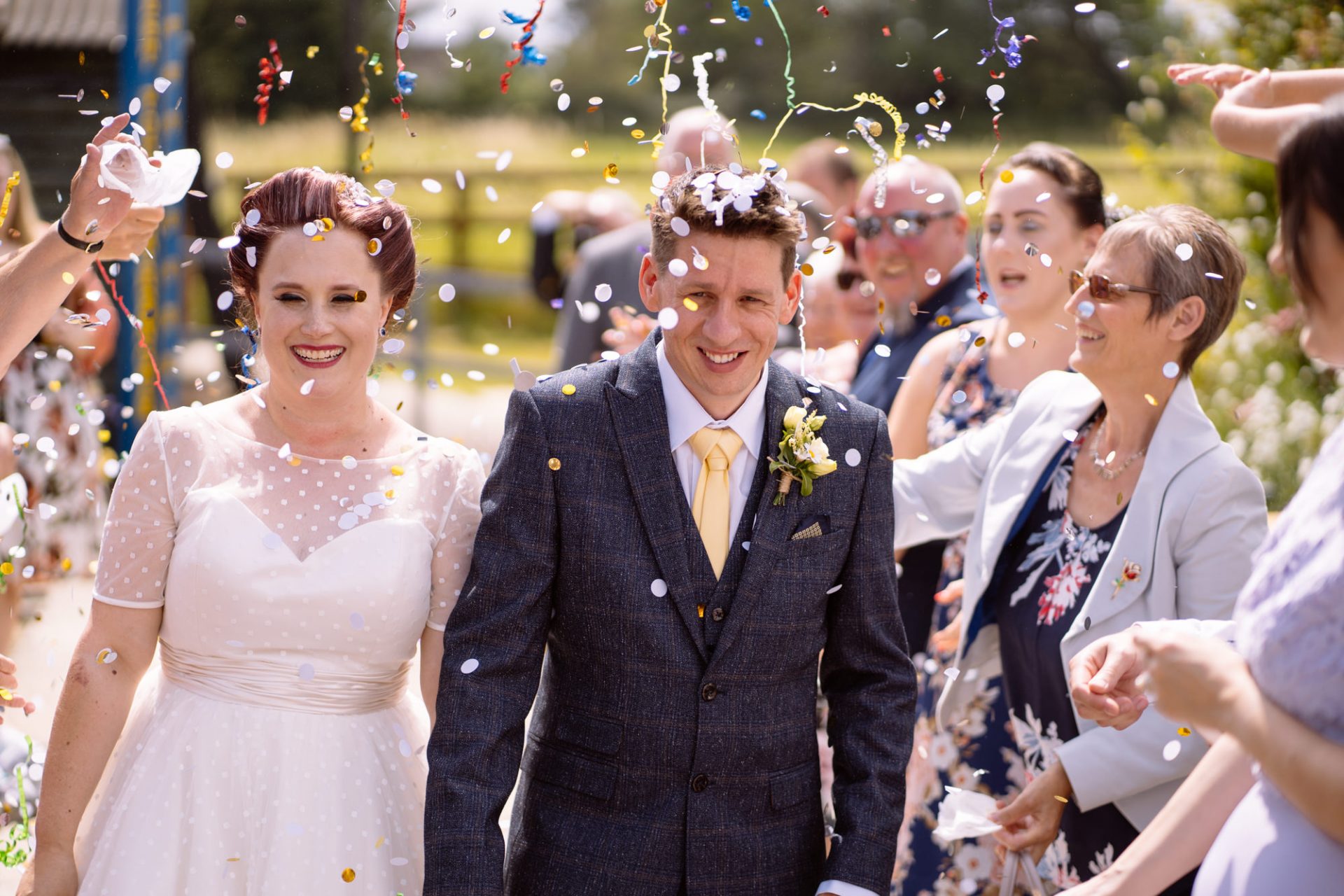 Whilst Tracey (I mean Lisa) was getting ready, the people on her street were congregating outside. Once Lisa came out of the house to wait for her bespoke VW campervan transport, they crowded round. There were some tears and plenty of neighbourly advice to be had. I love photographing the contrast between the normality of a street scene versus the pomp and circumstance of a family wedding. Lisa, her bridesmaids and the shiny campervan looked as though they’d been beamed straight from another part of history.