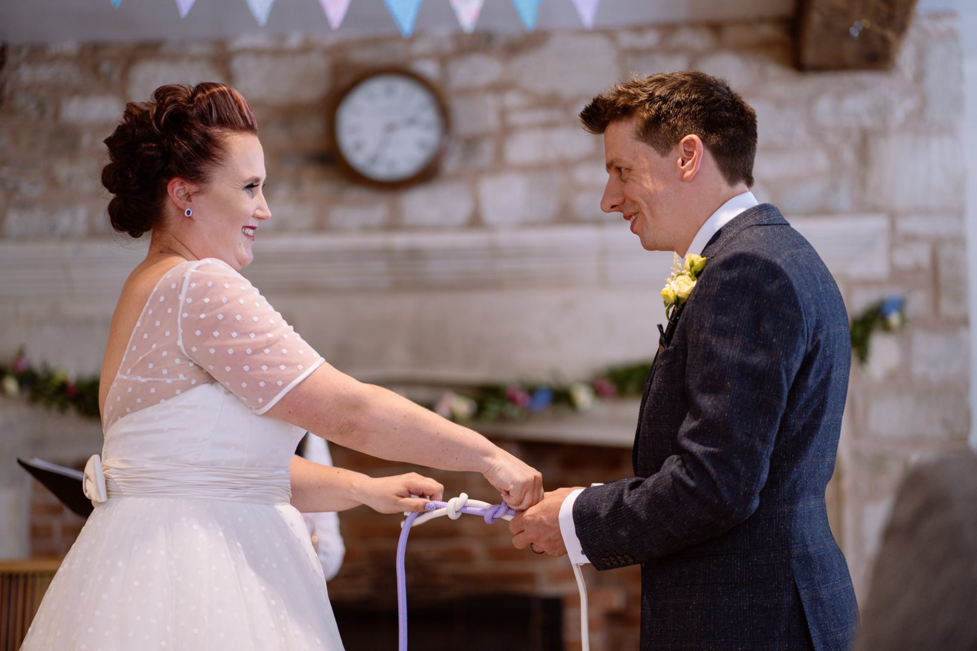 Once at the venue, it was showtime. I could feel The Moonraker Hotel’s amazing relaxed vibes extending amongst the two sides of the family. Tracey (Lisa) walked down the aisle to meet Chris and everything about the ceremony went smoothly (except perhaps the tying of rope knots which might have taken longer than planned!). After that, the newlyweds emerged into the Somerset sunshine to receive many emotional congratulations.