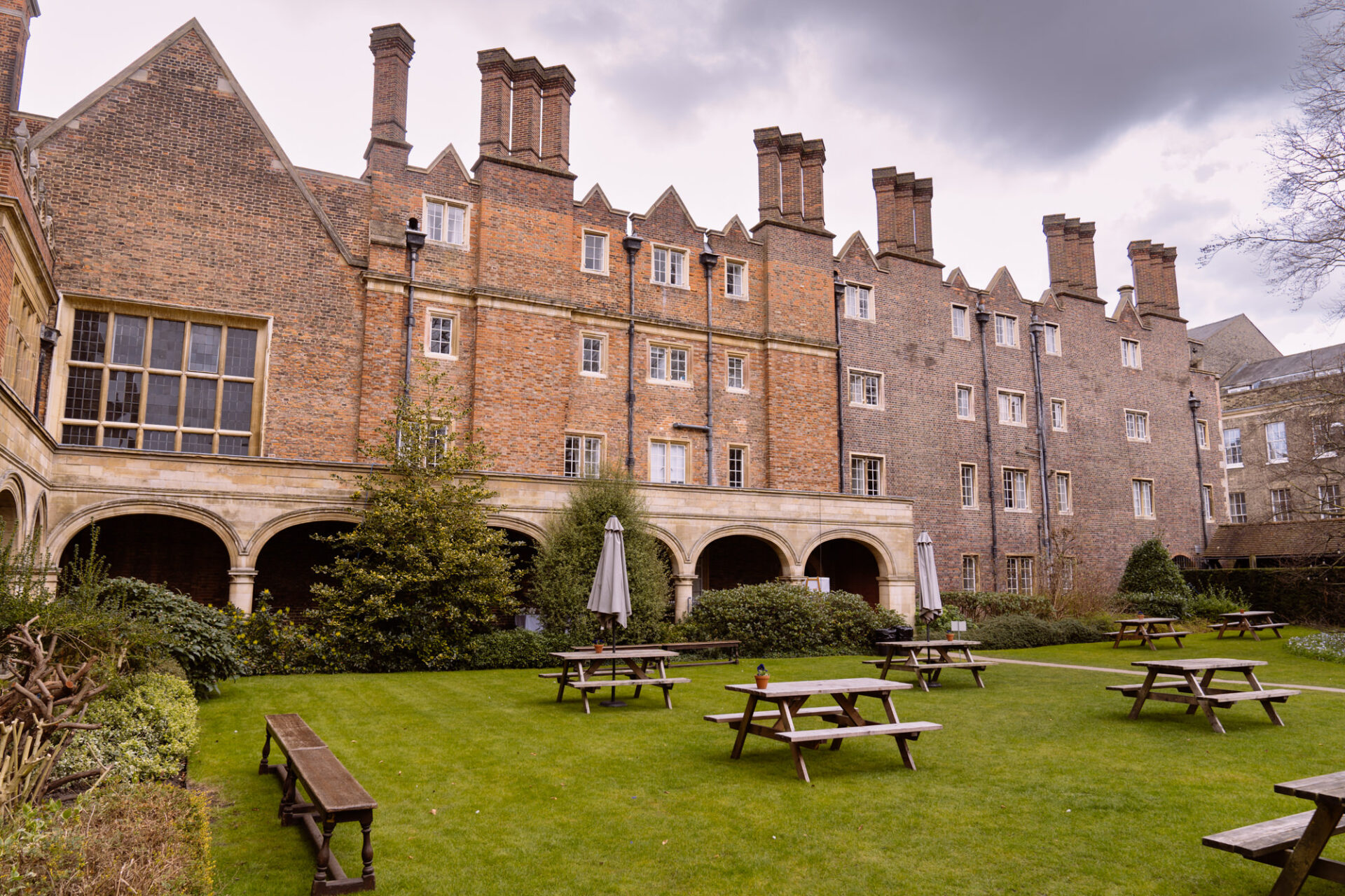 Founded in 1596 by Lady Frances Sidney, Countess of Sussex, the College is home to a diverse and dynamic community. Sidney is a very well-kept secret. It’s Nobel Prize-winners, Elizabethan brickwork, charming Cloister Court, haunting Chapel, exquisite rococo Hall, medieval cellars, or beautiful ancient gardens all lie behind a self-effacing wall of Roman cement. I hope that Lou felt like Lady Frances for the day!