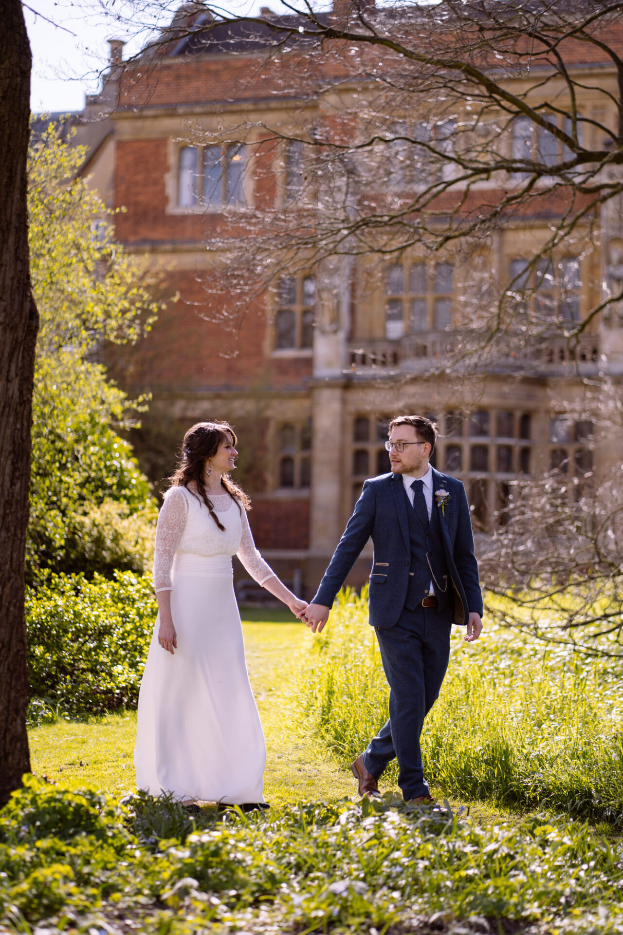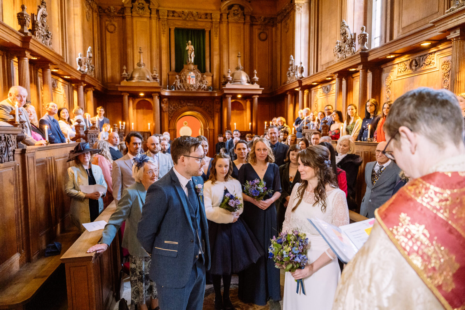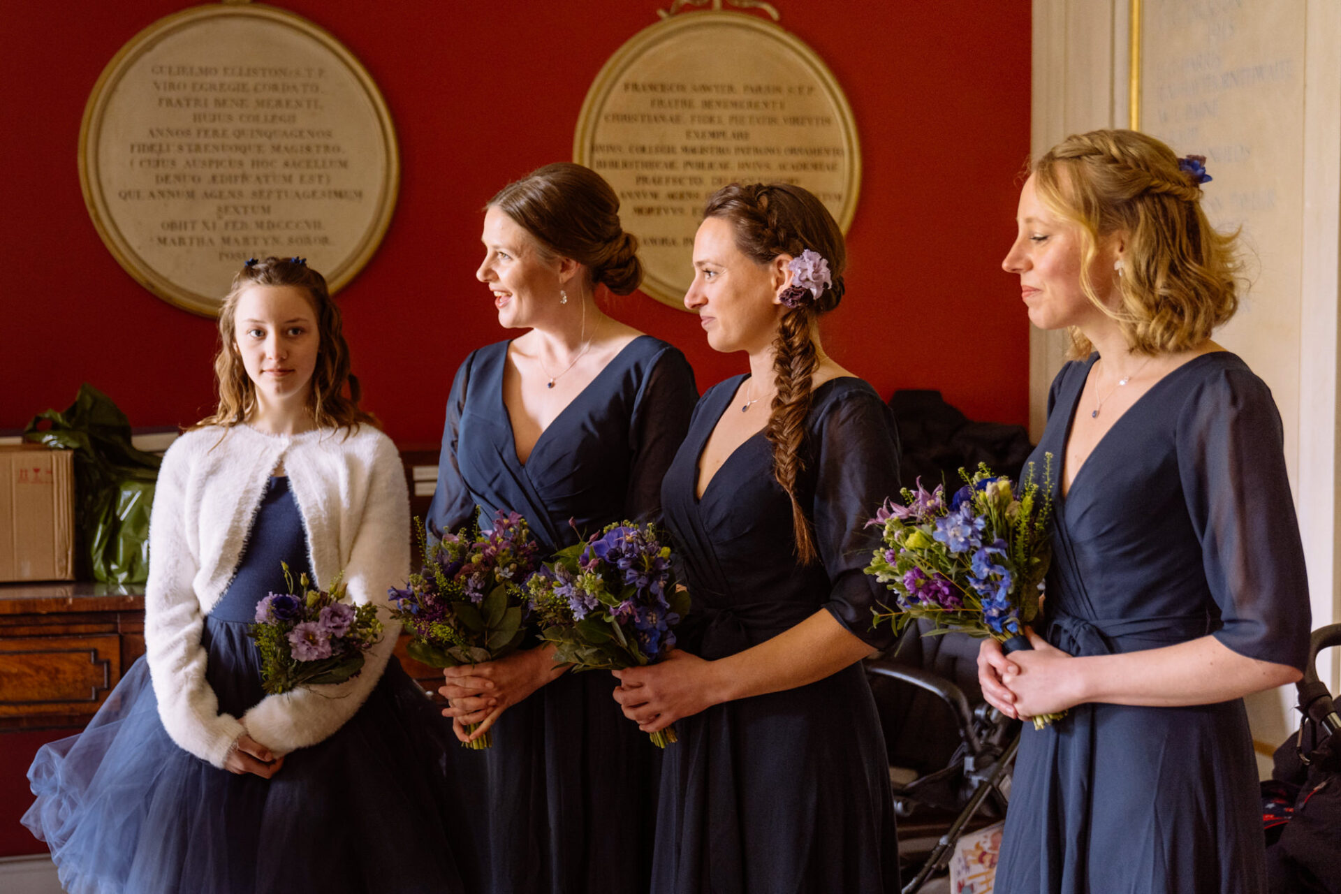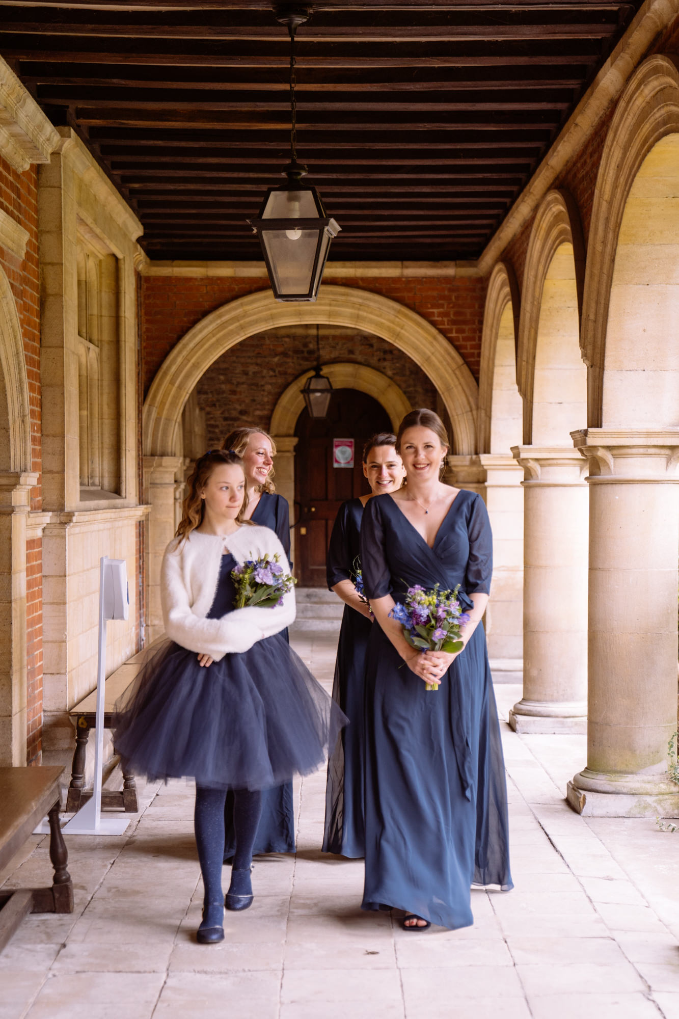 Before this wedding, I was aware of the well-known phrase ‘April Showers’. I wasn’t aware though that this referred to snow! Indeed, whilst we were shooting the formal groups outside the college chapel, the sunshine tunred to chilly snowflakes! One minute out newlyweds were hand in hand on the lawn, the next they’re sheltering in a 16th century doorway!