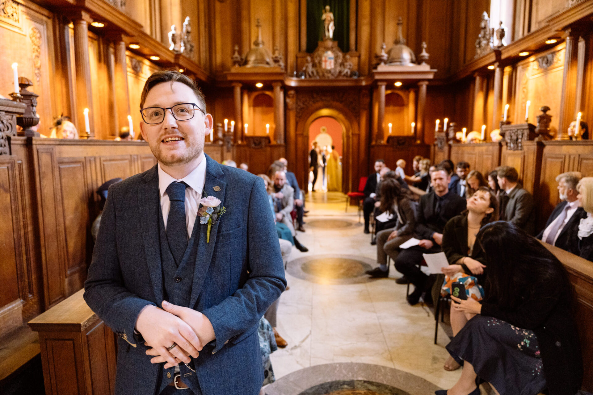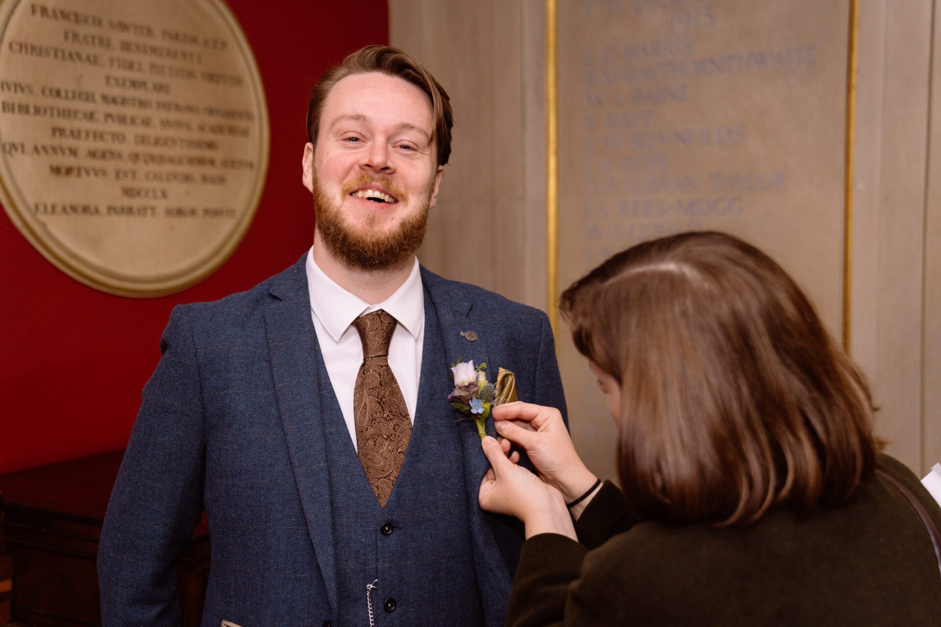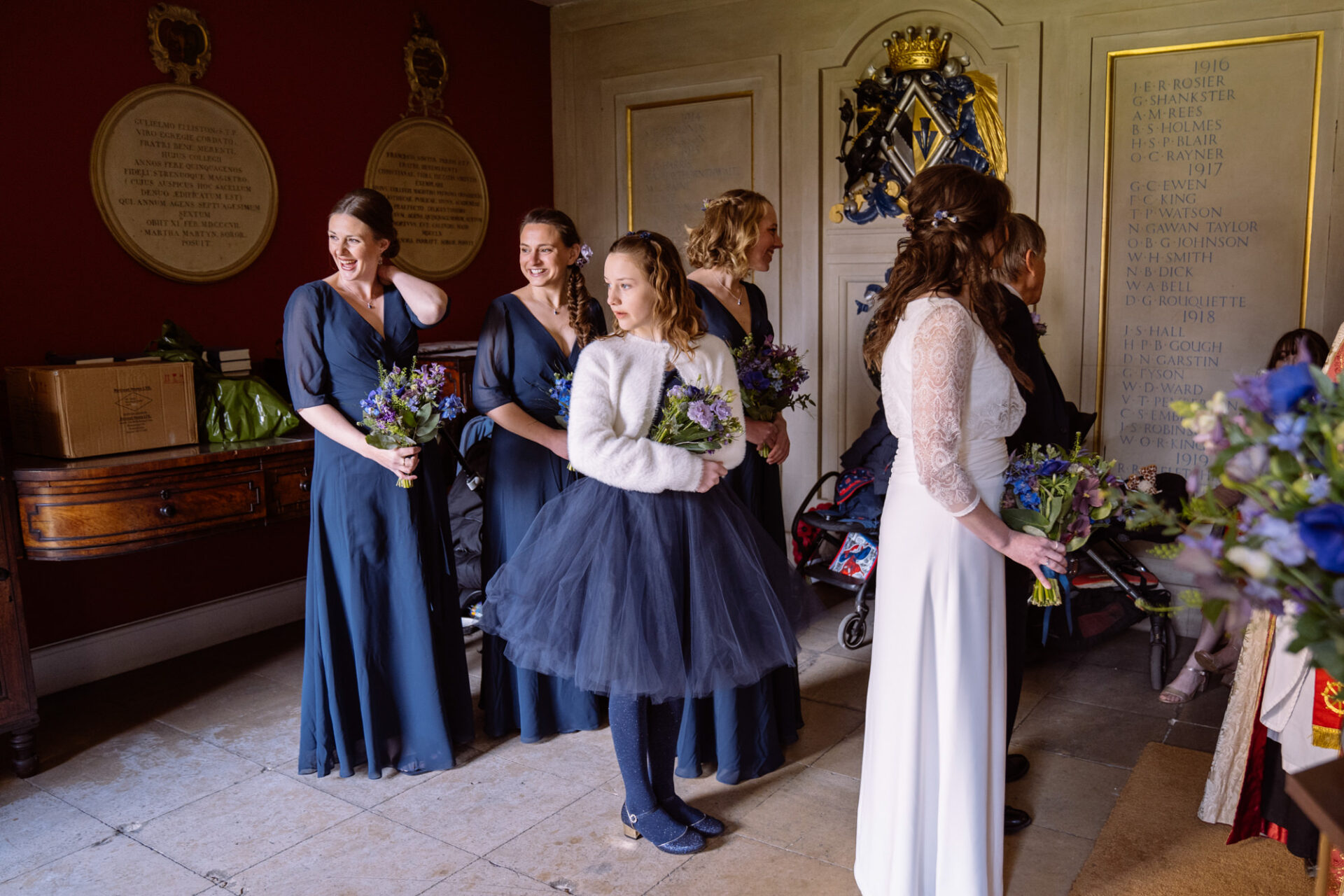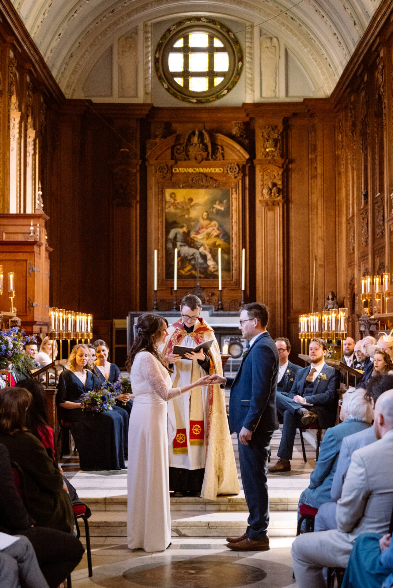 Before this wedding, I was aware of the well-known phrase ‘April Showers’. I wasn’t aware though that this referred to snow! Indeed, whilst we were shooting the formal groups outside the college chapel, the sunshine tunred to chilly snowflakes! One minute out newlyweds were hand in hand on the lawn, the next they’re sheltering in a 16th century doorway!