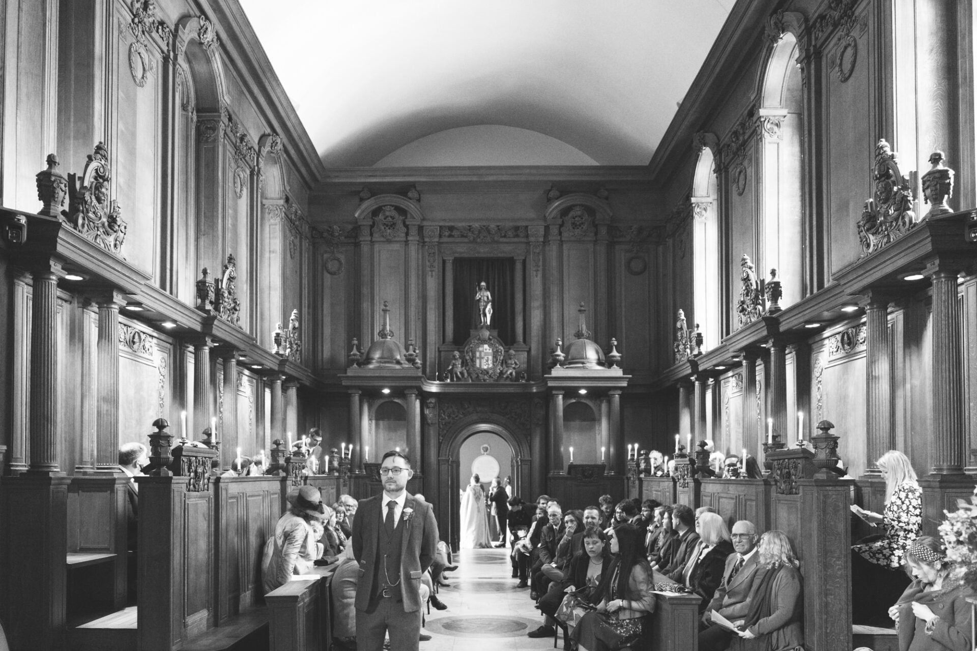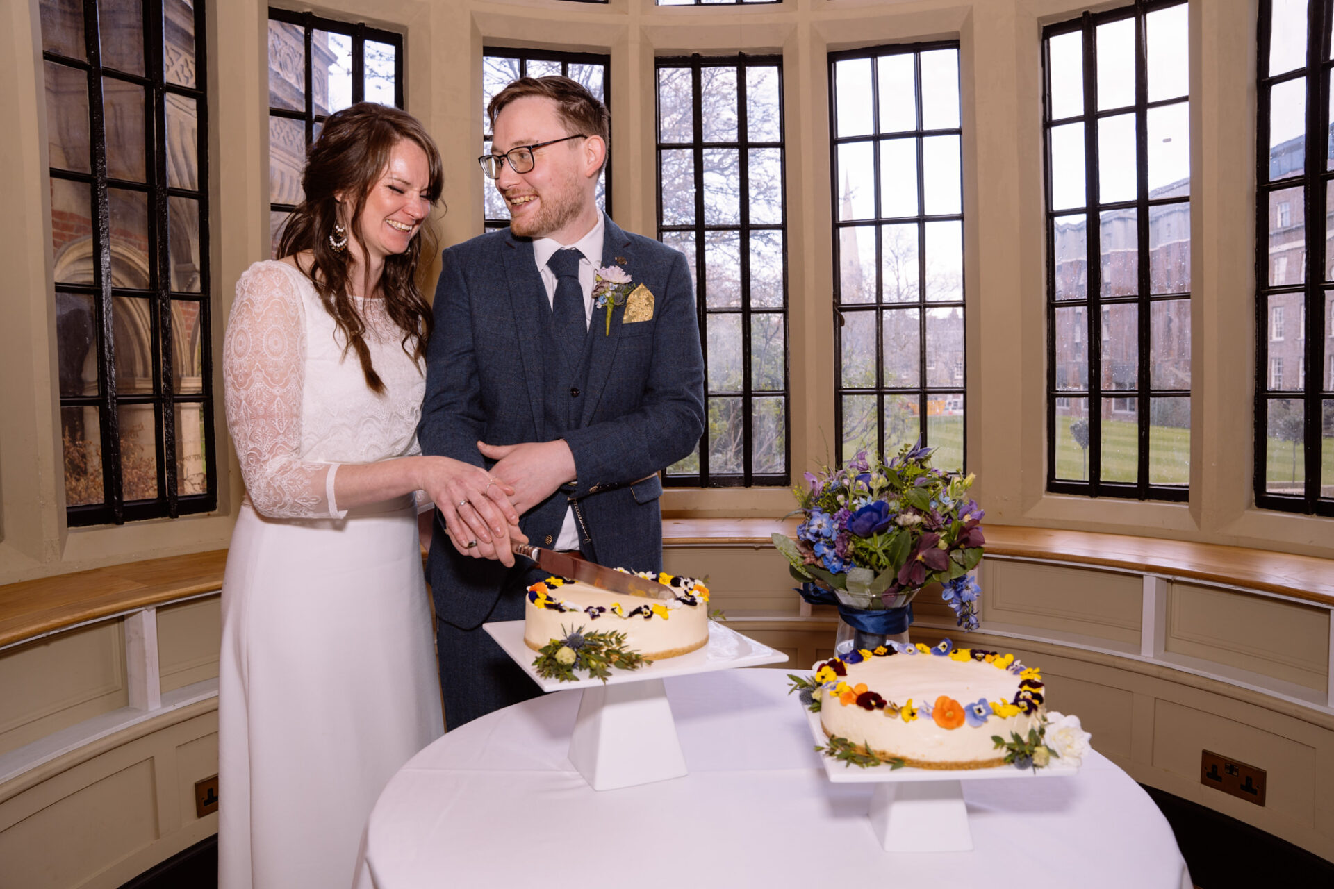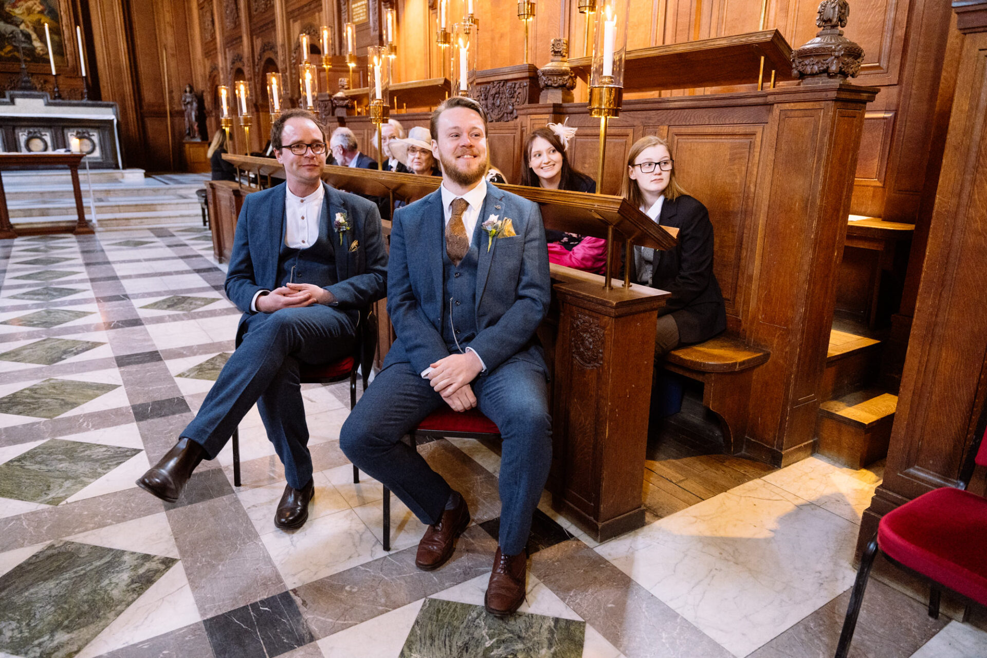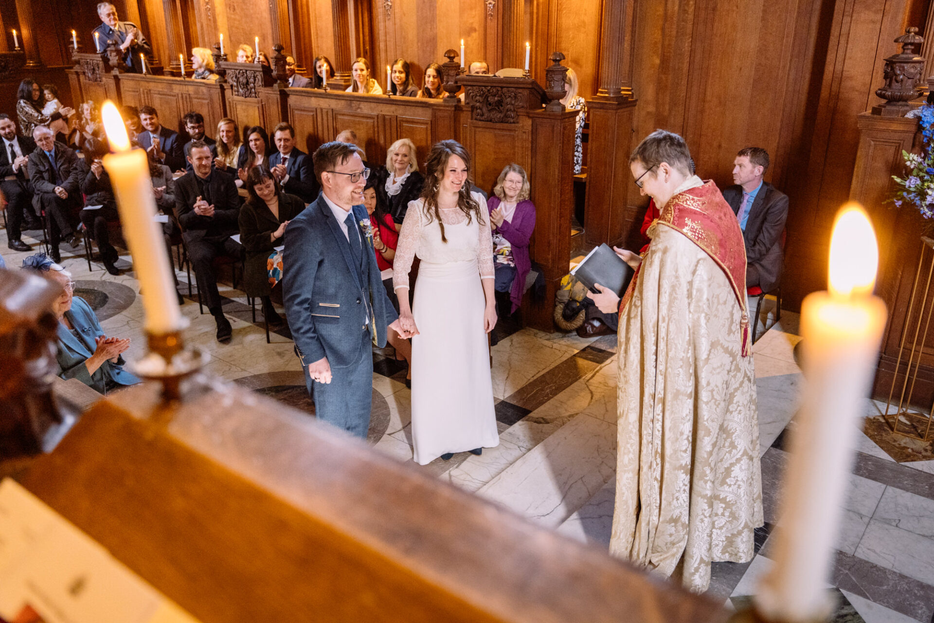 Before this wedding, I was aware of the well-known phrase ‘April Showers’. I wasn’t aware though that this referred to snow! Indeed, whilst we were shooting the formal groups outside the college chapel, the sunshine tunred to chilly snowflakes! One minute out newlyweds were hand in hand on the lawn, the next they’re sheltering in a 16th century doorway!