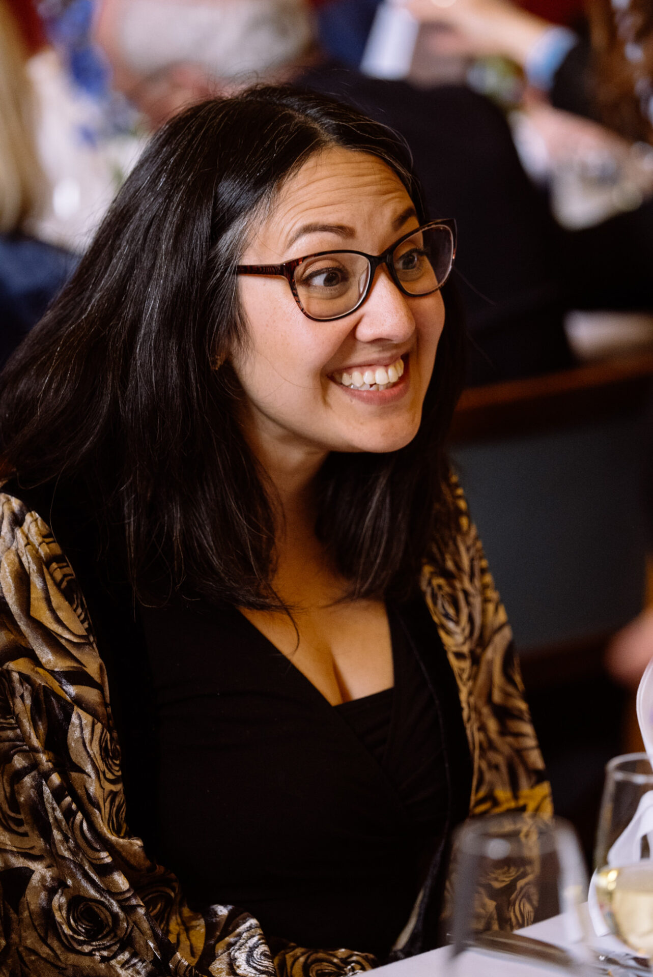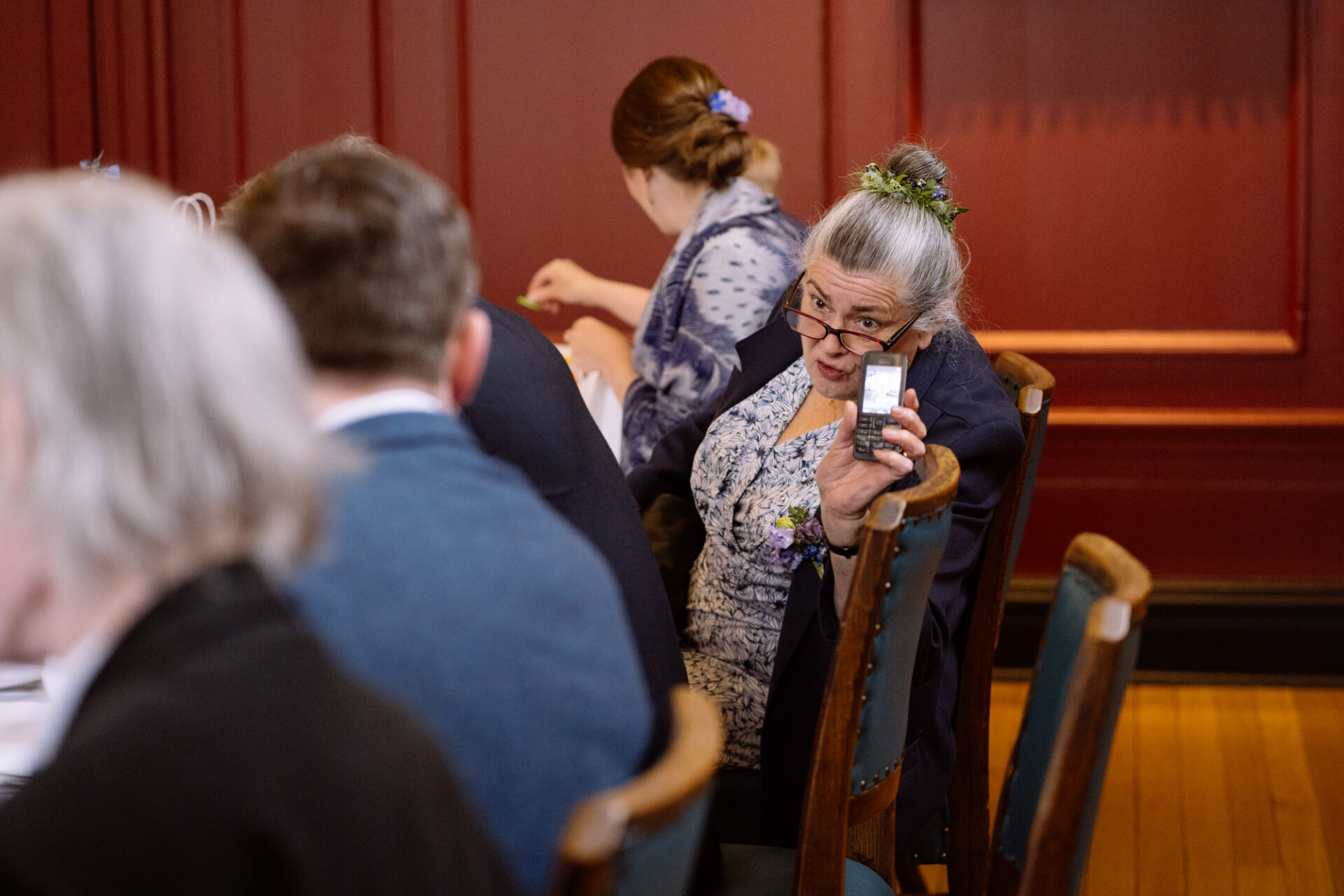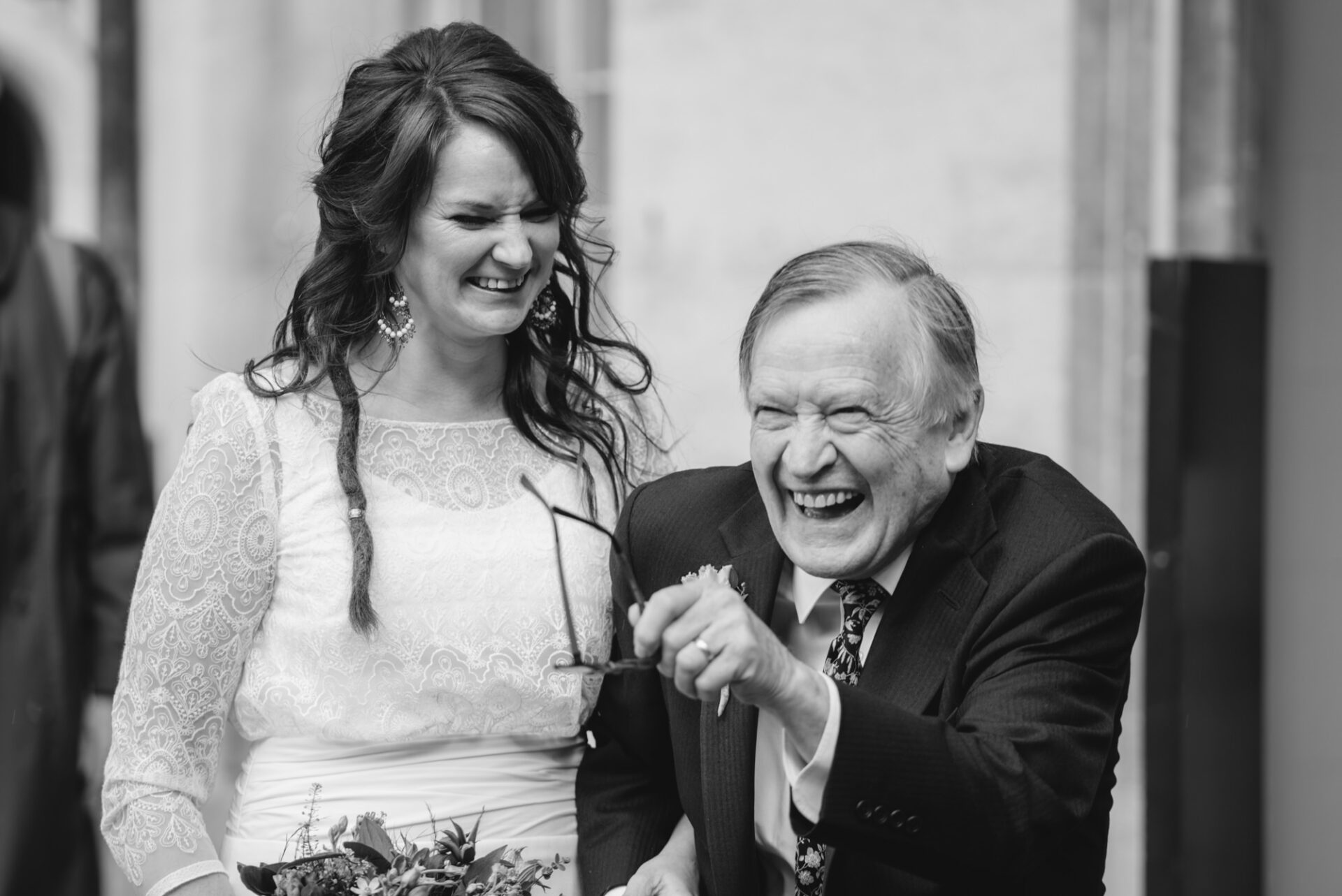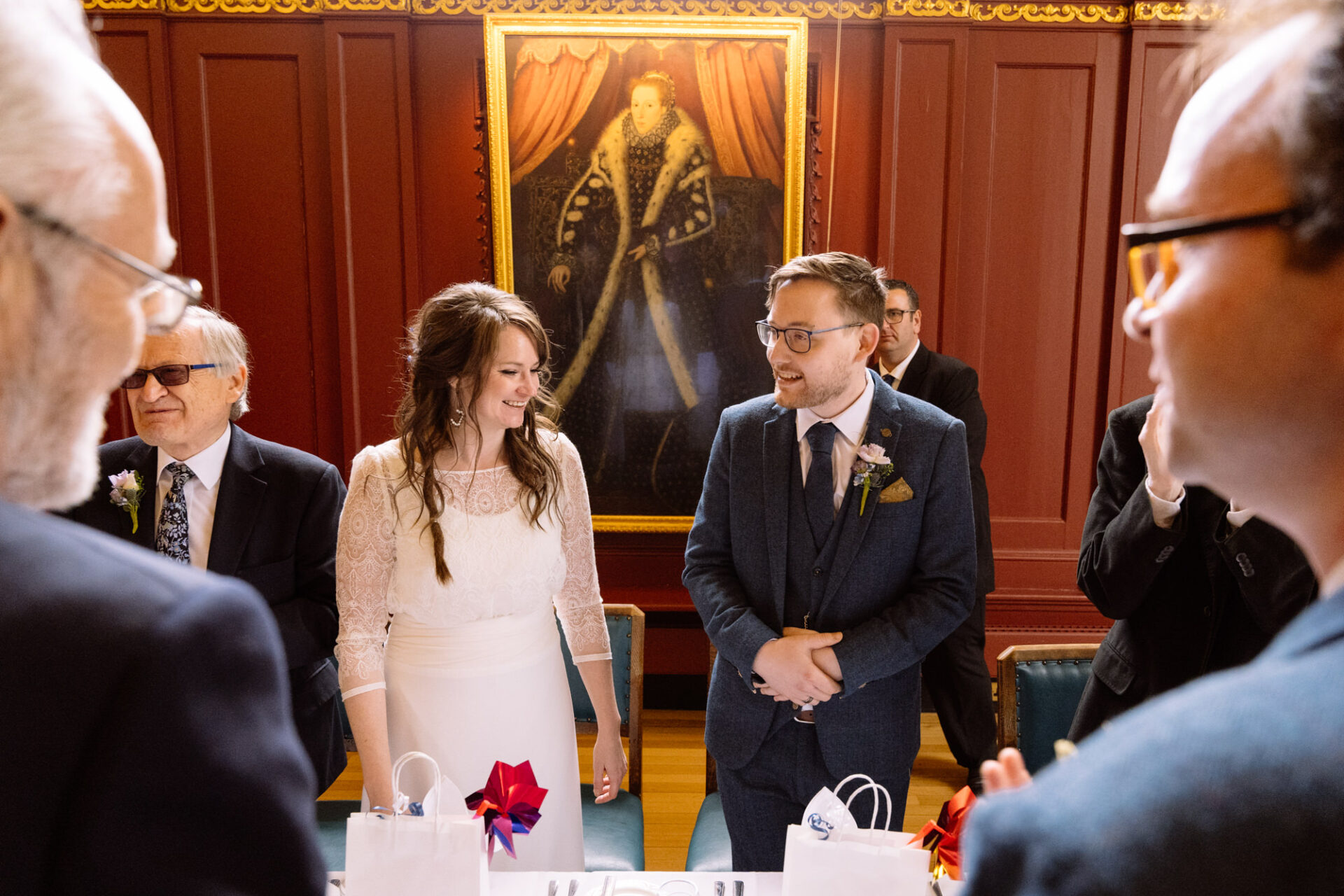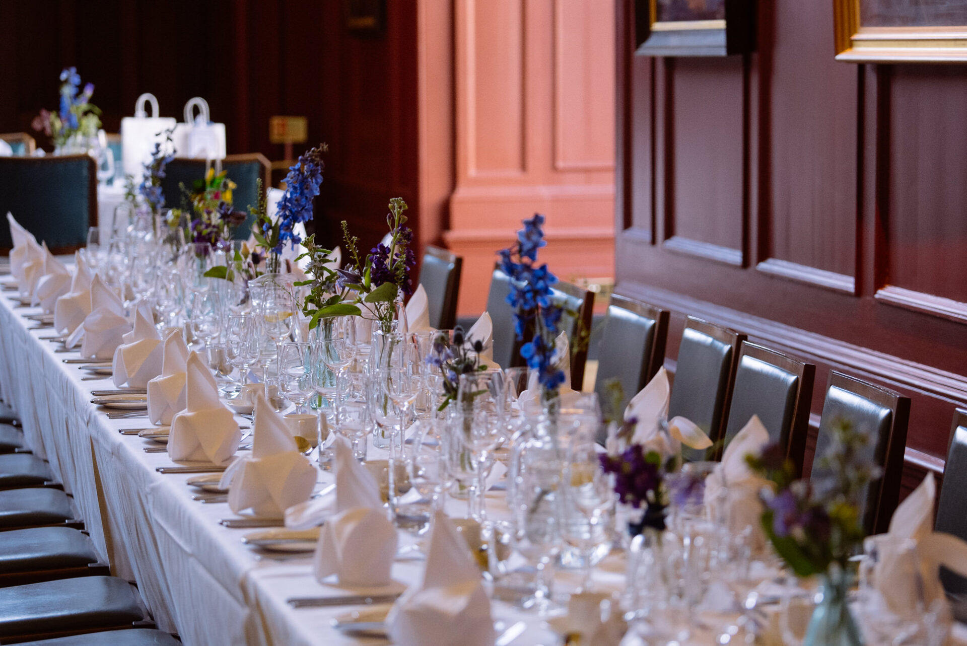 I enjoy photographing the room set-up for the wedding breakfast at every wedding. There are almost always interesting and beautiful decorations provided by specialist suppliers and the families and friends of the couple. The Great Hall at Sidney Sussex College added another level to this. The sheer size of room with it’s ornate high ceiling, huge windows and mezzanine balcony is only matched by the series or portraits adorning it’s walls. I was impressed by Lou’s Dad doing his Father of the Bride speech. You could tell he was used to public speaking, as his confidence, knowledge and turn of phrase had everyone entralled.