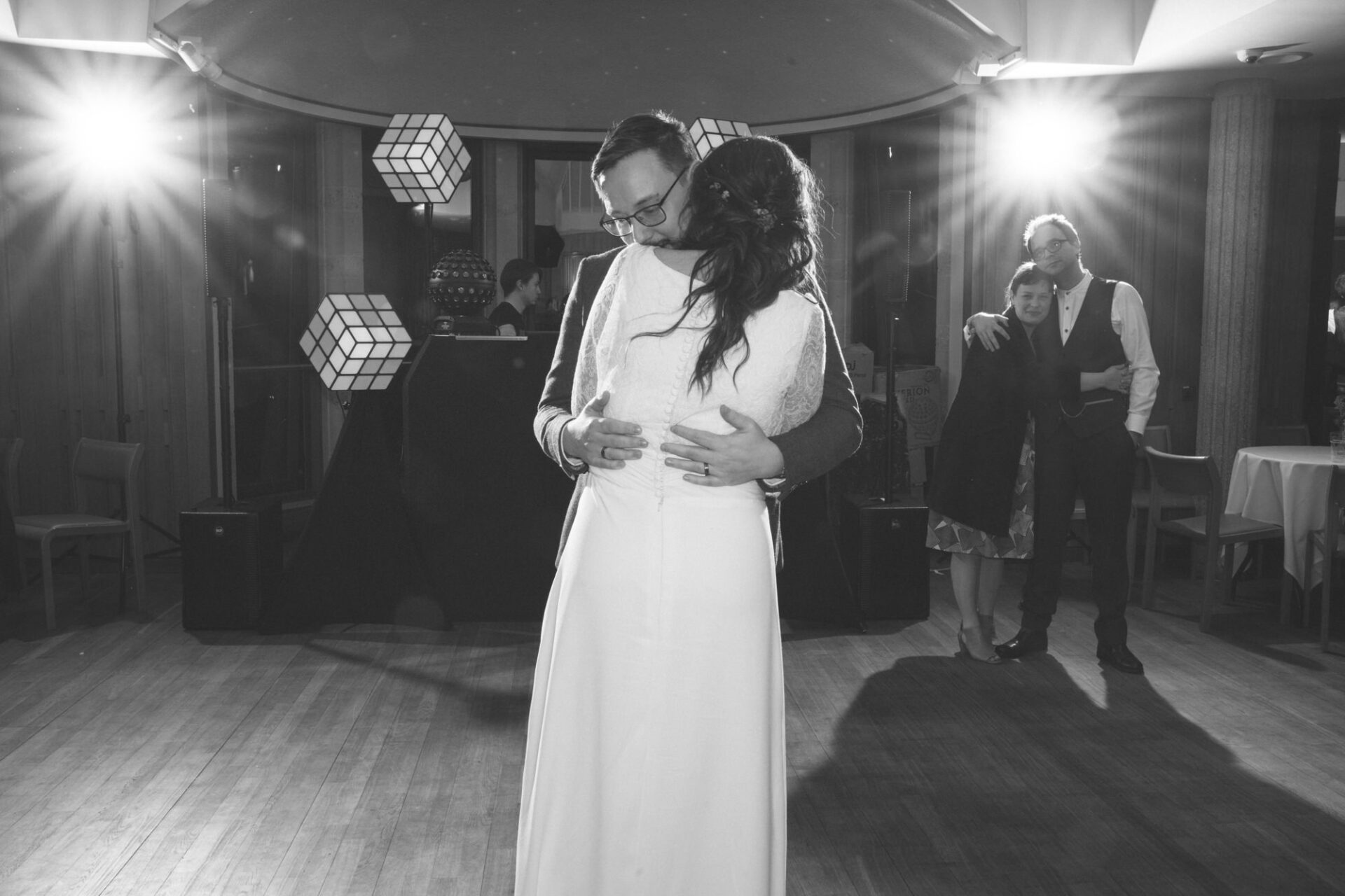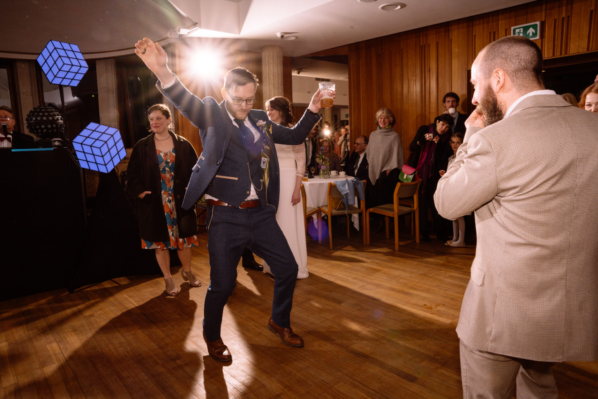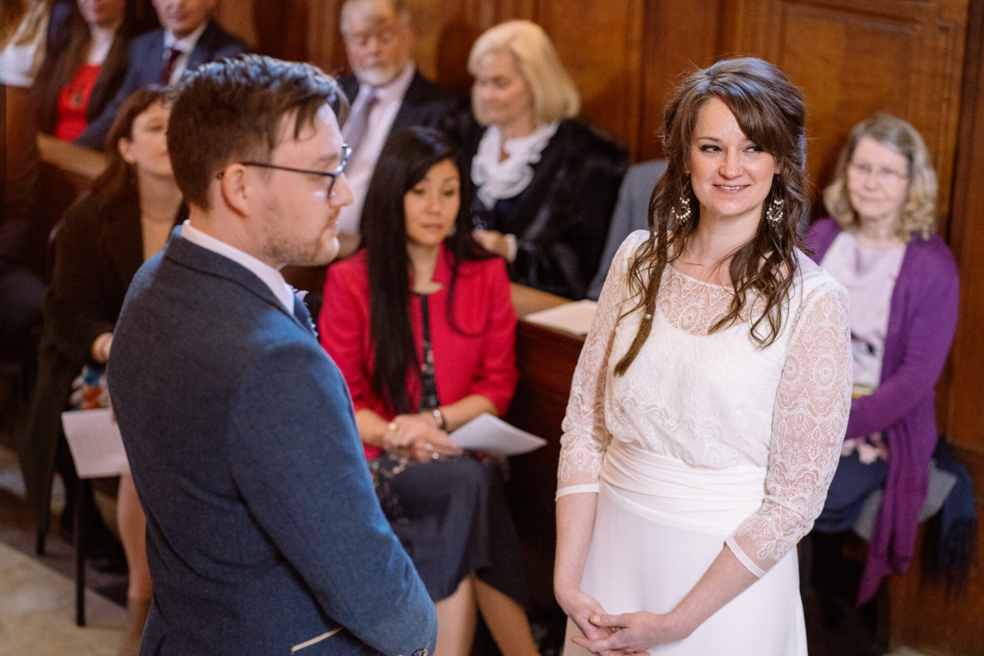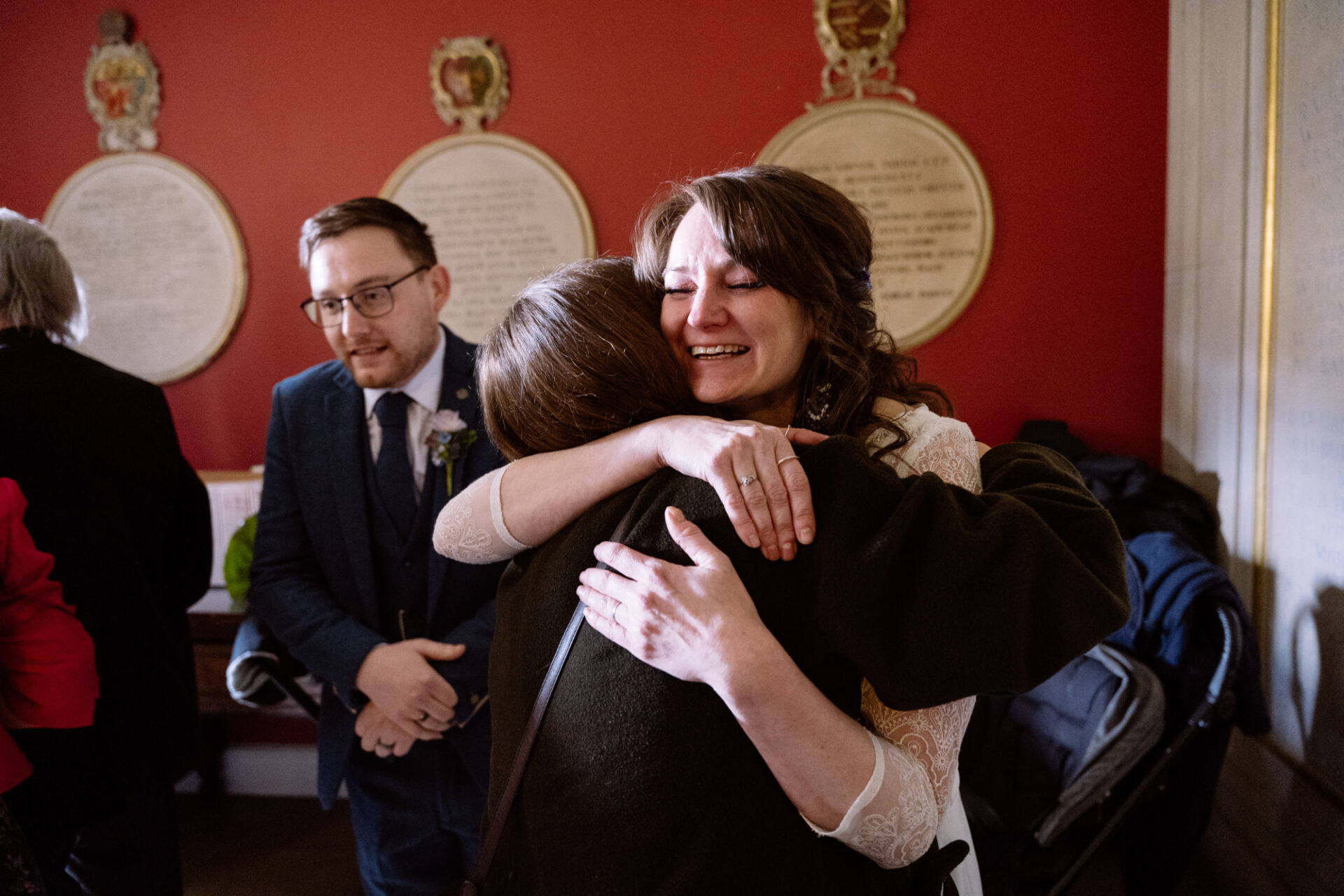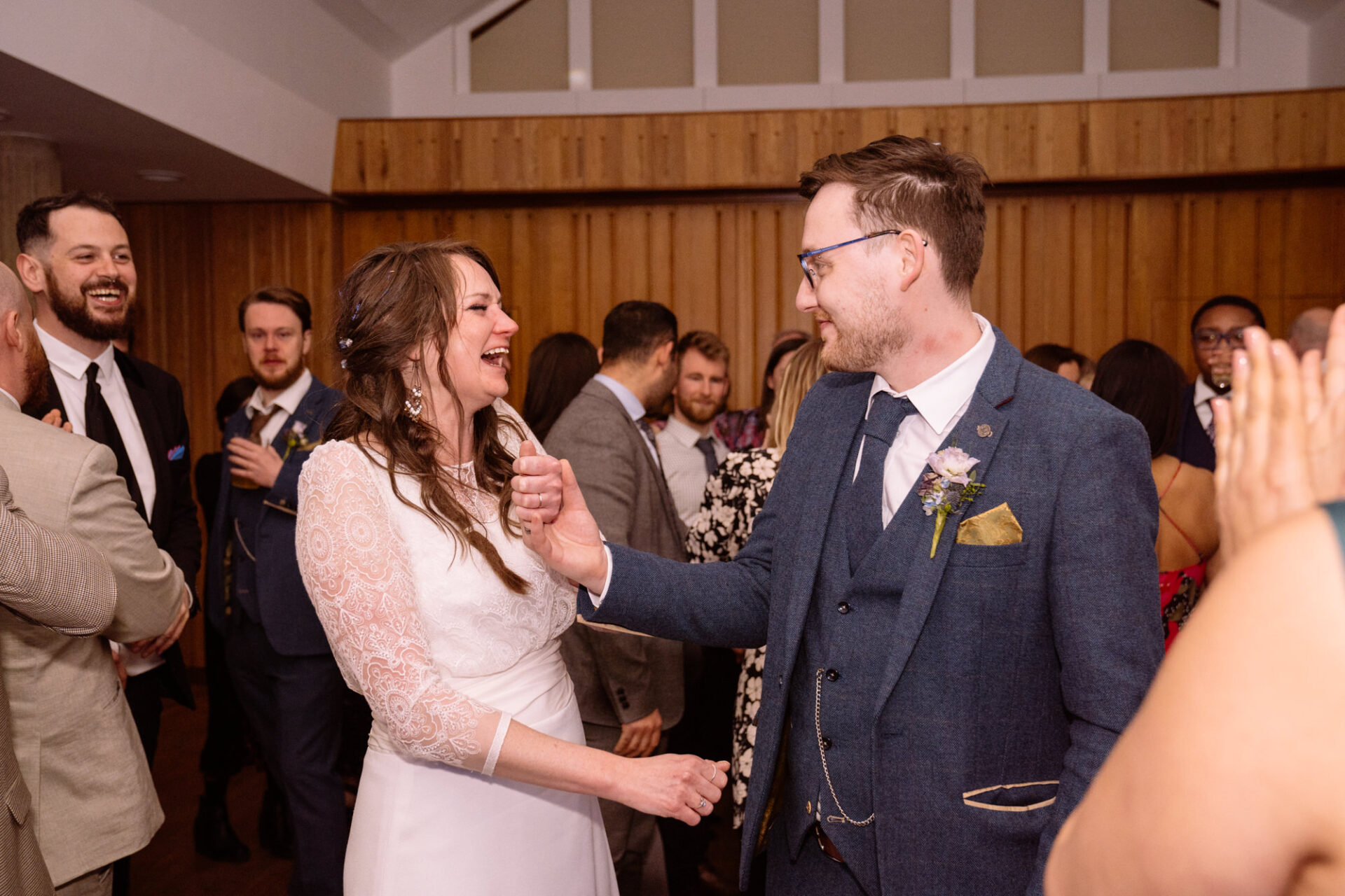 I enjoy photographing the room set-up for the wedding breakfast at every wedding. There are almost always interesting and beautiful decorations provided by specialist suppliers and the families and friends of the couple. The Great Hall at Sidney Sussex College added another level to this. The sheer size of room with it’s ornate high ceiling, huge windows and mezzanine balcony is only matched by the series or portraits adorning it’s walls. I was impressed by Lou’s Dad doing his Father of the Bride speech. You could tell he was used to public speaking, as his confidence, knowledge and turn of phrase had everyone entralled.