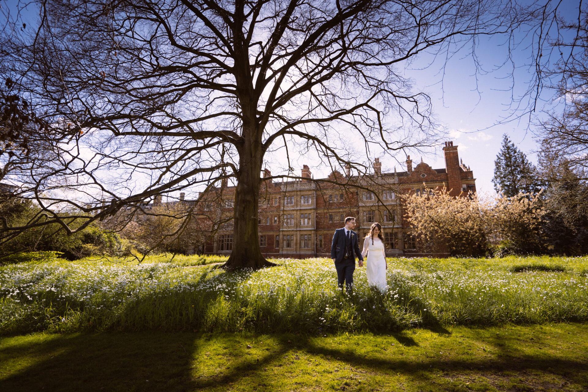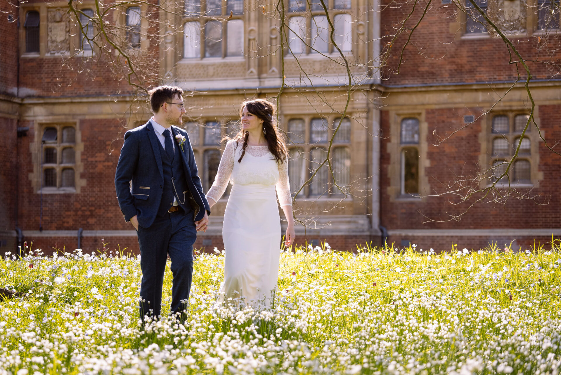 Luckily the snow lasted all of one minute and I was relieved to see the sun come out again. Whilst the guests enjoyed drinks among the cloisters, Lou, Link and I had a walk around the private gardens. There are few backdrops as authentic as the ancient college buildings combined with groomed lawns and all the wild flowers of early spring in bloom.