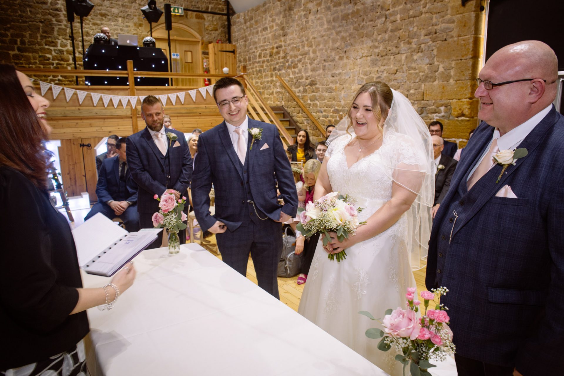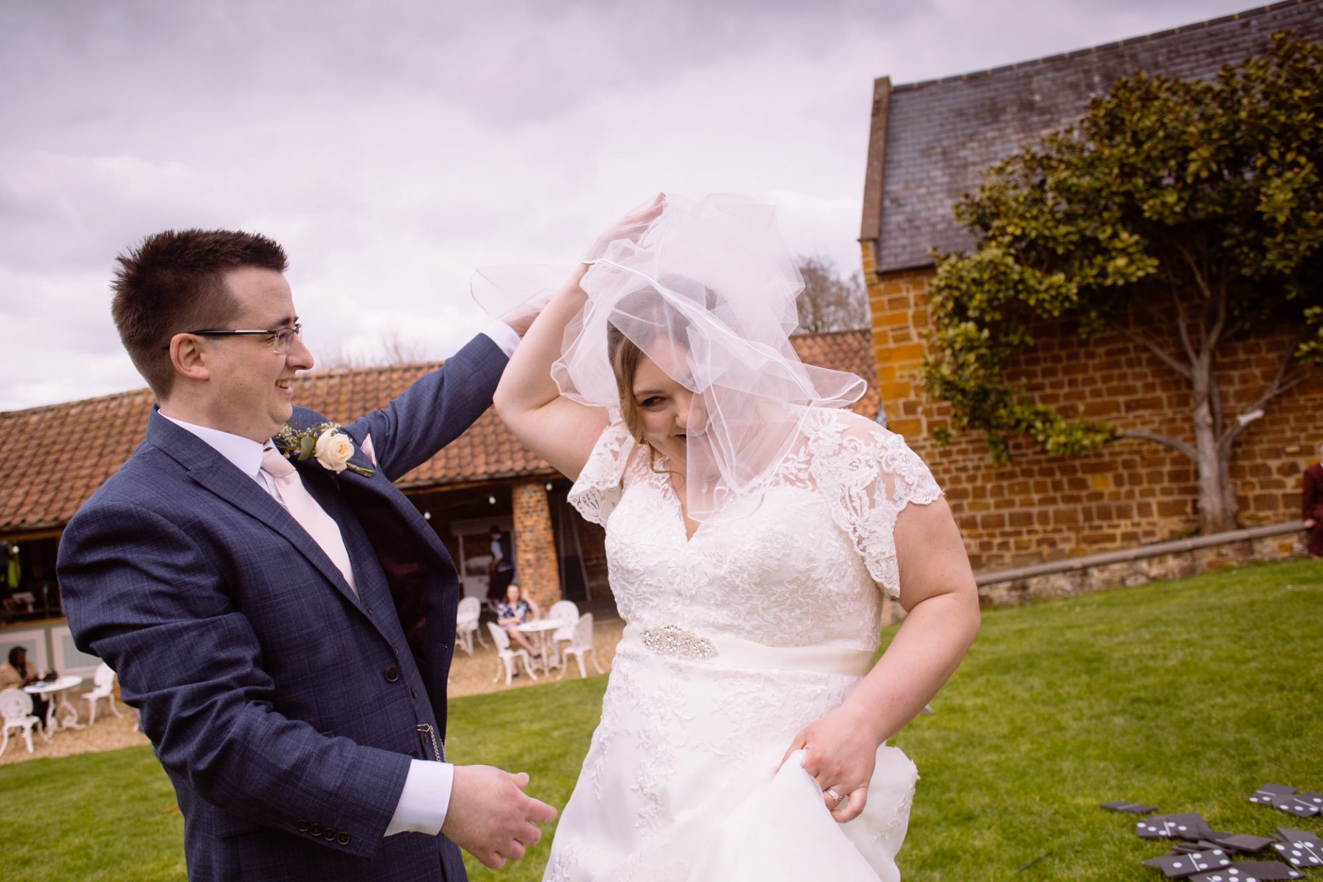 Maxine and Matt got lucky with the weather for their wedding at the picturesque The Barns at Hunsbury Hill. It was early April and things could have gone either way, but Matt told me he had it covered*. As it turned out though, the sun shone, the guests smiled, and joy was unconfined.