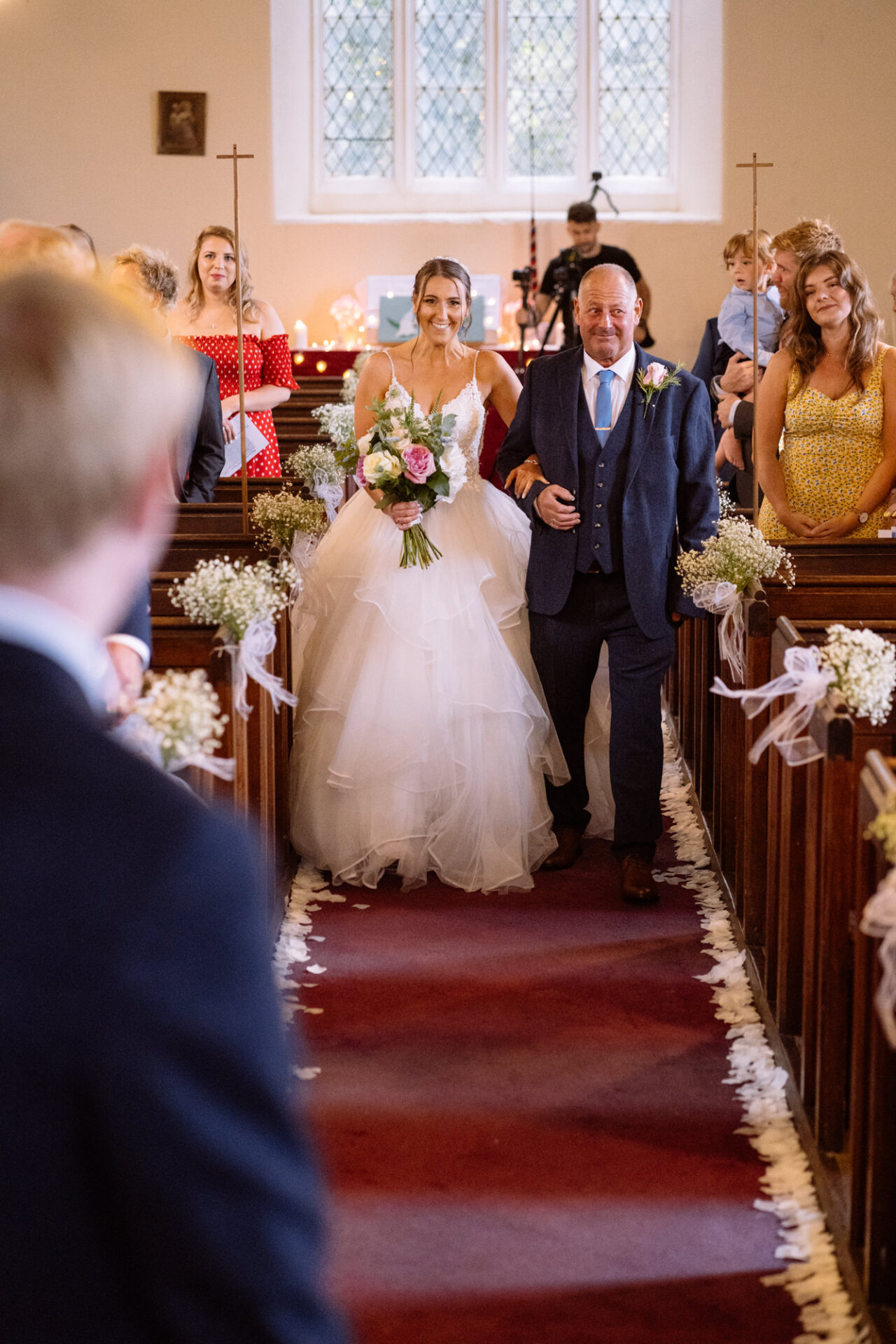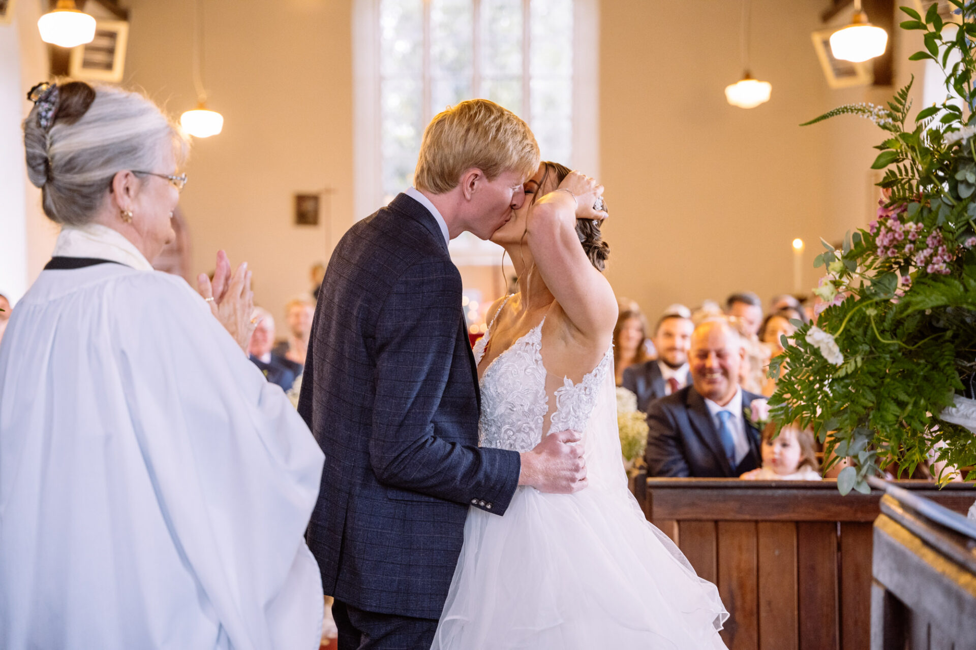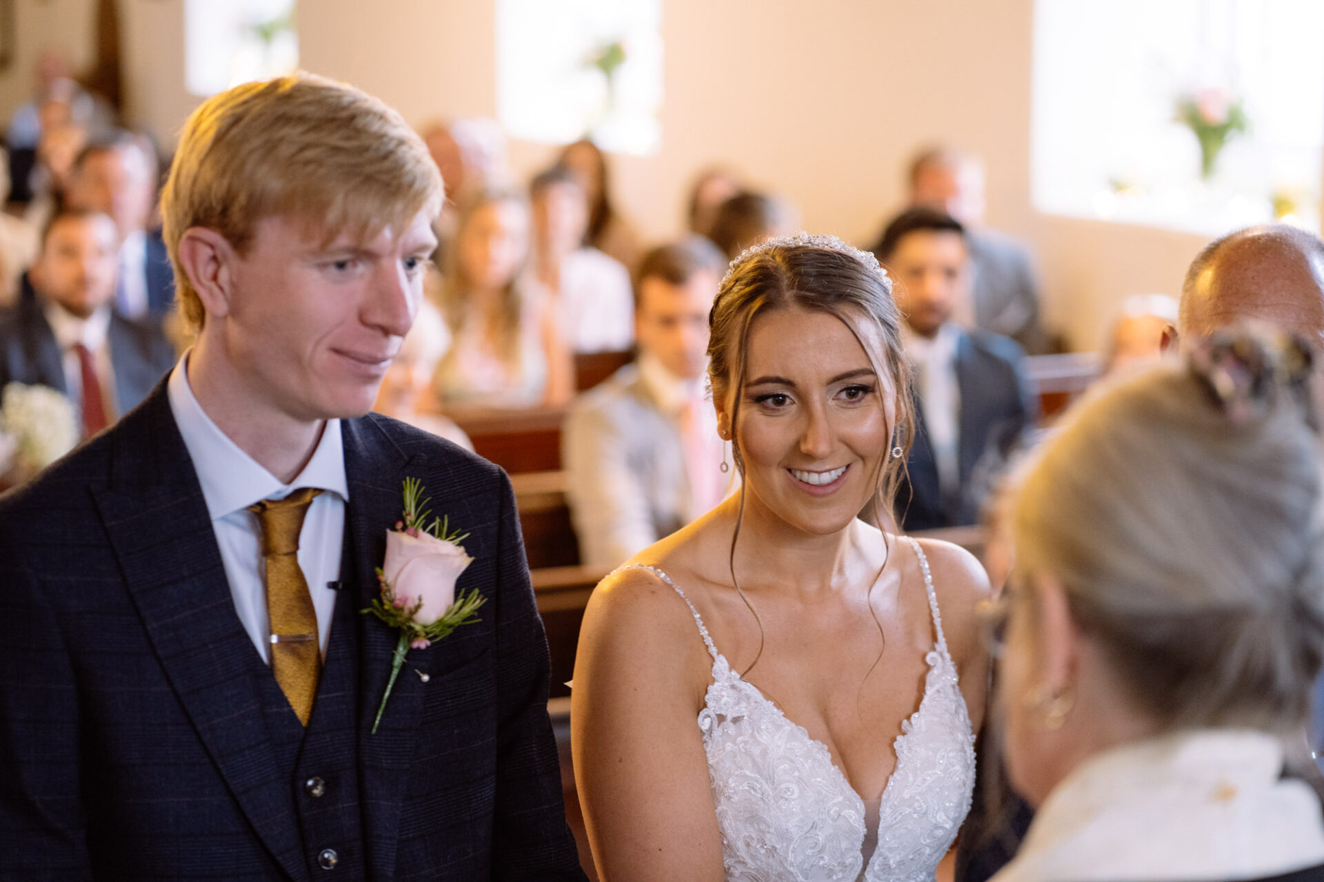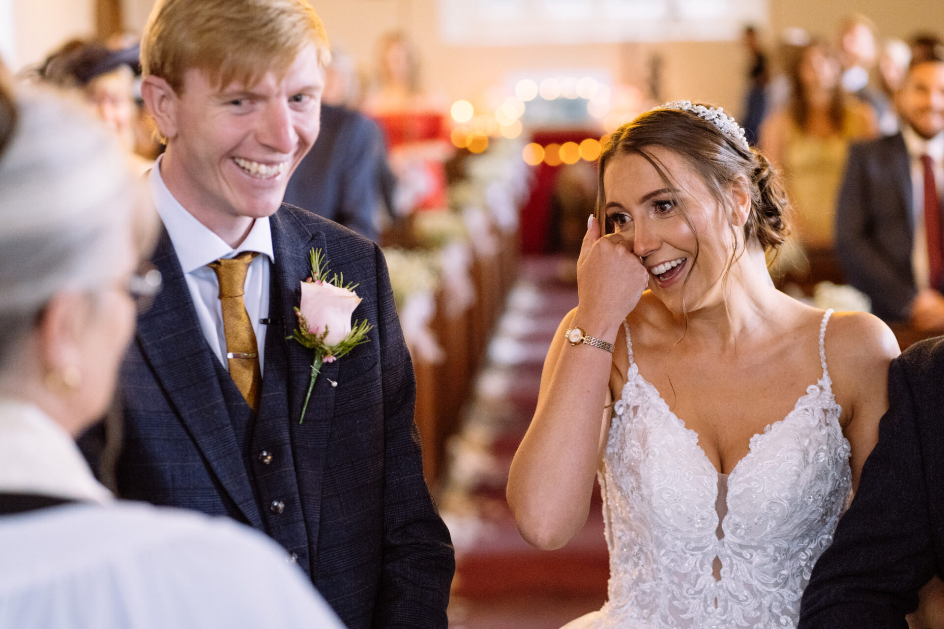 Natasha and James’ wedding service took place at Mount Hawke Church close to Cornwall’s North Coast. The church and it’s vicar are highly agreeable to wedding photographers. The bright, well lit church has big windows allowing lots of natural light. In addition, there are also the house lights giving extra illumination. Then there’s the Vicar herself*, who I found to be a lovely human! Whilst waiting for Natasha to arrive, we shared and few jokes and helped put James at his ease. All in all, I hope to return to photograph many a wedding here!