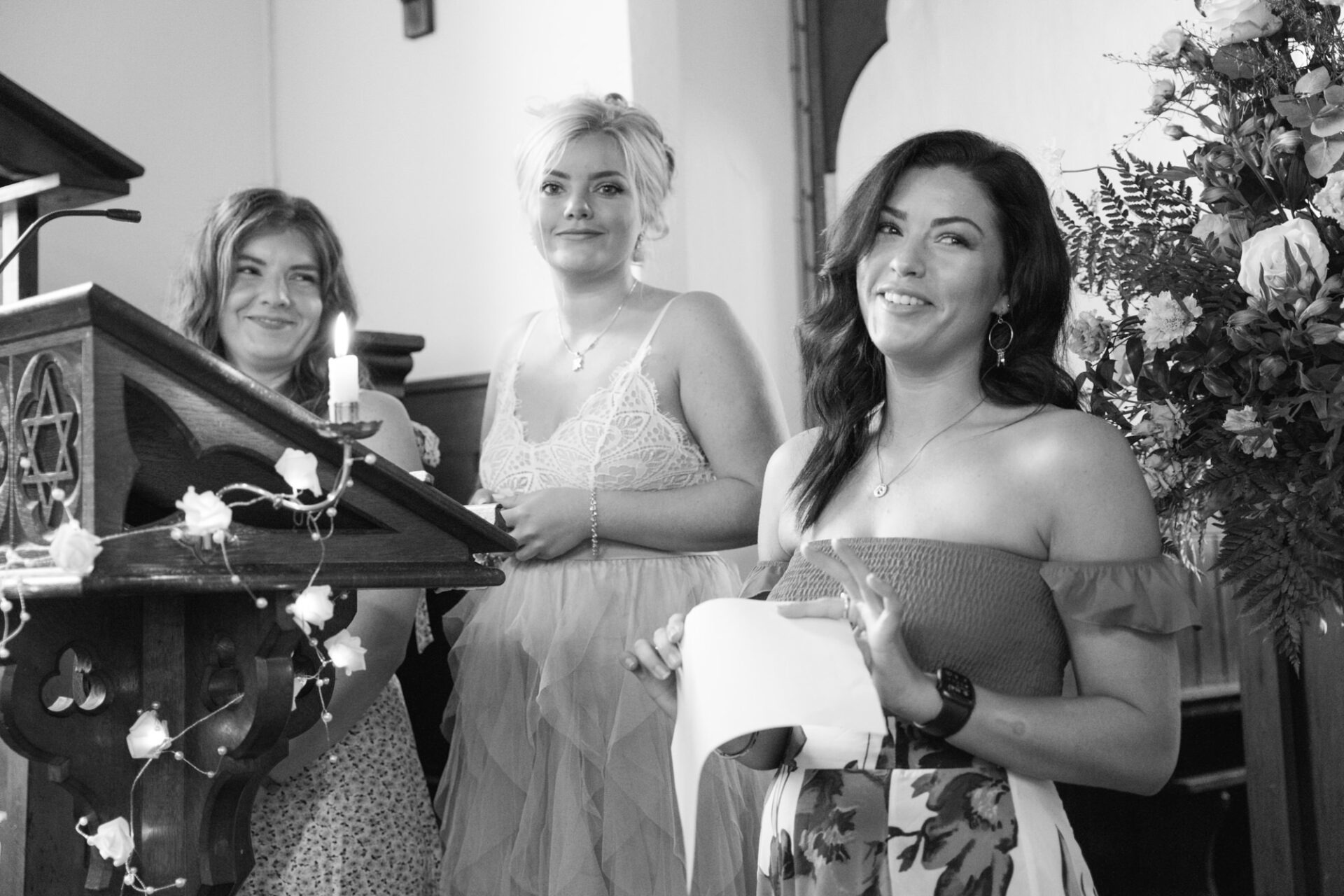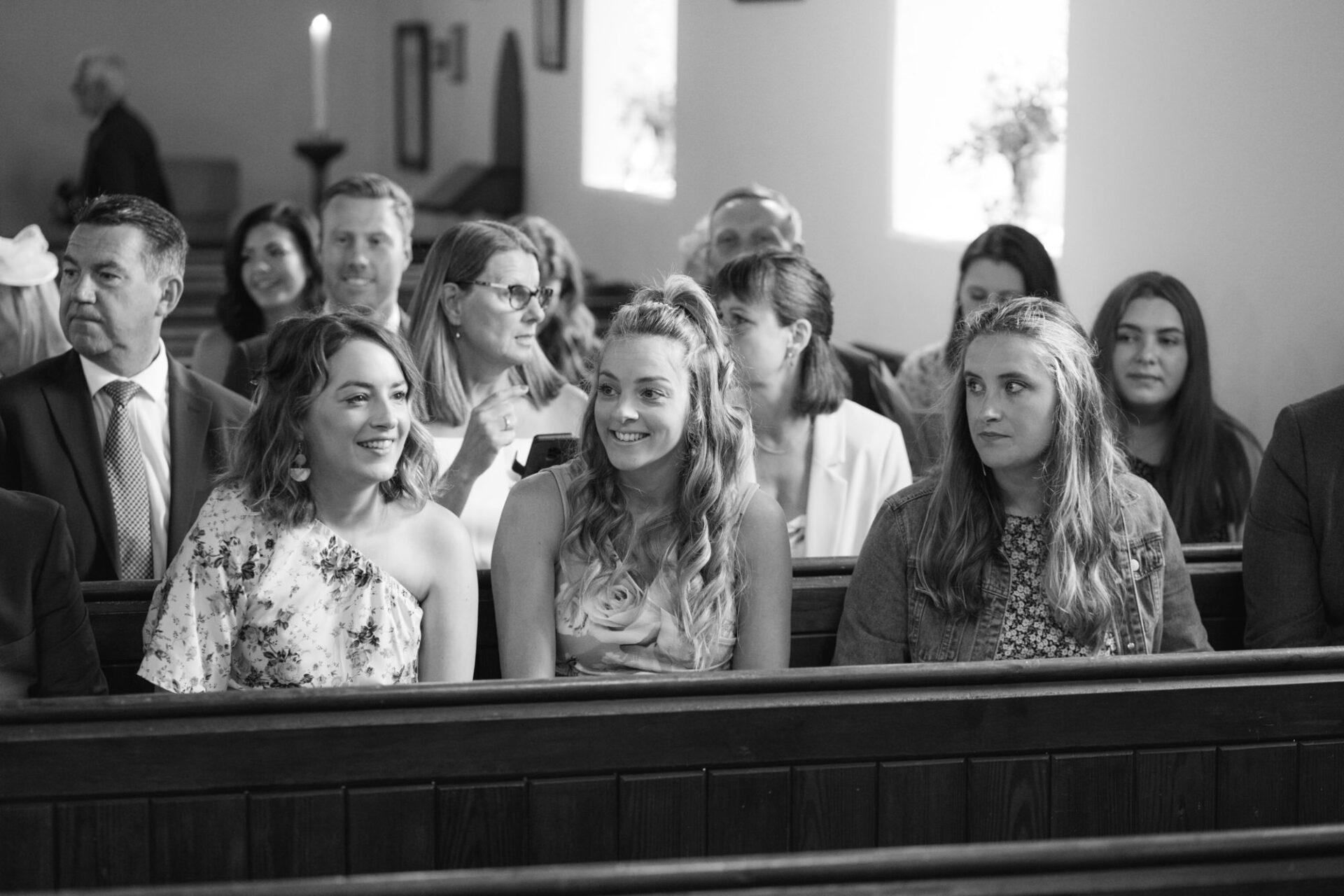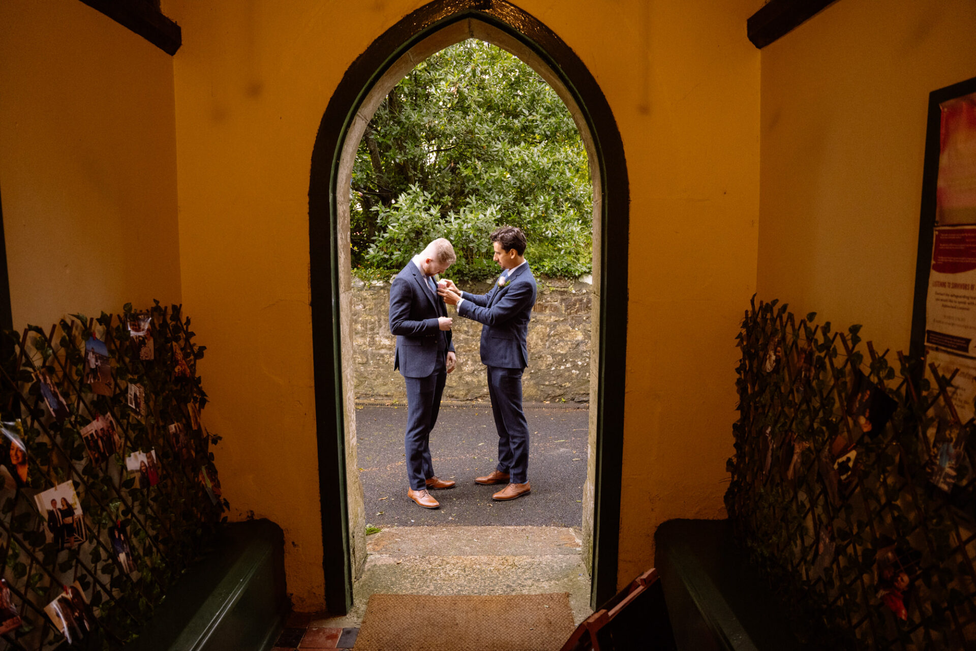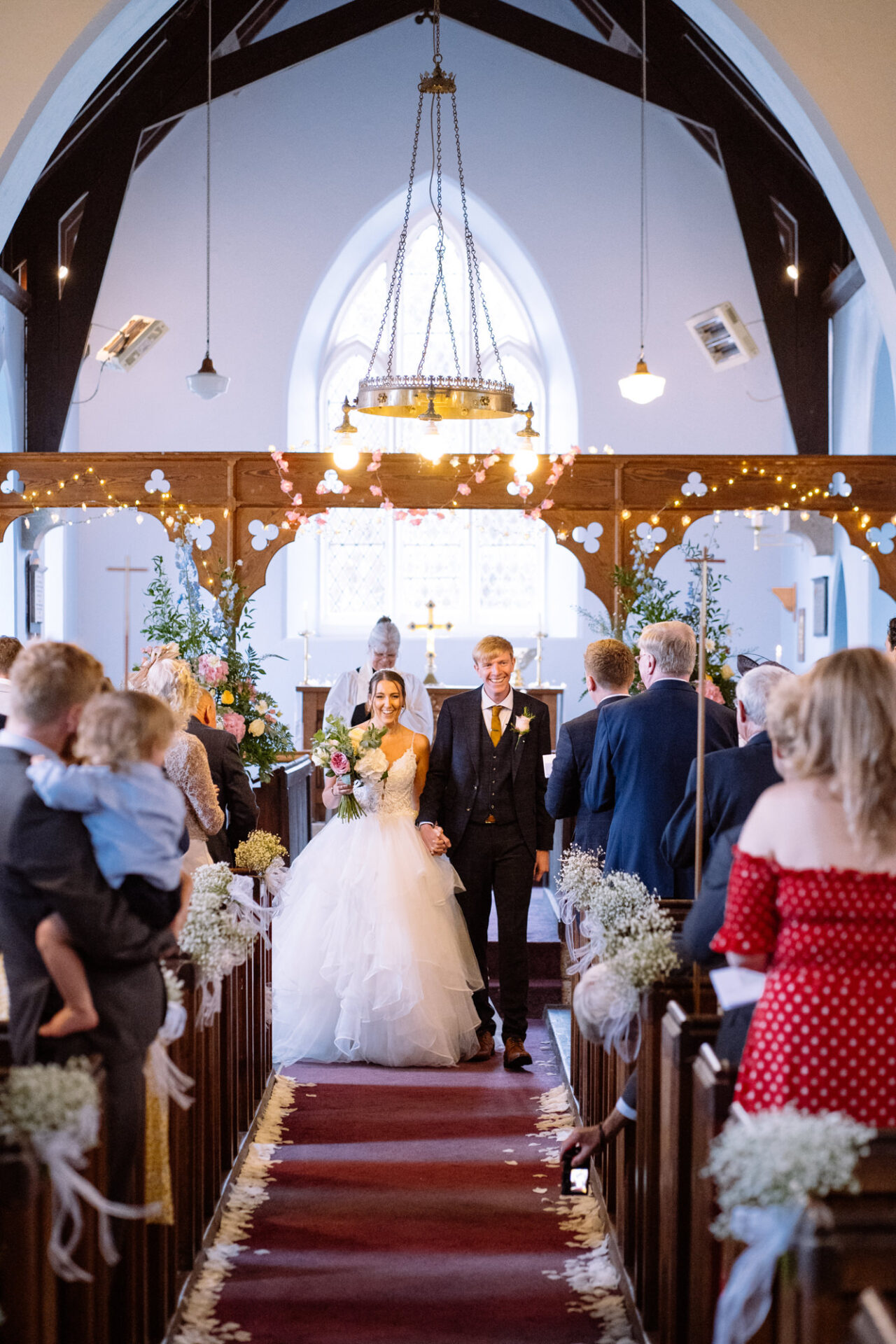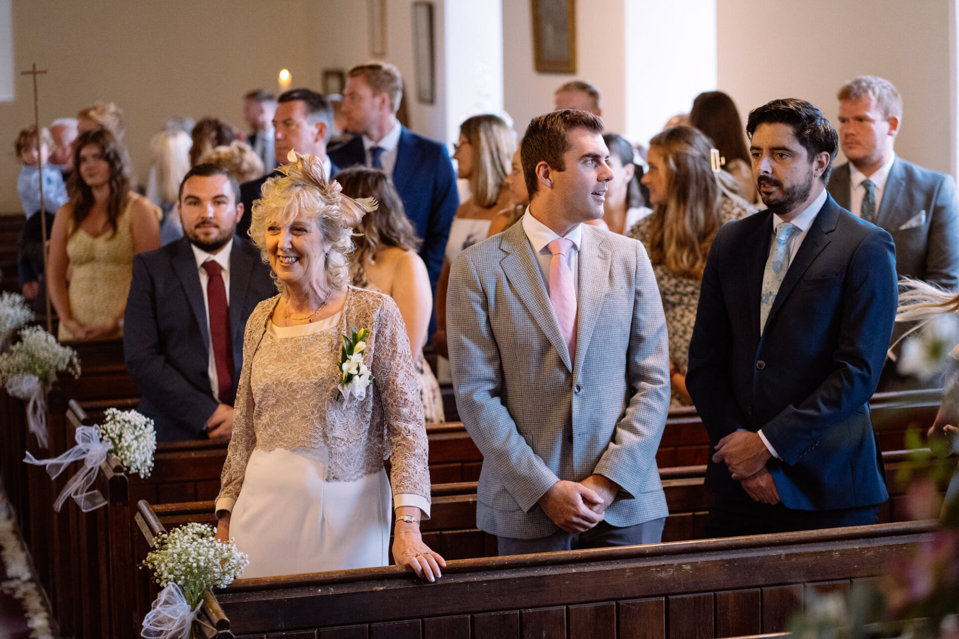 Natasha and James’ wedding service took place at Mount Hawke Church close to Cornwall’s North Coast. The church and it’s vicar are highly agreeable to wedding photographers. The bright, well lit church has big windows allowing lots of natural light. In addition, there are also the house lights giving extra illumination. Then there’s the Vicar herself*, who I found to be a lovely human! Whilst waiting for Natasha to arrive, we shared and few jokes and helped put James at his ease. All in all, I hope to return to photograph many a wedding here!