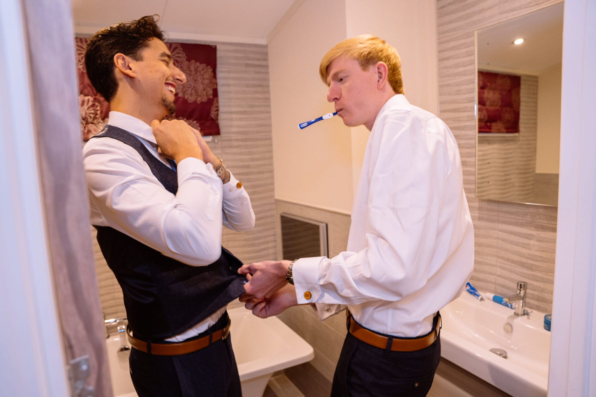 During the entirety of Natasha and James’ Chycara wedding day, the crew from I Do Film Weddings were in the process of filming a wedding video. What was special about this one was that it included ‘Marryoke’. As the name suggests, there is an element of singing along to music. Indeed, the happy couple choose one particular wedding song. At various points throughout the day, the couple and guests are filmed singing various lines from said piece of music. This is all then edited together to form a unique video. As you can imagine, the amount of effort put into the singing can increase alongside the levels of Champagne and Prosecco.