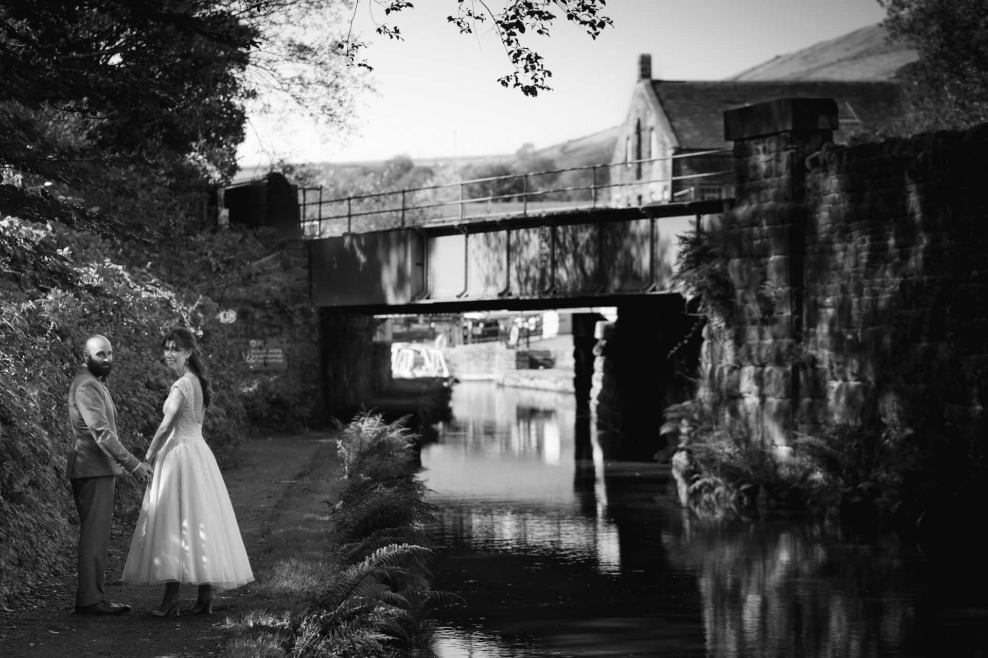 I made full use of said surrounding countryside for photography purposes! Rosie, Ben and I moseyed down the lush, green canal and river valley in both directions for couple portraits. Indeed, the valley appeared so lush and green in the late September sunshine I could hardly contain myself! I can’t wait to shoot another Standedge Tunnel Wedding!