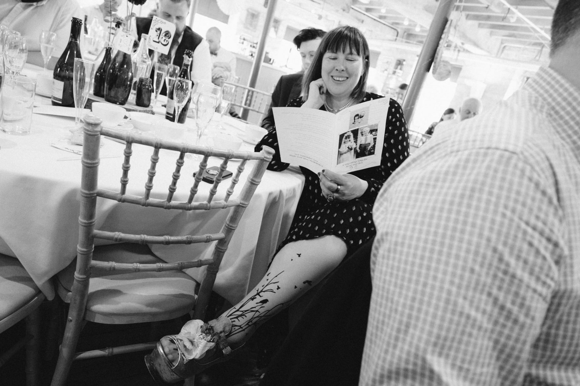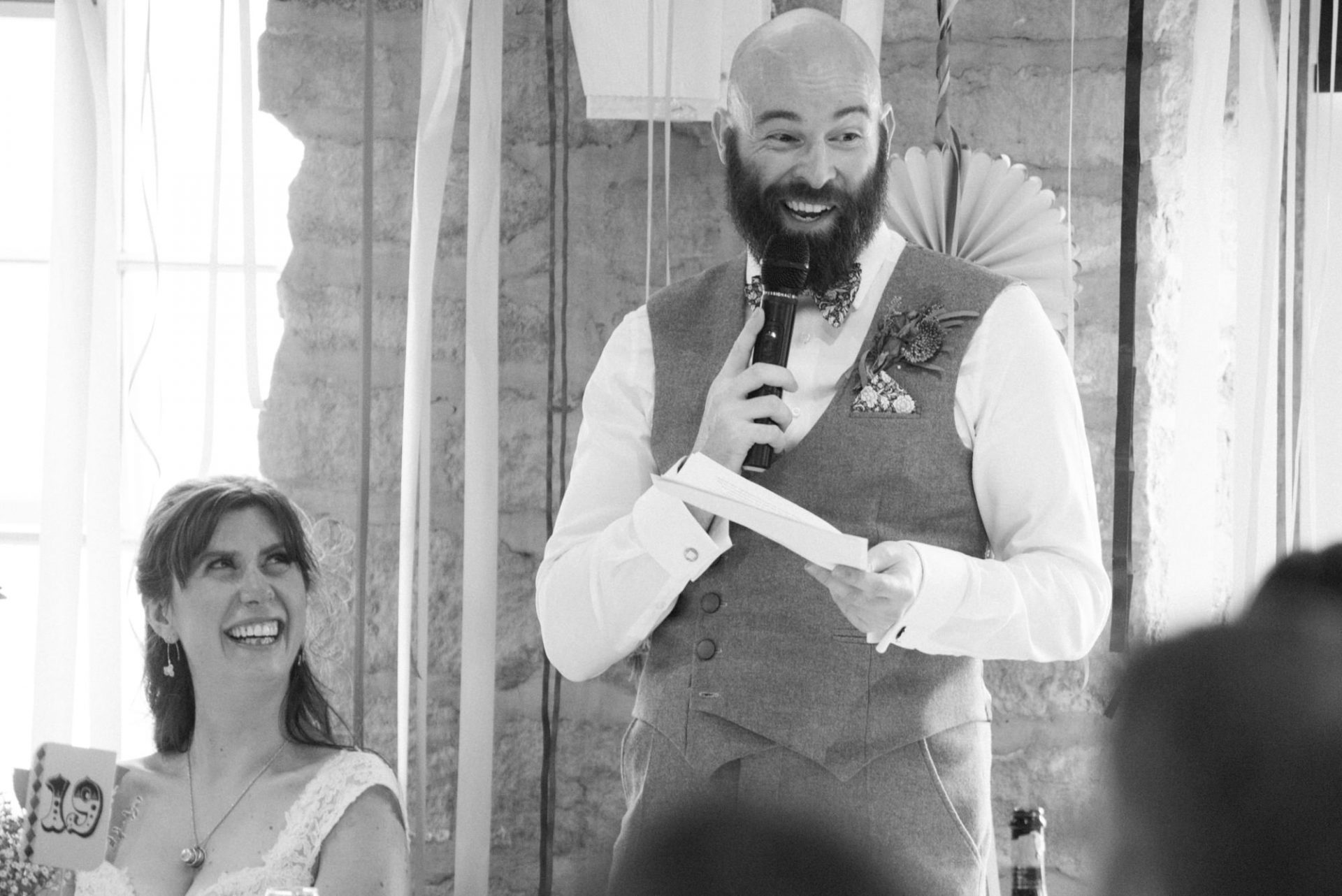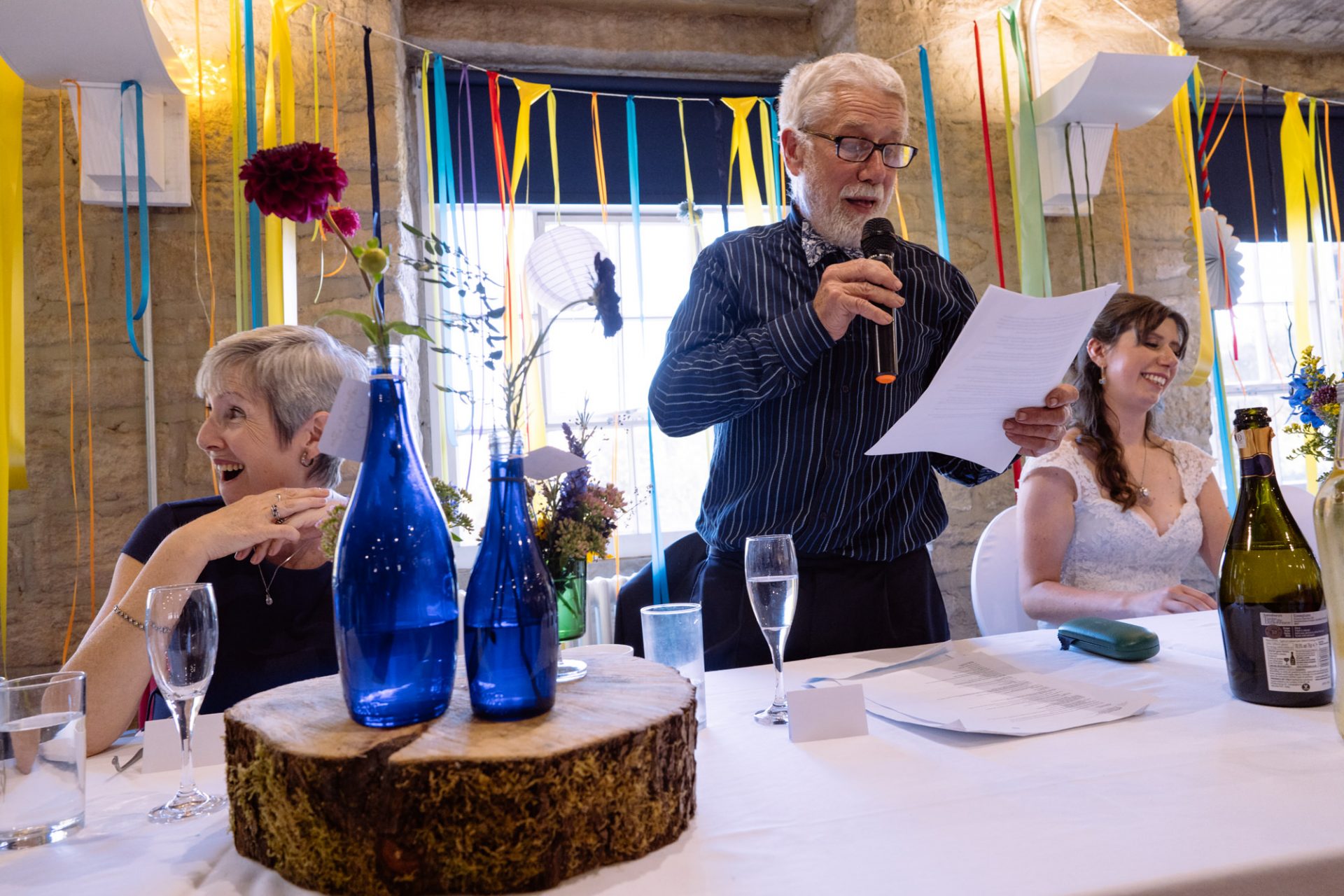 There were many speeches at this wedding. Therefore, I shouldn’t have been surpised when the mother of the groom took the stand. Firstly, she had the assembled masses rolling in the aisles with unexpected anecdotes. Secondly, mystery song sheets were handed around. Thirdly, I snapped away feverishly as everyone stood and belted their hearts out to a rendition performed by Rosie and Ben’s best friends.