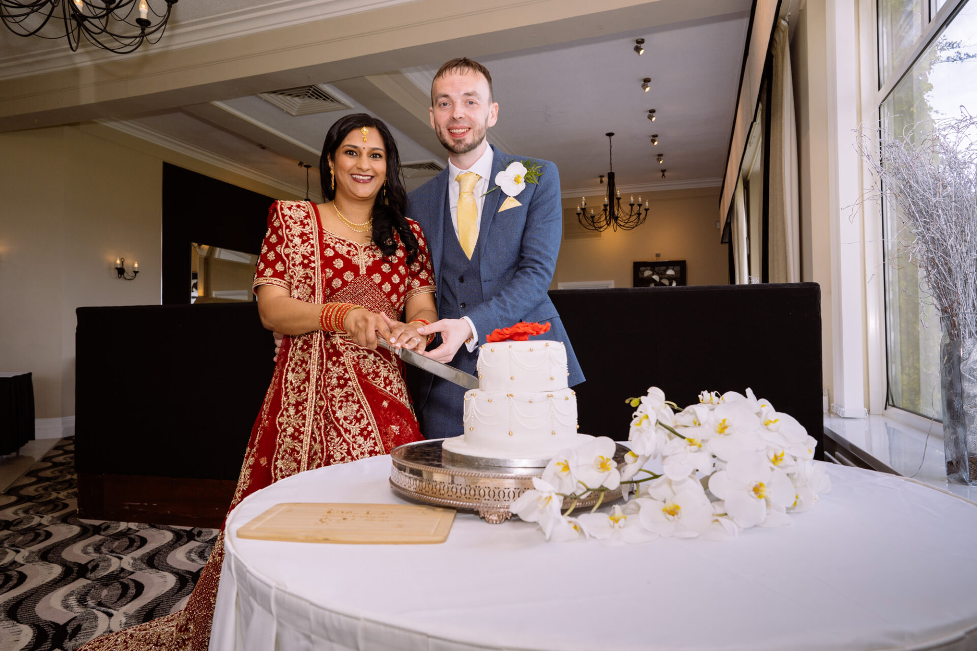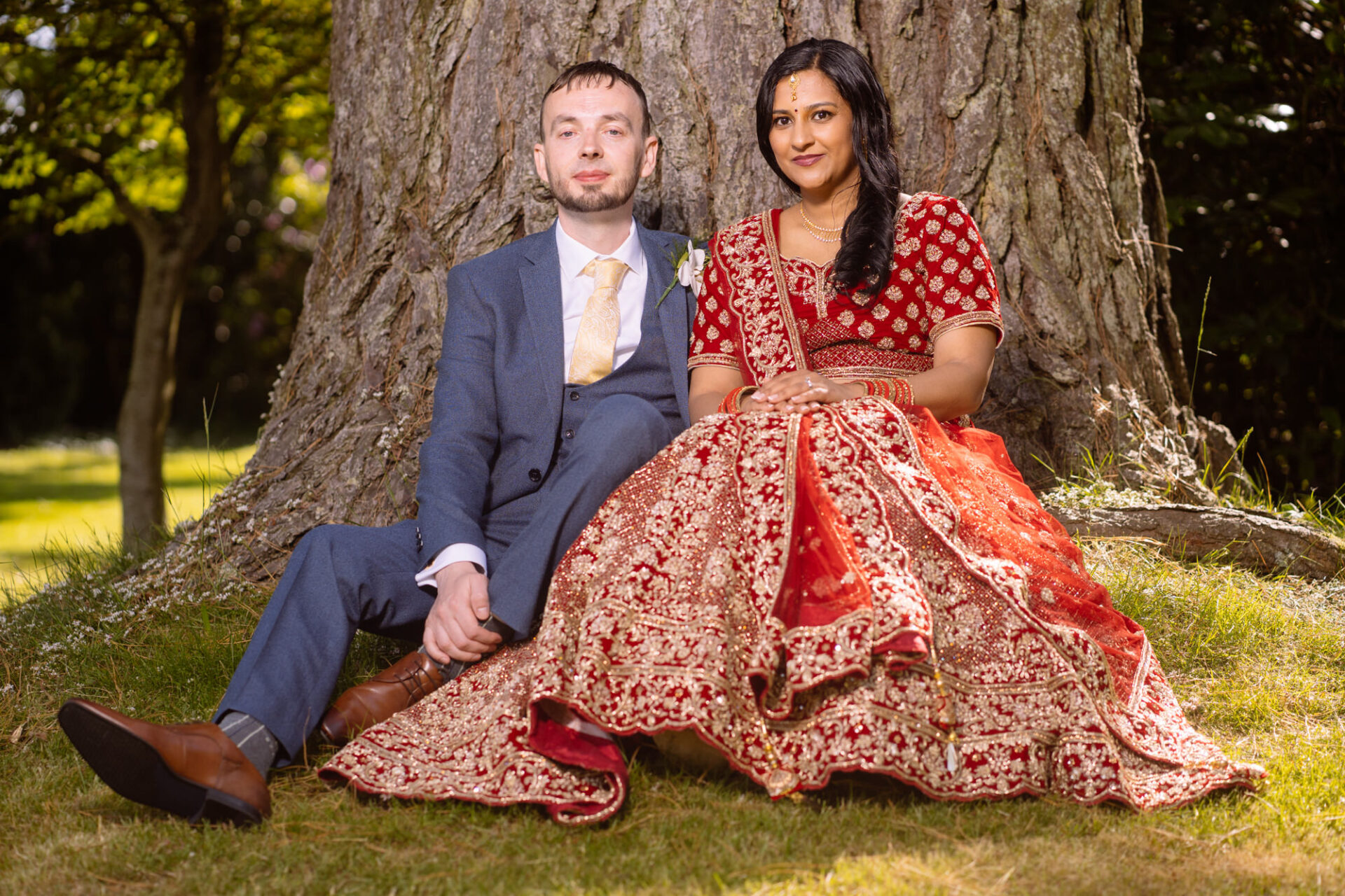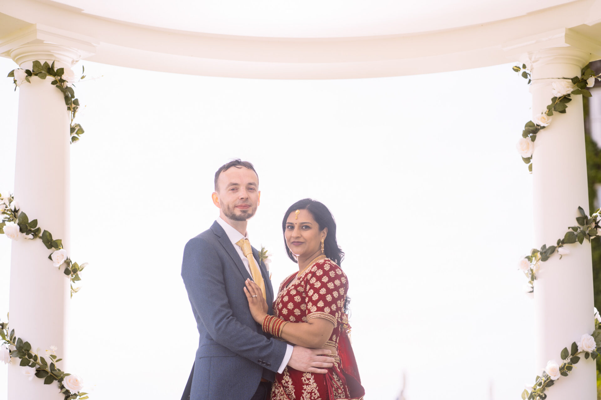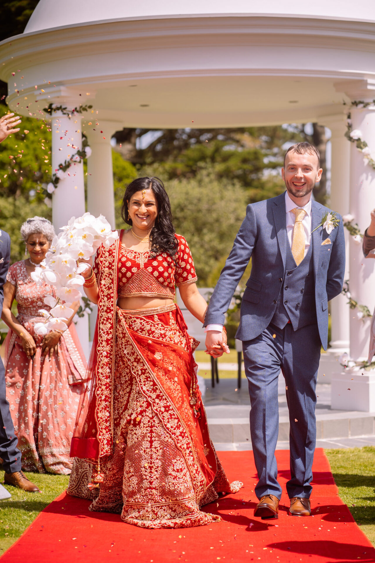 Ruby and David’s wedding happened during the Covid rule of 30 people. Despite this, the Indian Sikh wedding was still a blaze of colour! Sikh brides tend to wear an ornate, decorative and exquisitely embroidered set of Salwar Kameez. Ruby’s Lehenga Choli wedding dress was an incredible deep red in colour inkeeping with tradition. This dress has 3 parts, and is incredibly detailed and embellished. It is also very heavy! I asked Ruby to hold the dress up for a few photos knowing she couldn’t manage it for long!