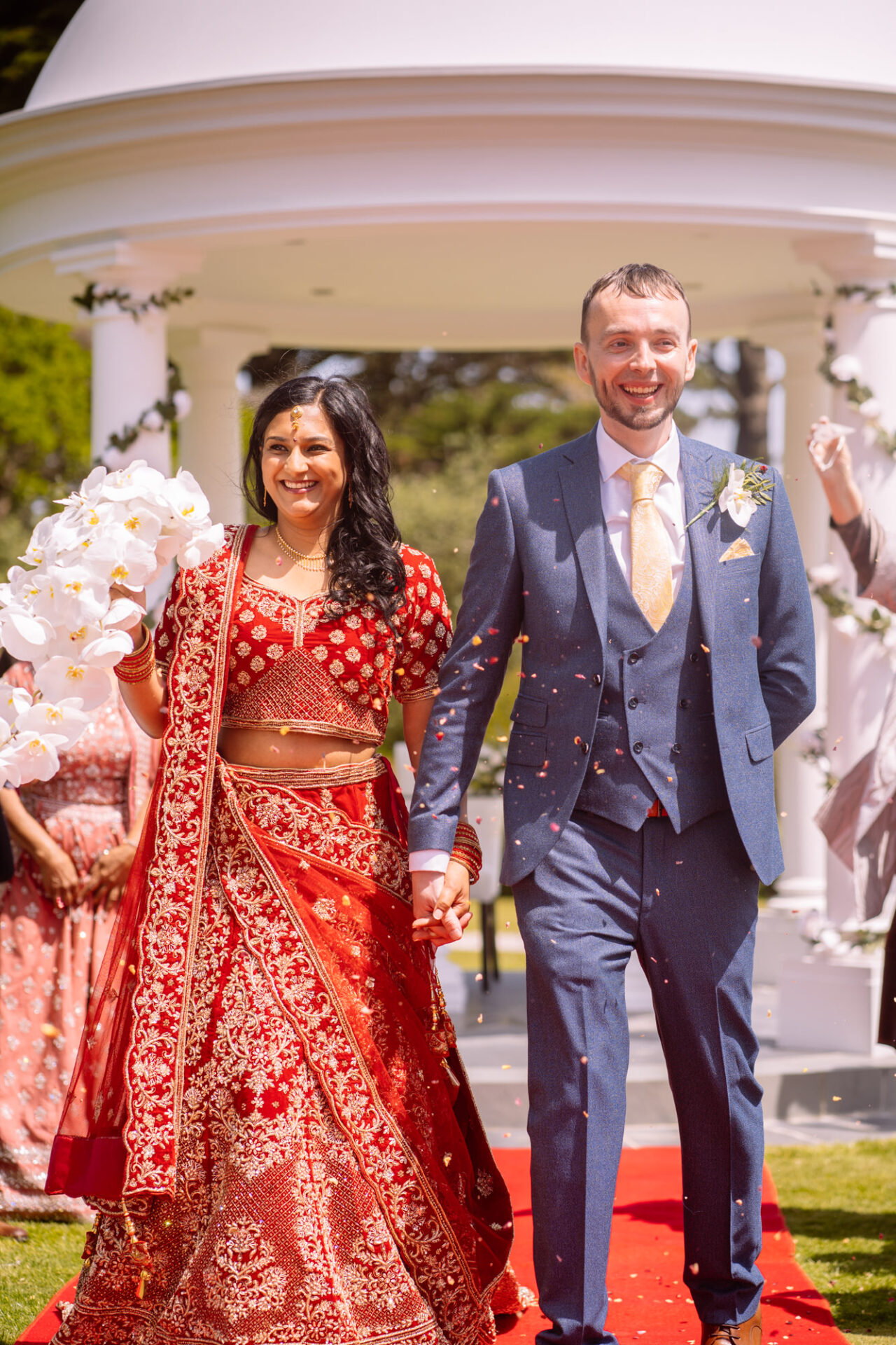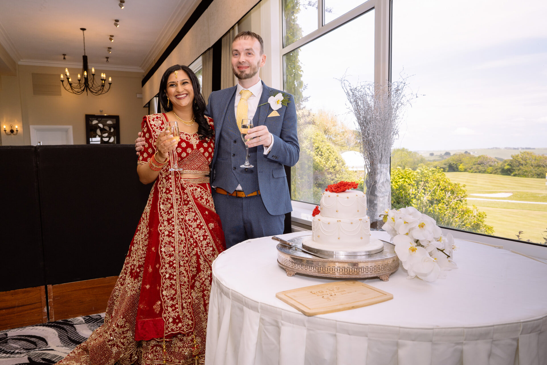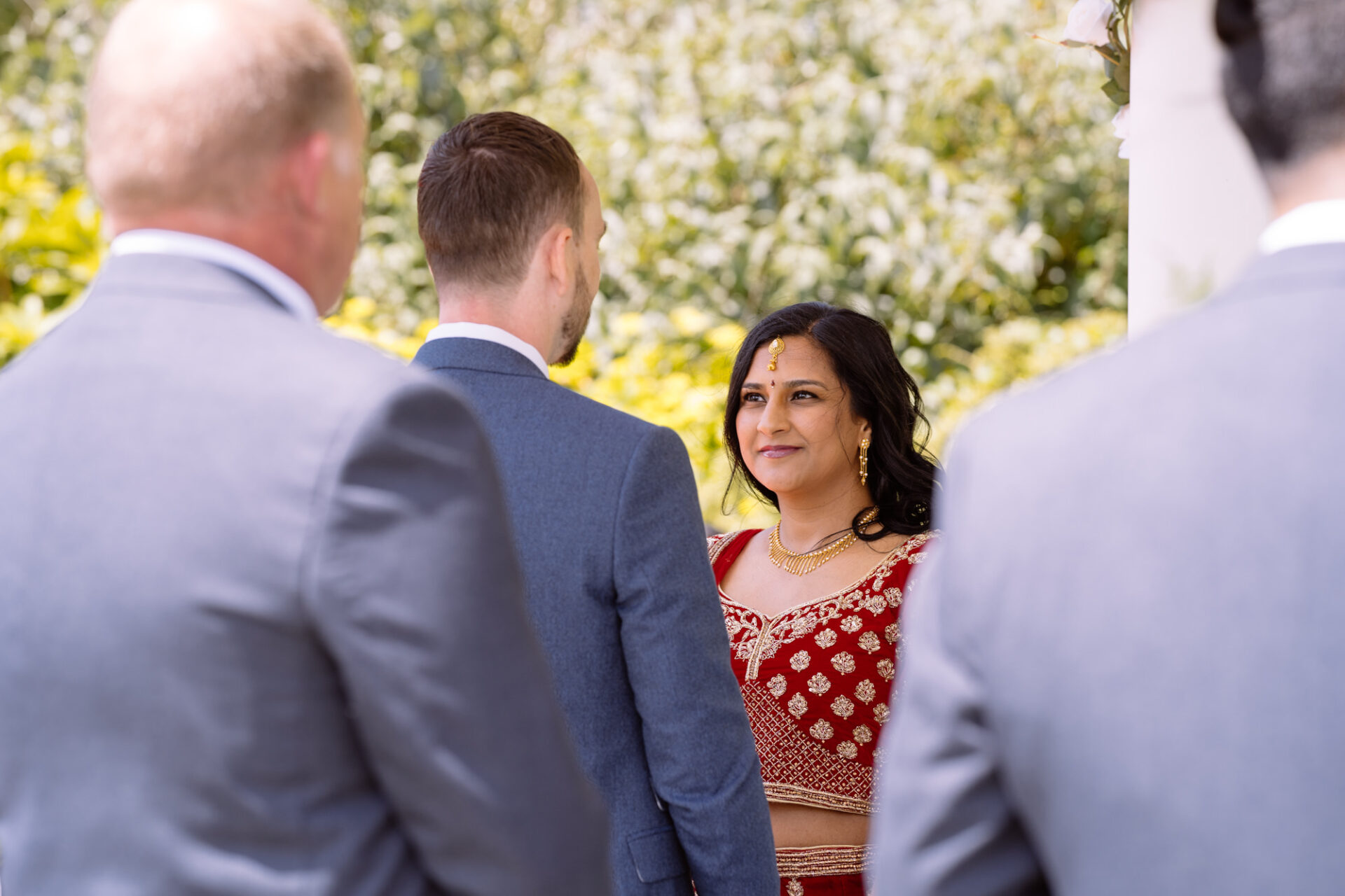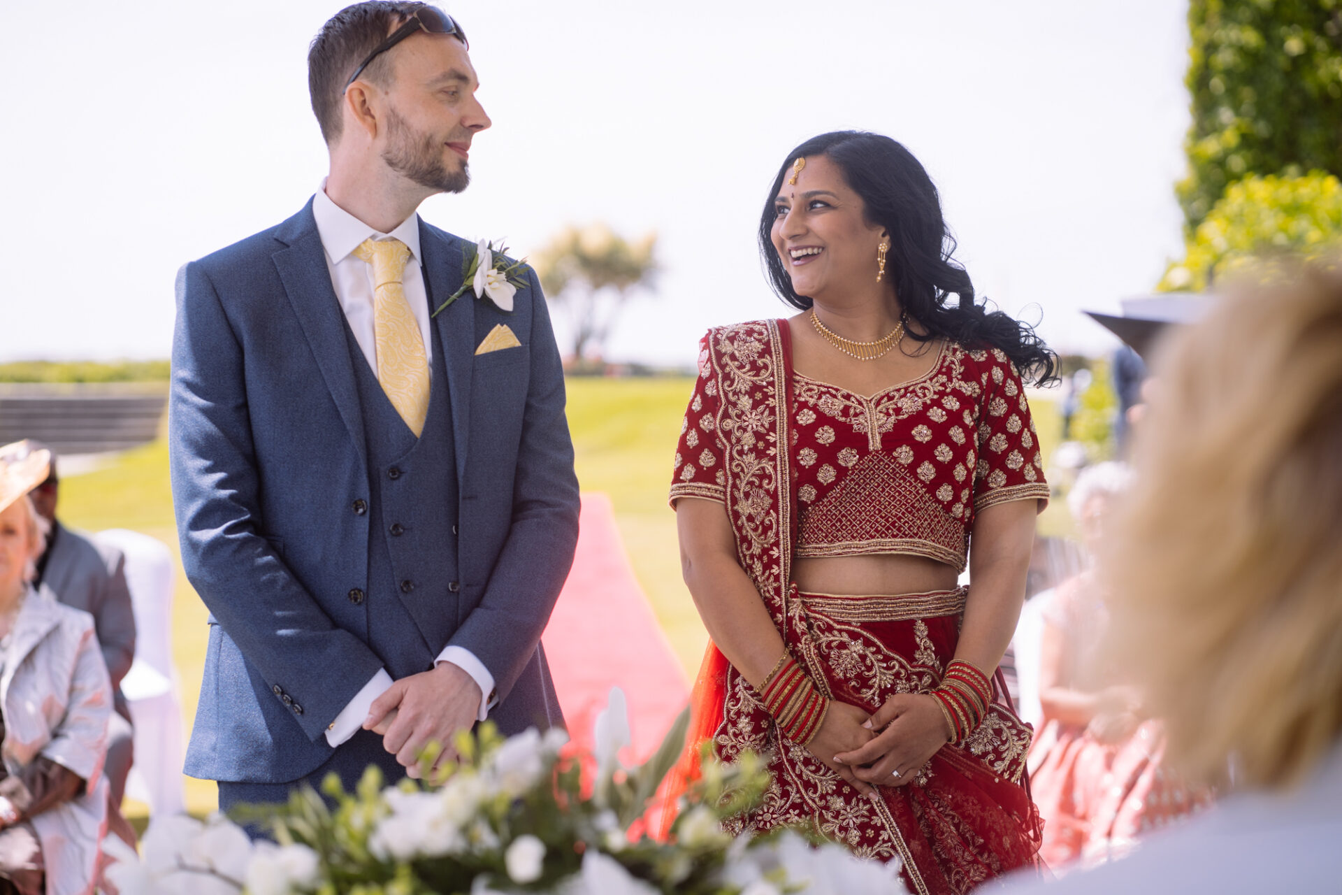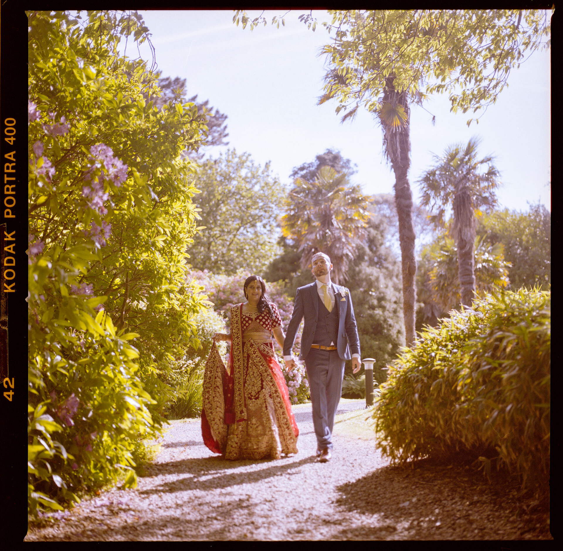 Ruby and David’s wedding happened during the Covid rule of 30 people. Despite this, the Indian Sikh wedding was still a blaze of colour! Sikh brides tend to wear an ornate, decorative and exquisitely embroidered set of Salwar Kameez. Ruby’s Lehenga Choli wedding dress was an incredible deep red in colour inkeeping with tradition. This dress has 3 parts, and is incredibly detailed and embellished. It is also very heavy! I asked Ruby to hold the dress up for a few photos knowing she couldn’t manage it for long!