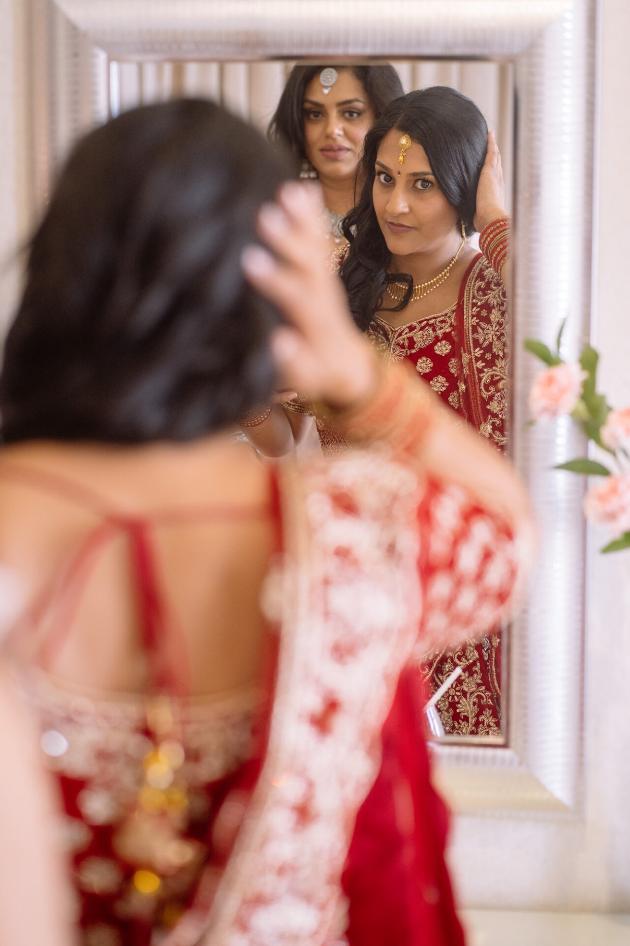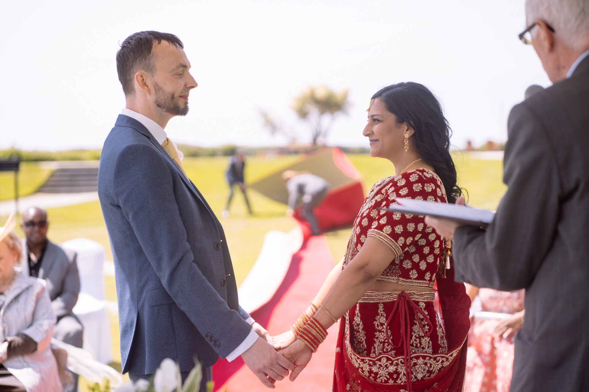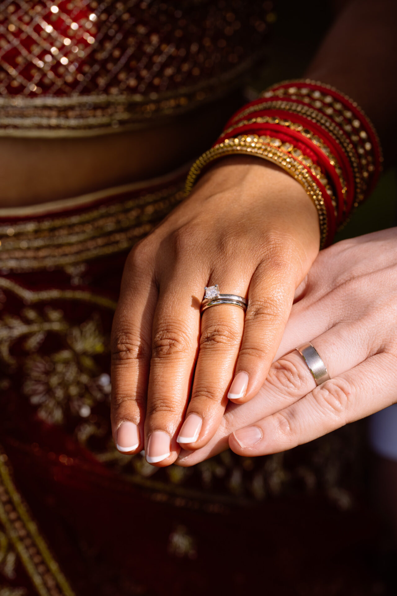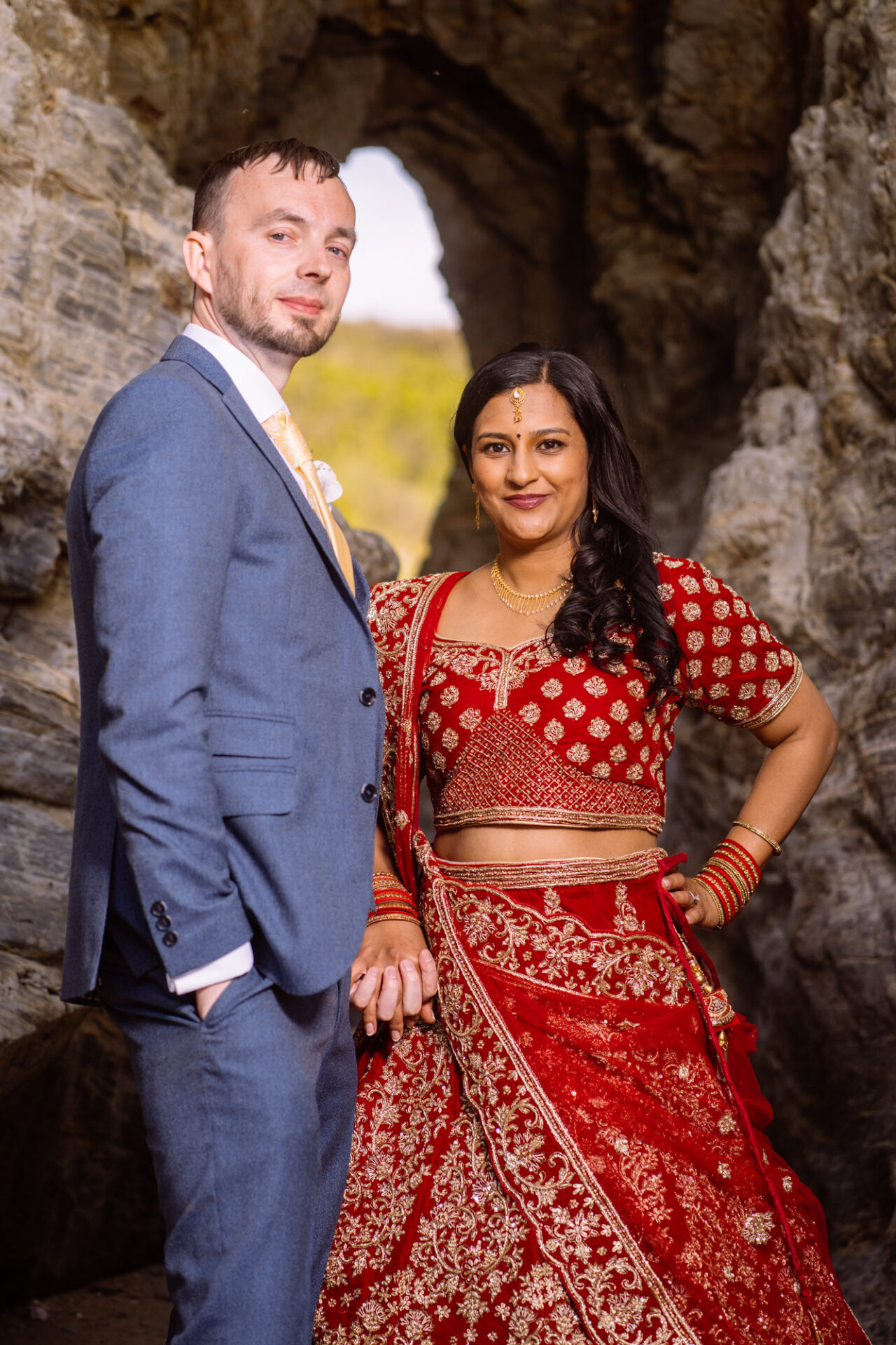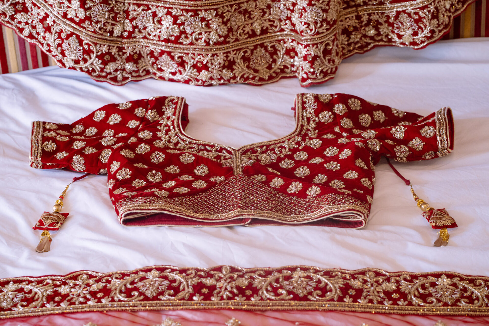 Ruby and David’s wedding happened during the Covid rule of 30 people. Despite this, the Indian Sikh wedding was still a blaze of colour! Sikh brides tend to wear an ornate, decorative and exquisitely embroidered set of Salwar Kameez. Ruby’s Lehenga Choli wedding dress was an incredible deep red in colour inkeeping with tradition. This dress has 3 parts, and is incredibly detailed and embellished. It is also very heavy! I asked Ruby to hold the dress up for a few photos knowing she couldn’t manage it for long!