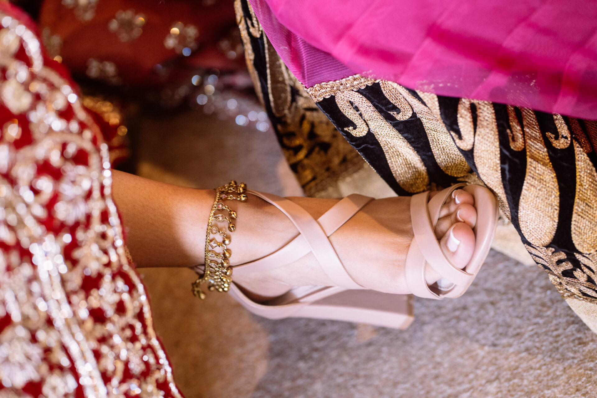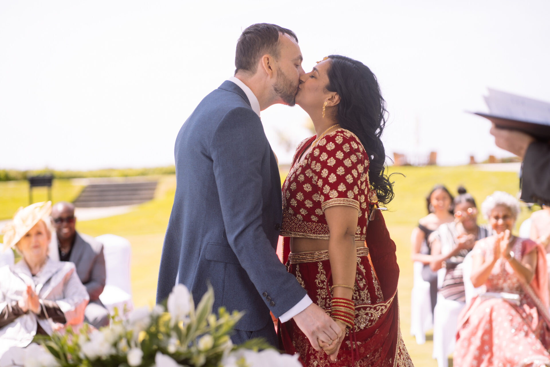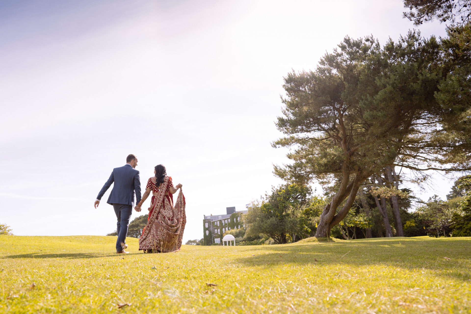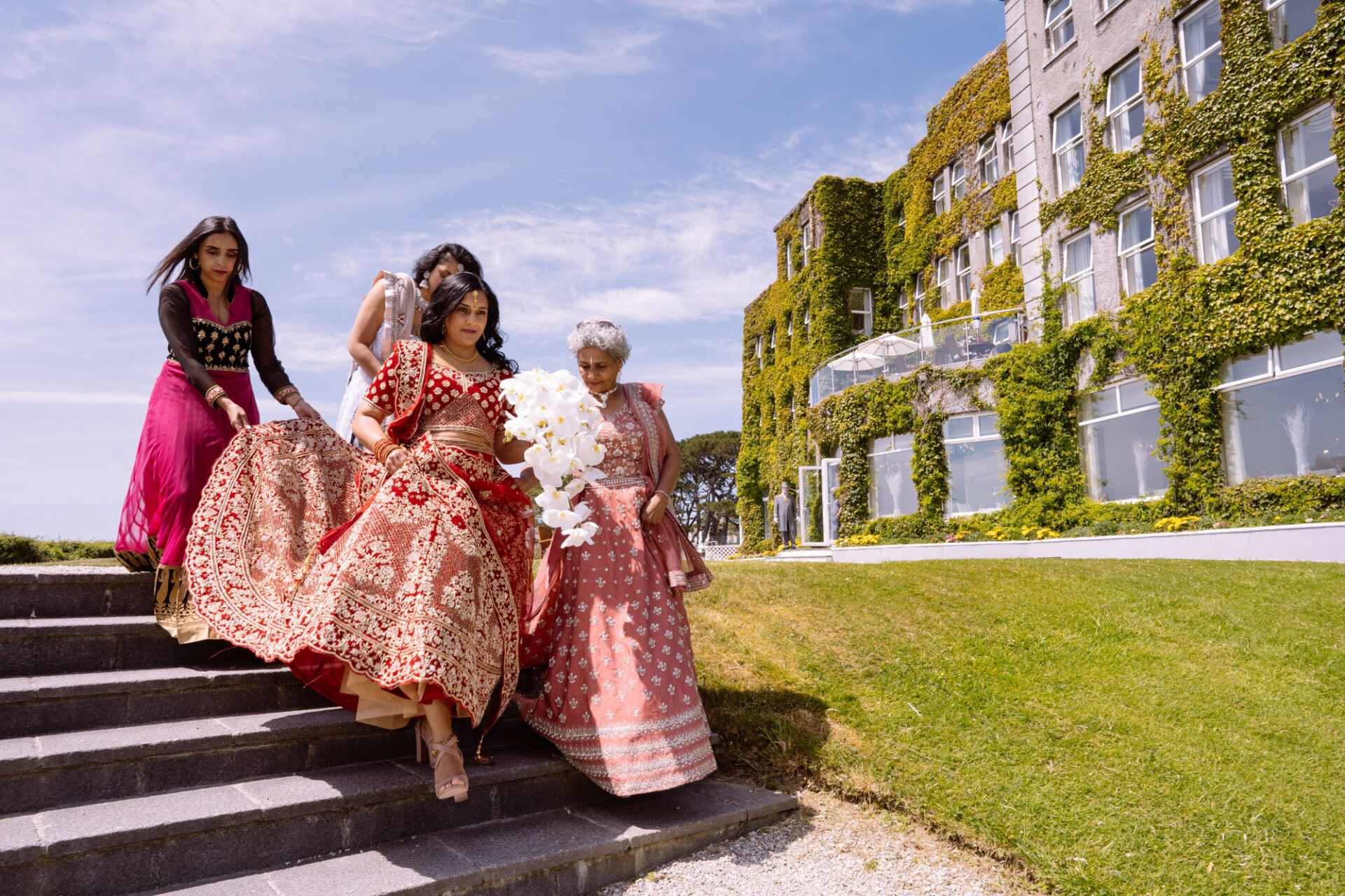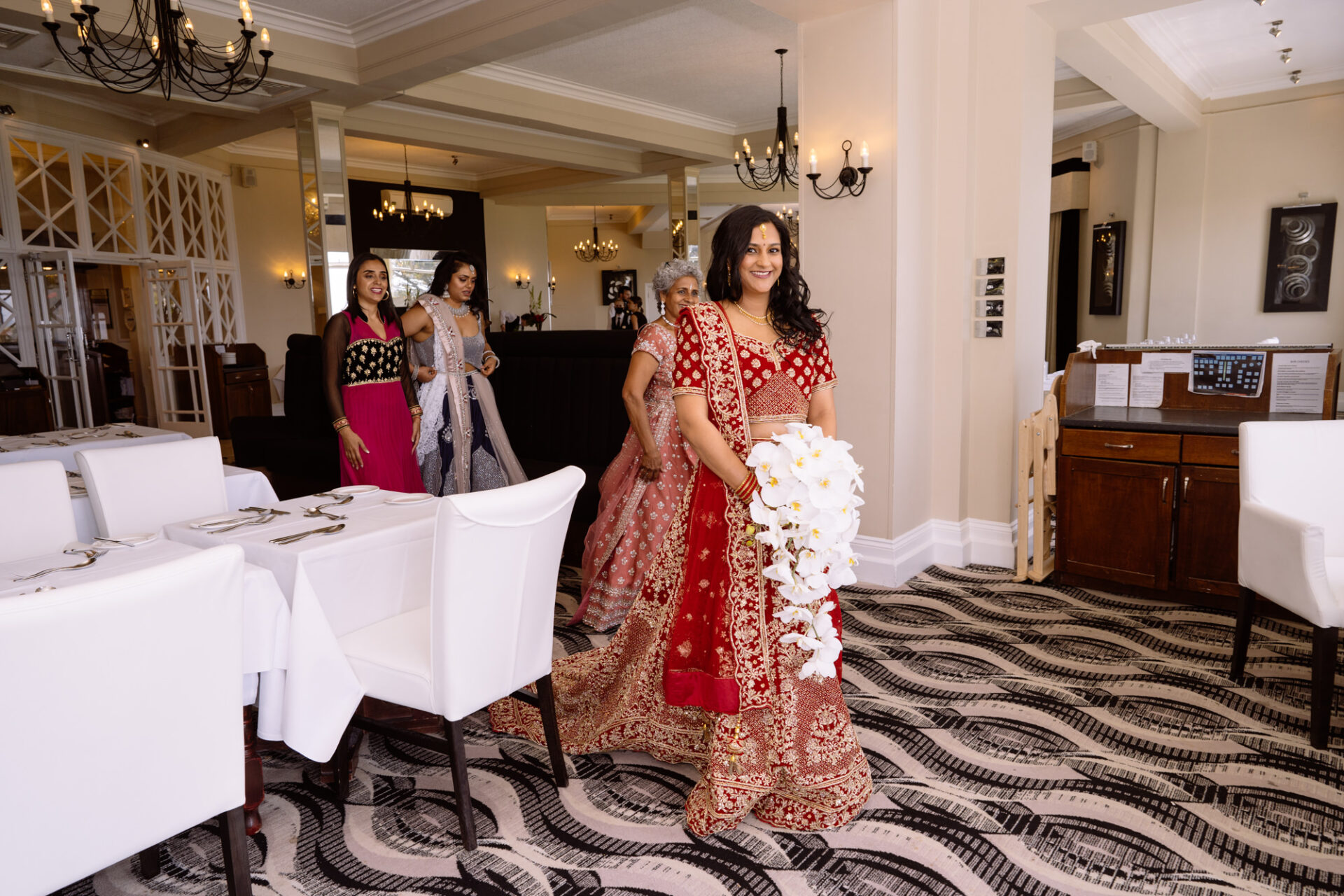 Ruby and David’s wedding happened during the Covid rule of 30 people. Despite this, the Indian Sikh wedding was still a blaze of colour! Sikh brides tend to wear an ornate, decorative and exquisitely embroidered set of Salwar Kameez. Ruby’s Lehenga Choli wedding dress was an incredible deep red in colour inkeeping with tradition. This dress has 3 parts, and is incredibly detailed and embellished. It is also very heavy! I asked Ruby to hold the dress up for a few photos knowing she couldn’t manage it for long!