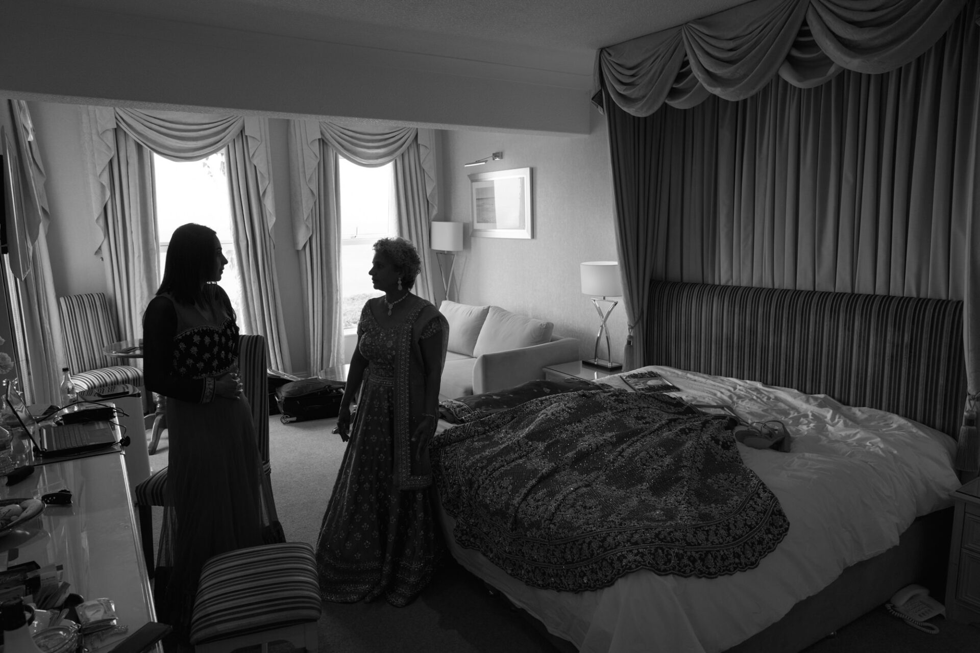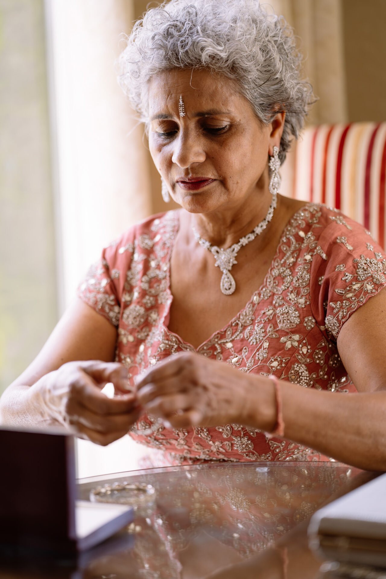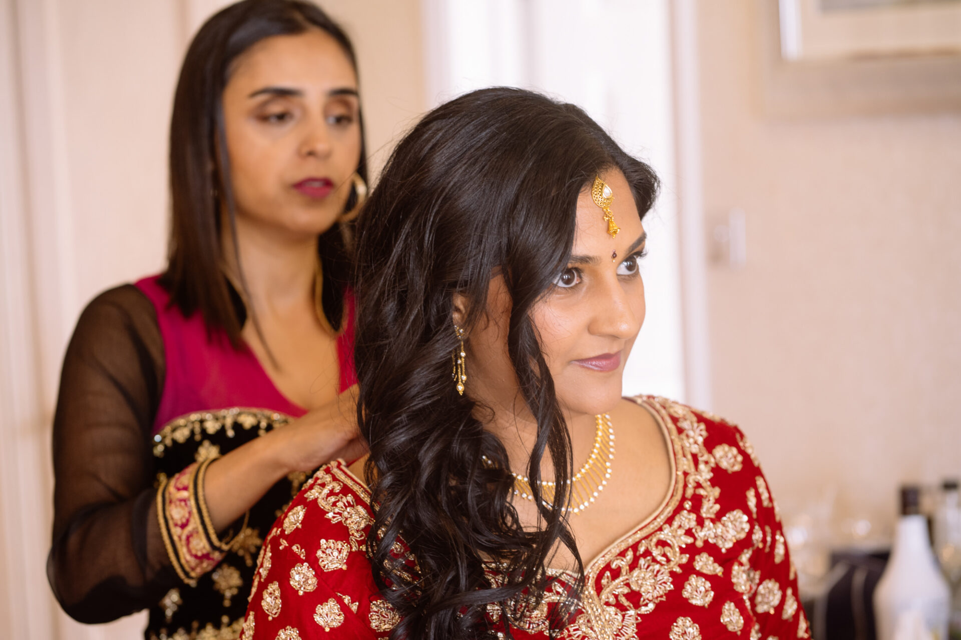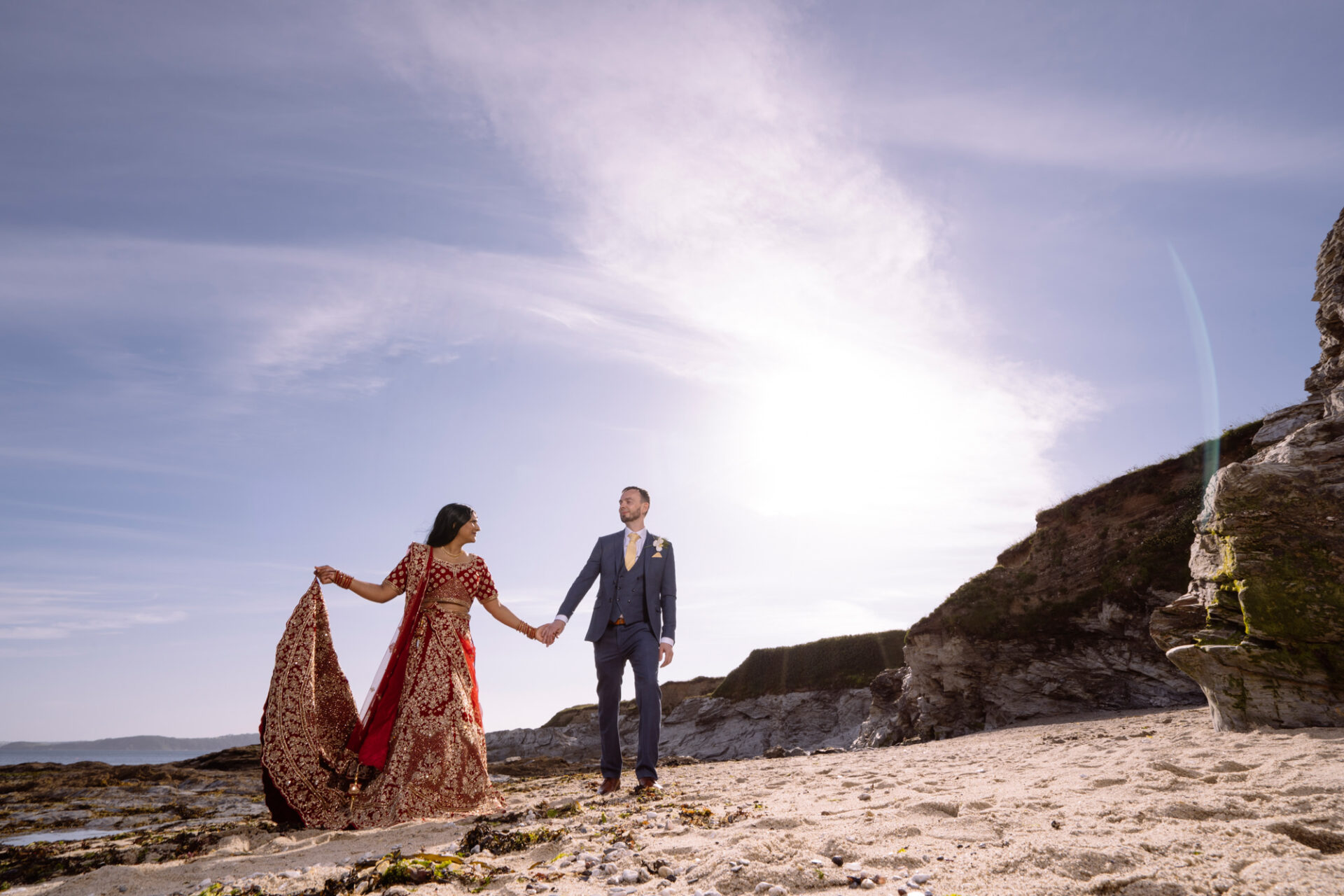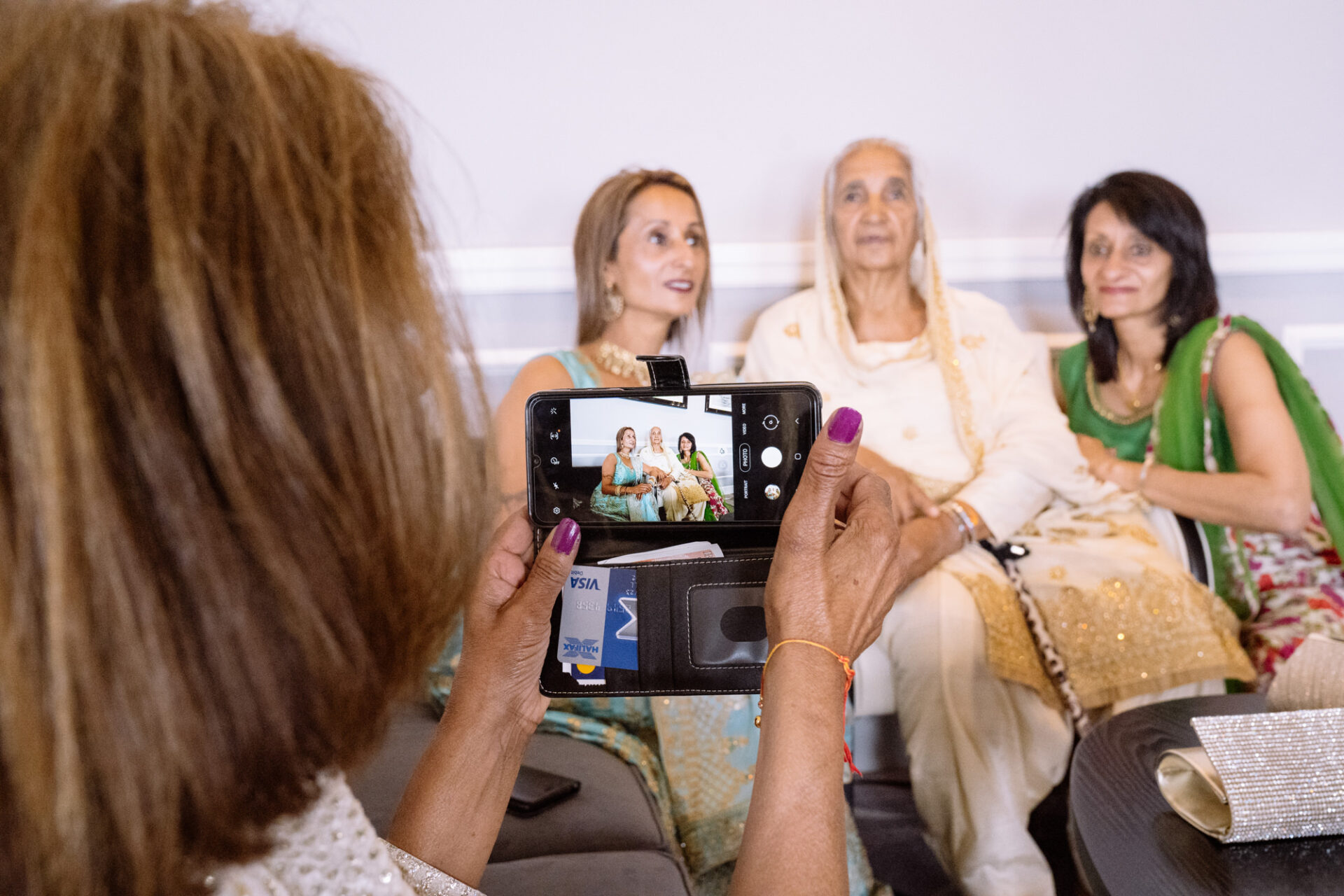 Ruby and David’s wedding happened during the Covid rule of 30 people. Despite this, the Indian Sikh wedding was still a blaze of colour! Sikh brides tend to wear an ornate, decorative and exquisitely embroidered set of Salwar Kameez. Ruby’s Lehenga Choli wedding dress was an incredible deep red in colour inkeeping with tradition. This dress has 3 parts, and is incredibly detailed and embellished. It is also very heavy! I asked Ruby to hold the dress up for a few photos knowing she couldn’t manage it for long!