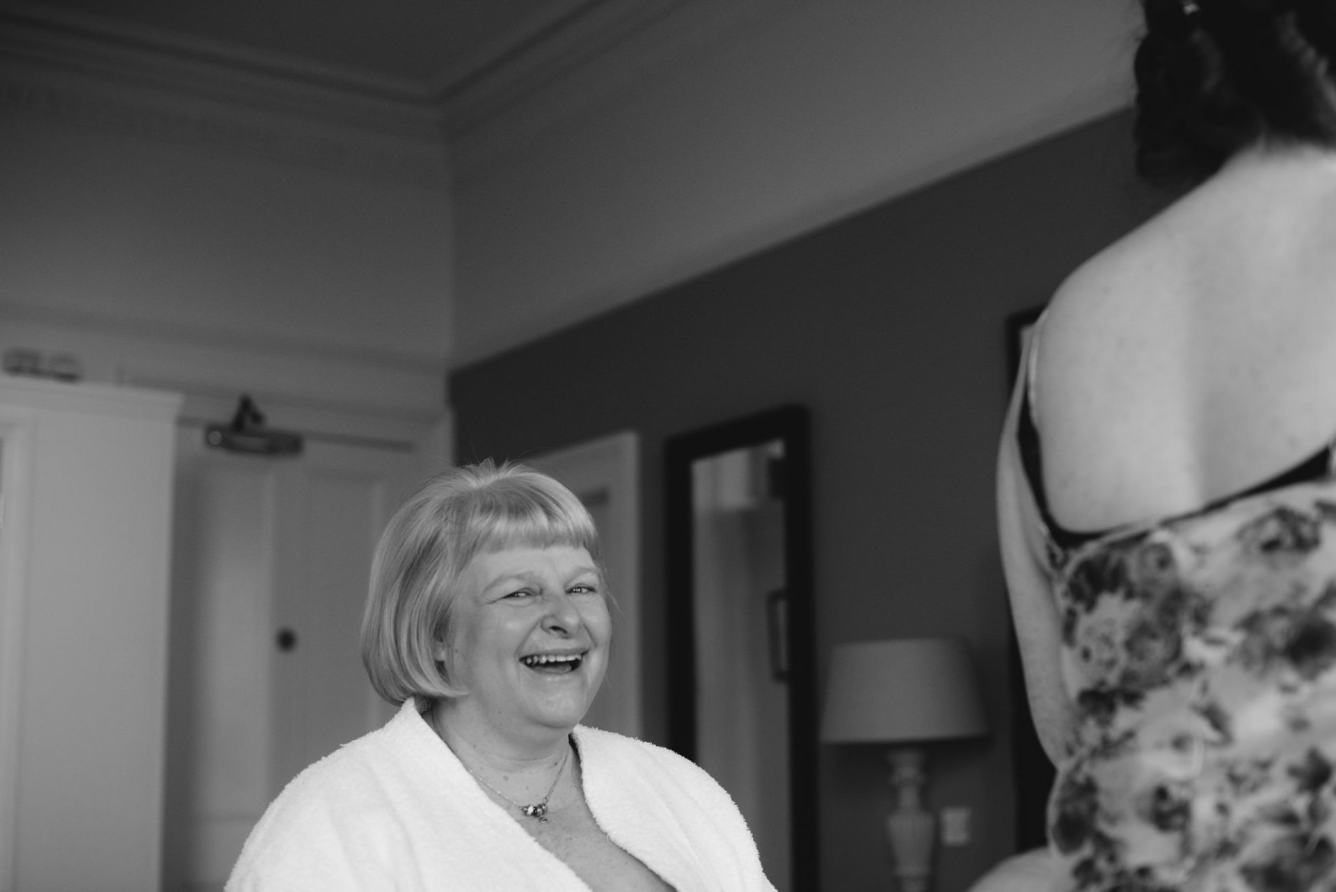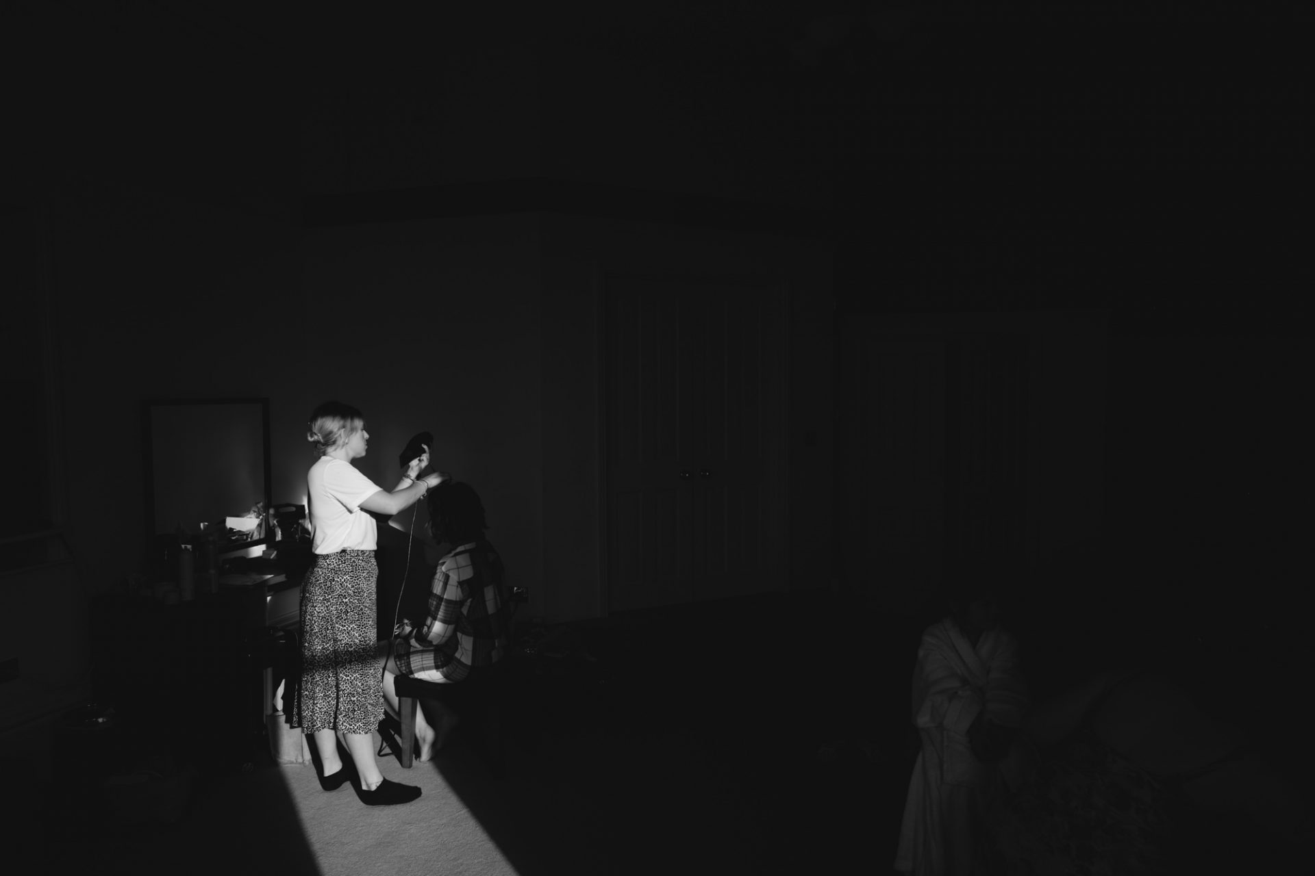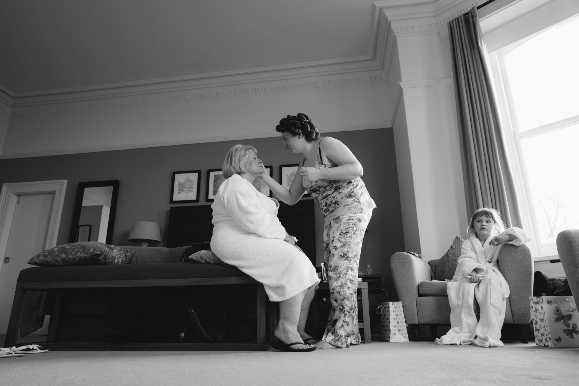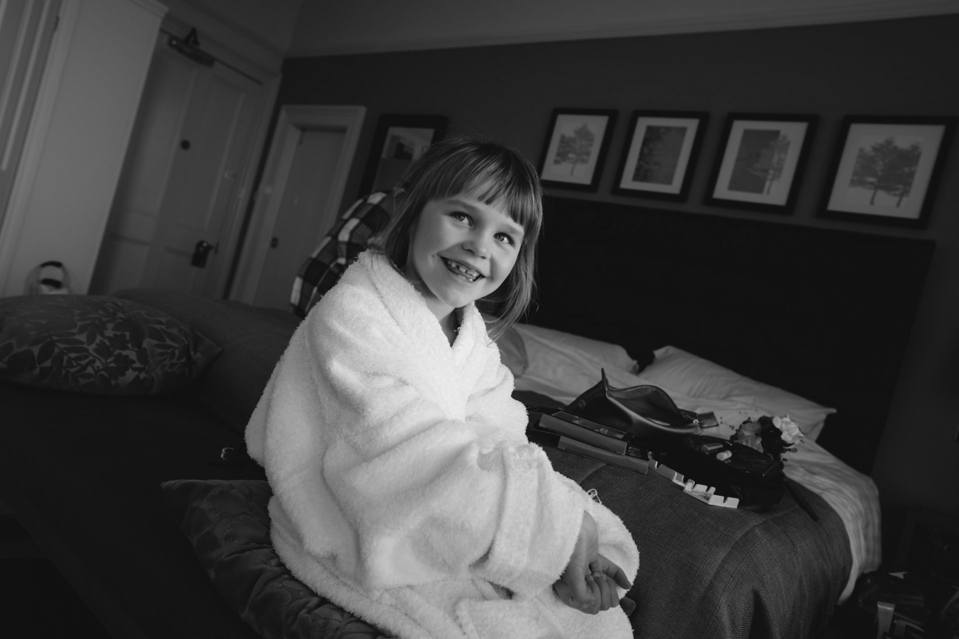 Meanwhile, Sam’s wedding preparations were contiuing with less hitches. I hung her dress in the stunning bay windows of the bridal suite which reaps beautiful light from across the St Austell bay. When Sam was ready, I shot her in her dress in the same spot using my Hasselbald camera and Black and White then Colour film. A Trenython Manor Wedding is special to say the least!