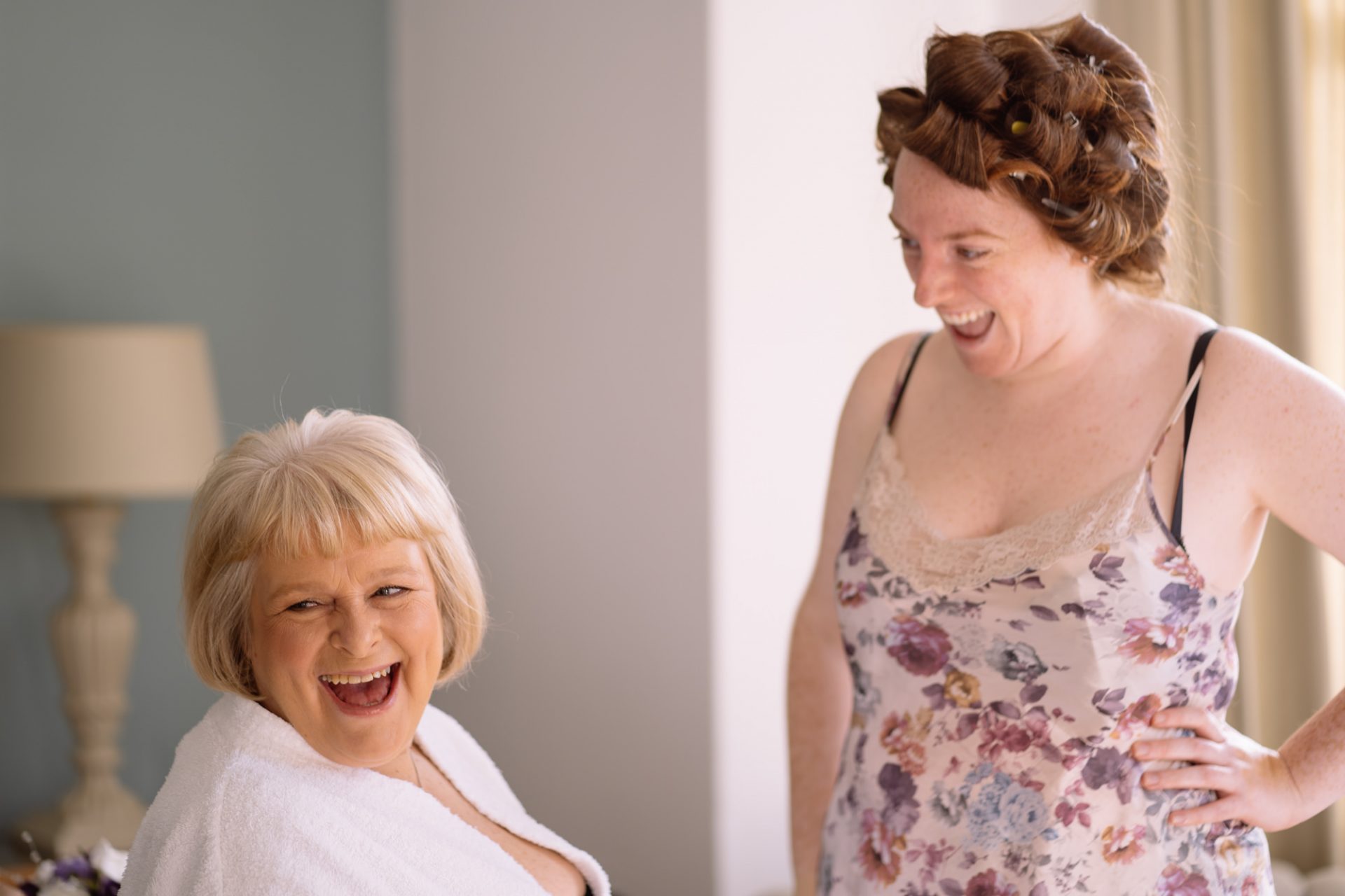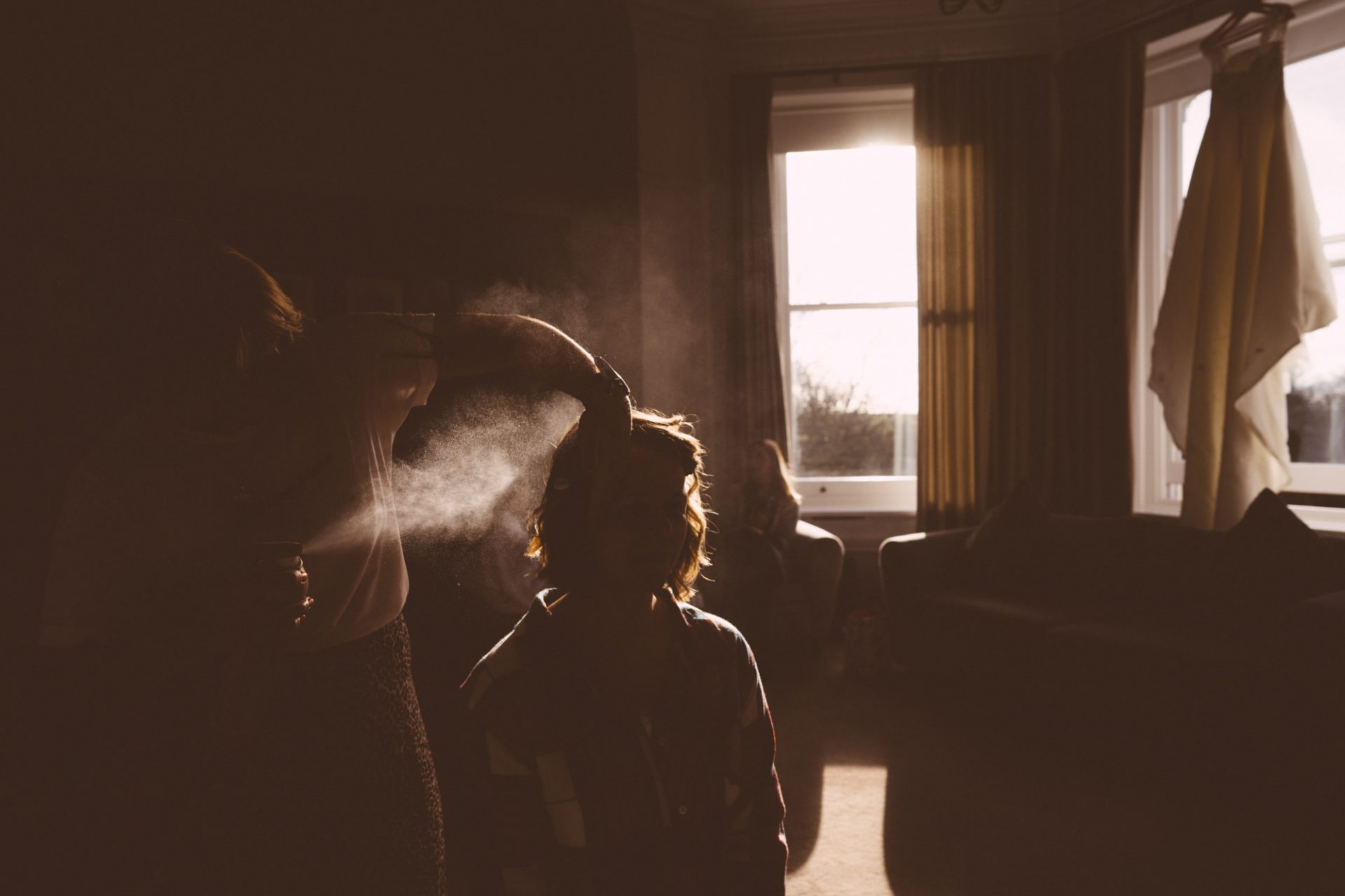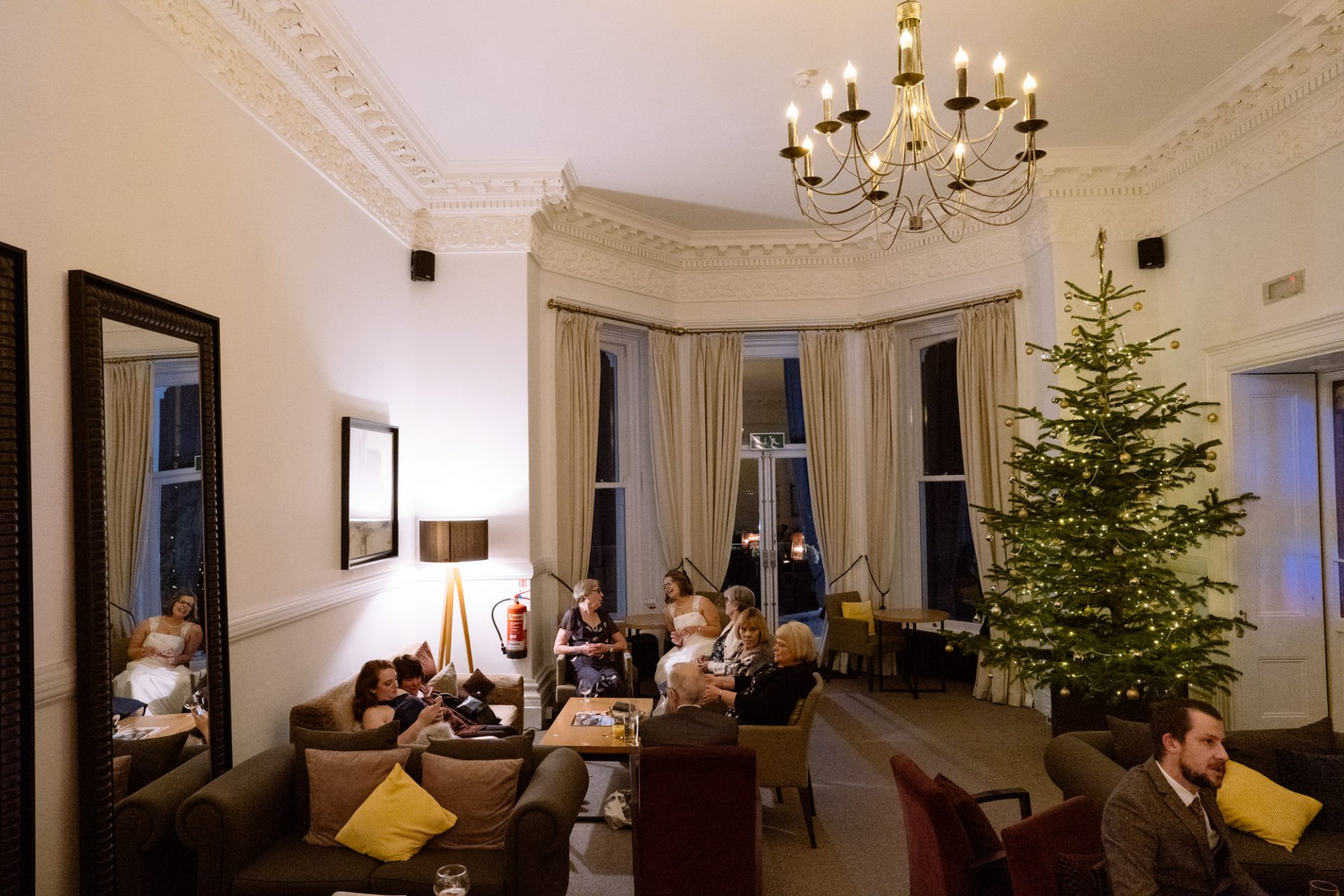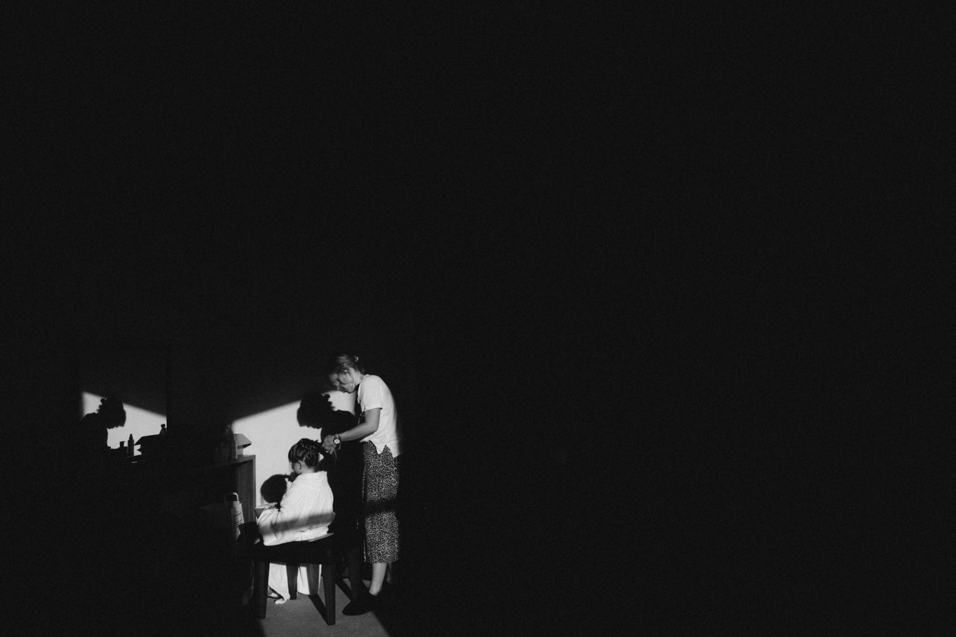 Meanwhile, Sam’s wedding preparations were contiuing with less hitches. I hung her dress in the stunning bay windows of the bridal suite which reaps beautiful light from across the St Austell bay. When Sam was ready, I shot her in her dress in the same spot using my Hasselbald camera and Black and White then Colour film. A Trenython Manor Wedding is special to say the least!