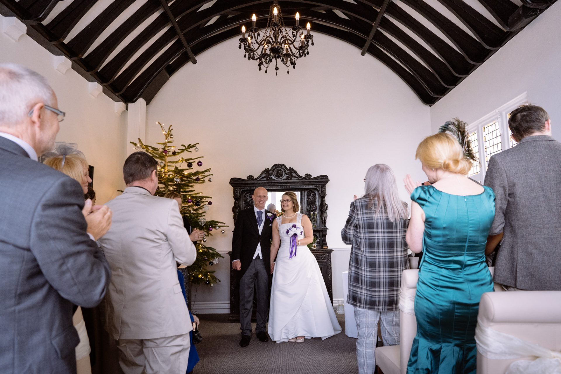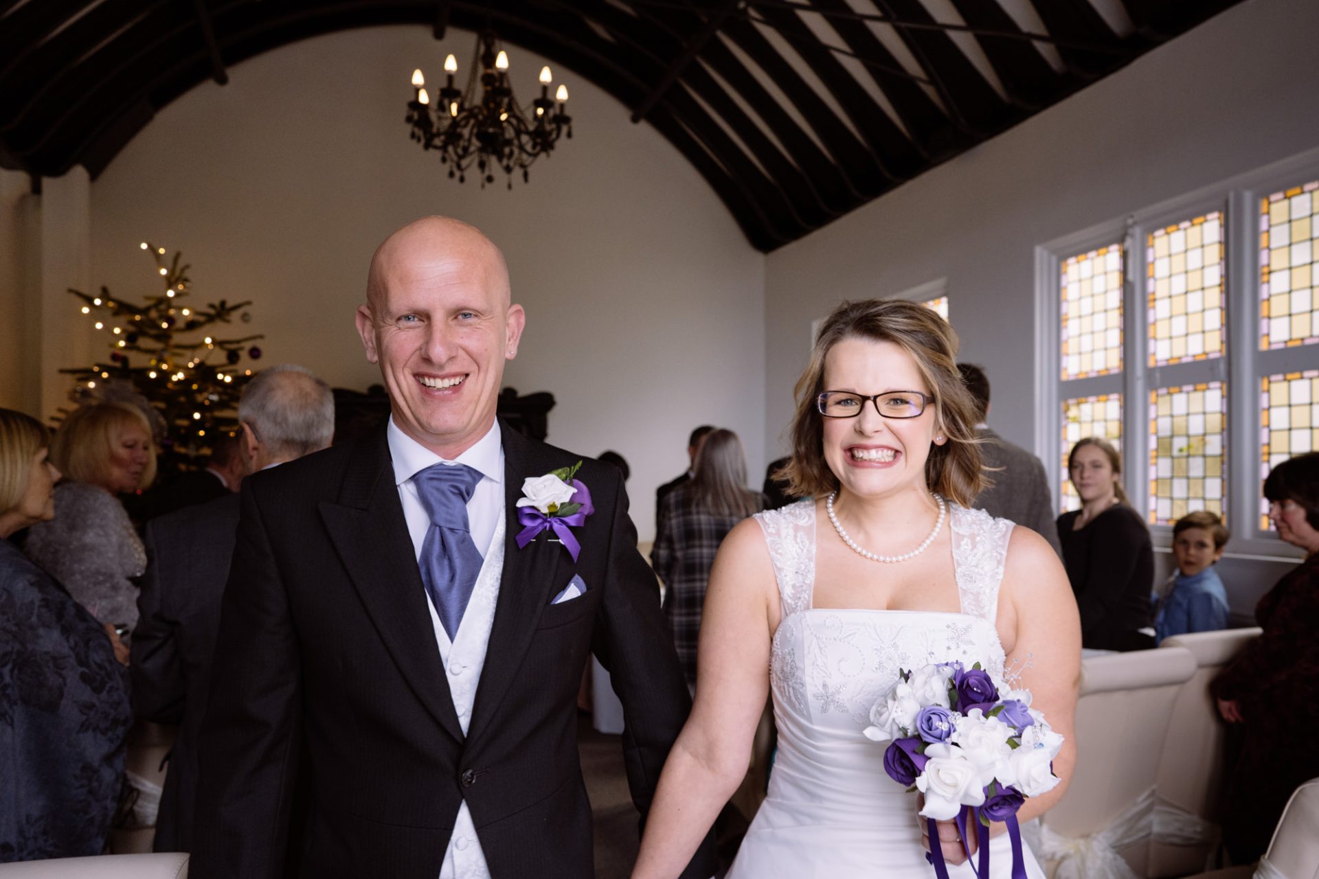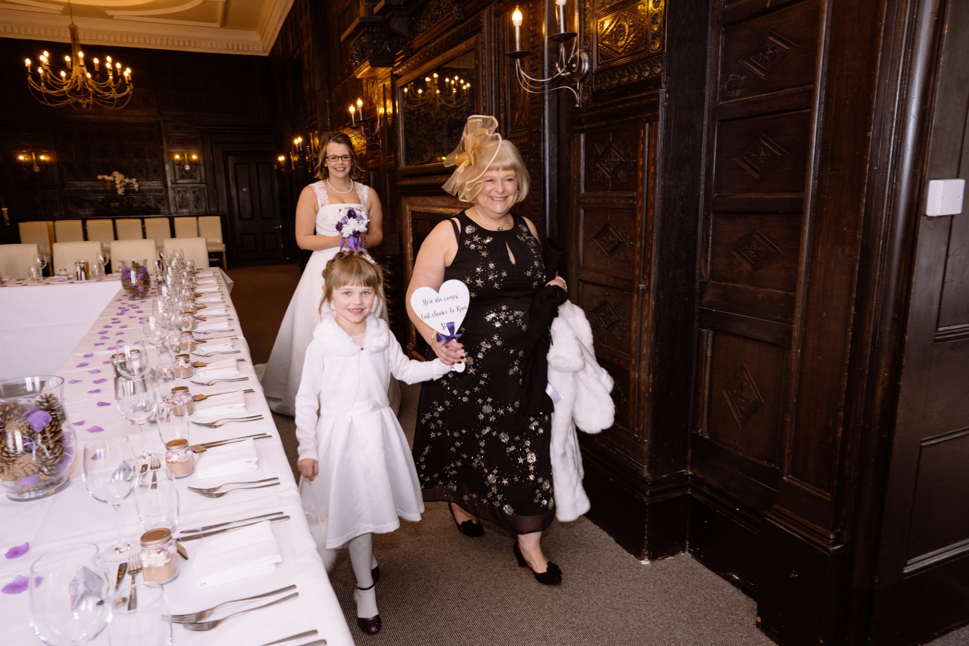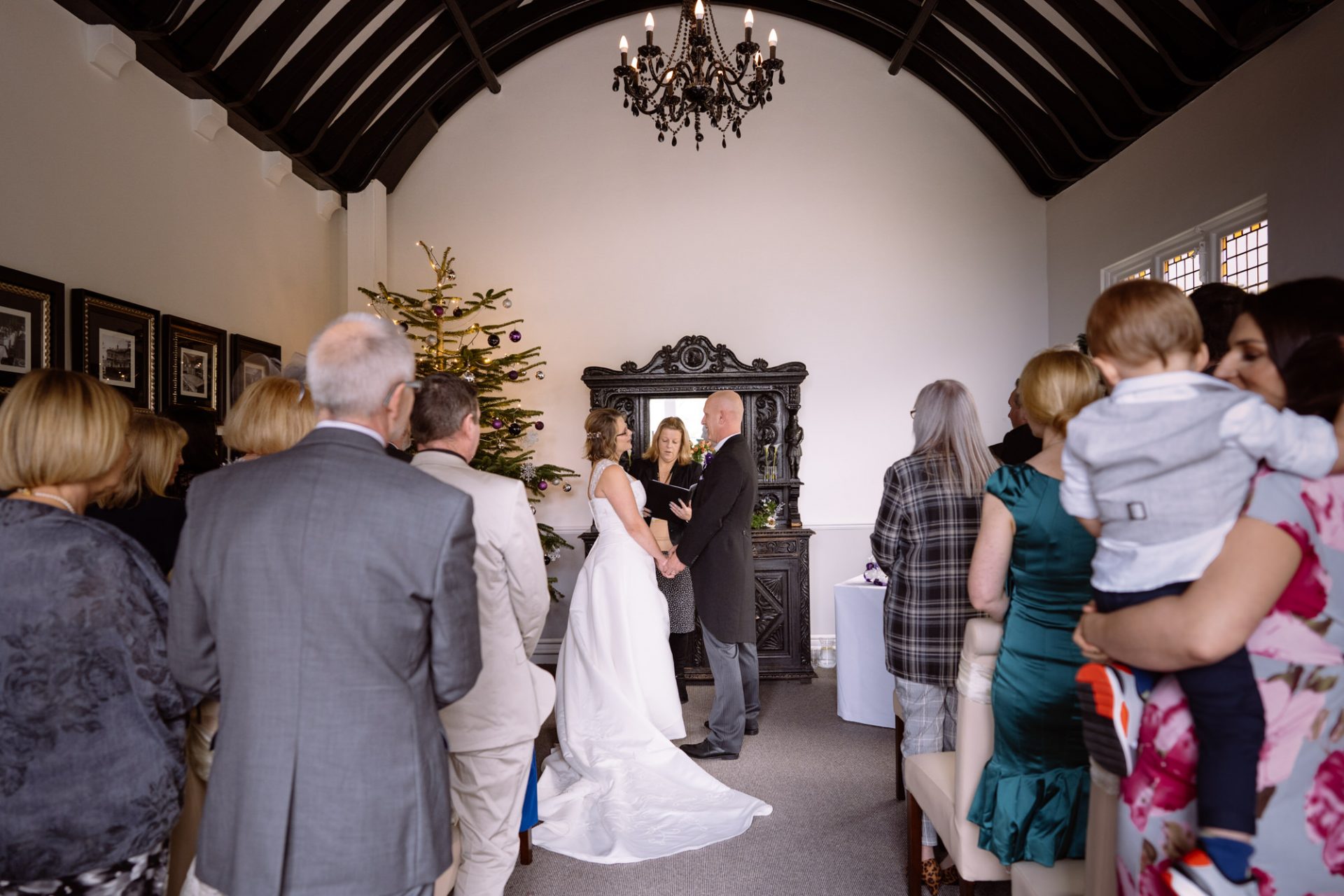 Safely suited and booted (and emergency tied!), Steve and his best man waited in the chapel. My second shooter Kirsty followed Sam down the grand staircase as she prepared to make her entry. The assembled congregation held their collective breath. On cue, the music began. Sam’s mum and daughter entered followed by Sam herself. I think you can safely say everyone was stunned at how amazing she looked!