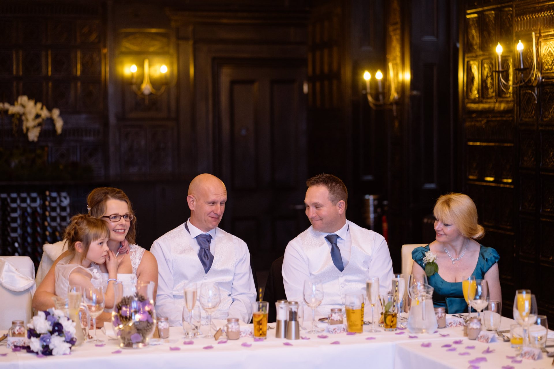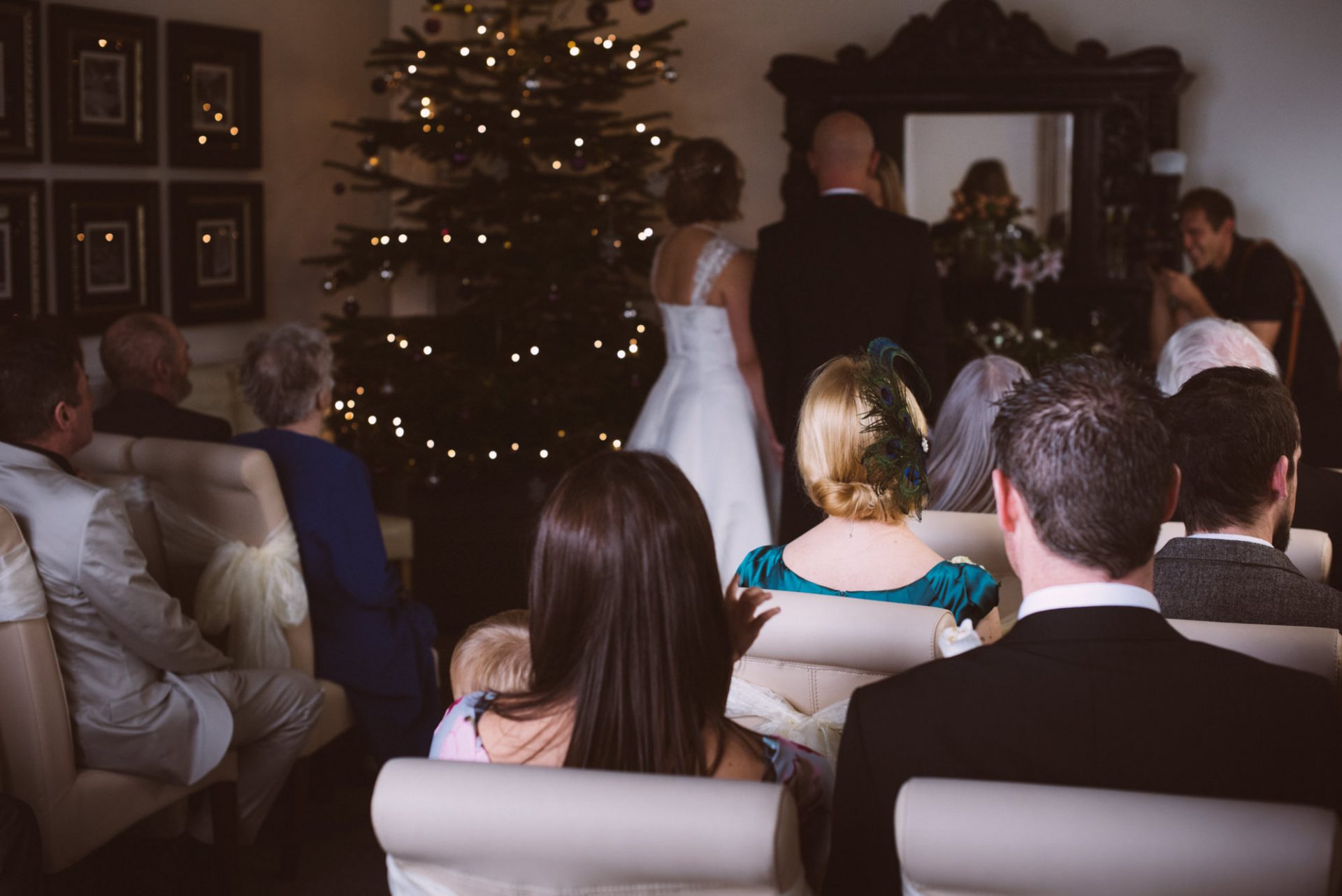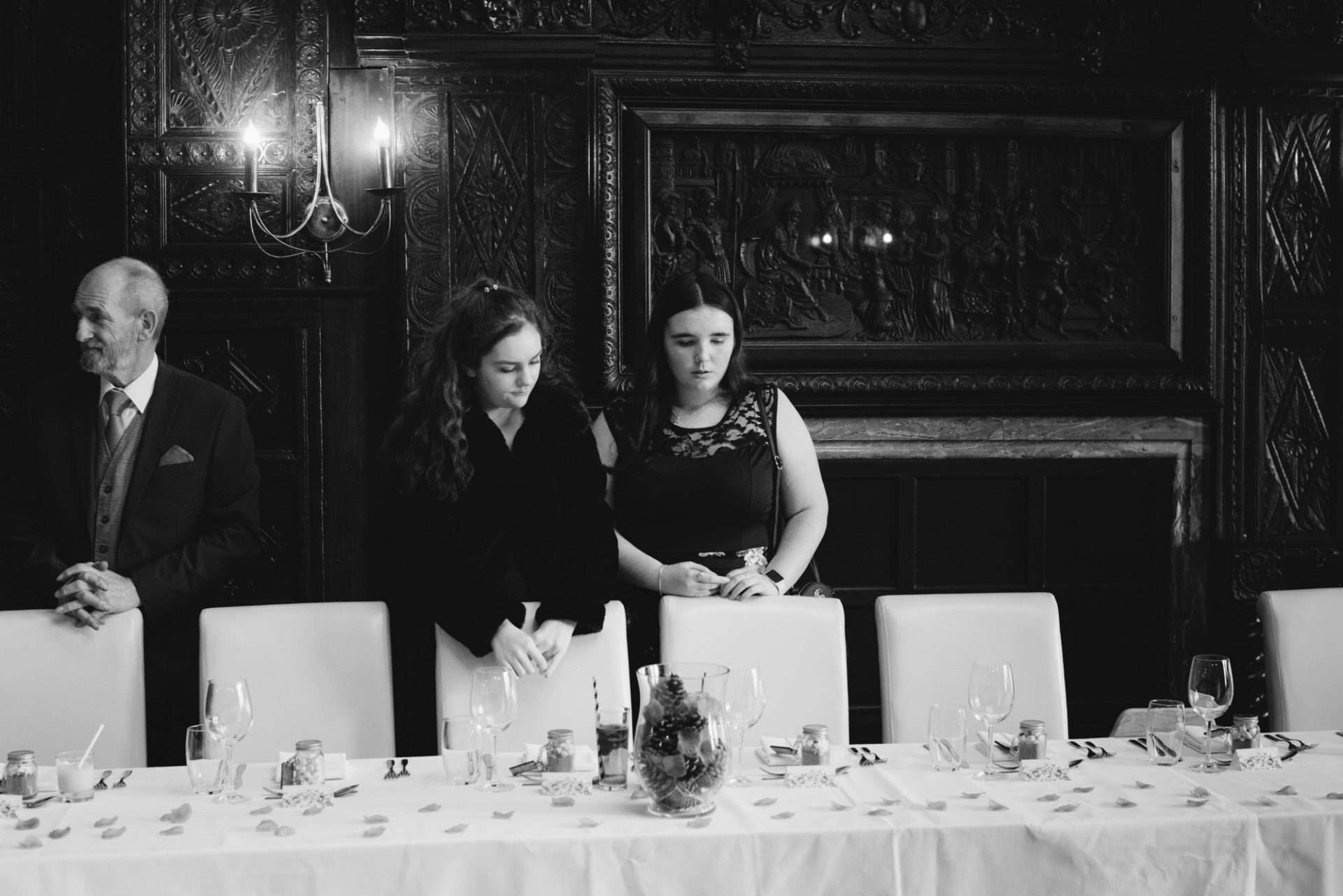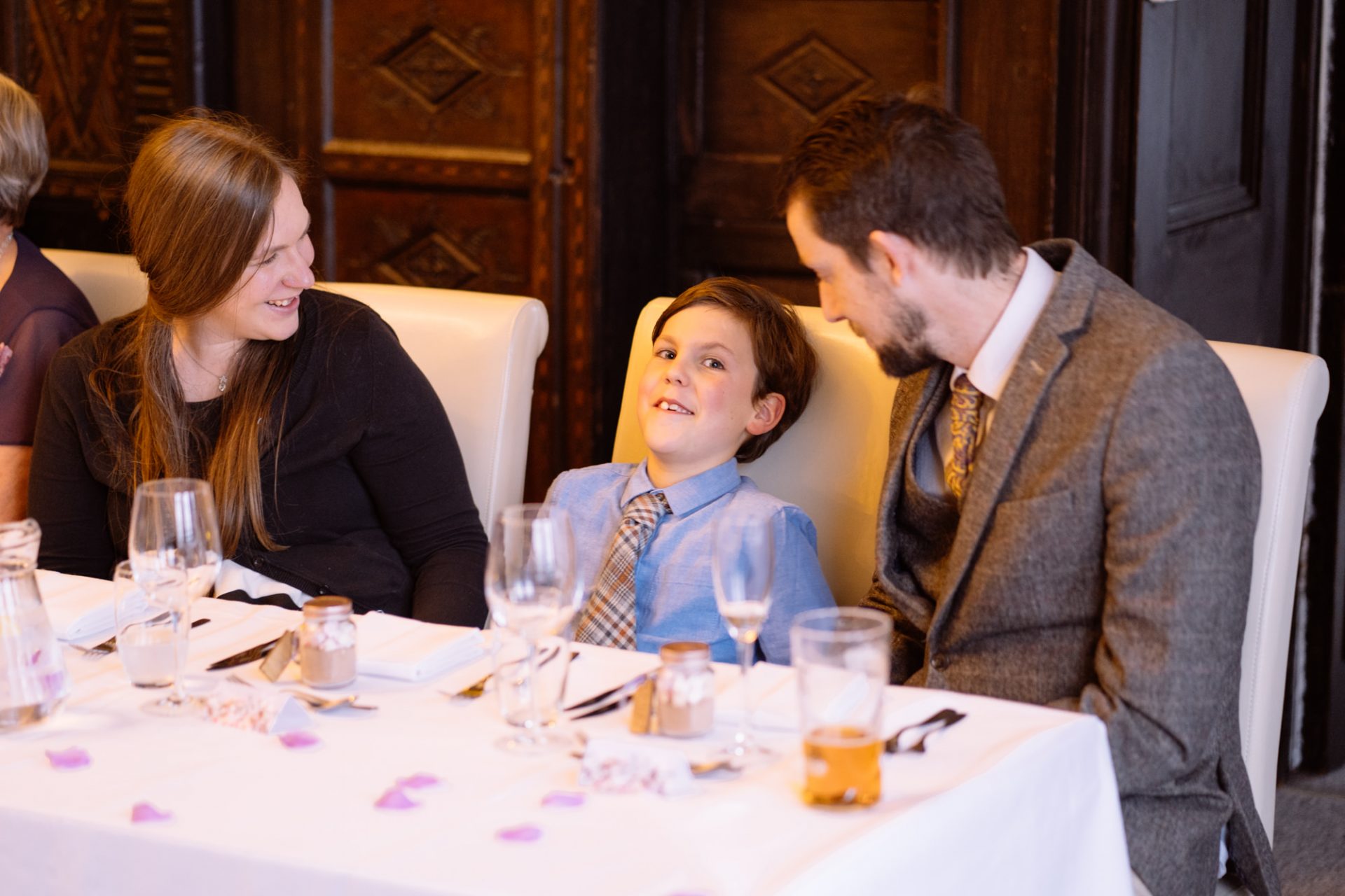 Safely suited and booted (and emergency tied!), Steve and his best man waited in the chapel. My second shooter Kirsty followed Sam down the grand staircase as she prepared to make her entry. The assembled congregation held their collective breath. On cue, the music began. Sam’s mum and daughter entered followed by Sam herself. I think you can safely say everyone was stunned at how amazing she looked!
